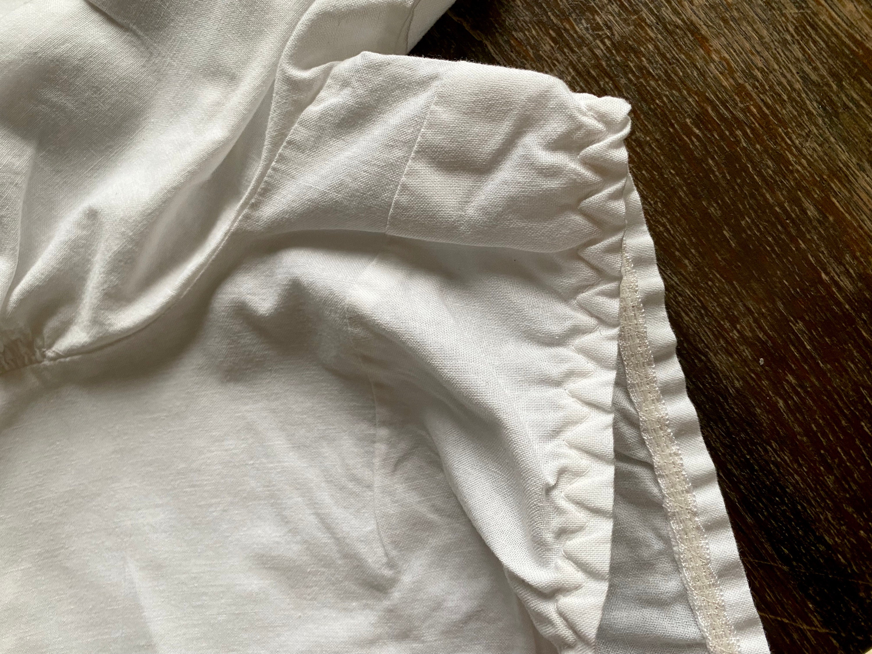 FABRIC: Unknown. Feels like a cotton/linen/polyester blend.