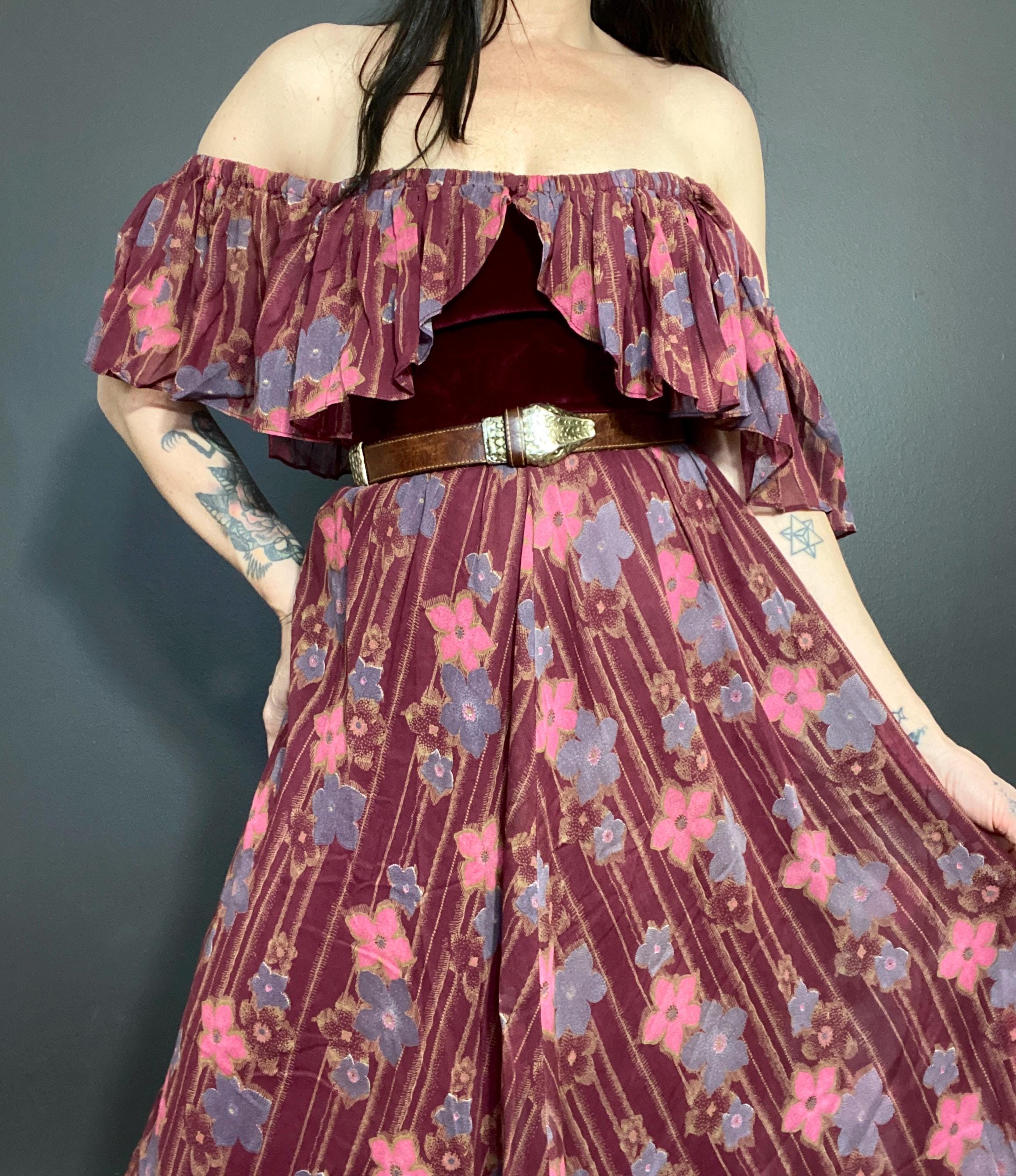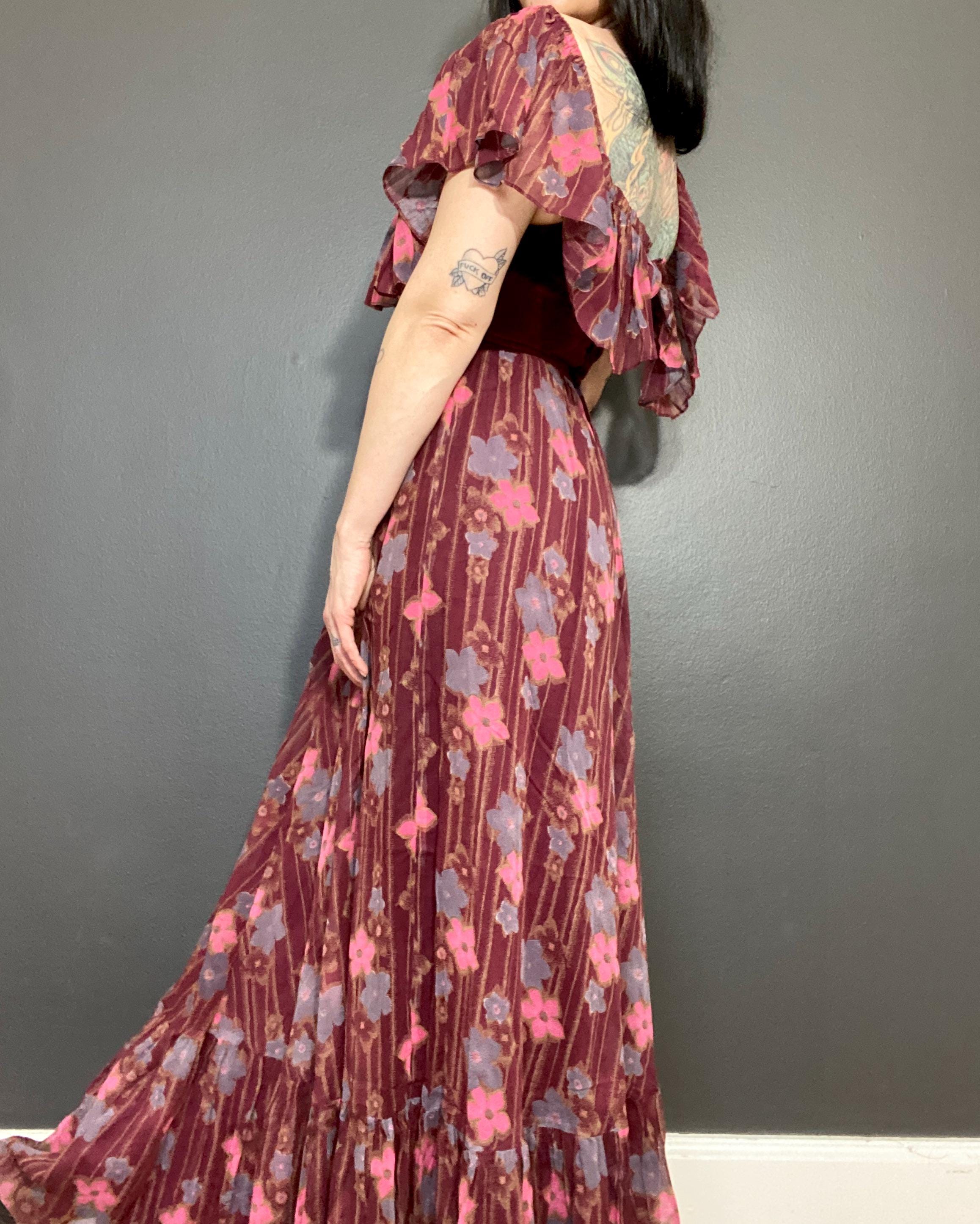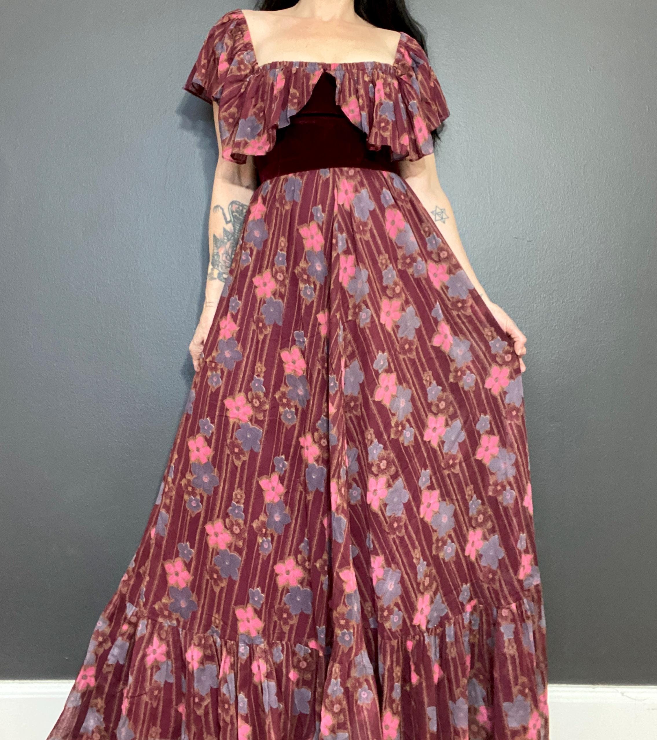Gorgeous 1970s Marcel Fenez by Roland Klein prairie maxi dress.