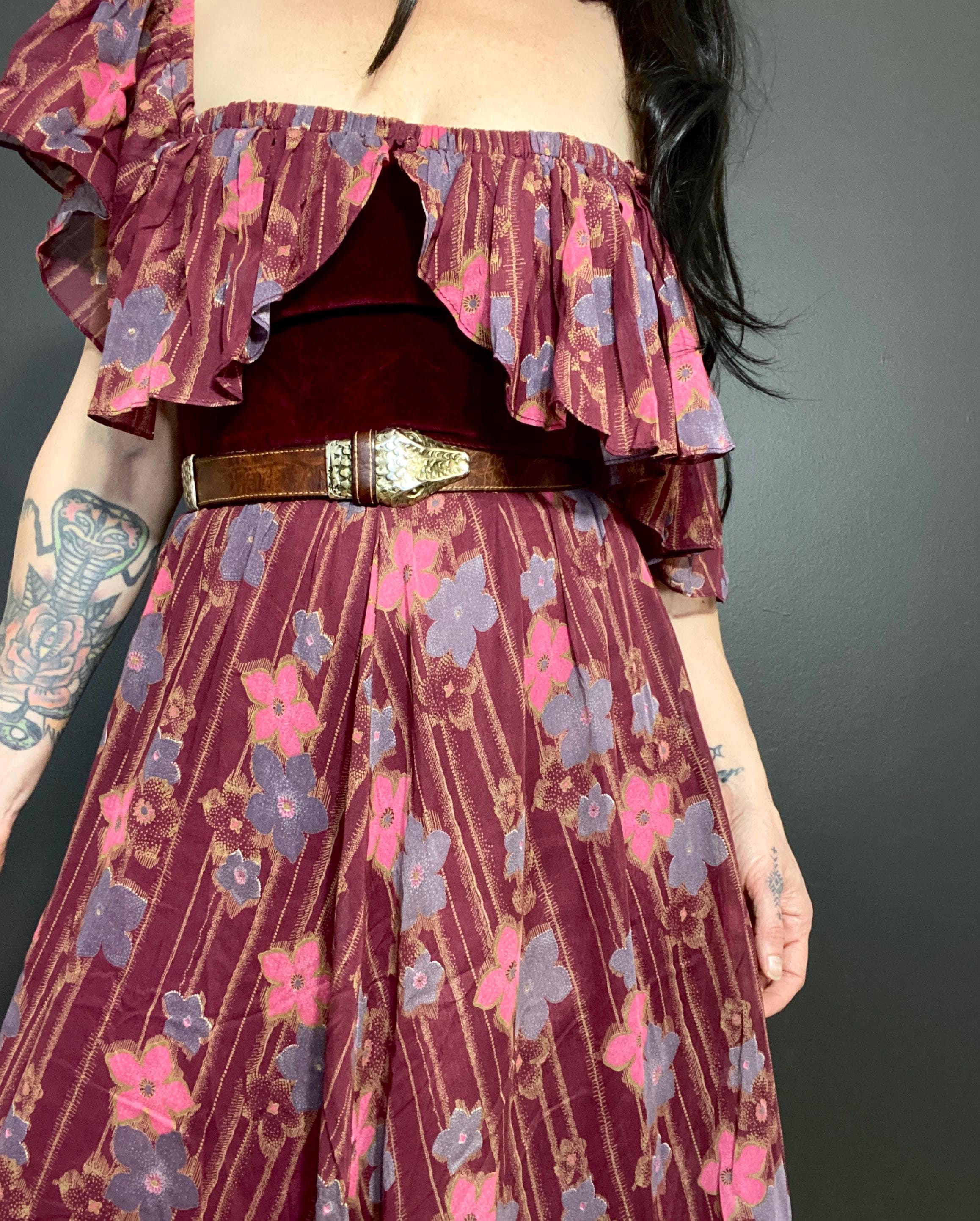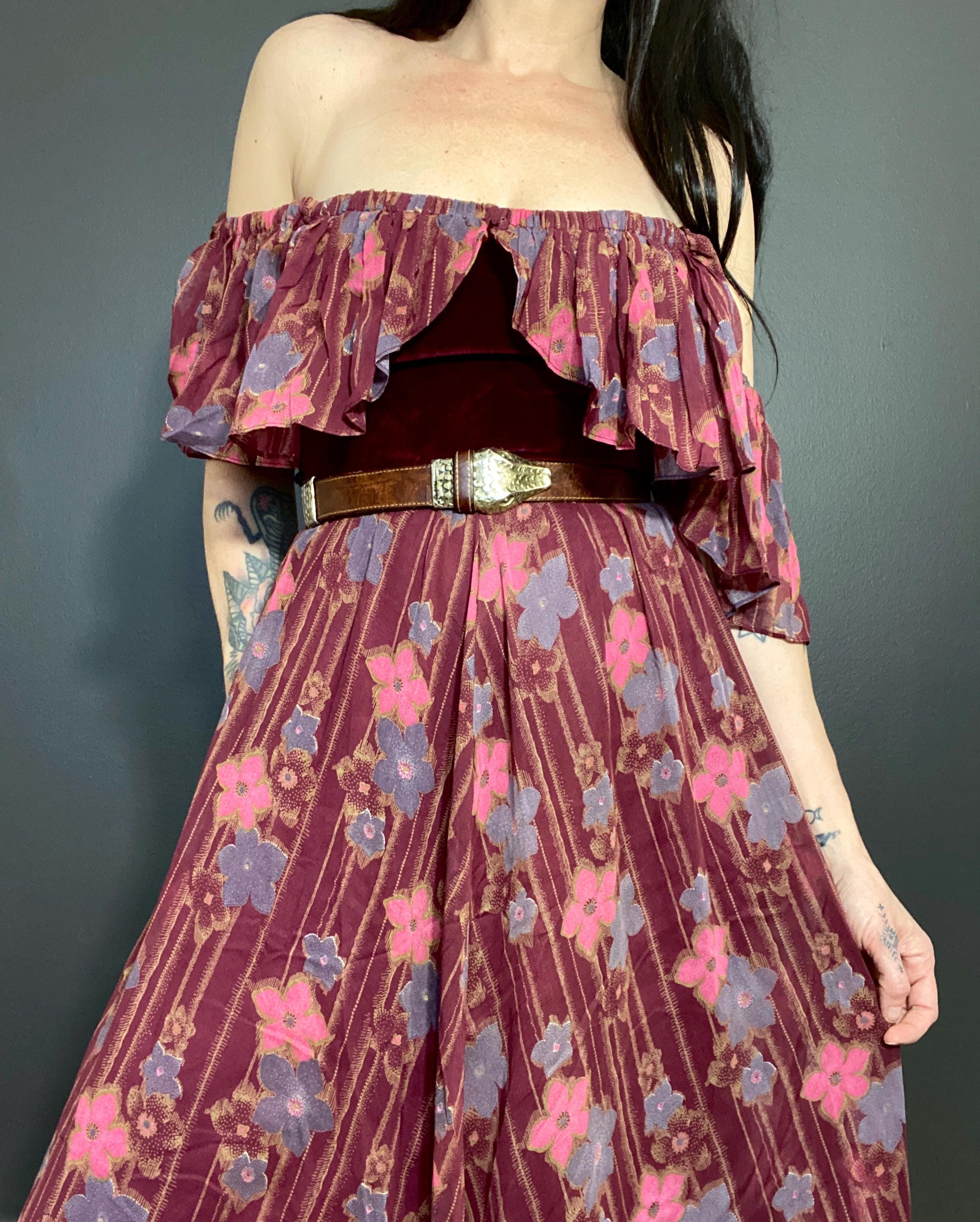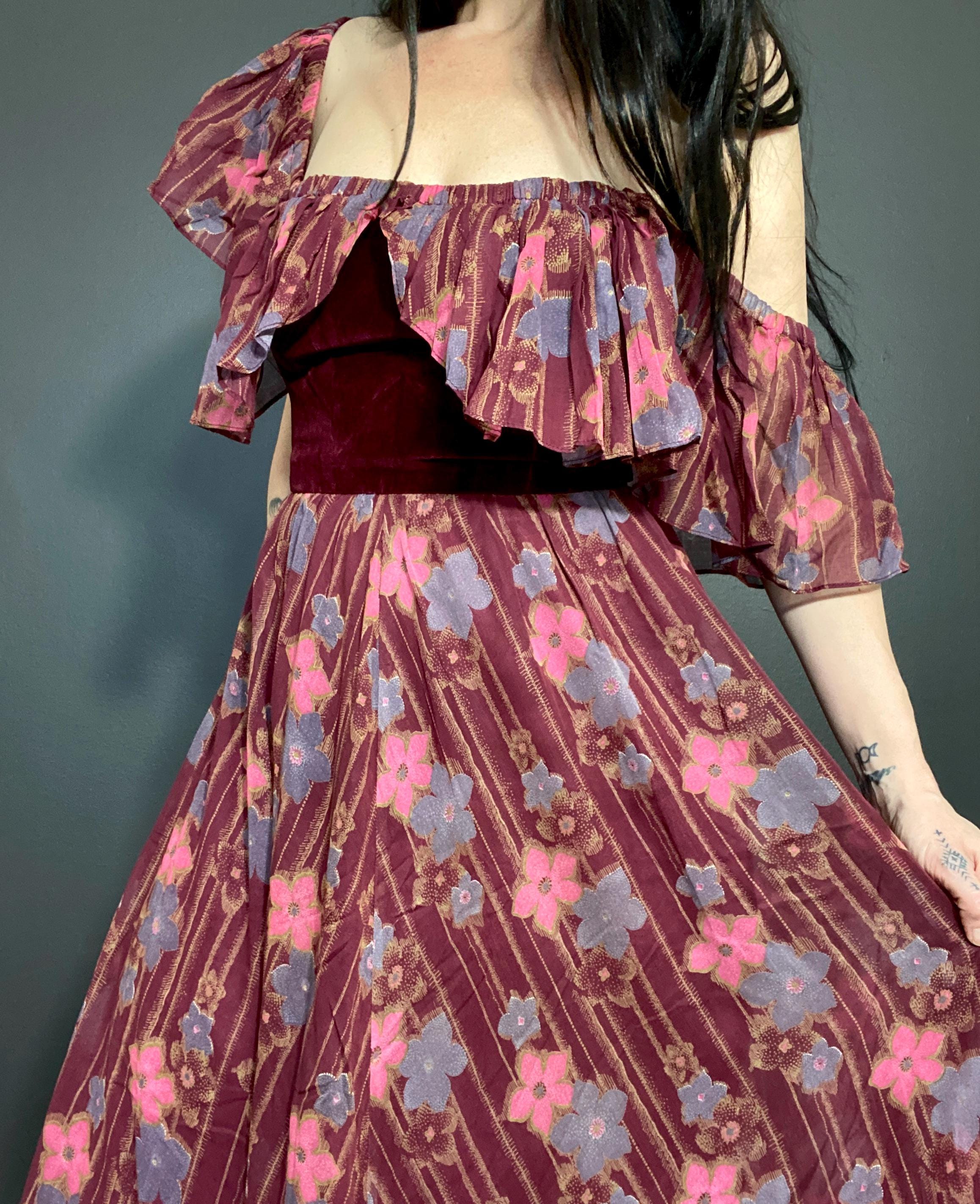 Gorgeous 1970s Marcel Fenez by Roland Klein prairie maxi dress.