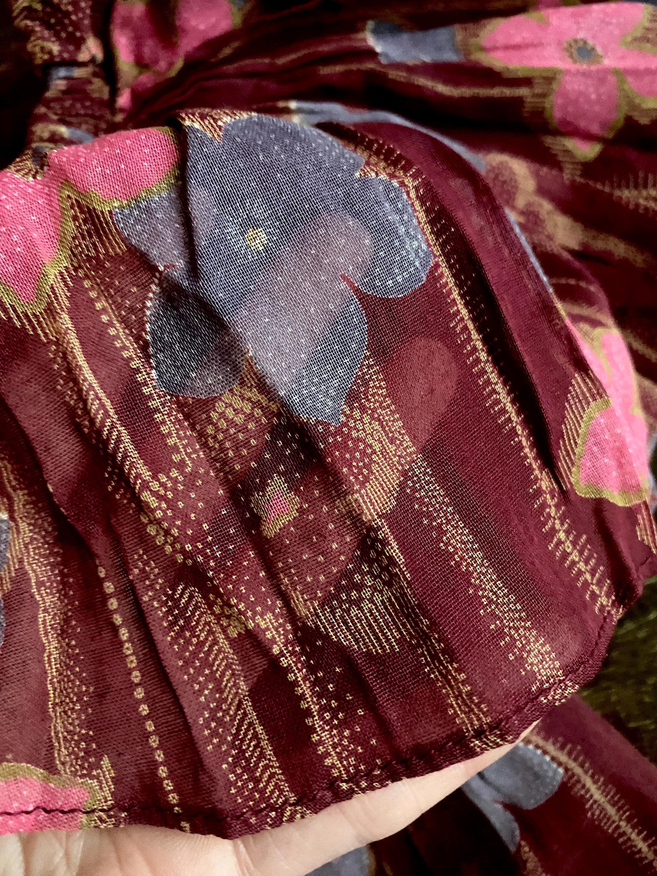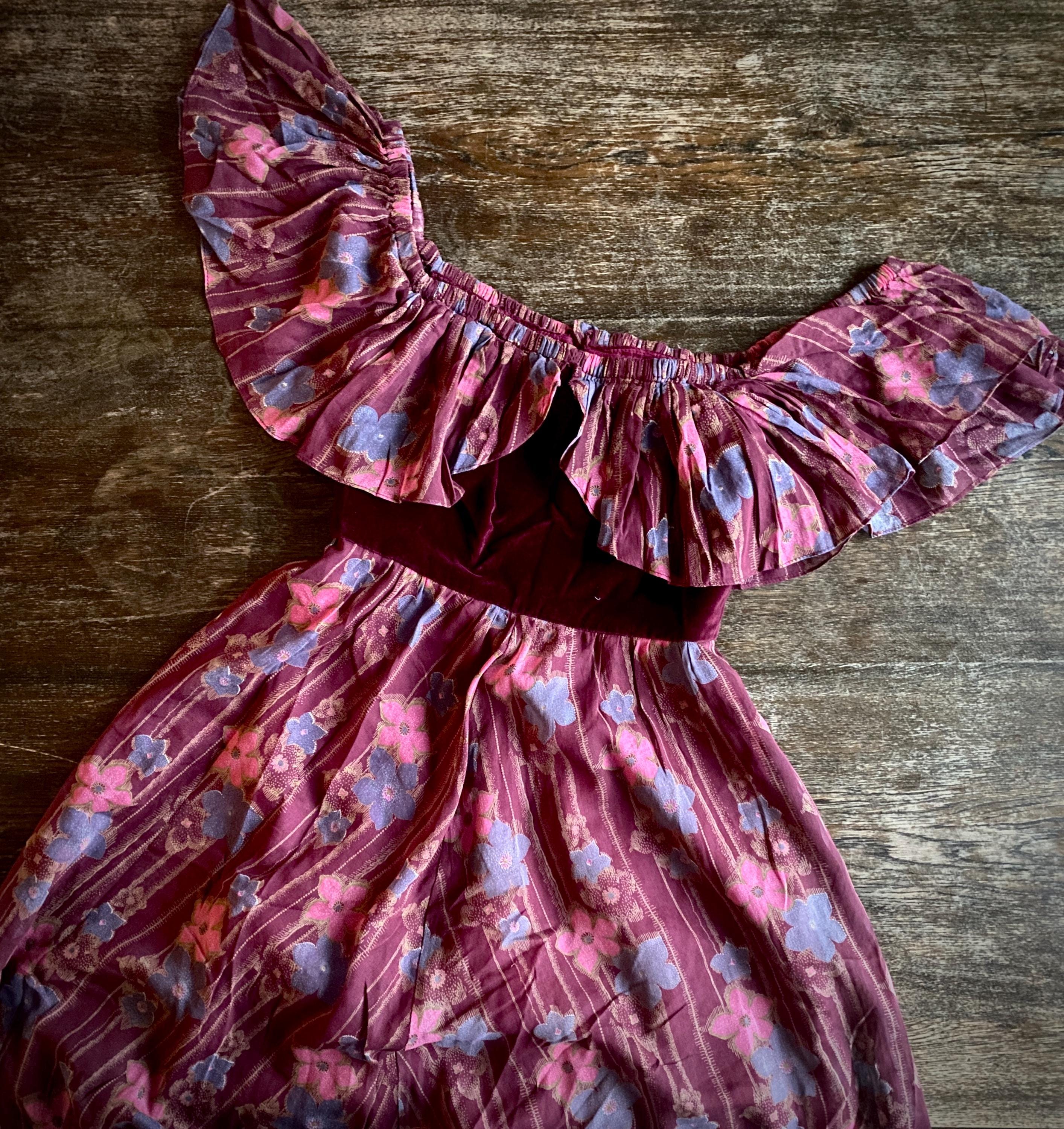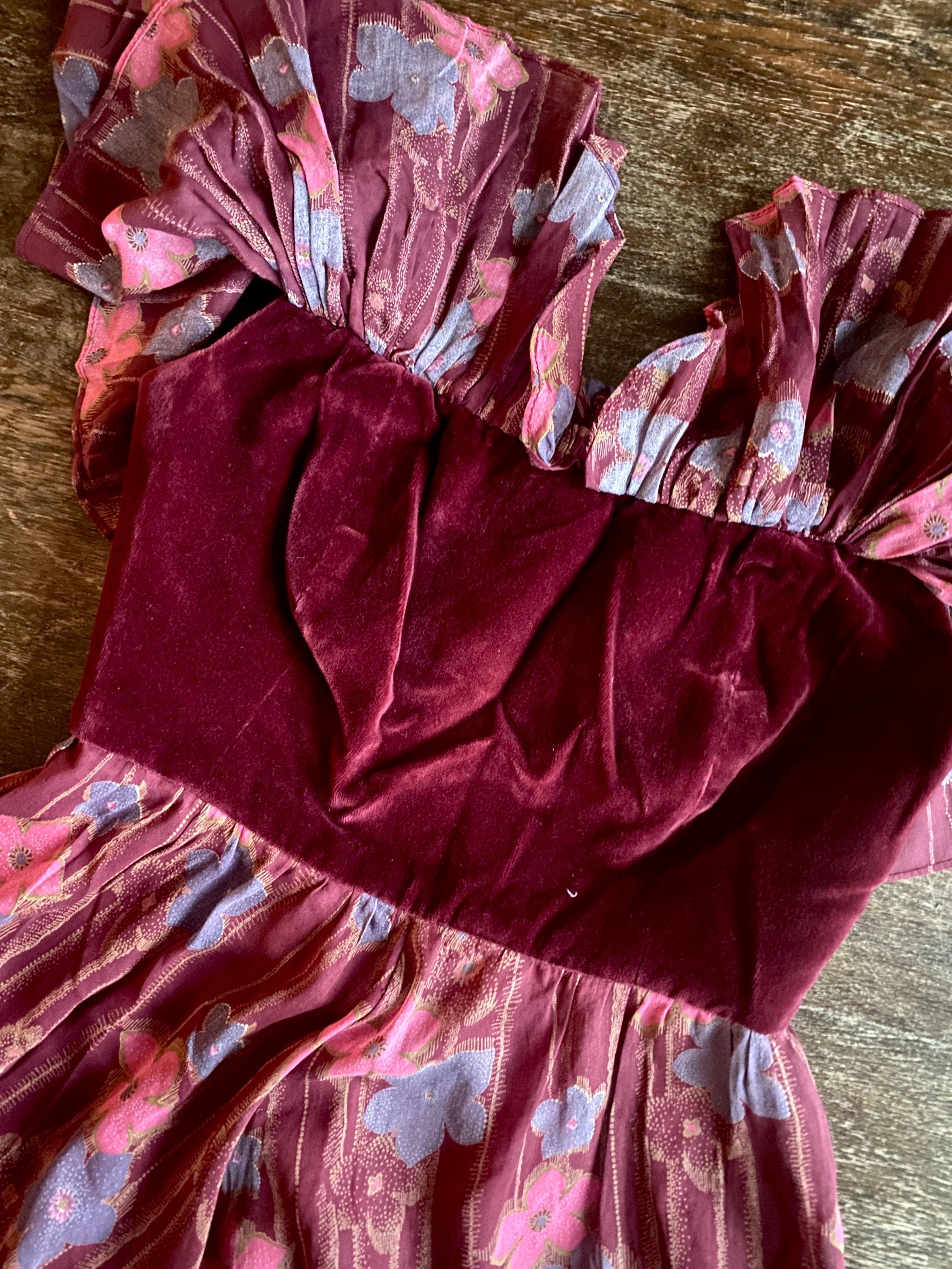 *Dark burgundy-wine colored thin cotton voile with dark wine cotton velvet bodice.