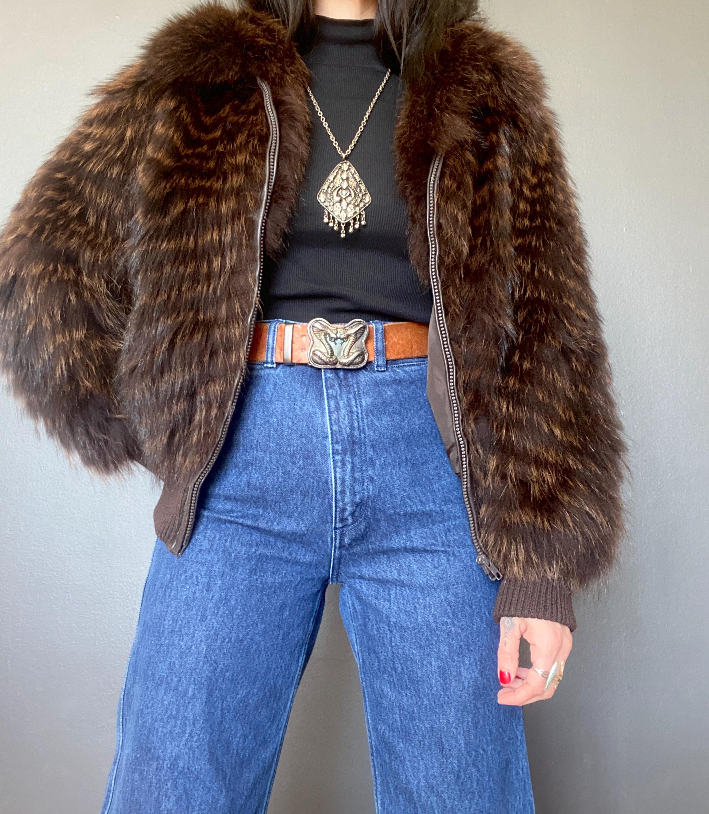Awesome 1970s fur bomber jacket.