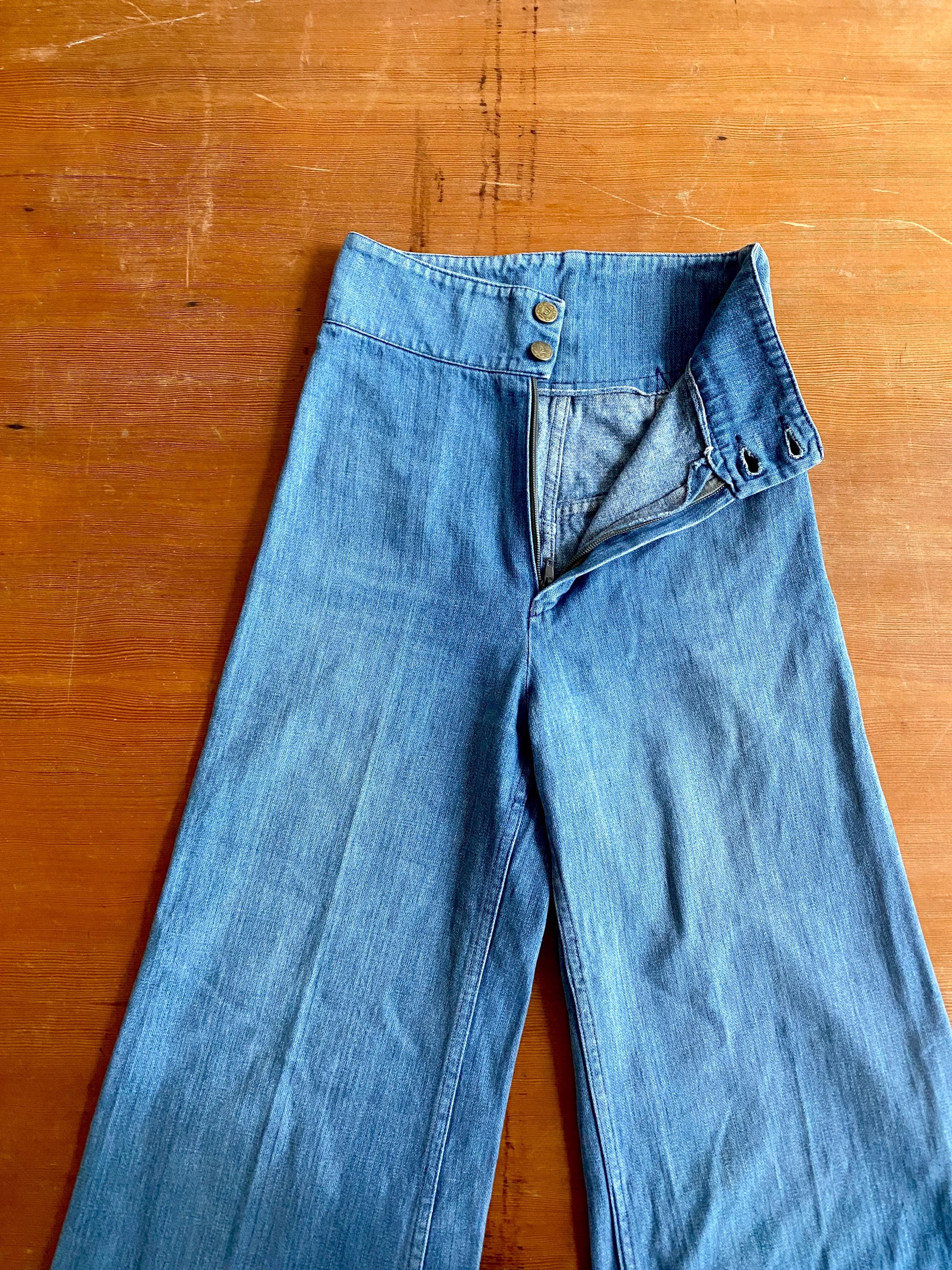 *Used vintage condition. Shows overall signs of age and wear. The denim fabric has a lovely worn in look.
