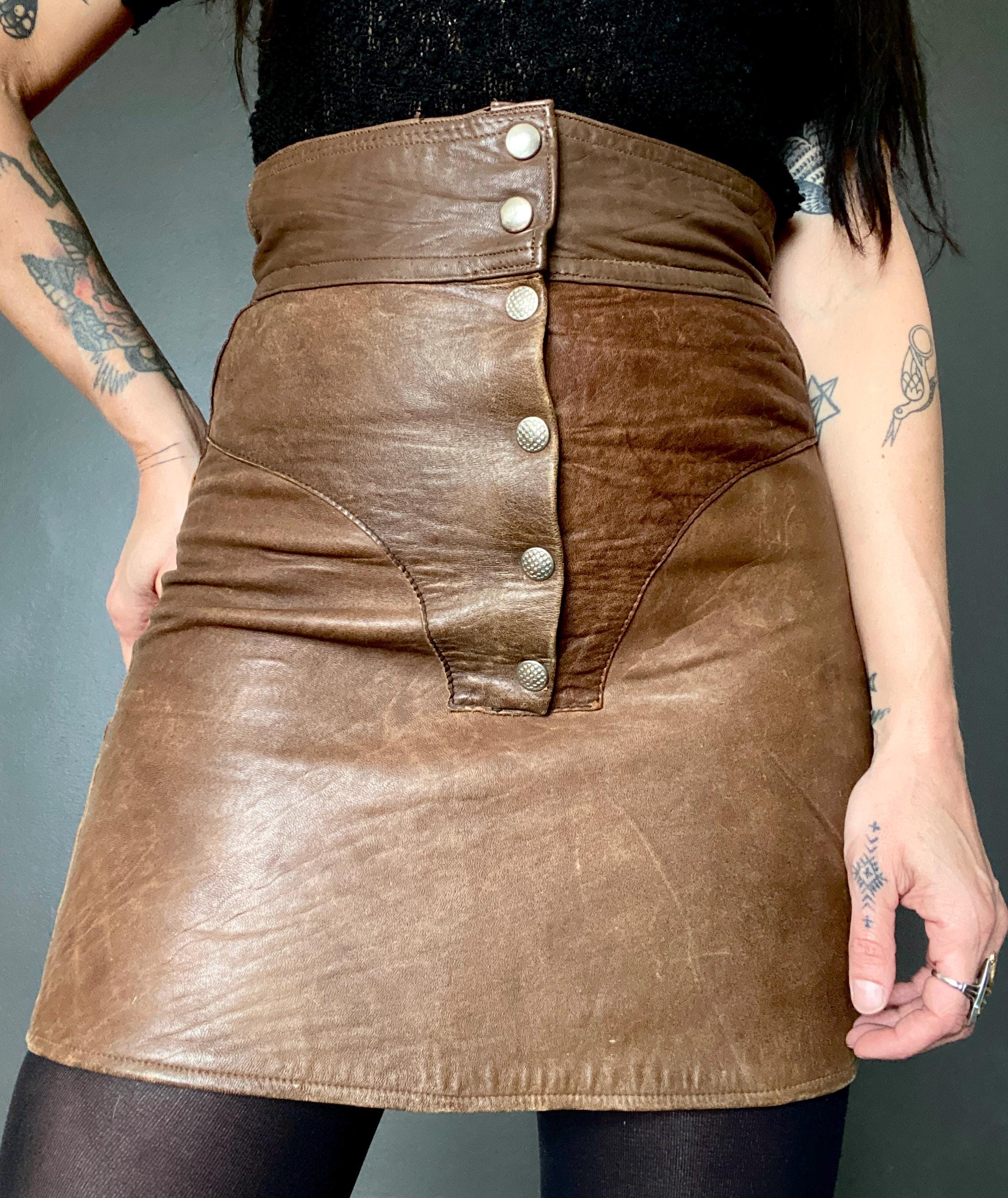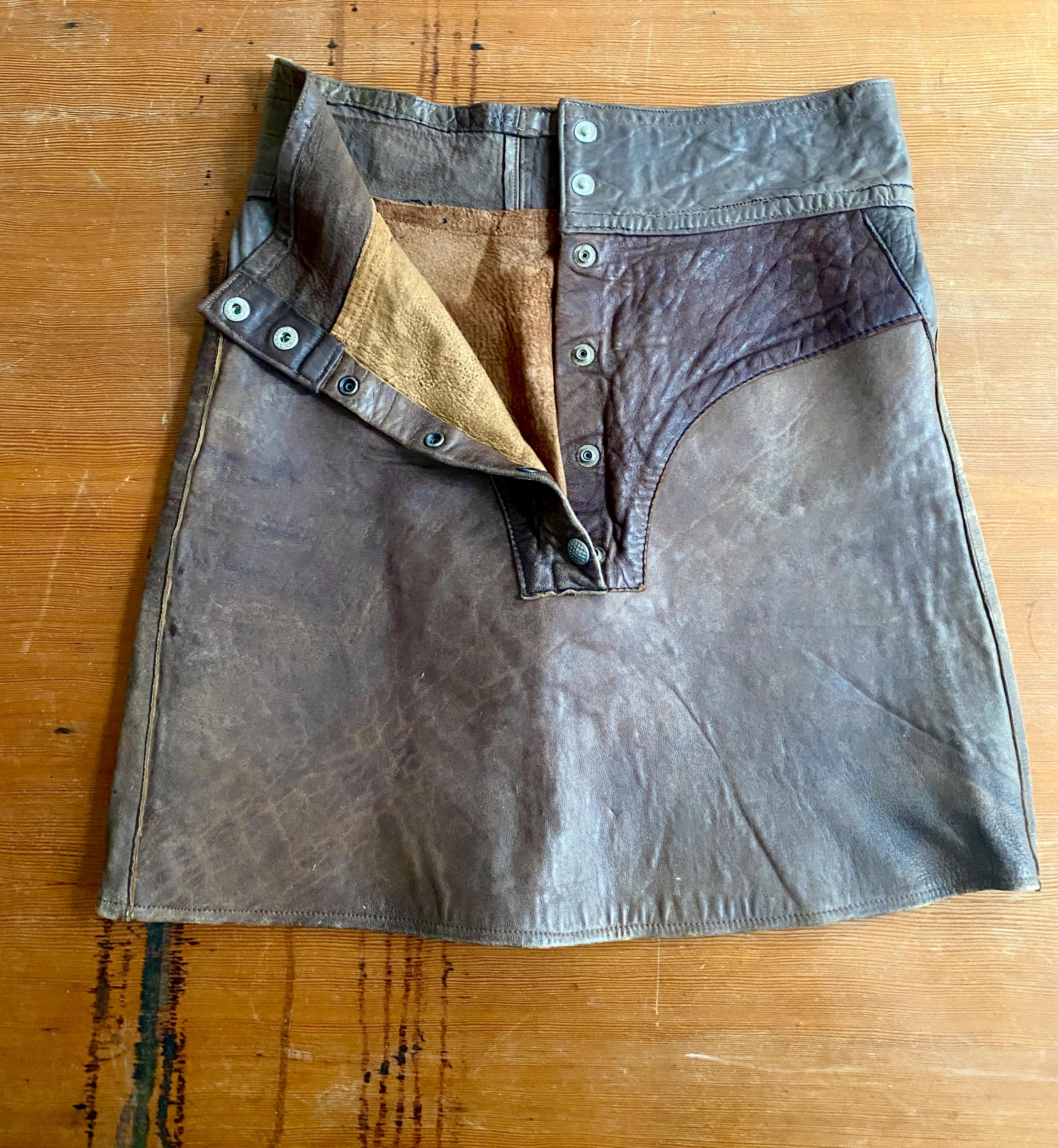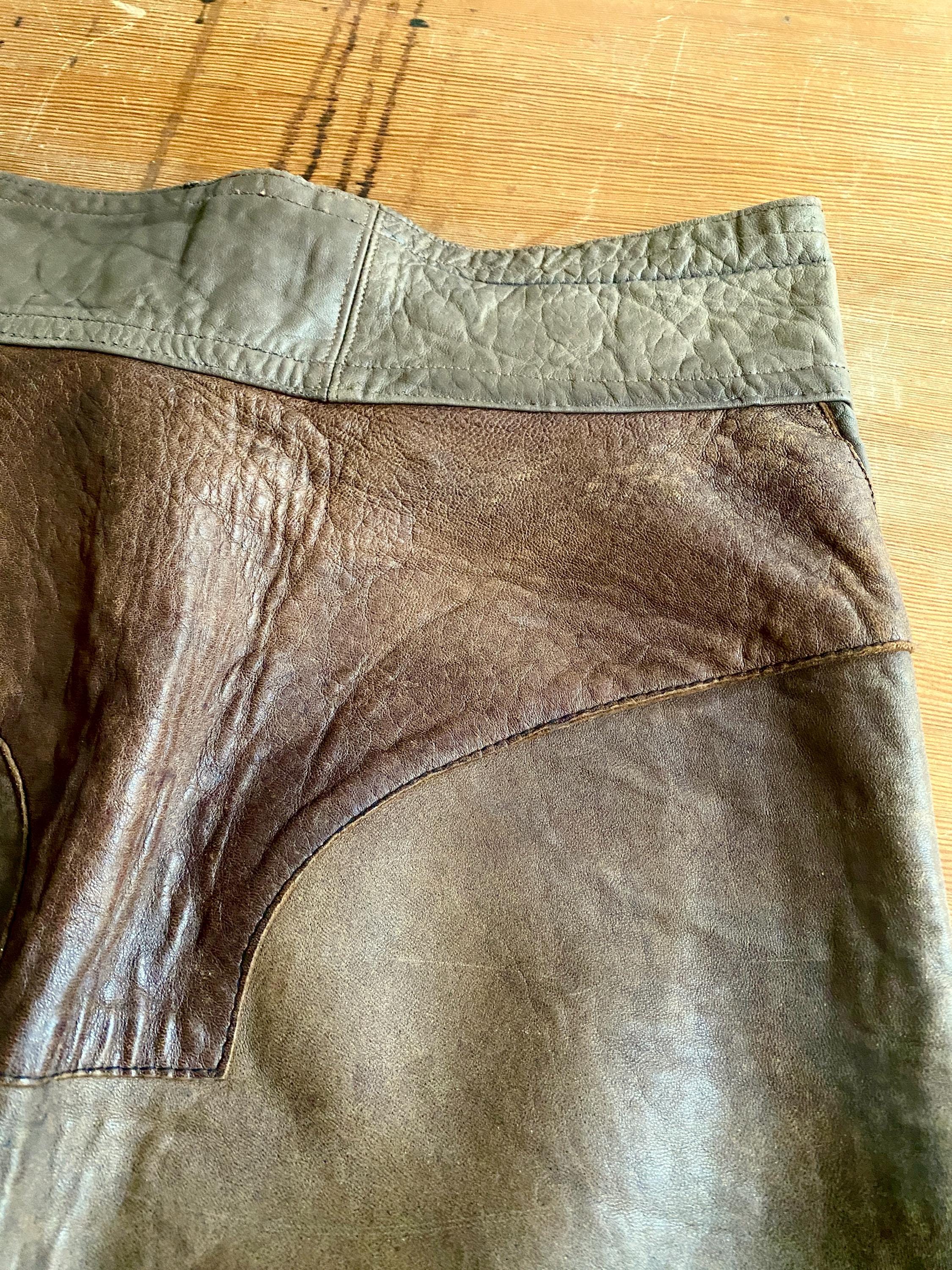 *Used vintage condition. Has some patina and shows signs of age and wear. There's a little cut in the leather on the waistline but it doesn't go all the way through. Also the upper part of the leather has a tear near the waist seam (see picture) It doesn't leave a hole and is not really visible when worn.