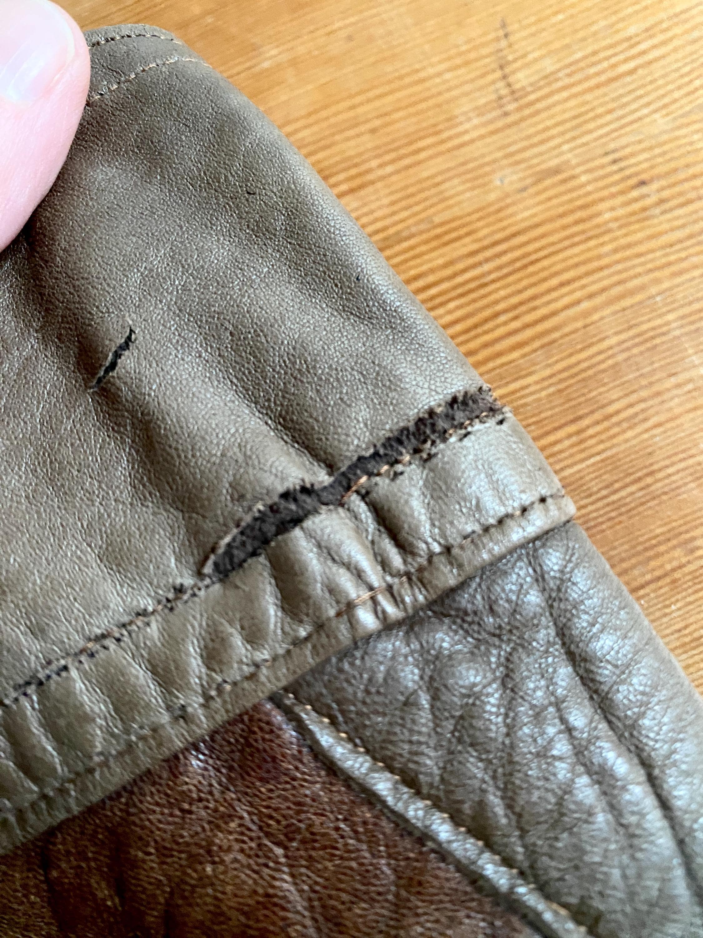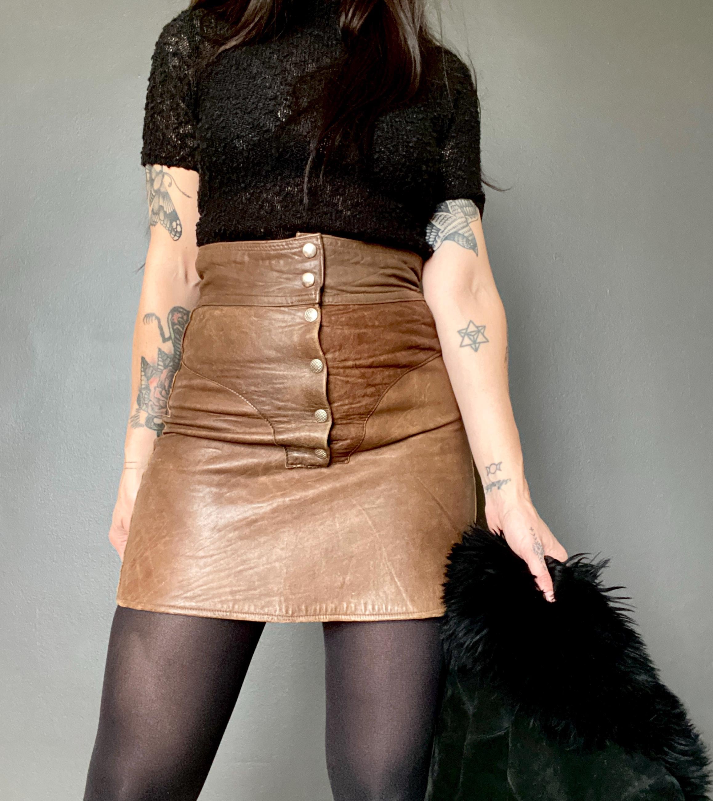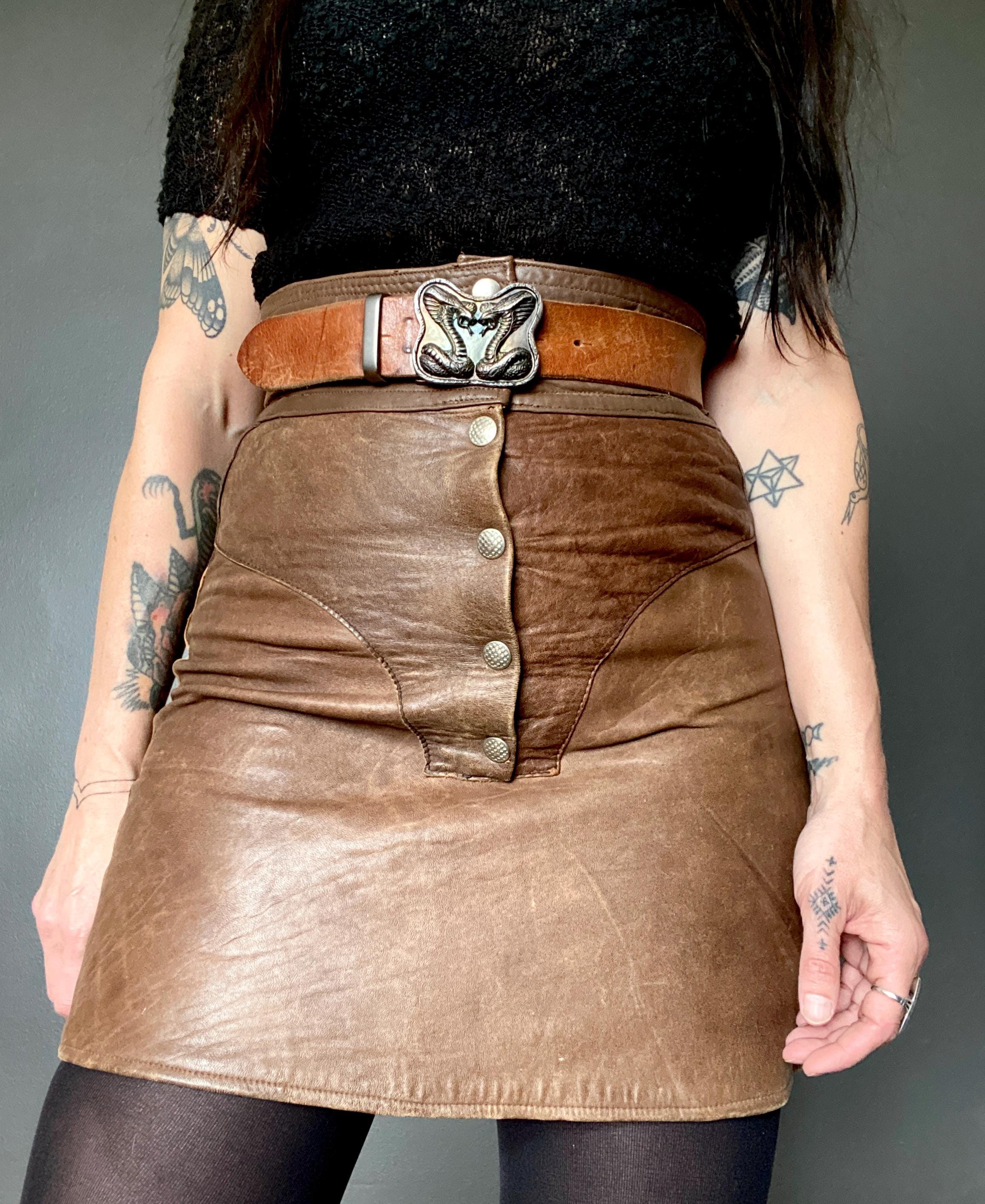 *Used vintage condition. Has some patina and shows signs of age and wear. There's a little cut in the leather on the waistline but it doesn't go all the way through. Also the upper part of the leather has a tear near the waist seam (see picture) It doesn't leave a hole and is not really visible when worn.