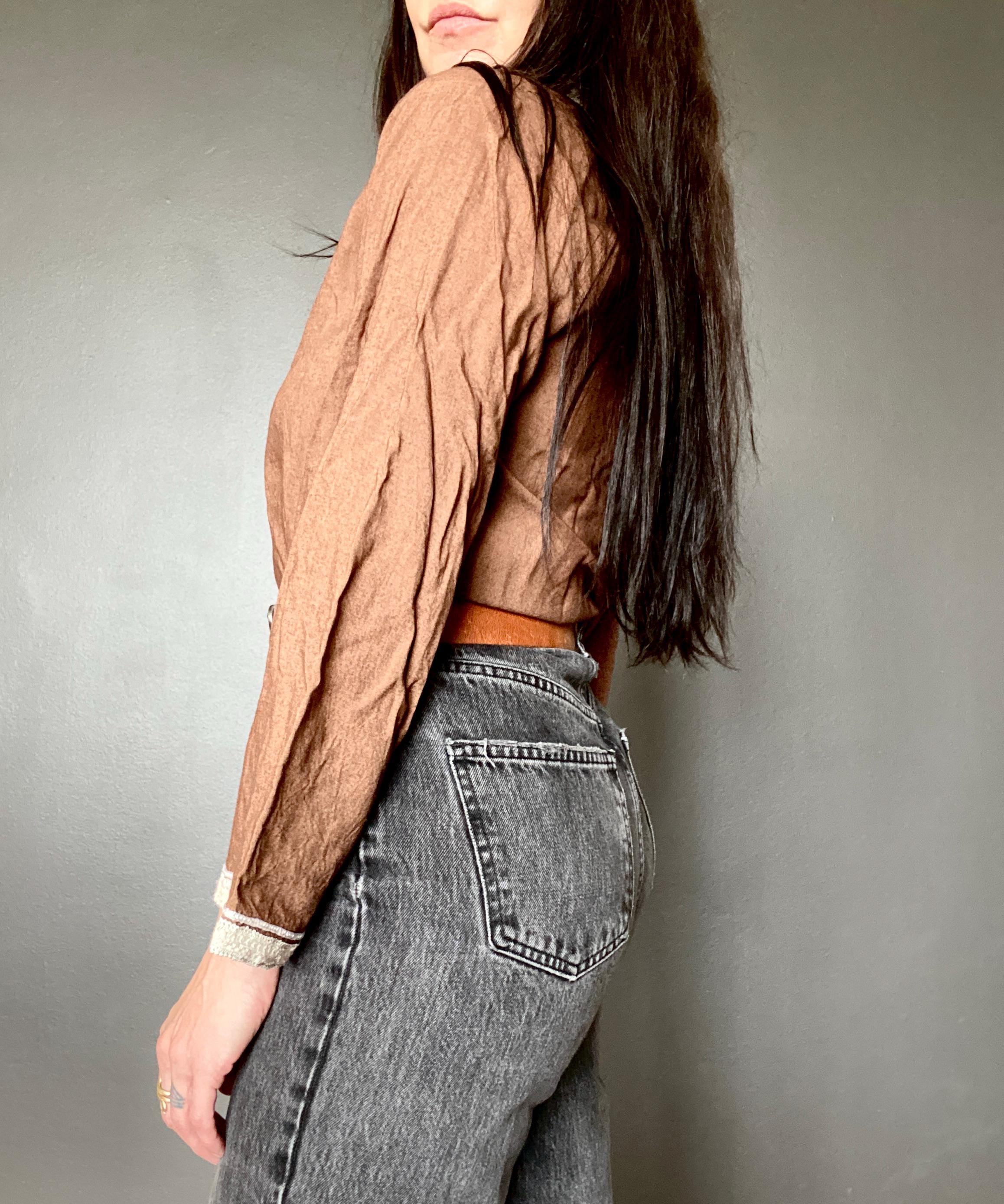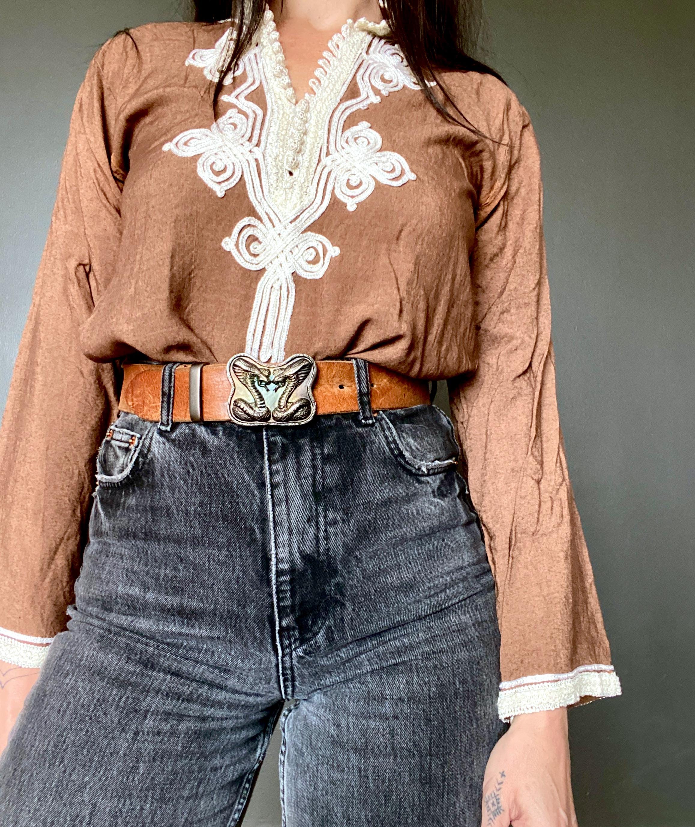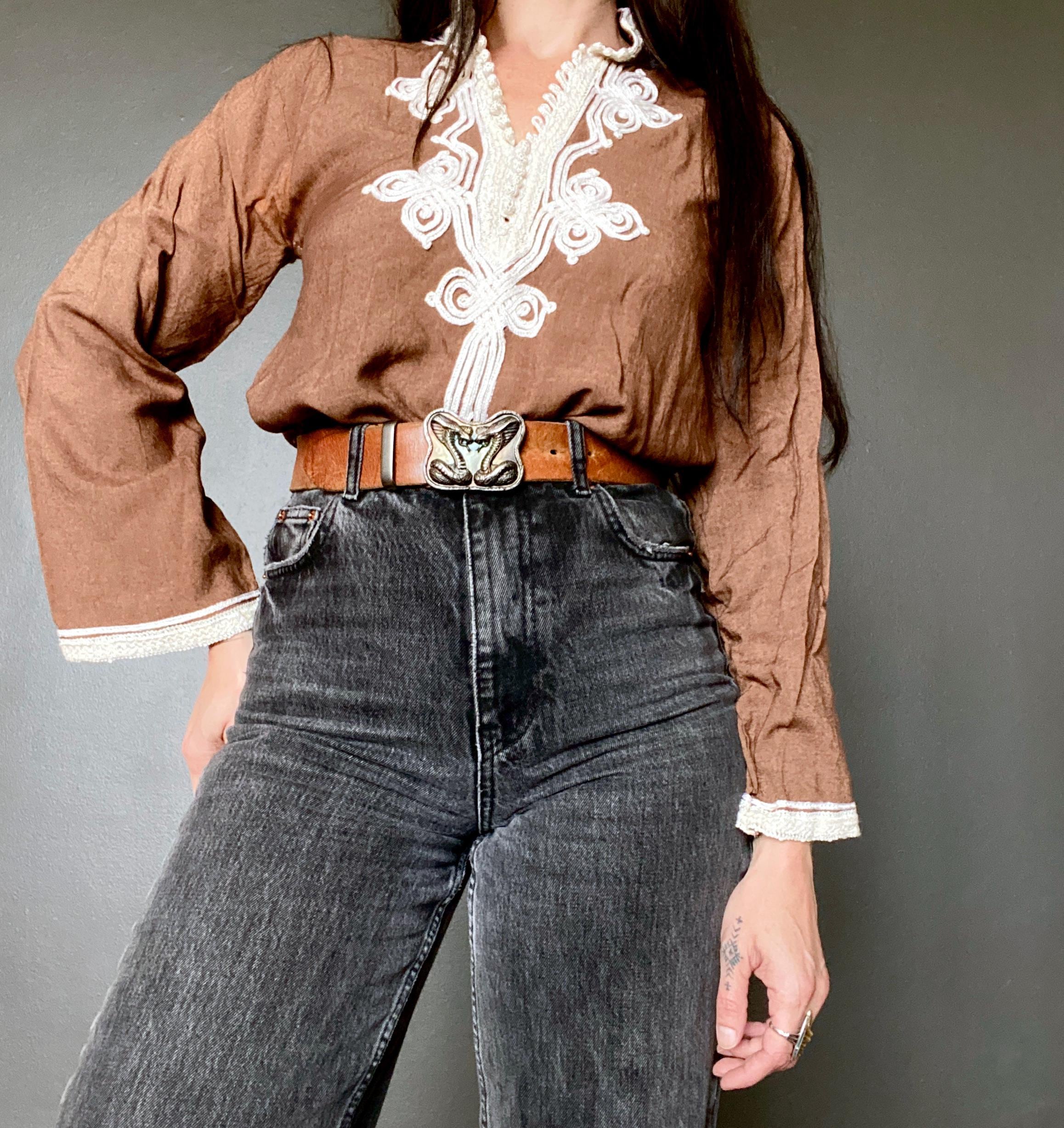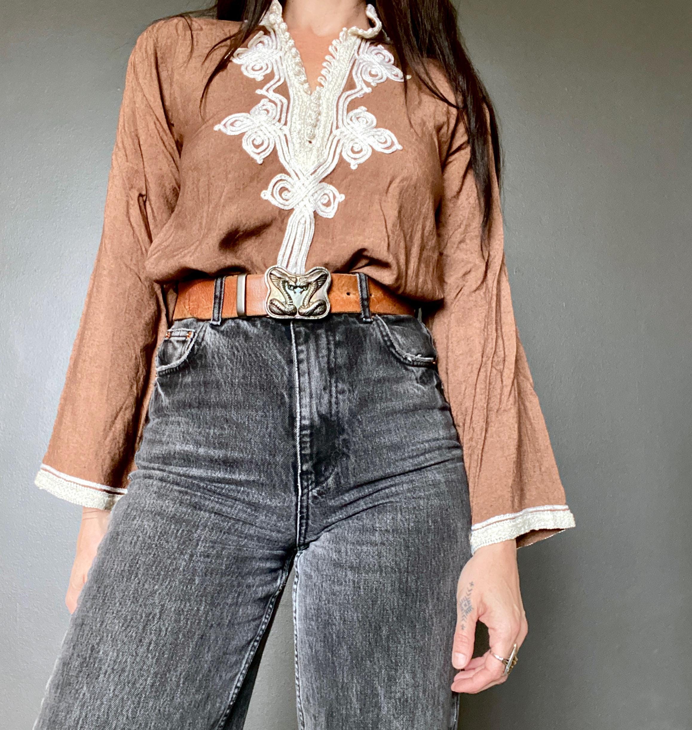 *Used vintage condition. Has some faded staining under the armpits (see picture) and the fabric shows signs of age and wear. It is still a beautiful shirt though if you don't mind the semi flawed vintage-look