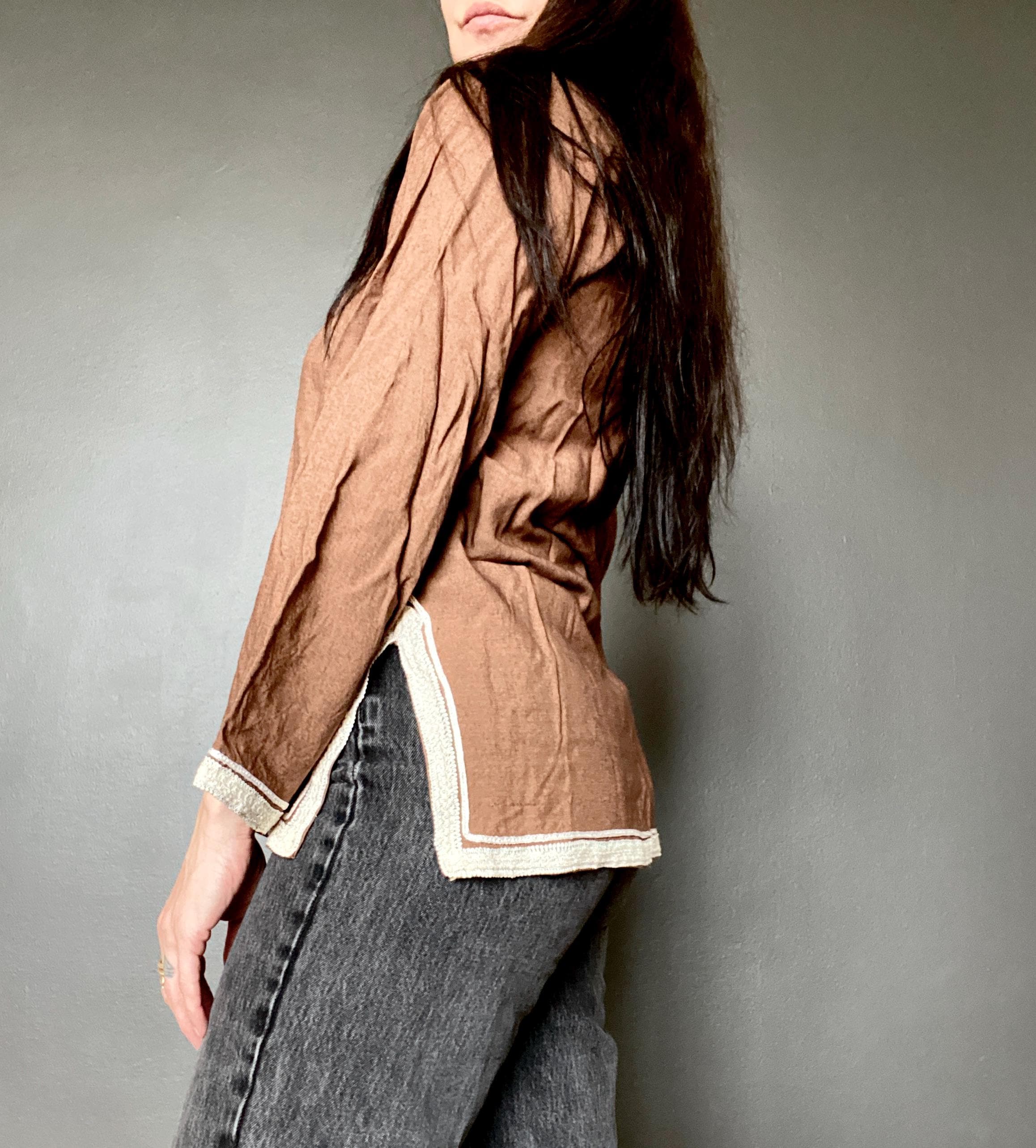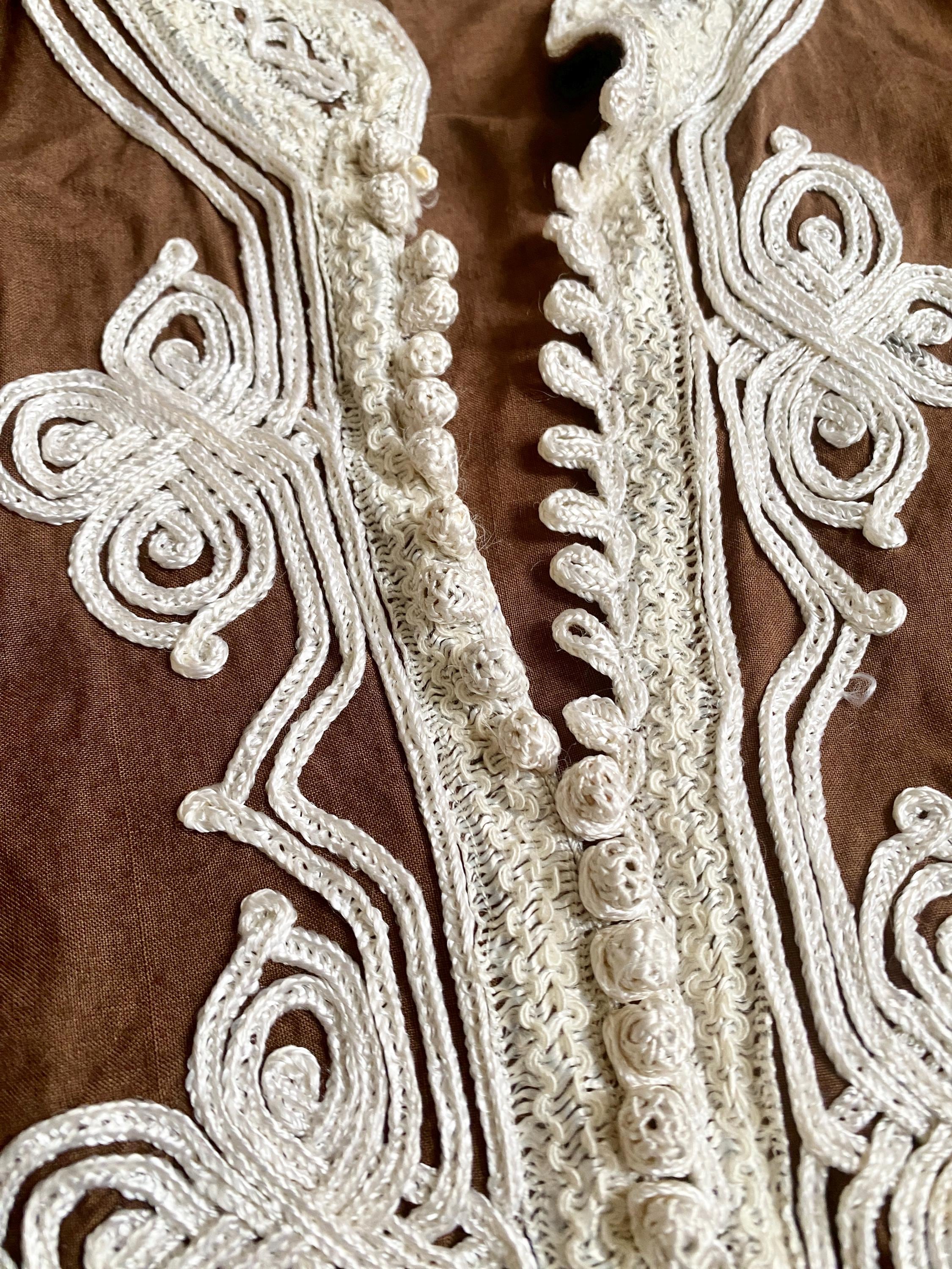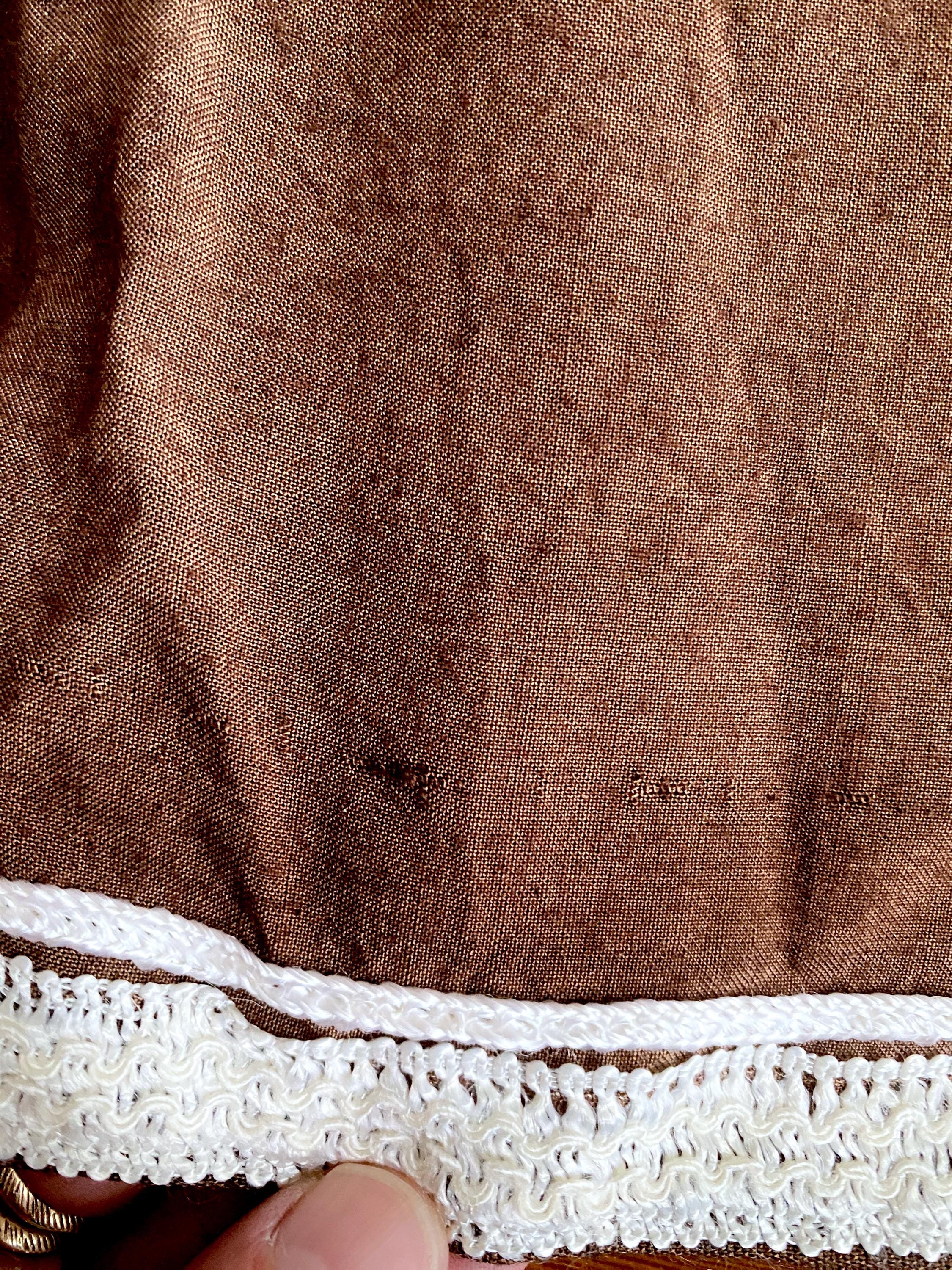 *Chocolate brown cotton fabric with white ribbon embroidery.