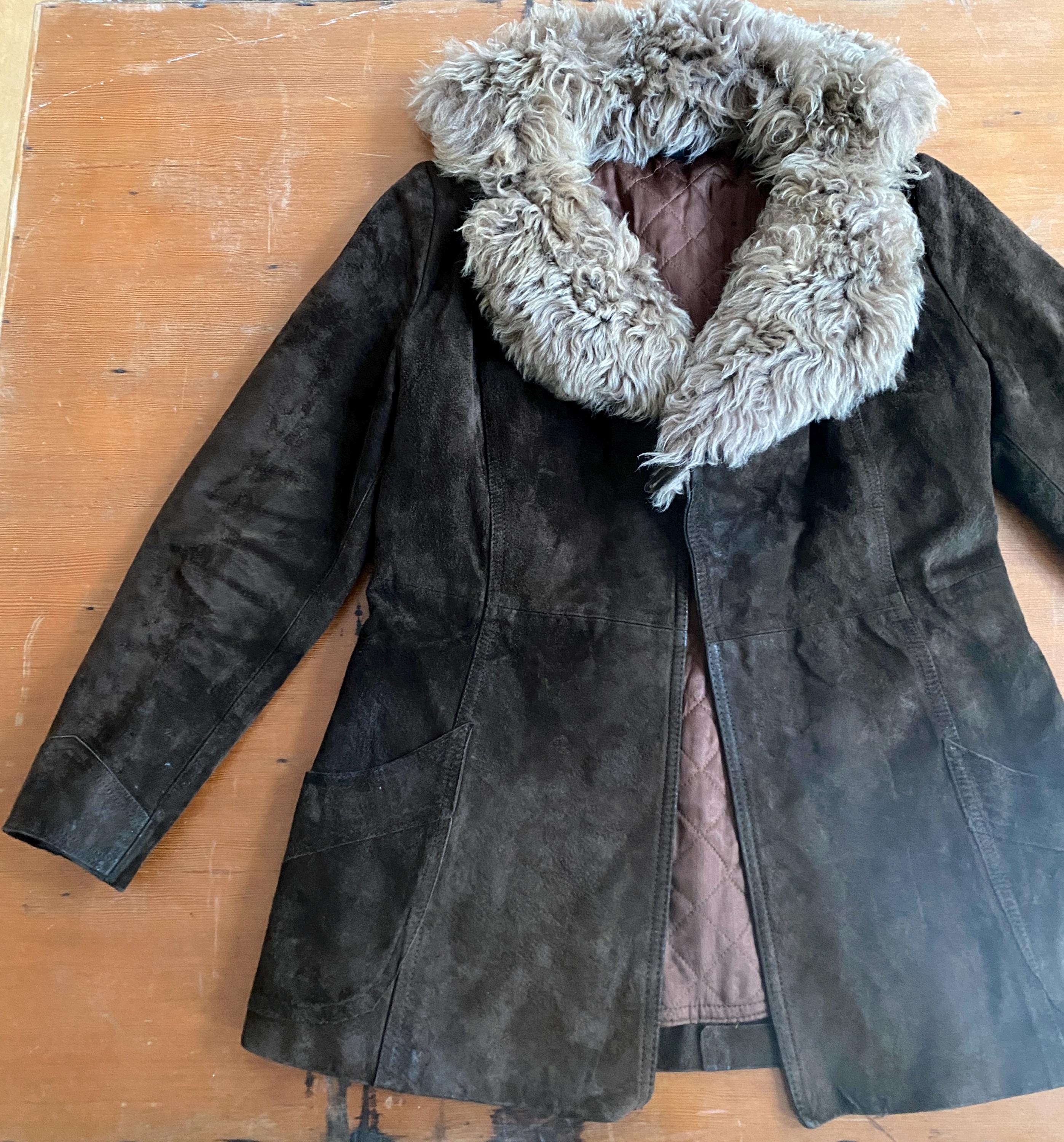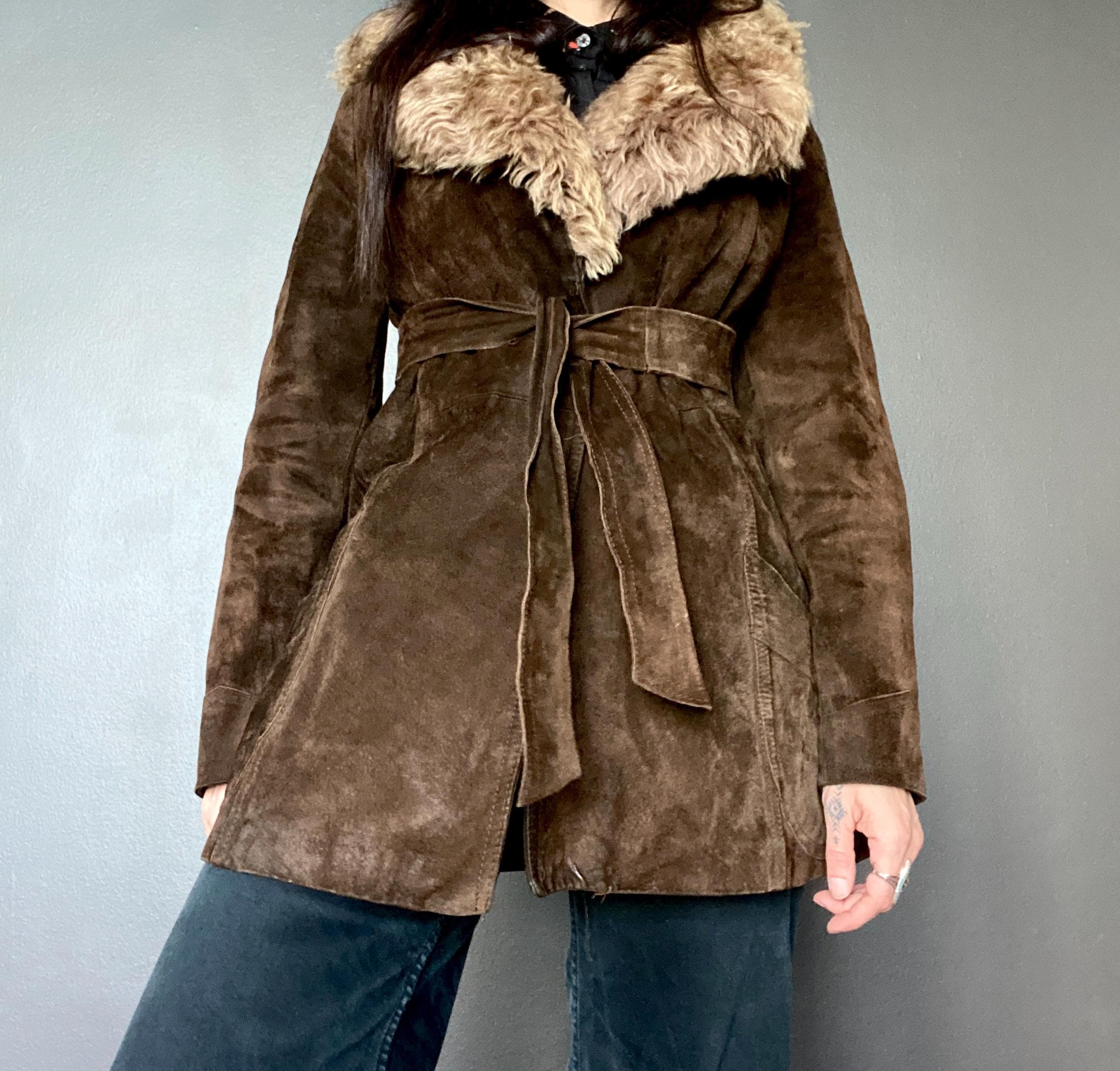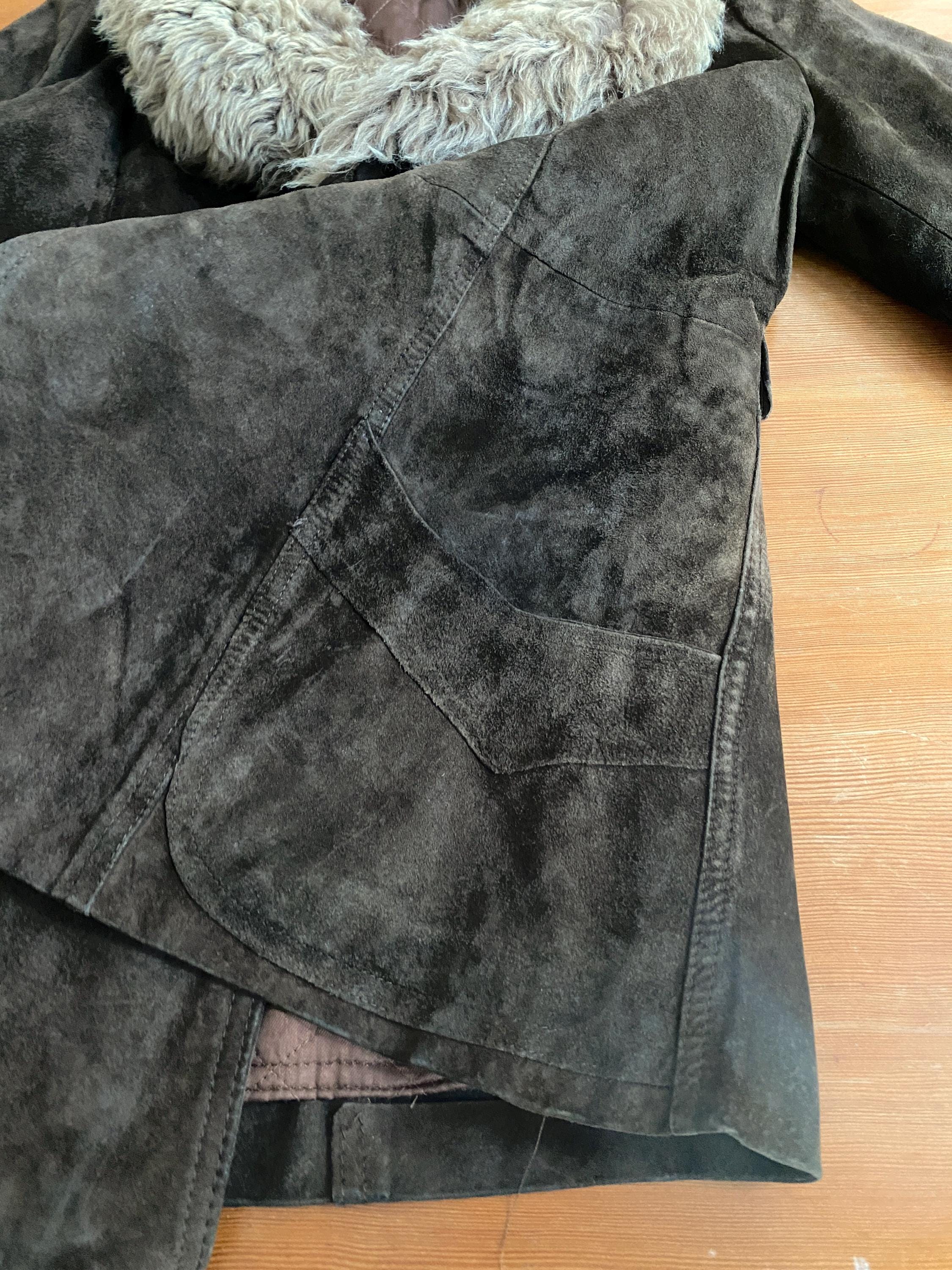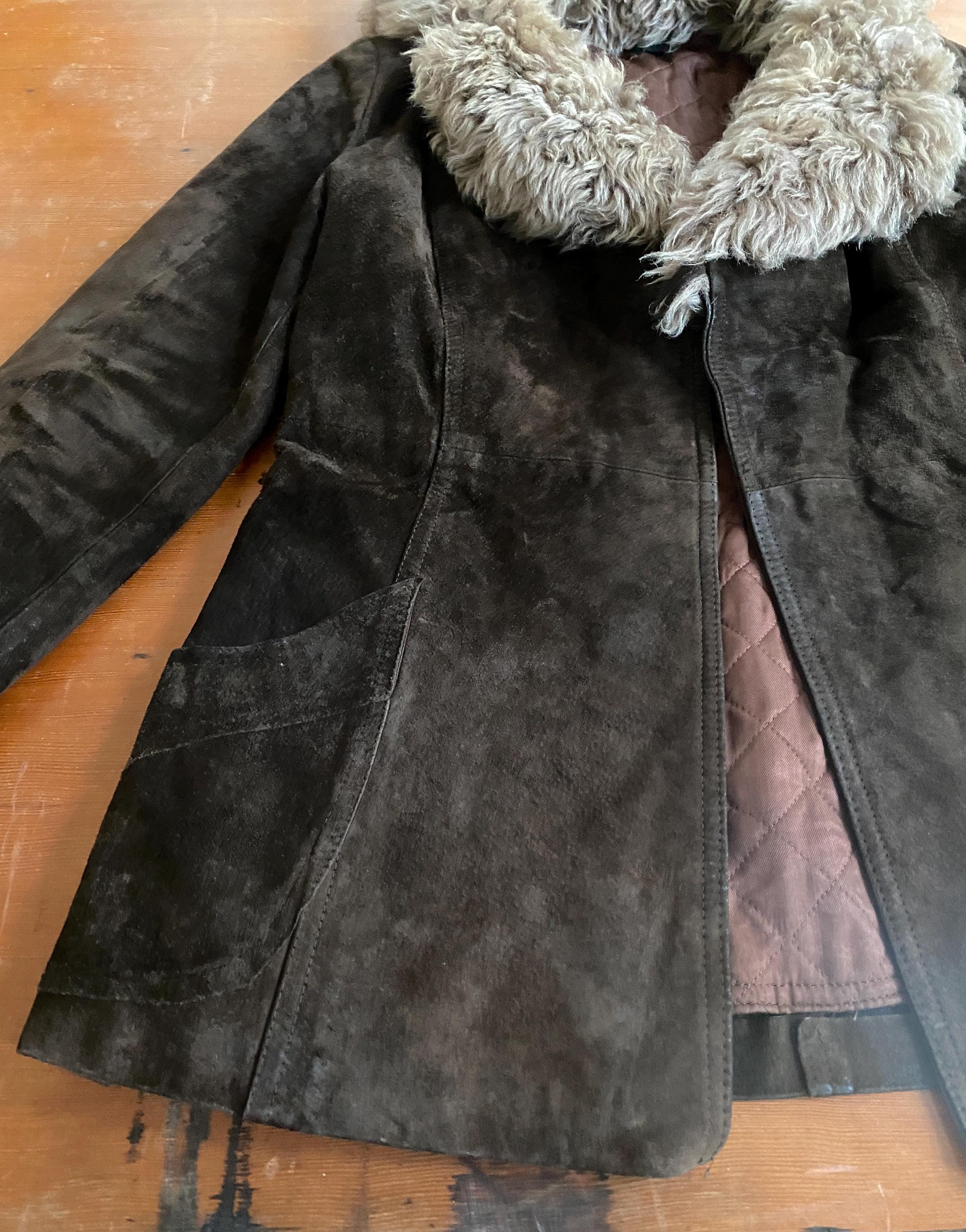 FABRIC: Suede & and synthetic lining. Faux fur collar