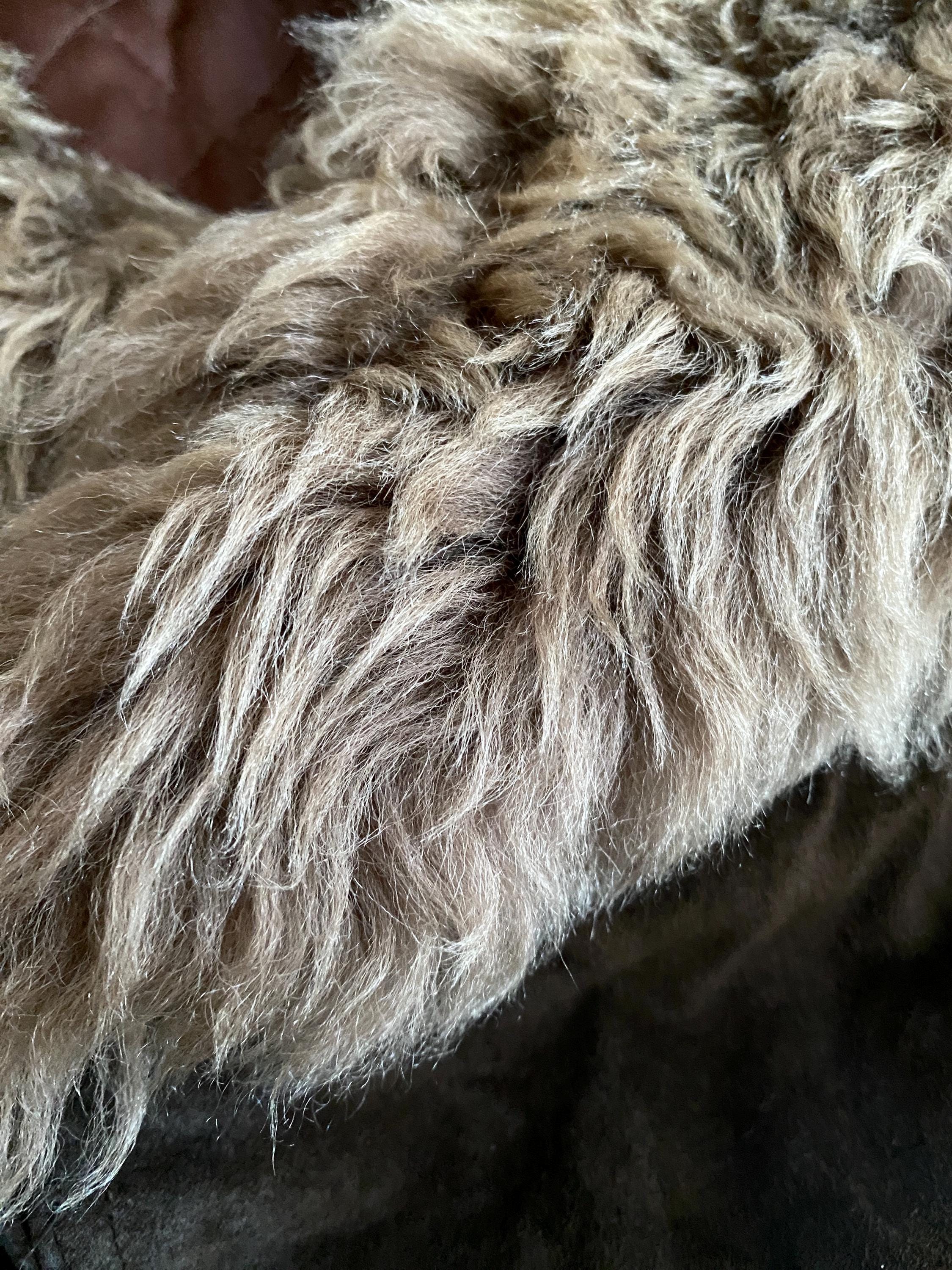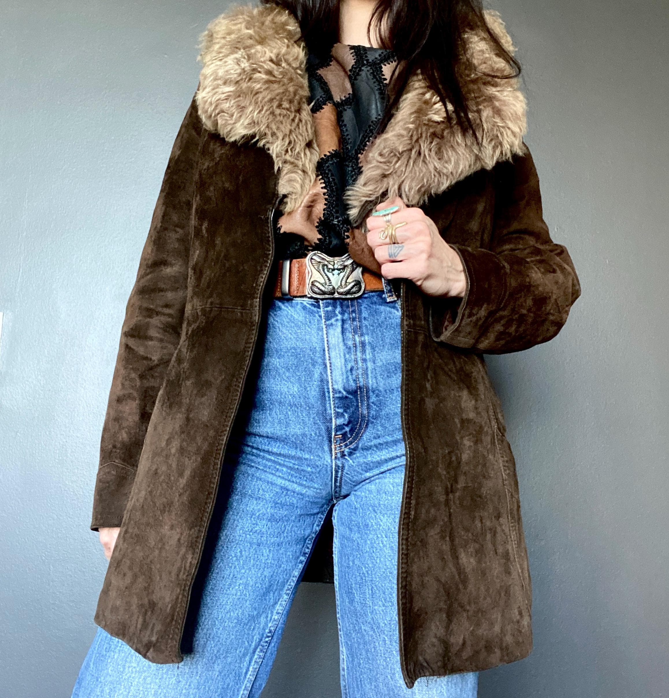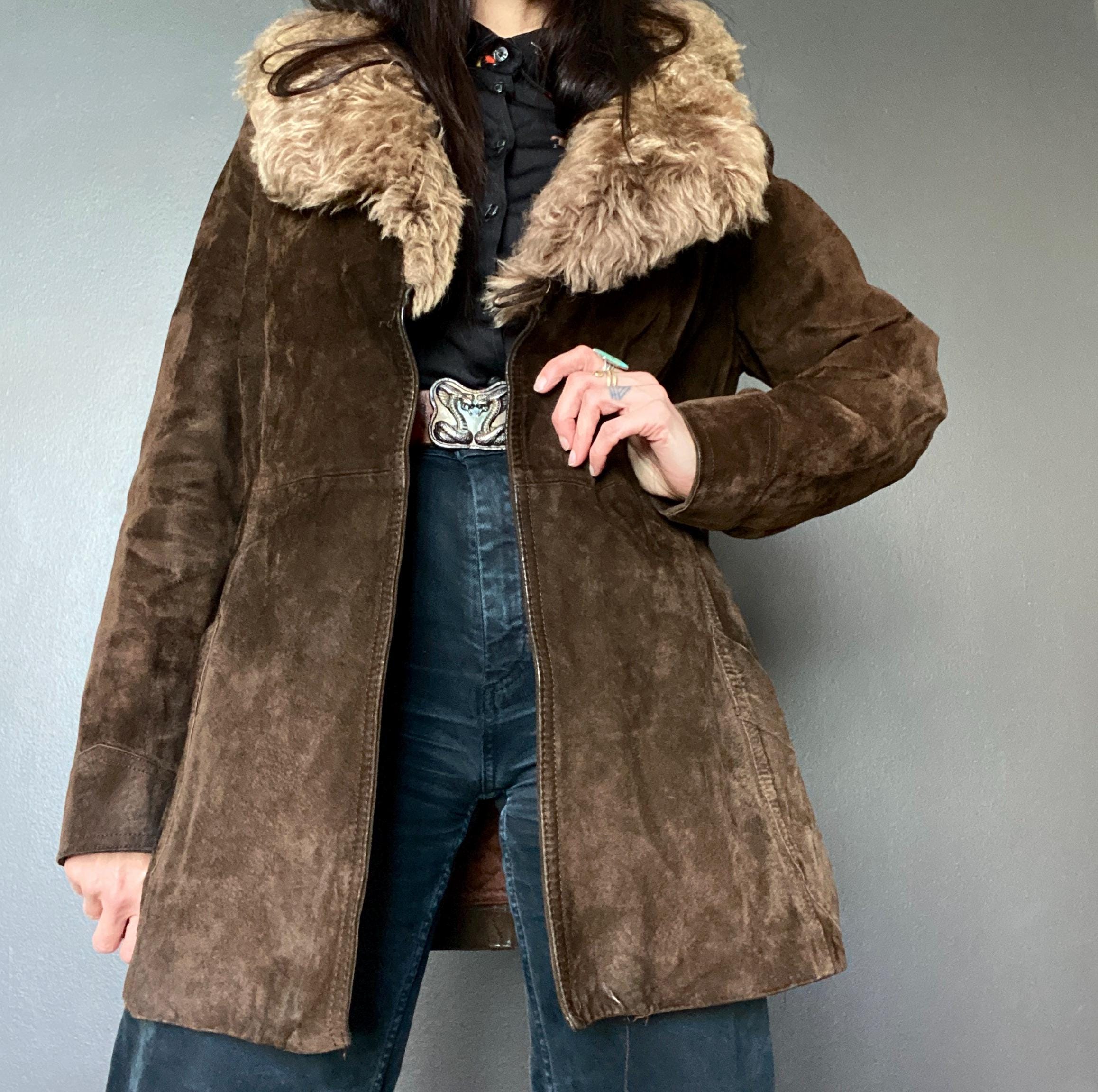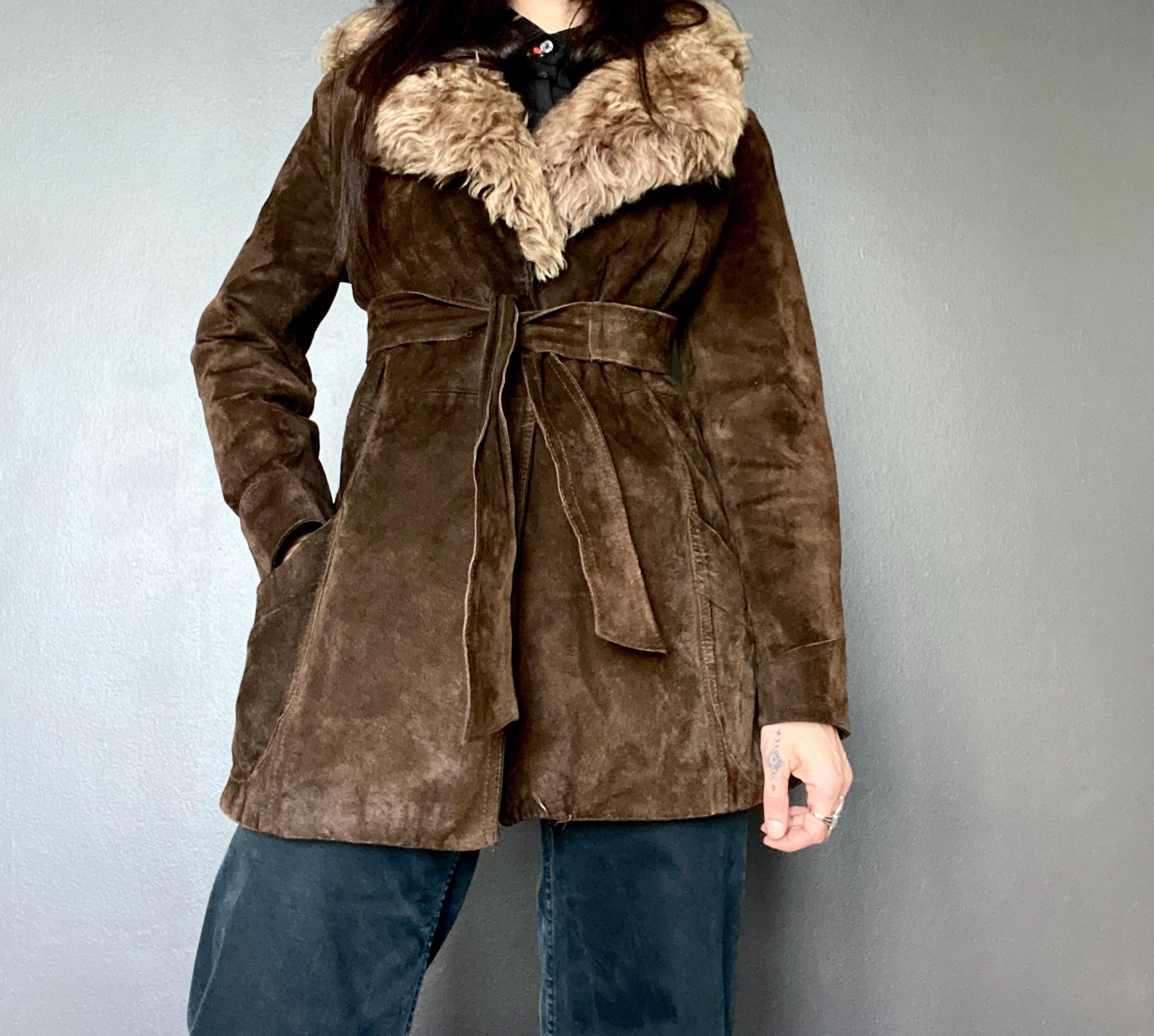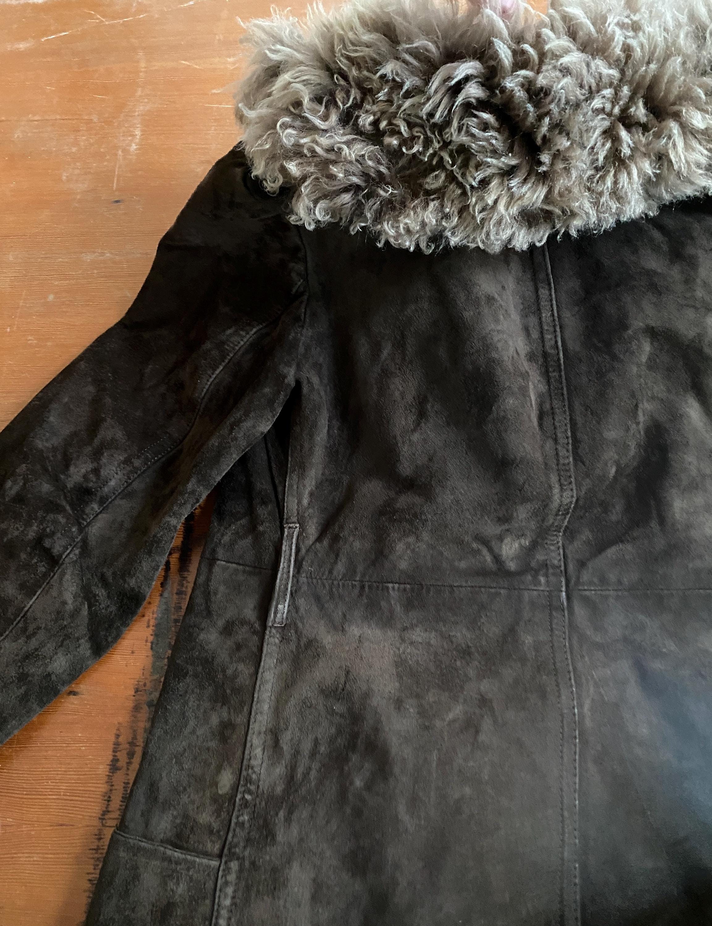 FABRIC: Suede & and synthetic lining. Faux fur collar