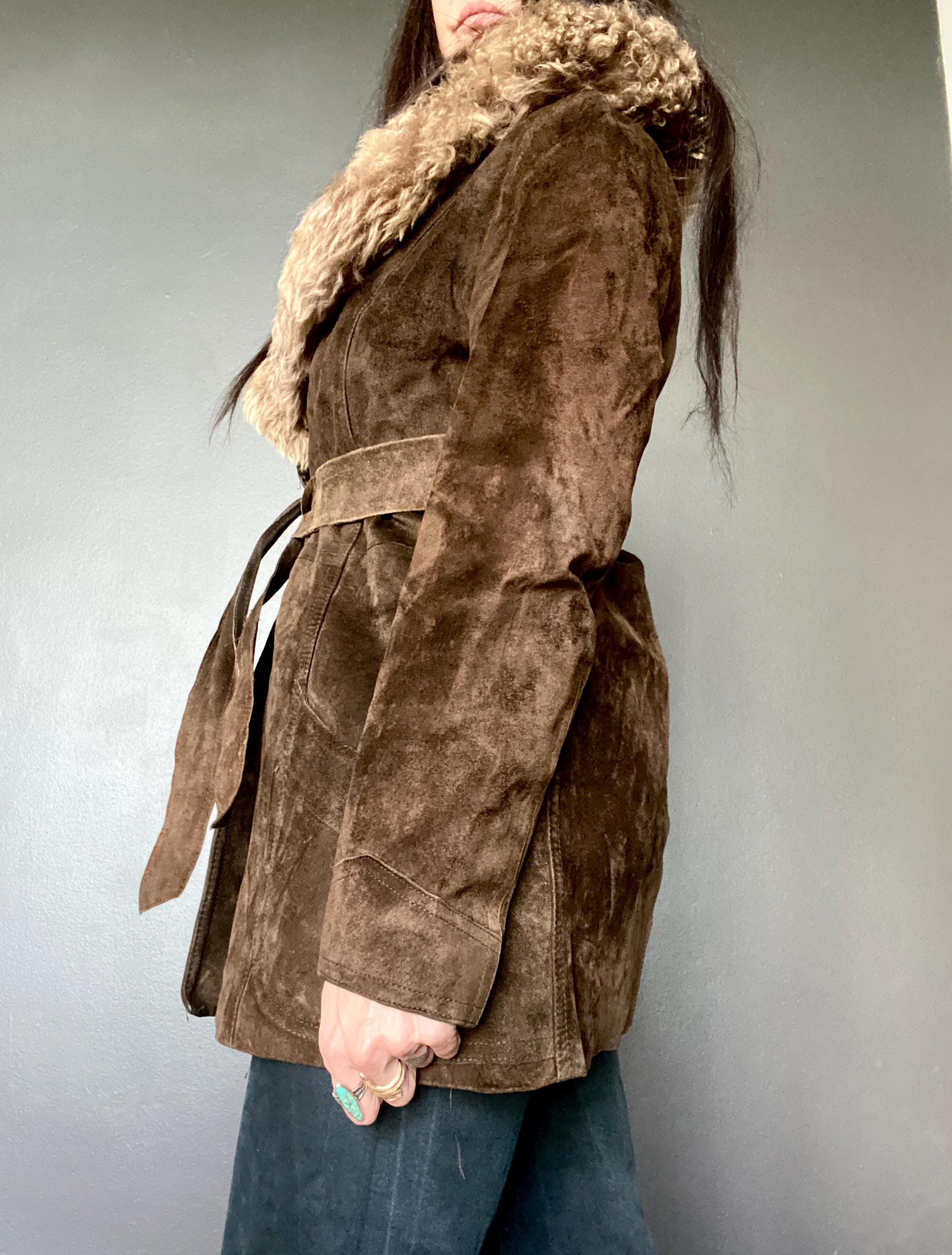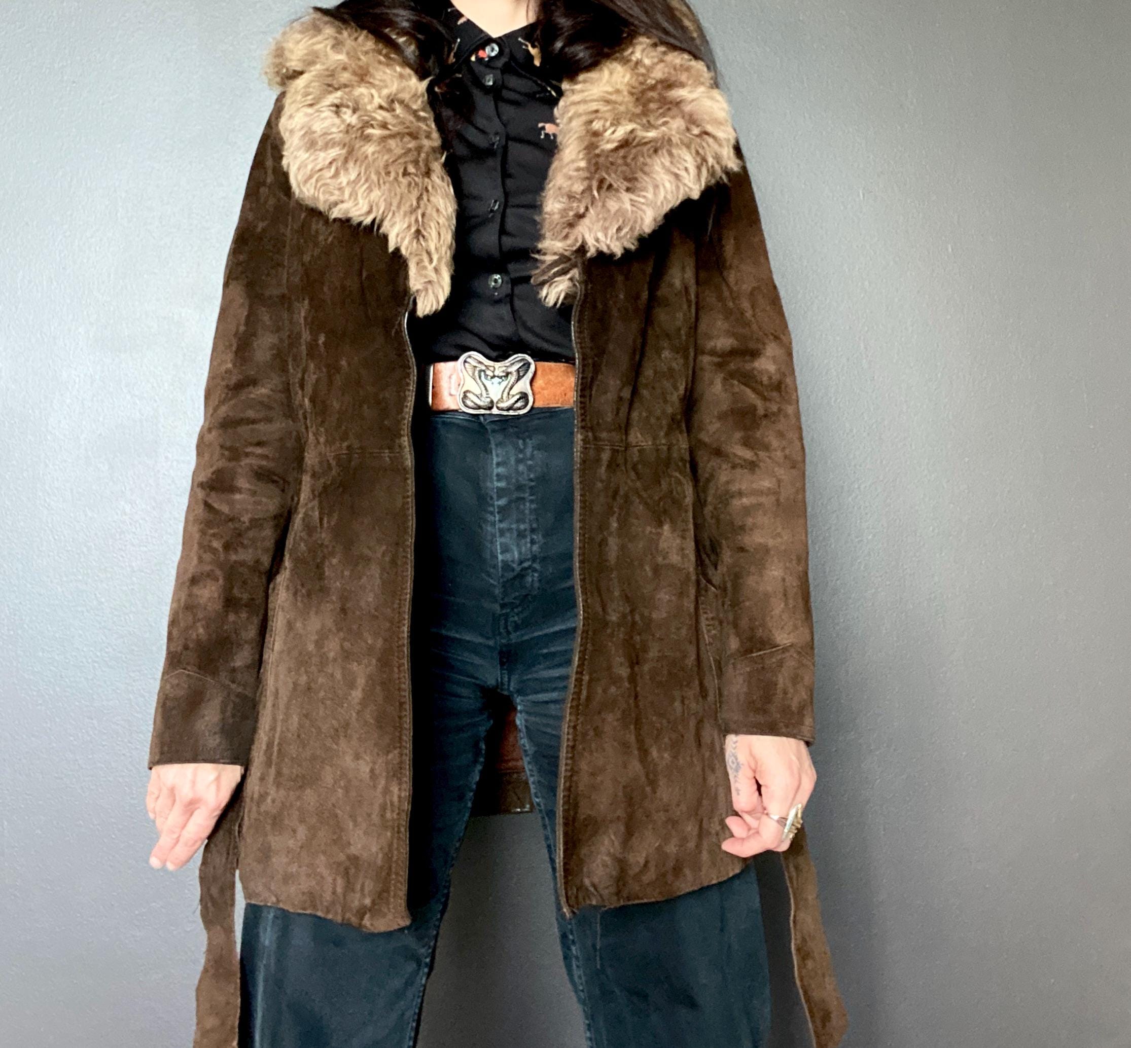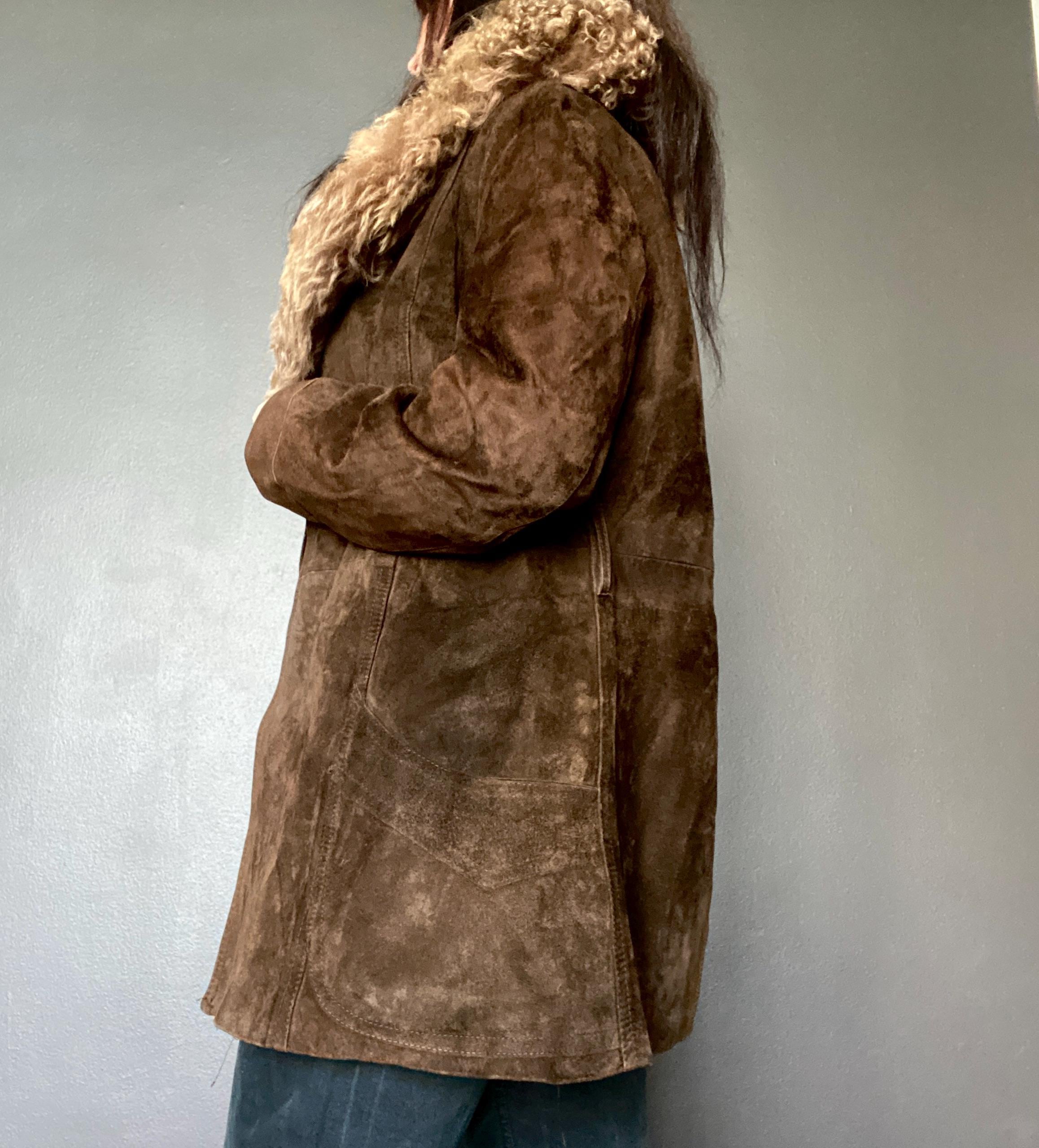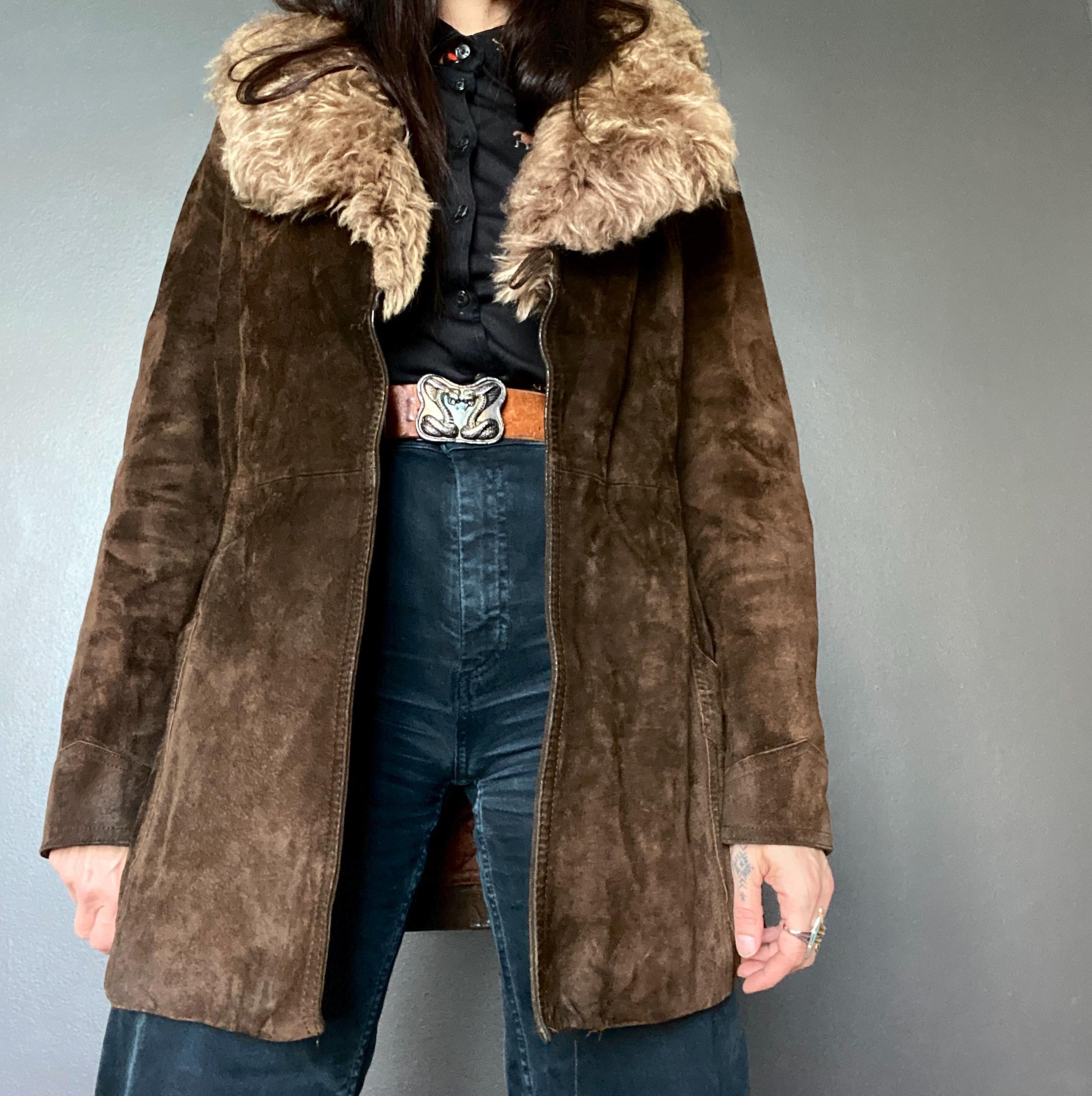 FABRIC: Suede & and synthetic lining. Faux fur collar