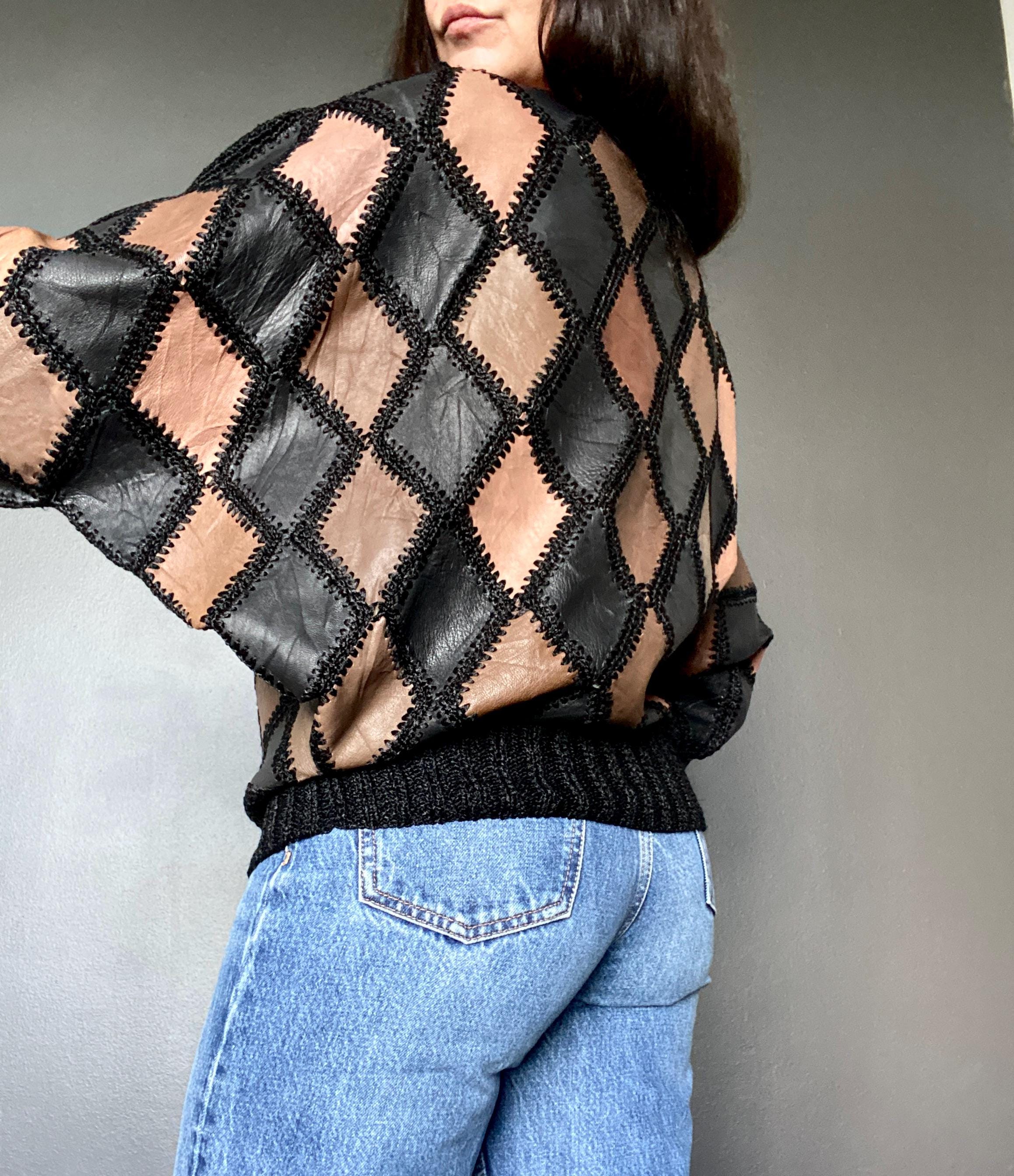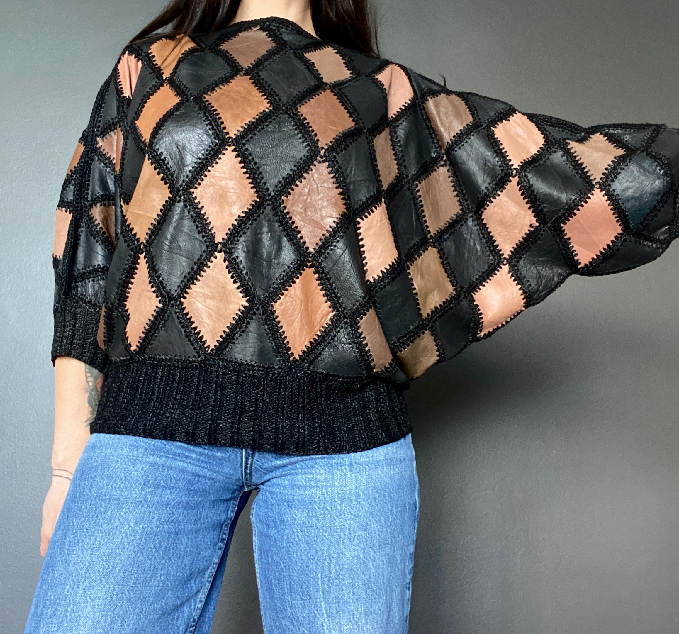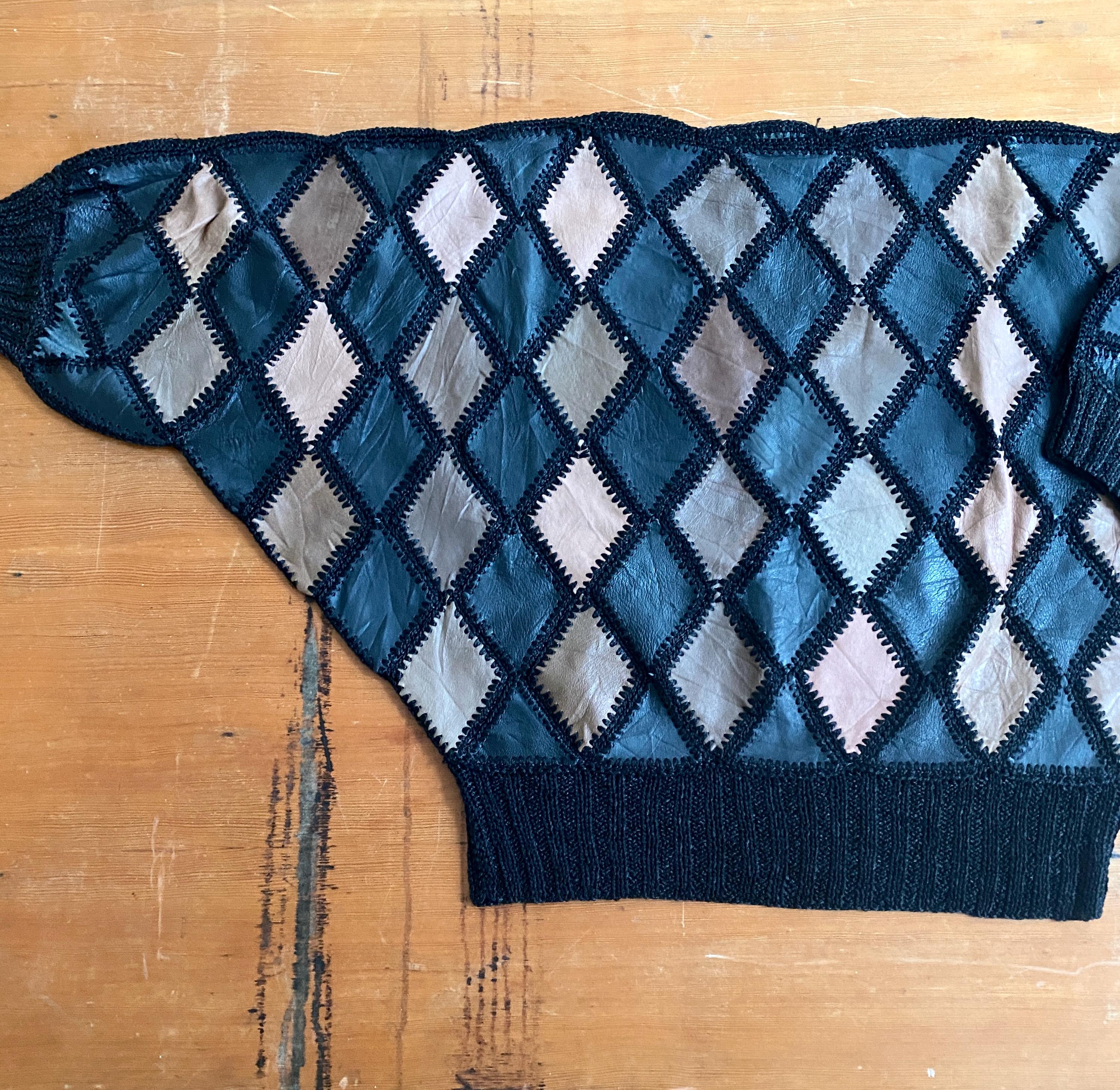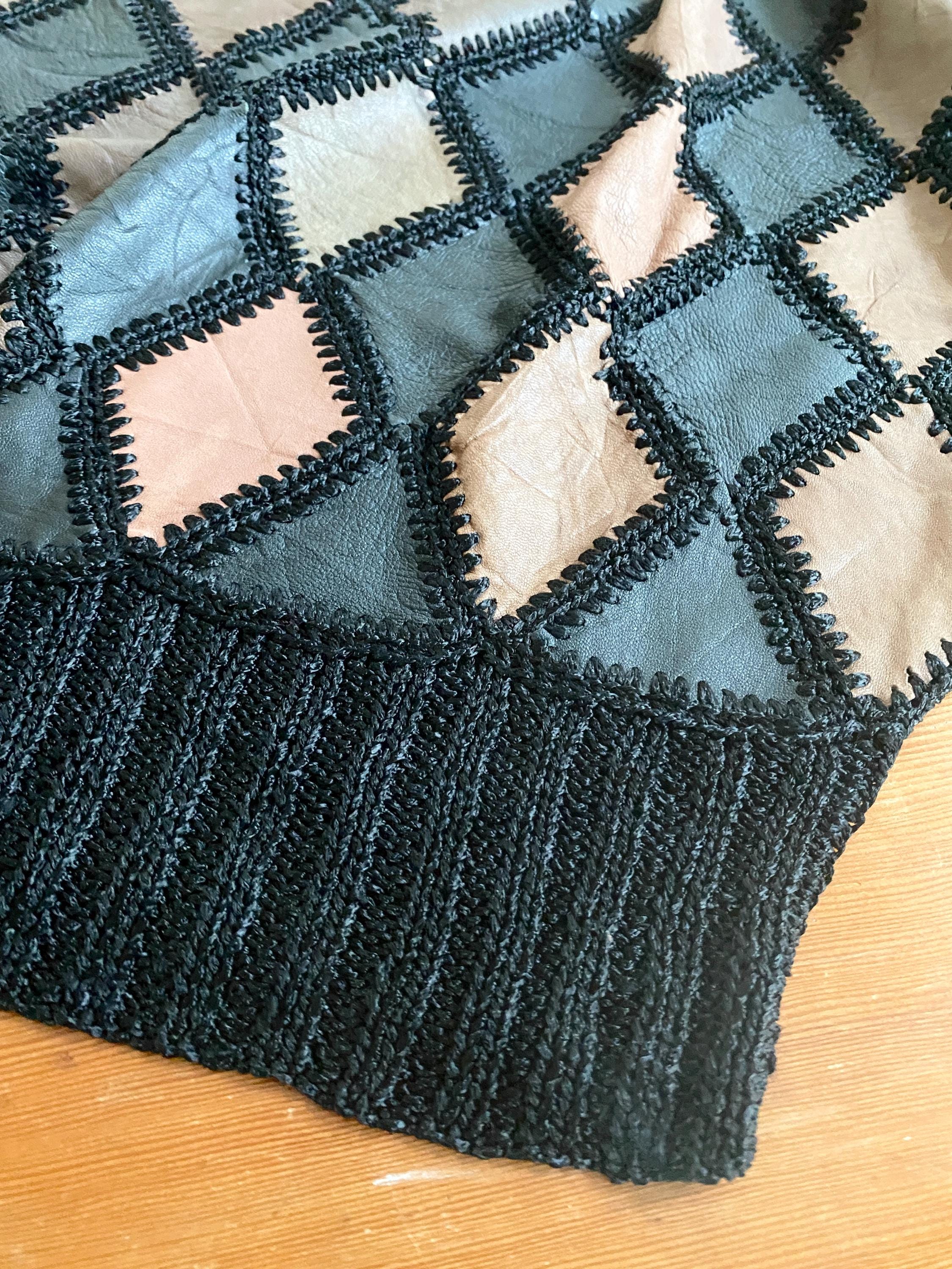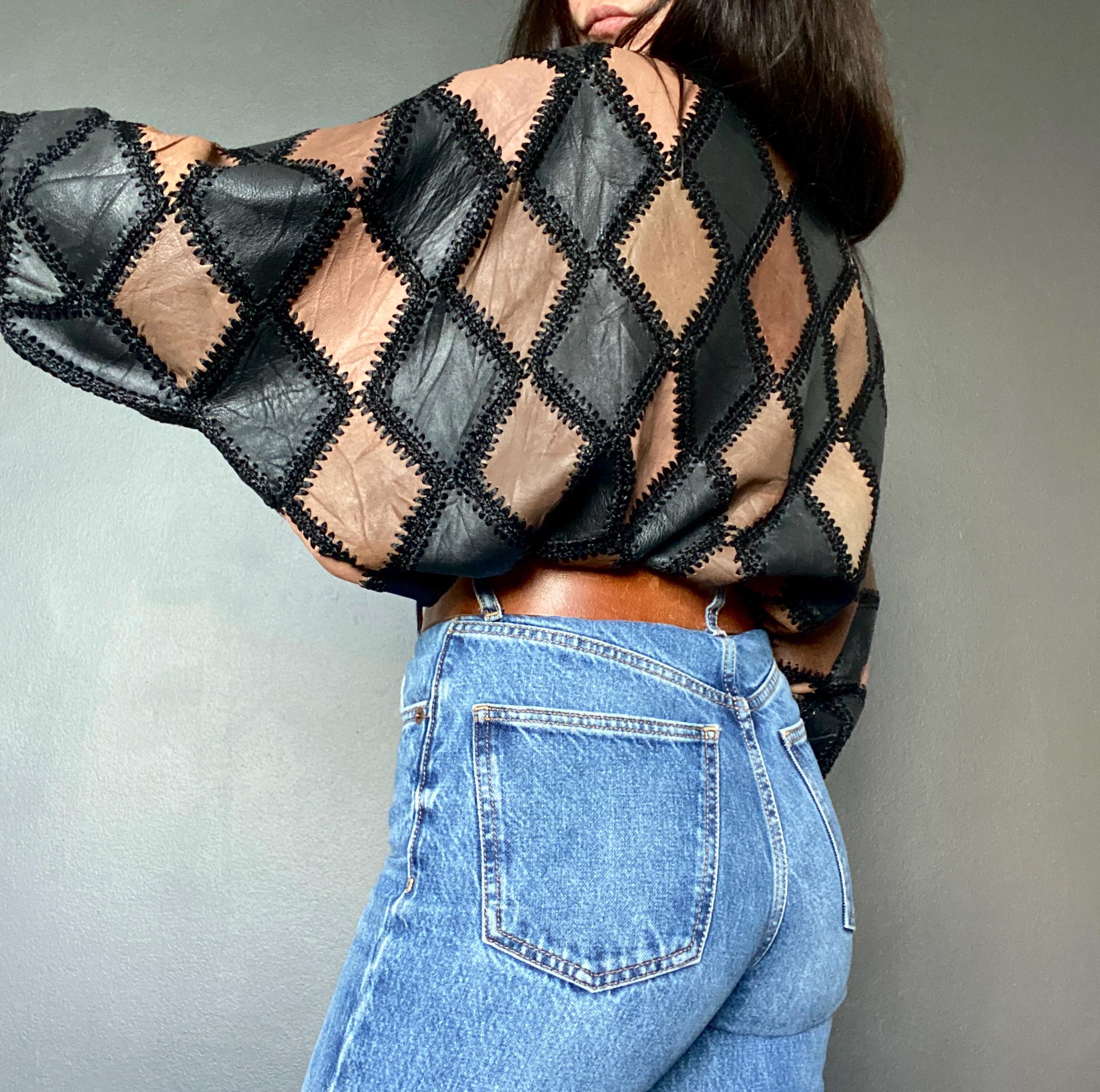 1970s crochet & leather patchwork blouse