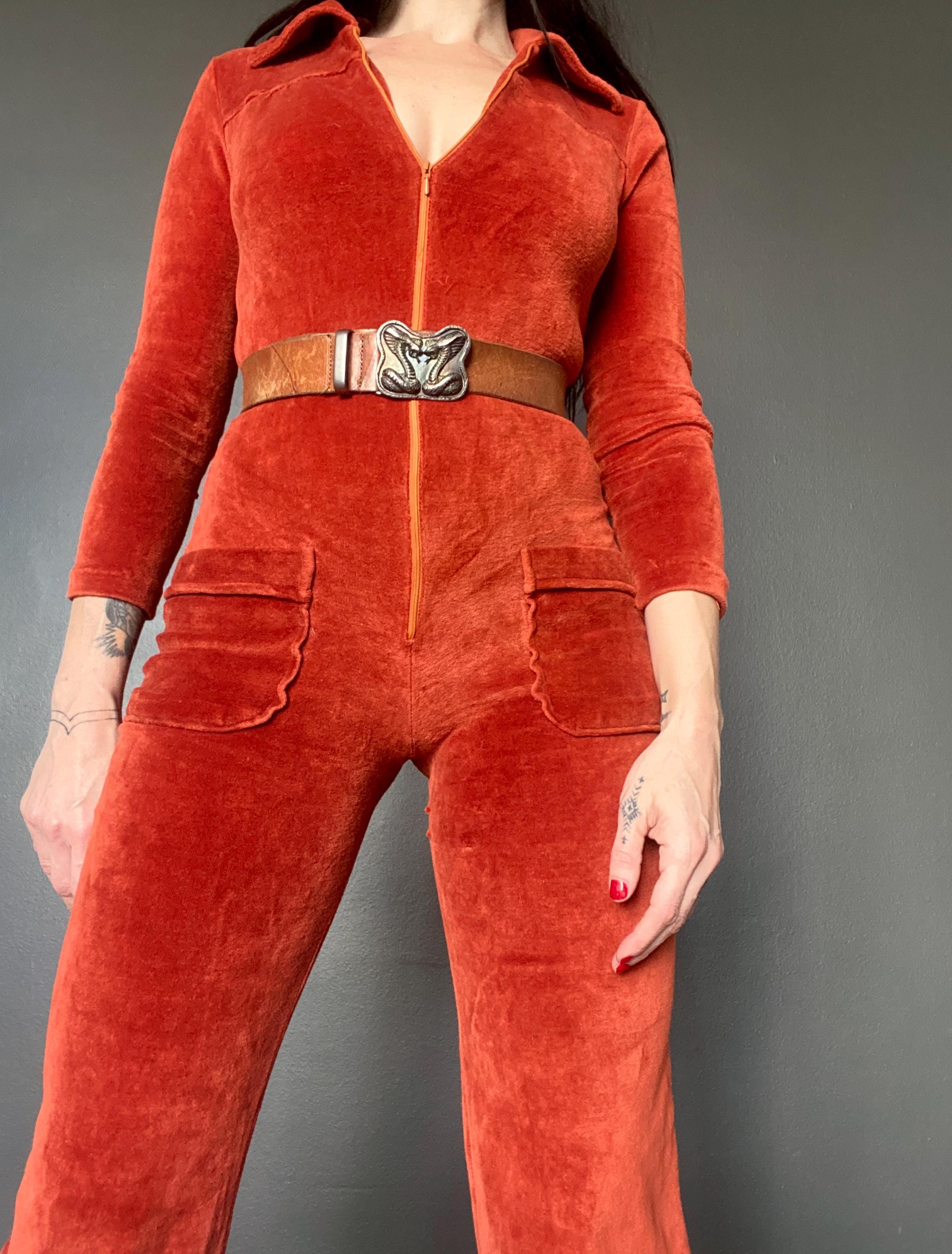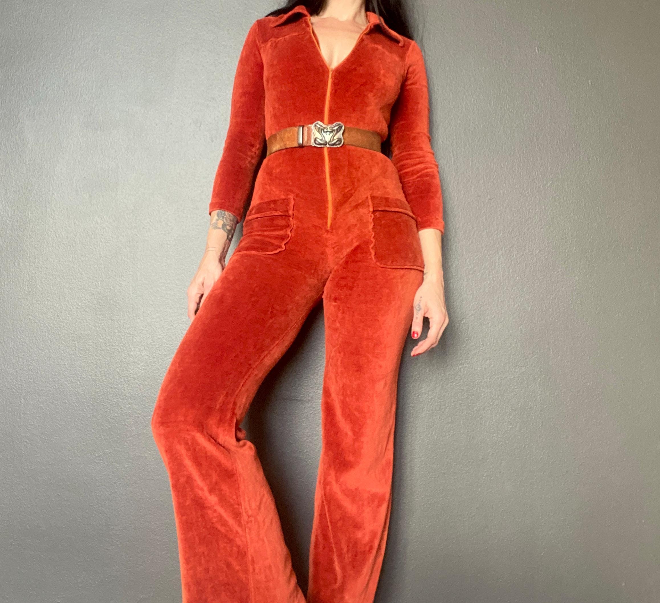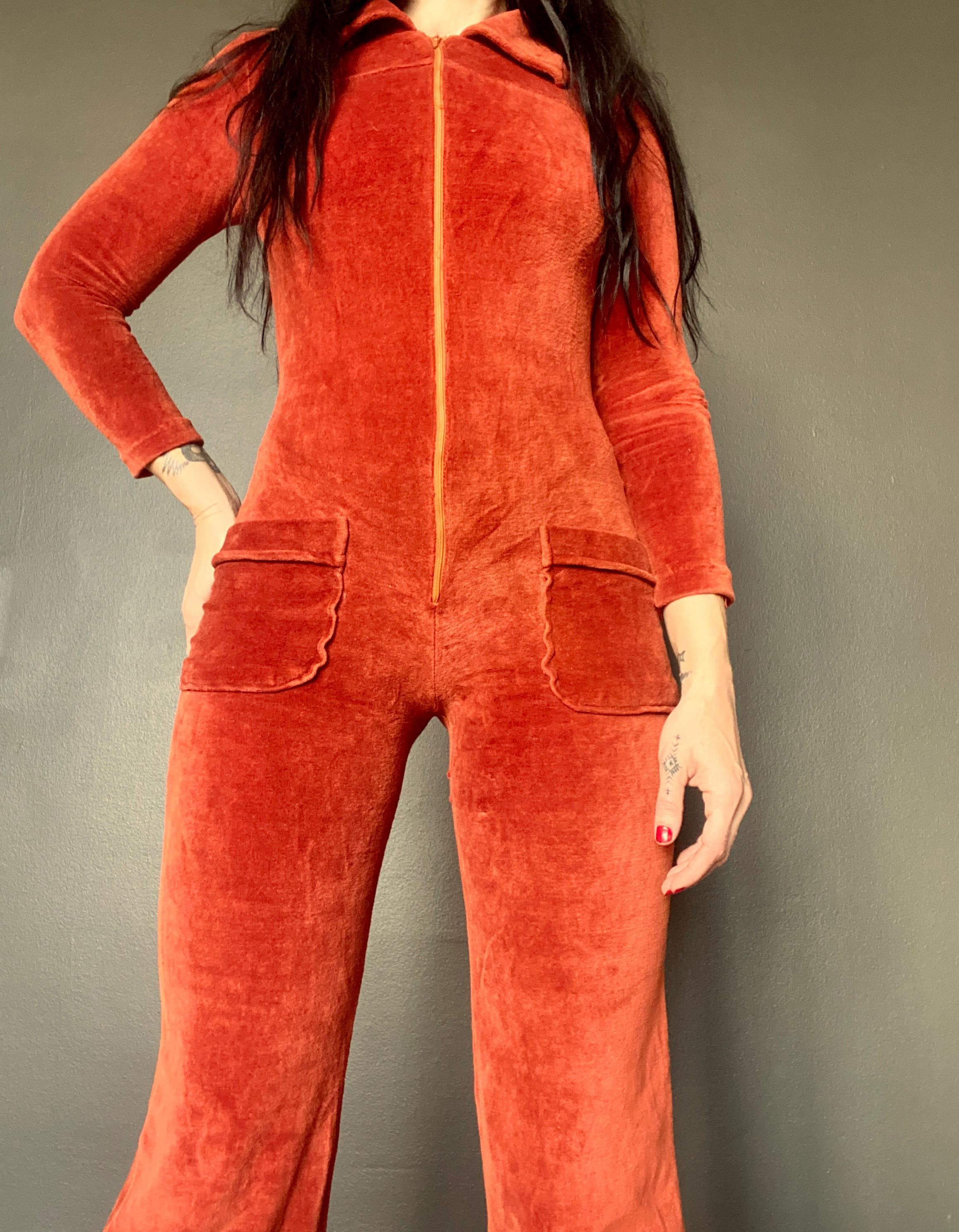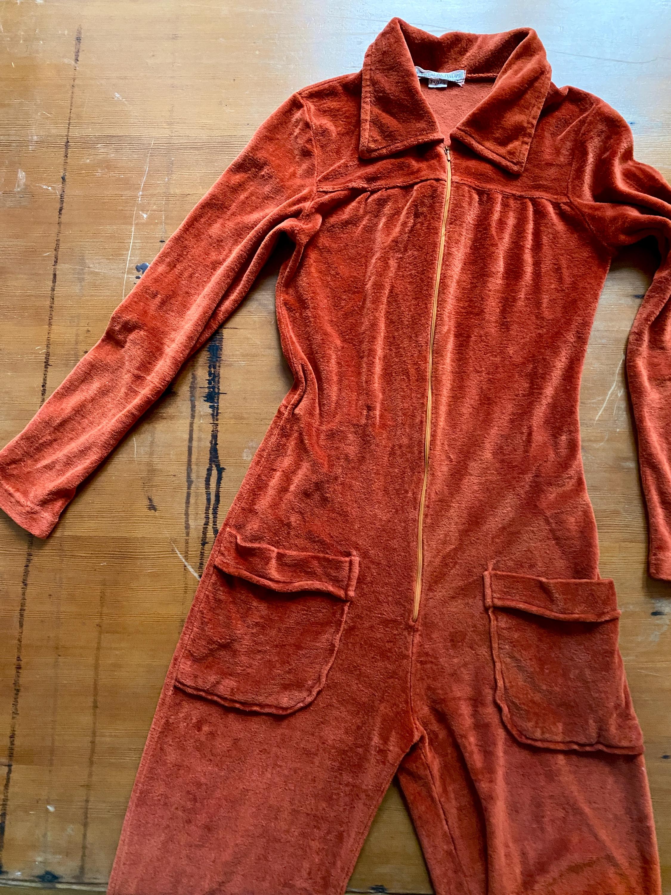 1970s rusty orange velvet jumpsuit