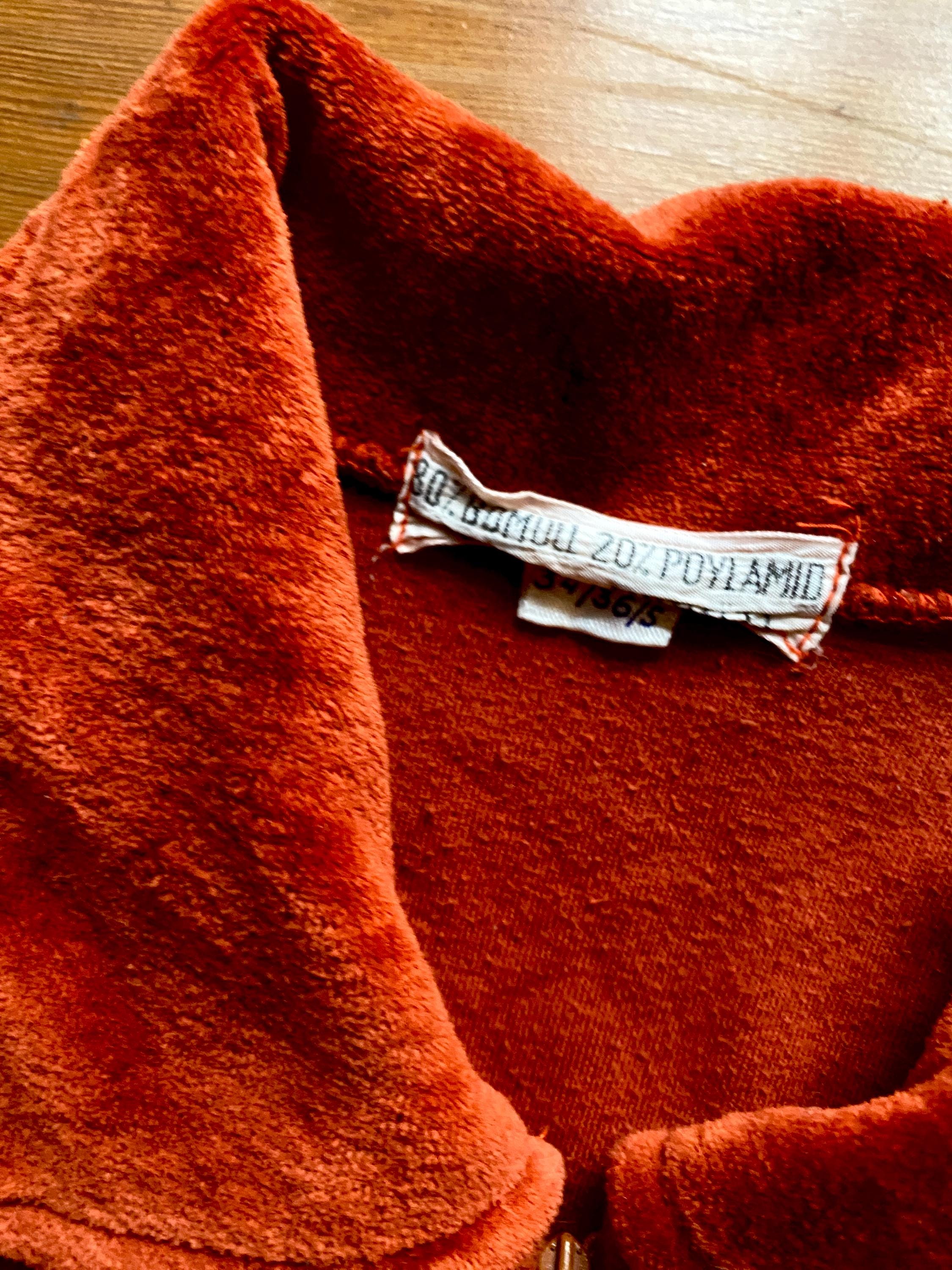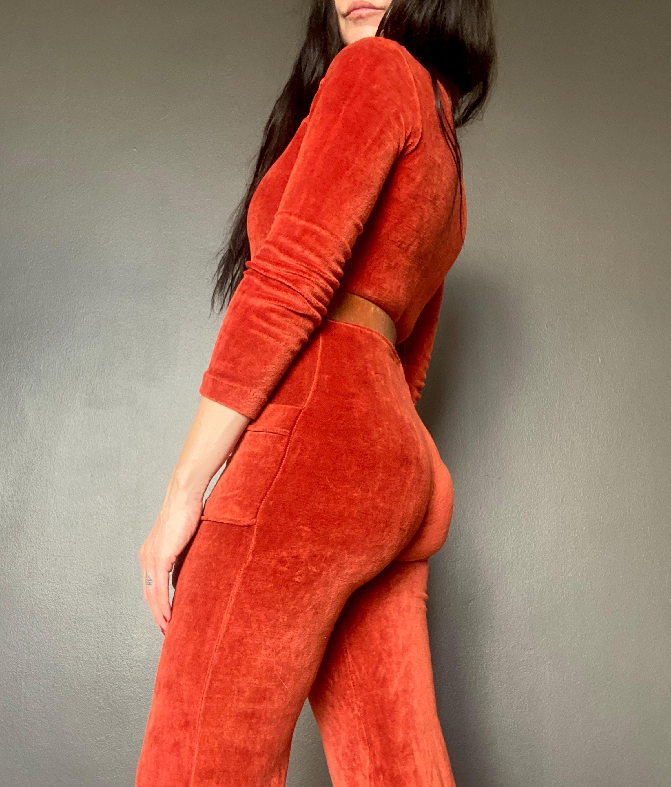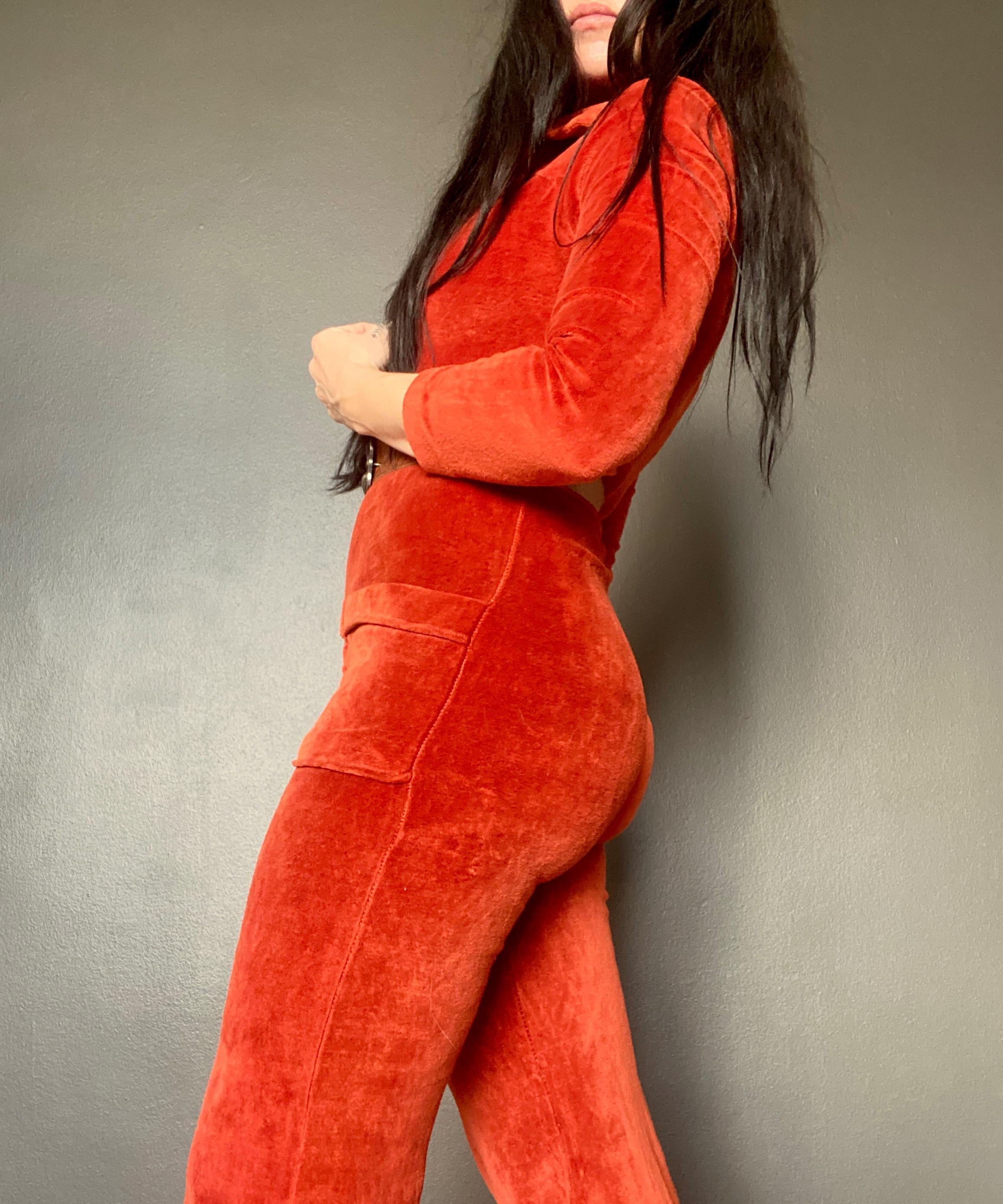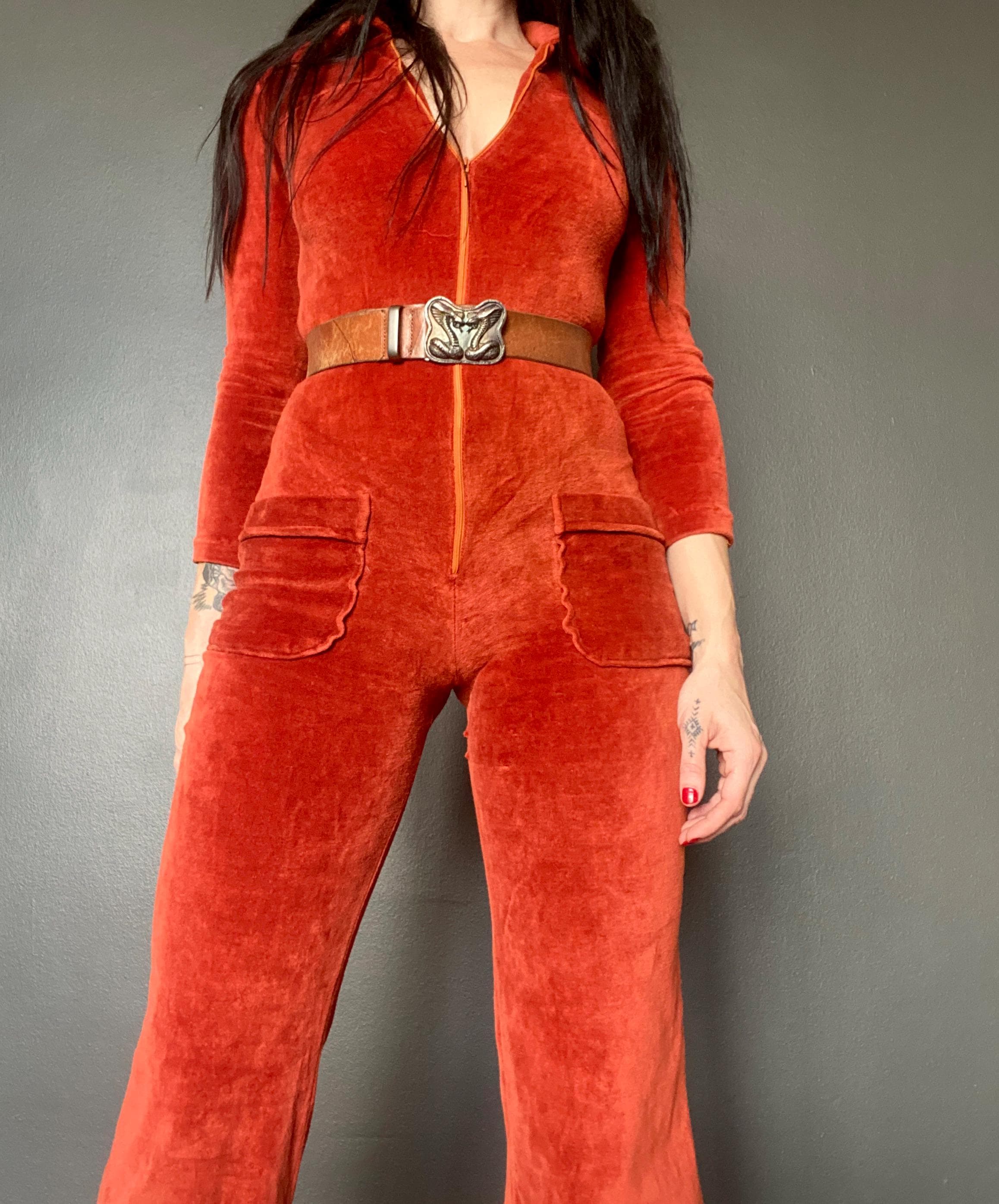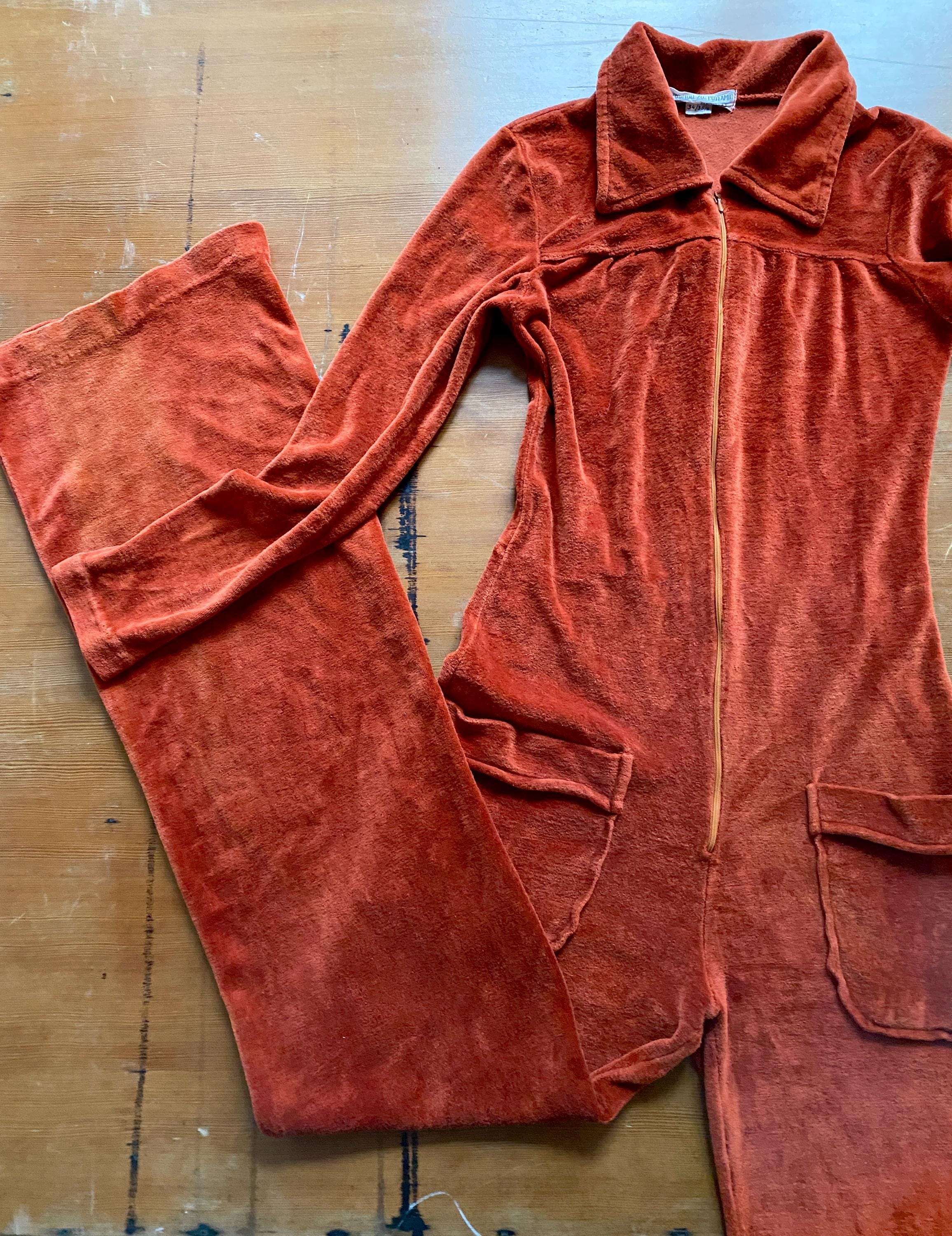 1970s rusty orange velvet jumpsuit