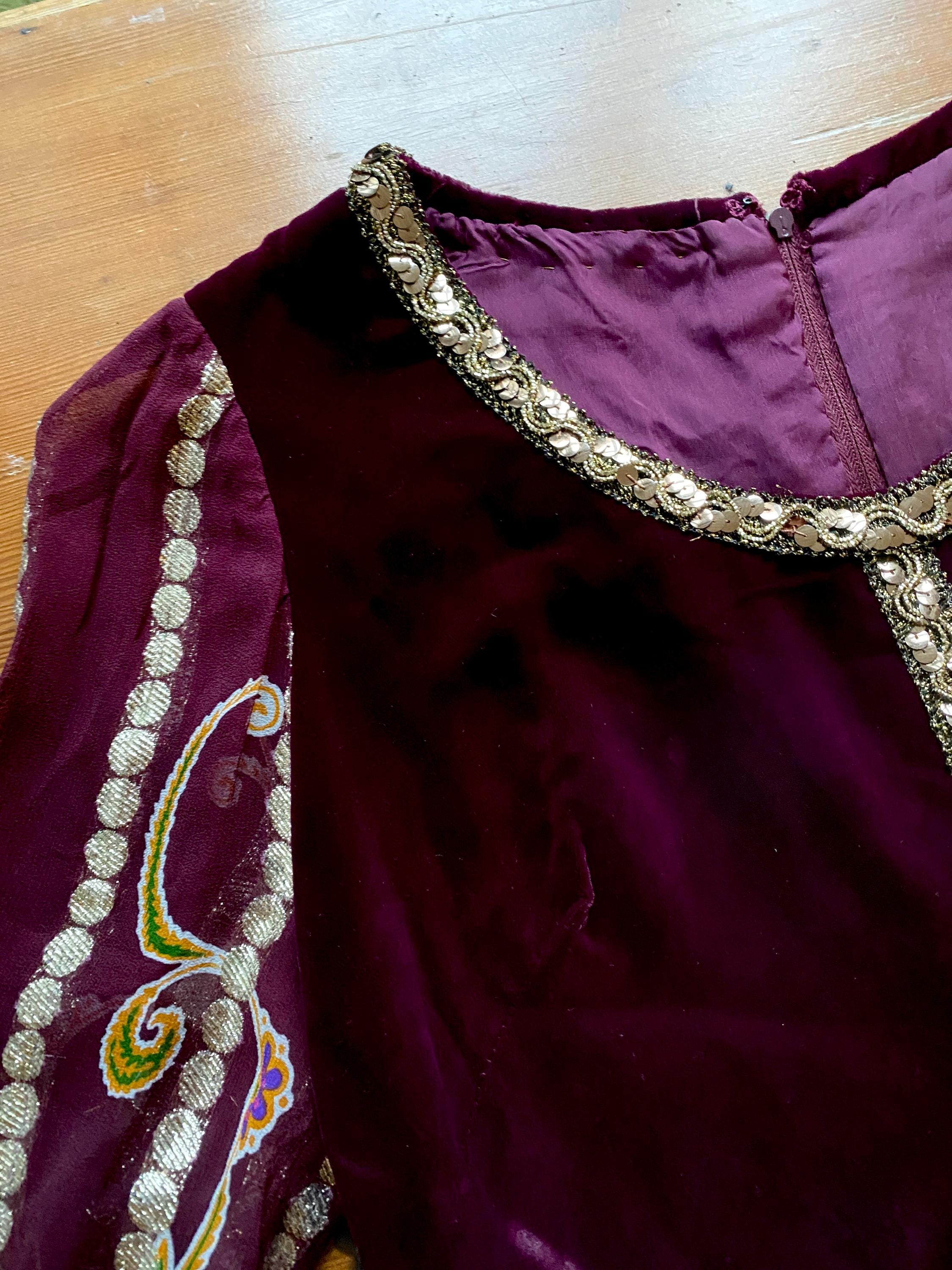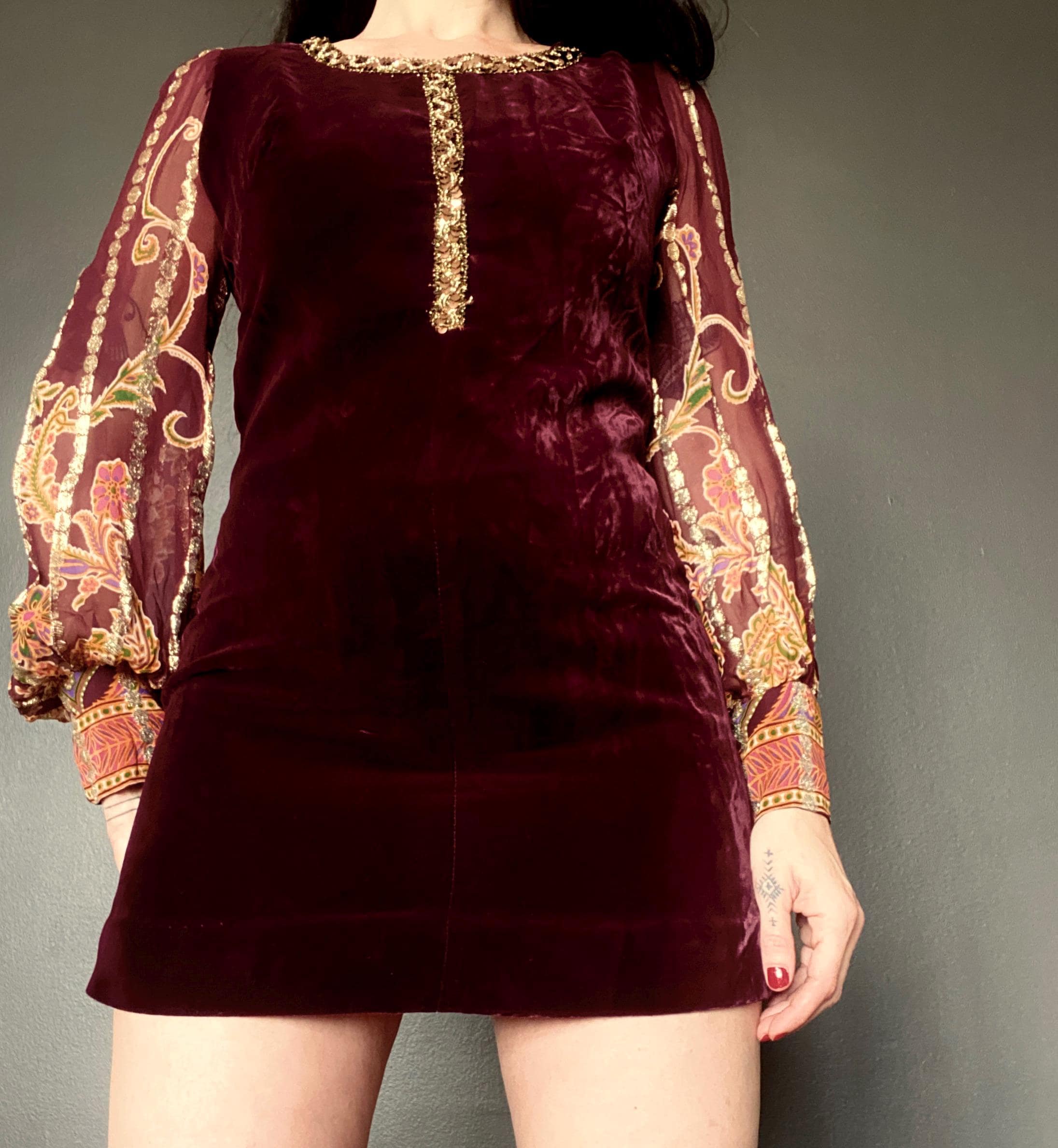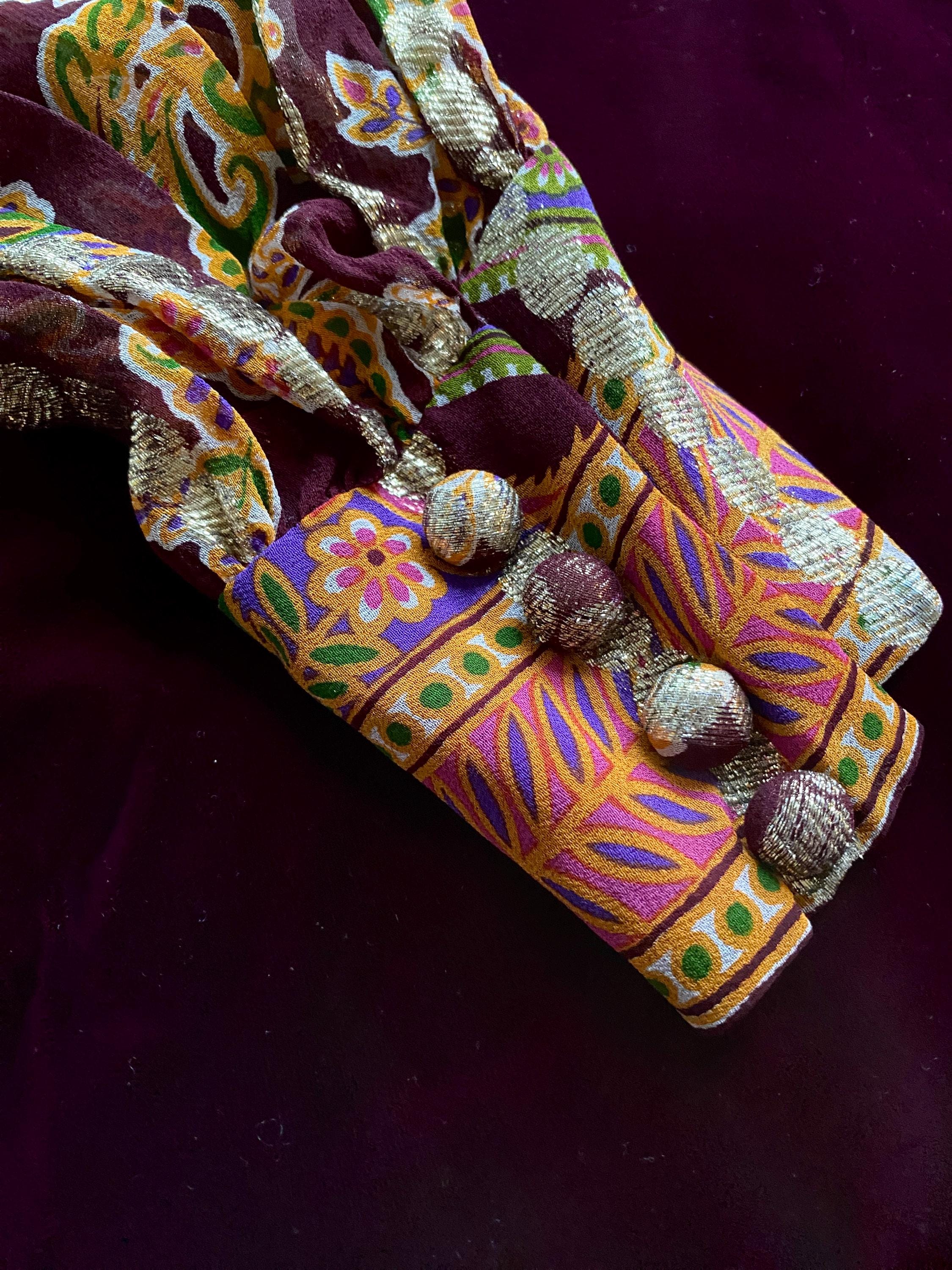*Sleeves are sheer silk with gold threads and psychedelic pattern and wide cuffs