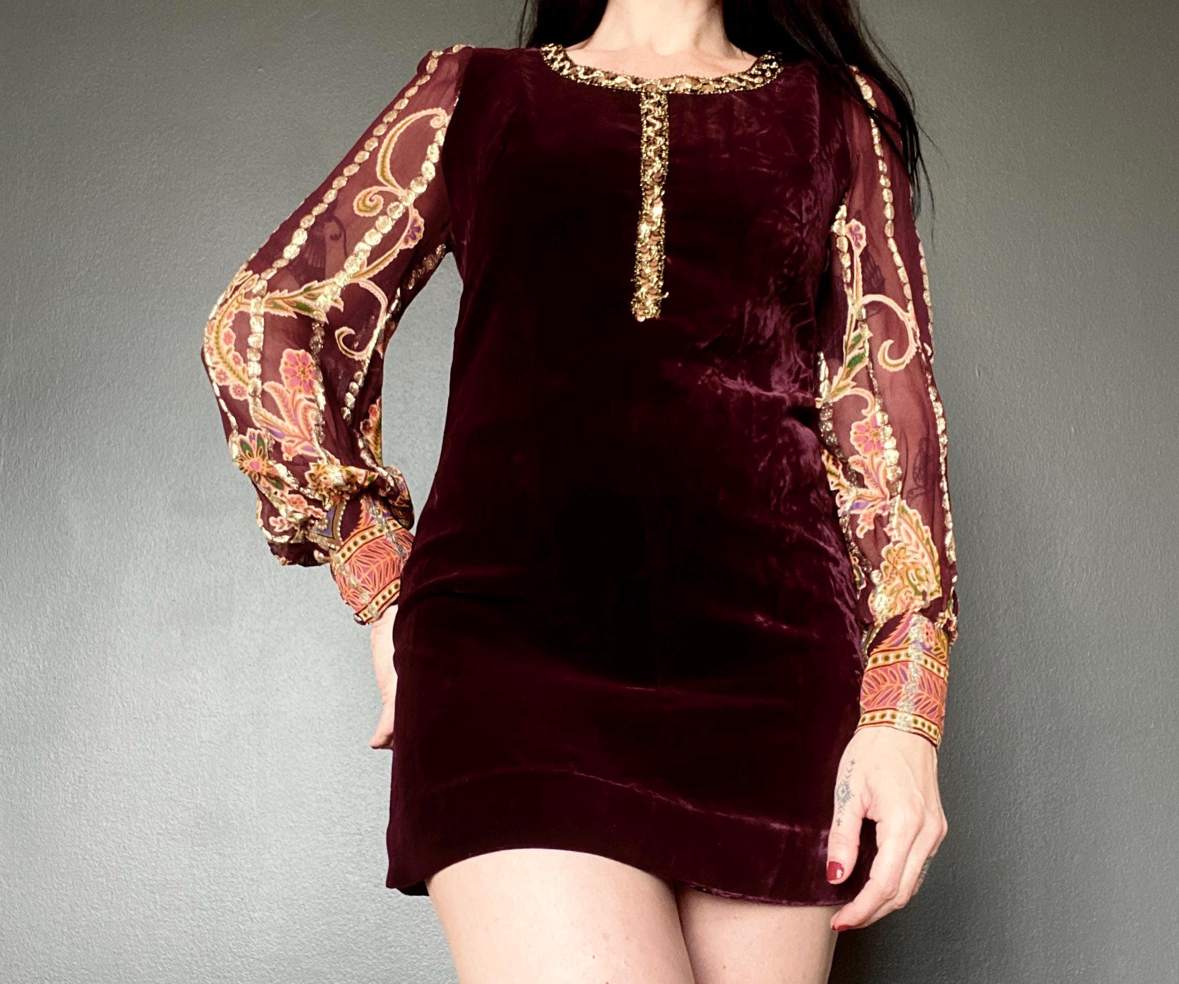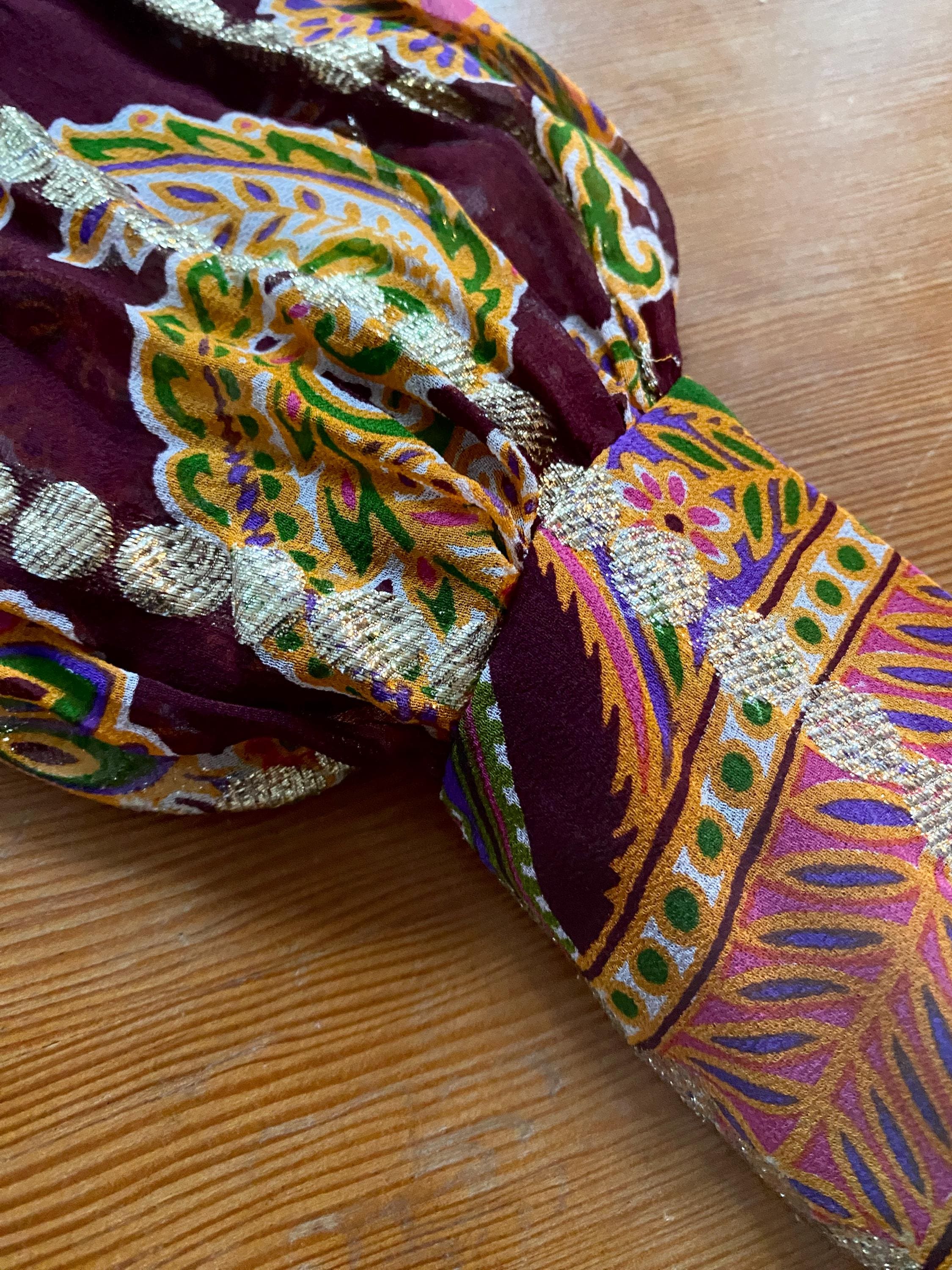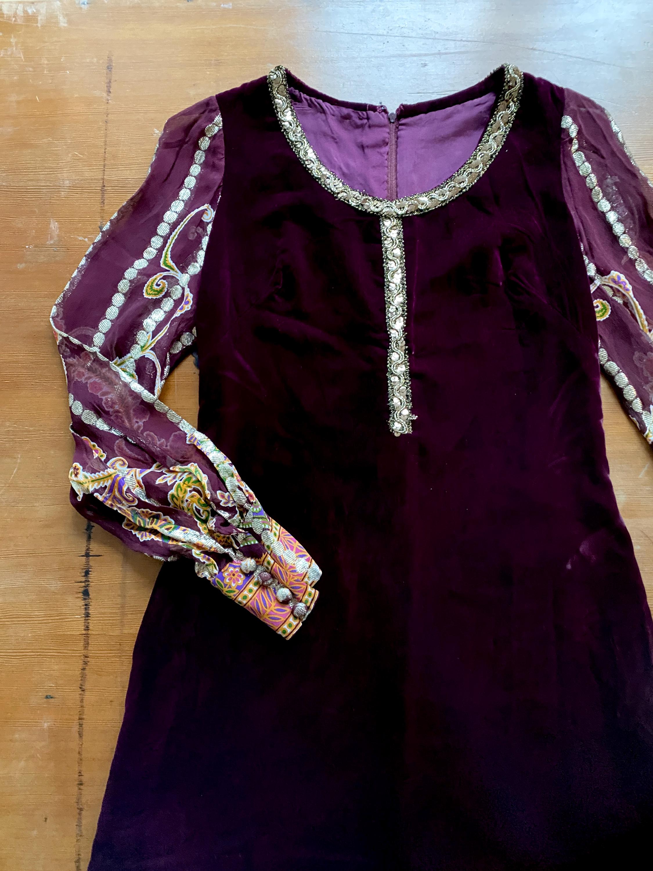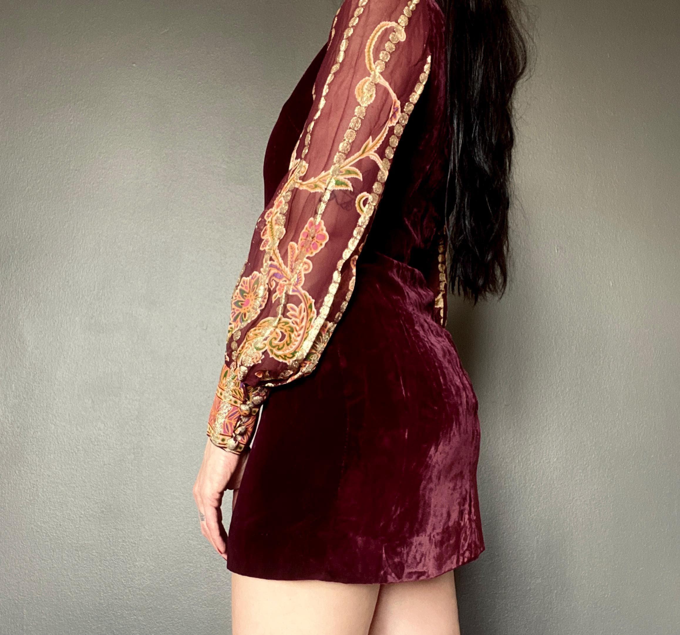 *Sleeves are sheer silk with gold threads and psychedelic pattern and wide cuffs