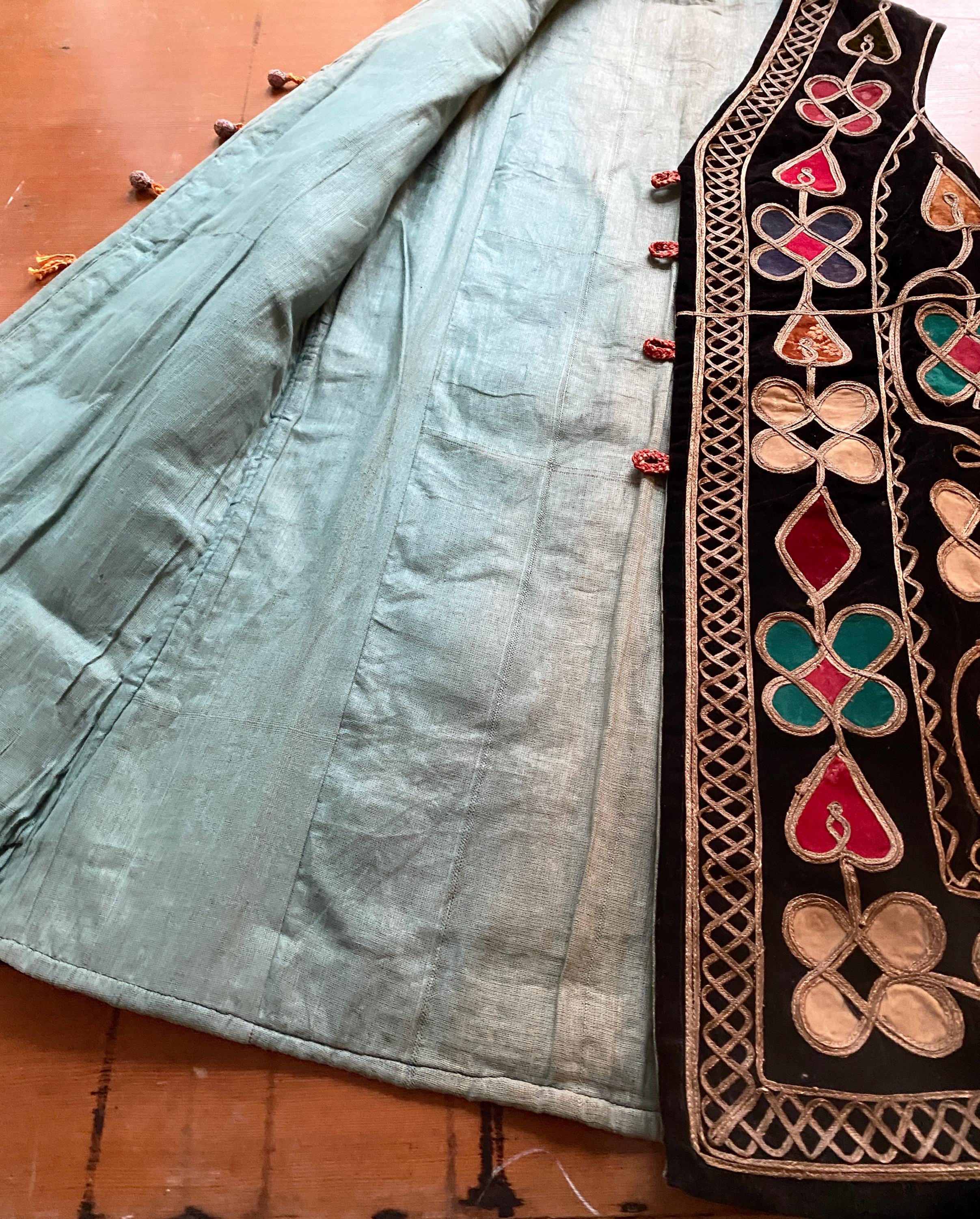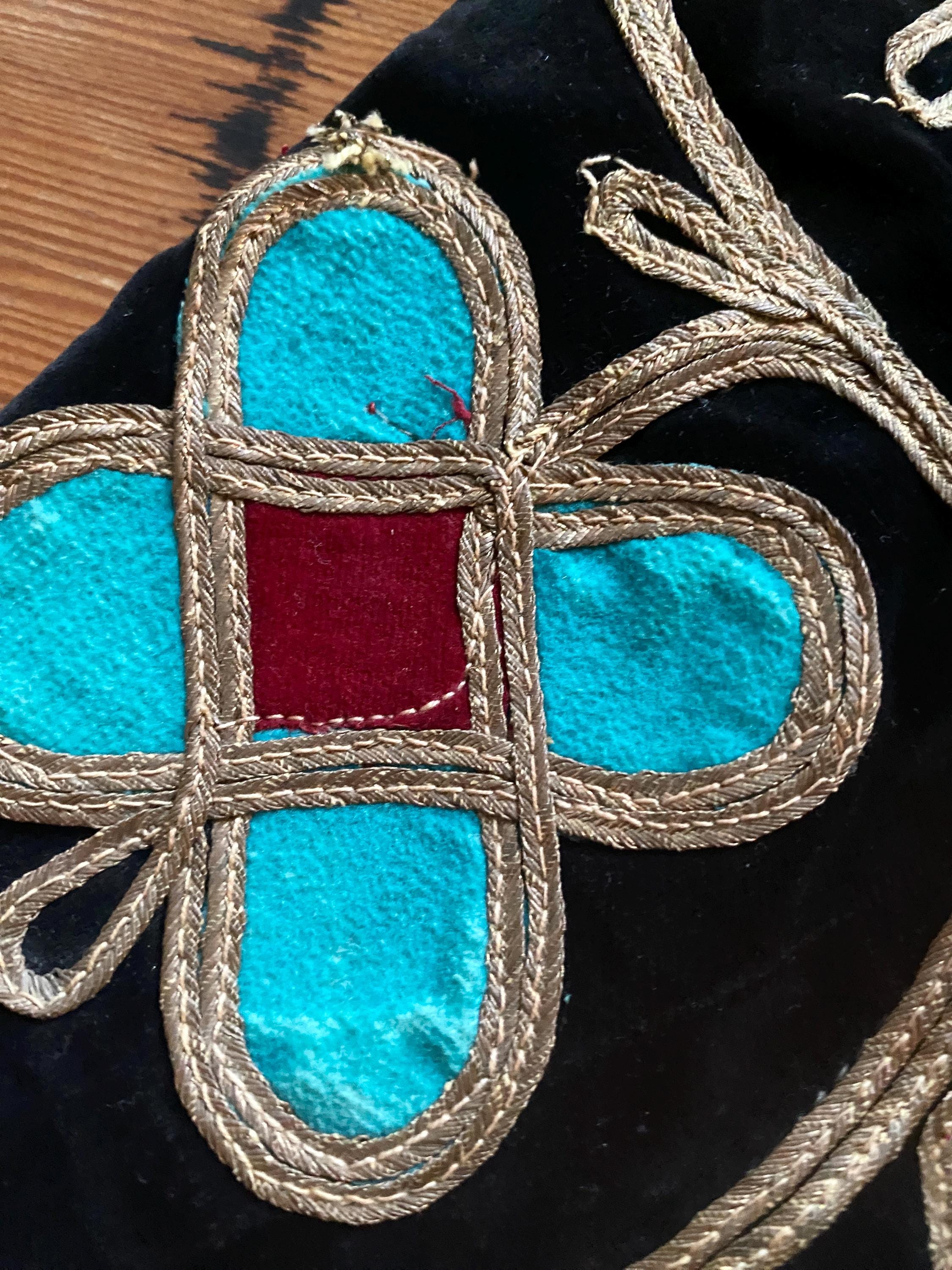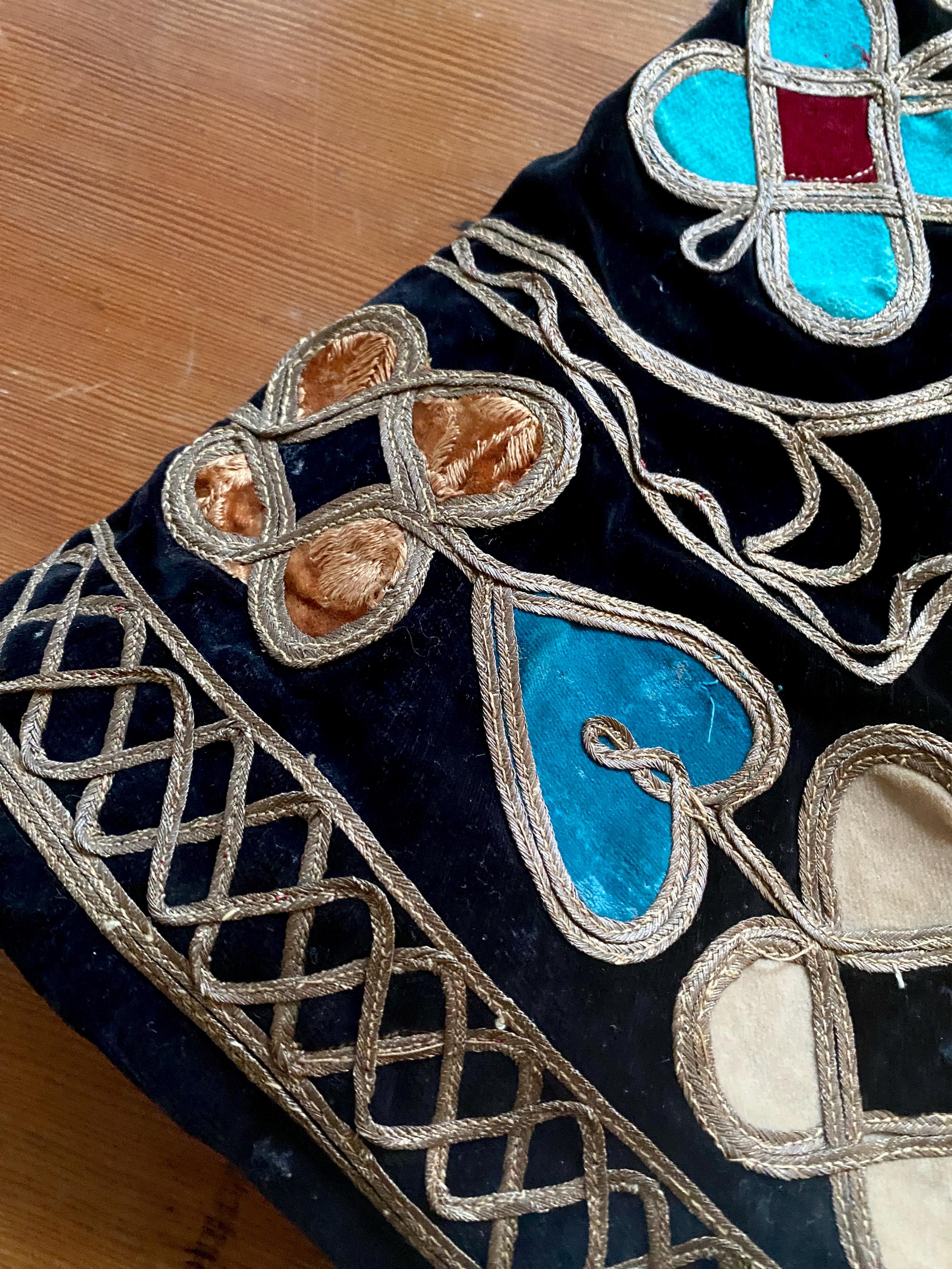 *Black velvet with gold ribbon embroidery and floral patchwork