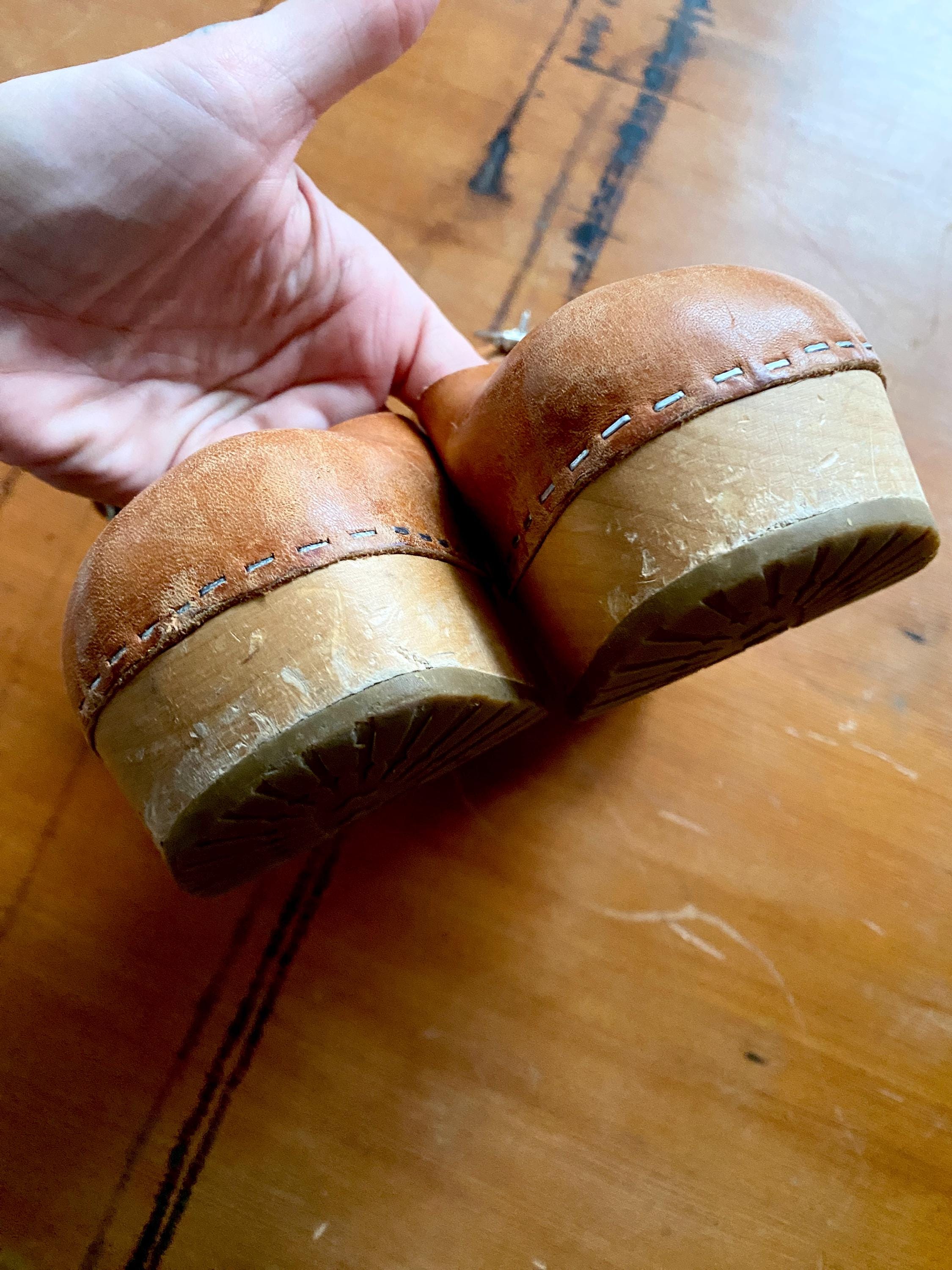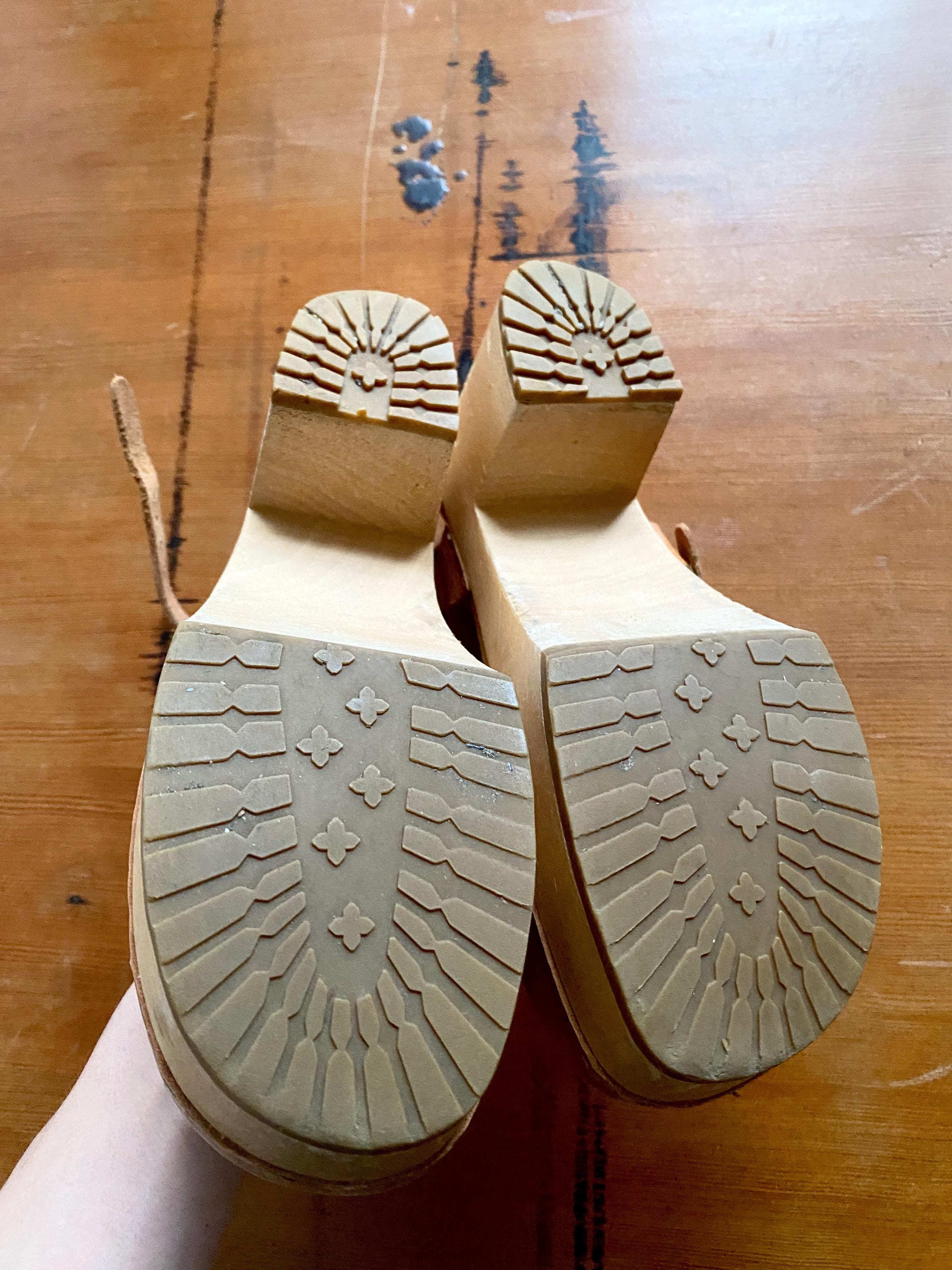 *Good but used vintage condition. The leather is in good condition with patina but the wooden soles shows visible signs of age and wear (see pictures) They are still in wearable and in overall good vintage condition.