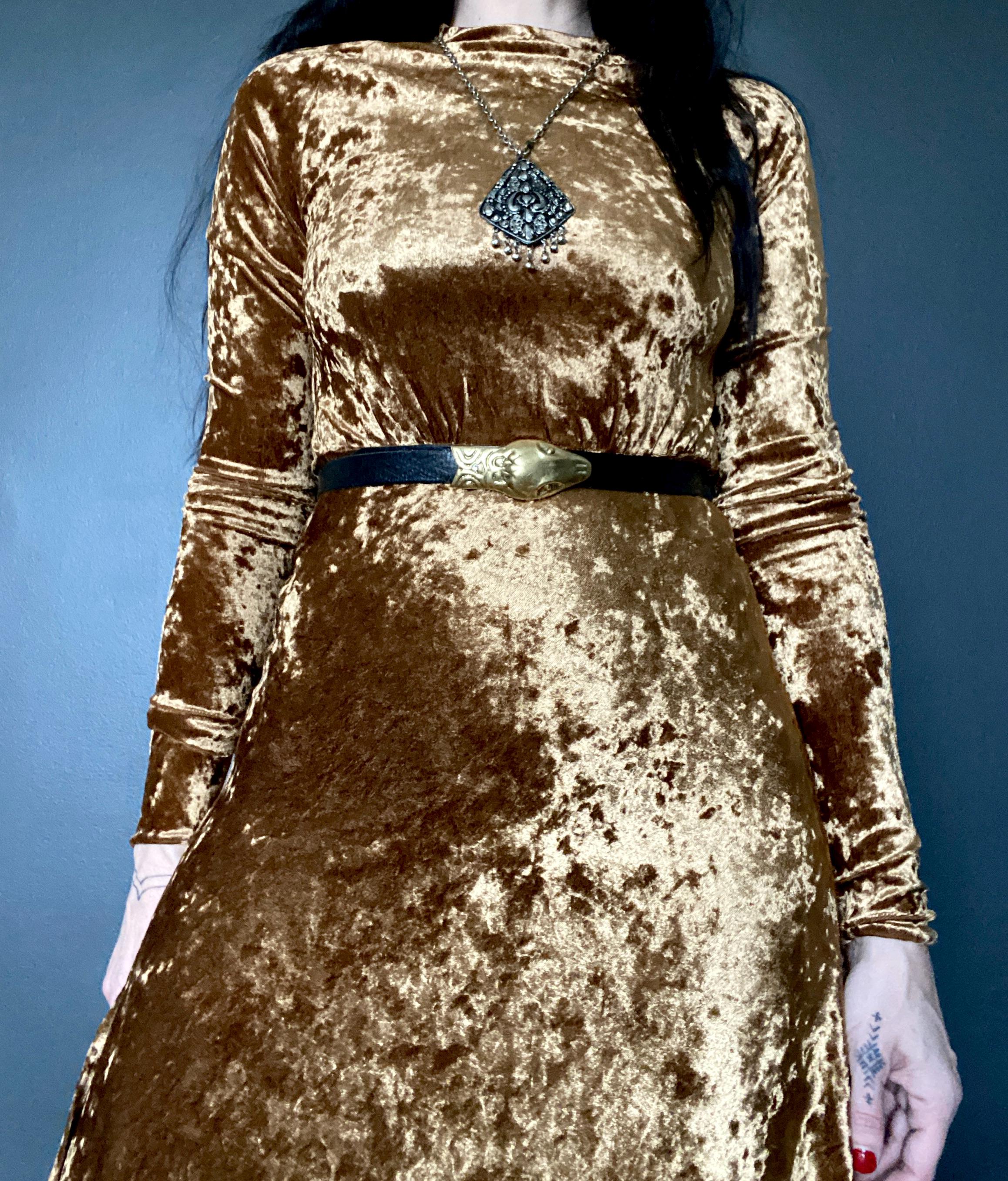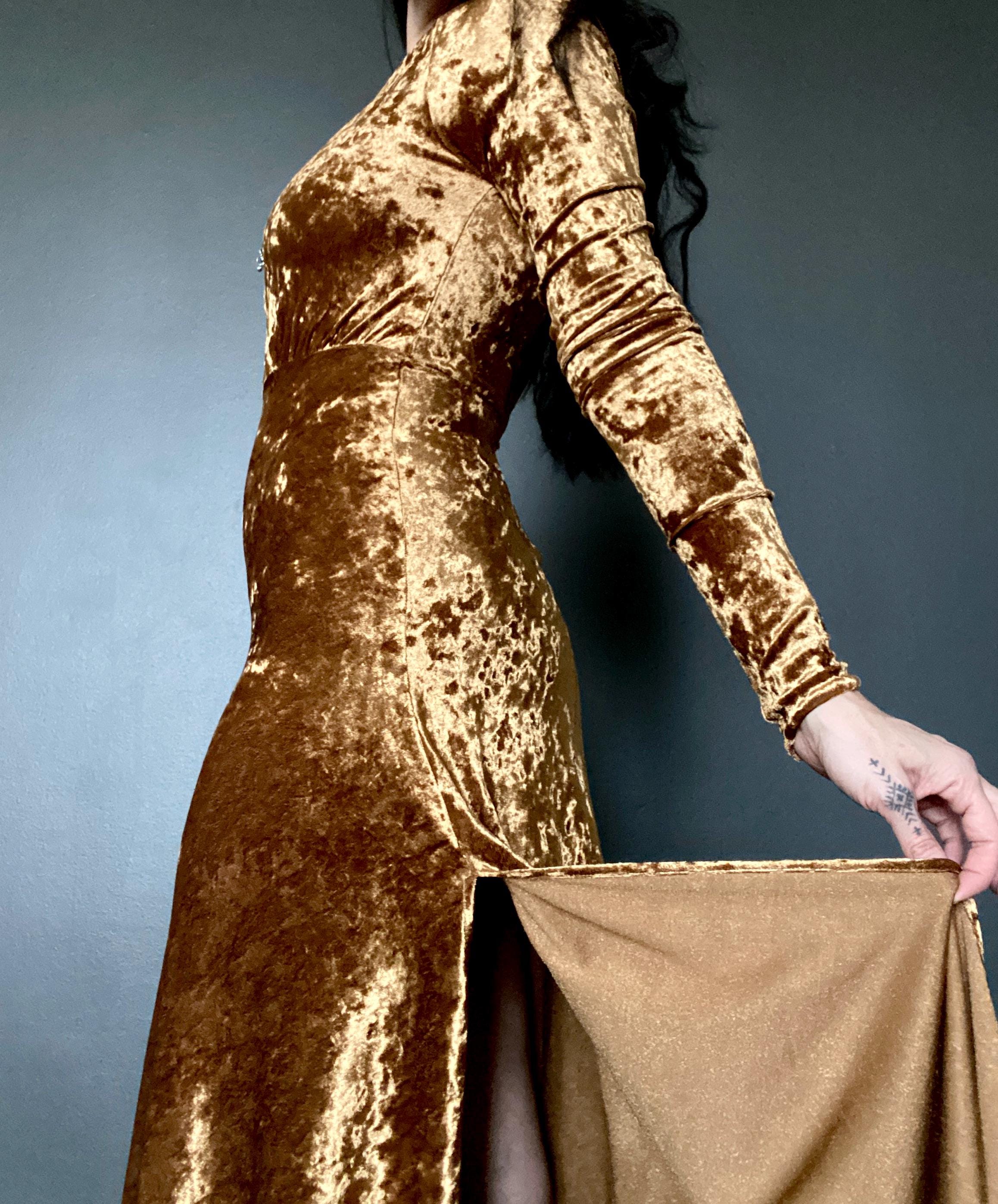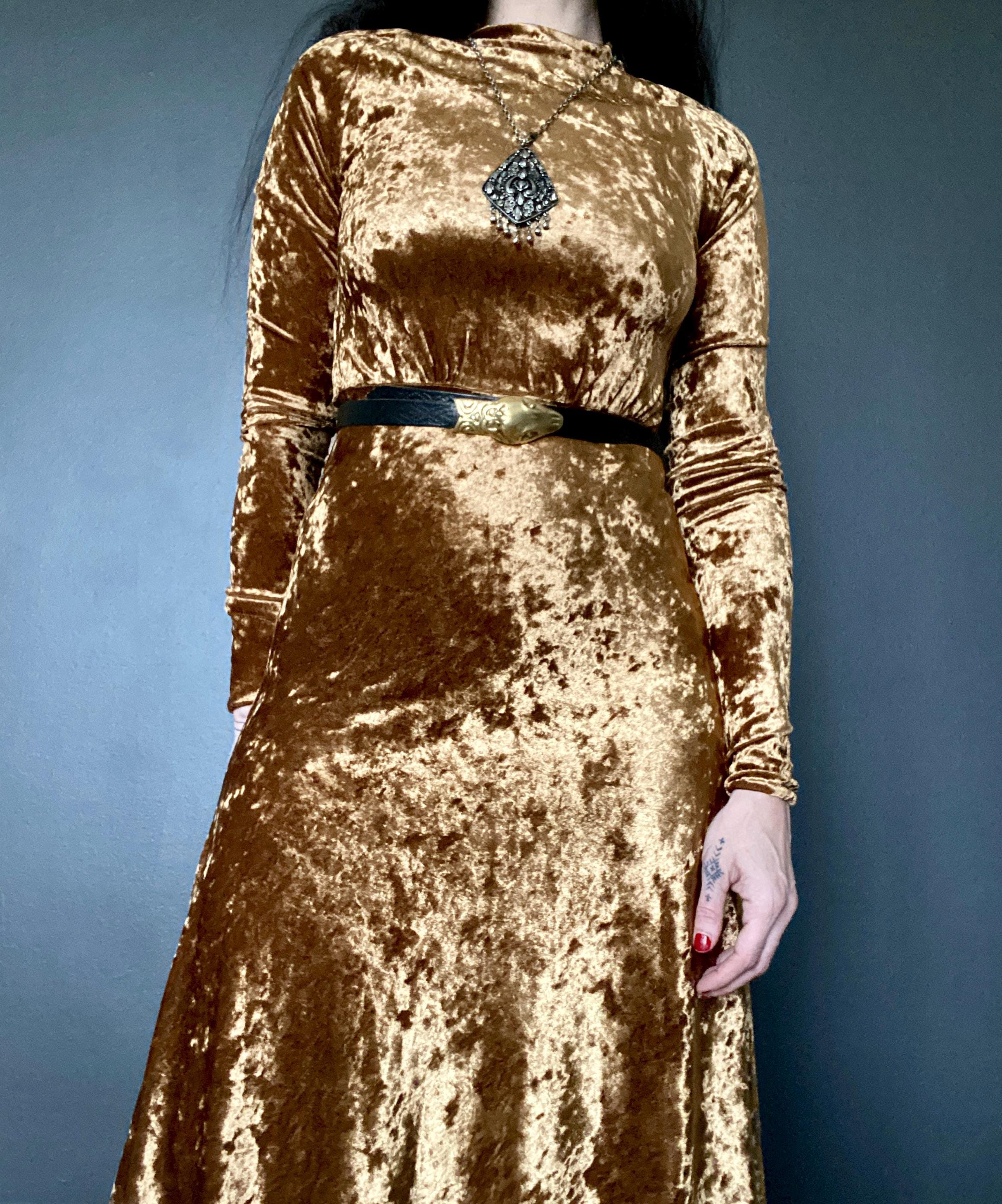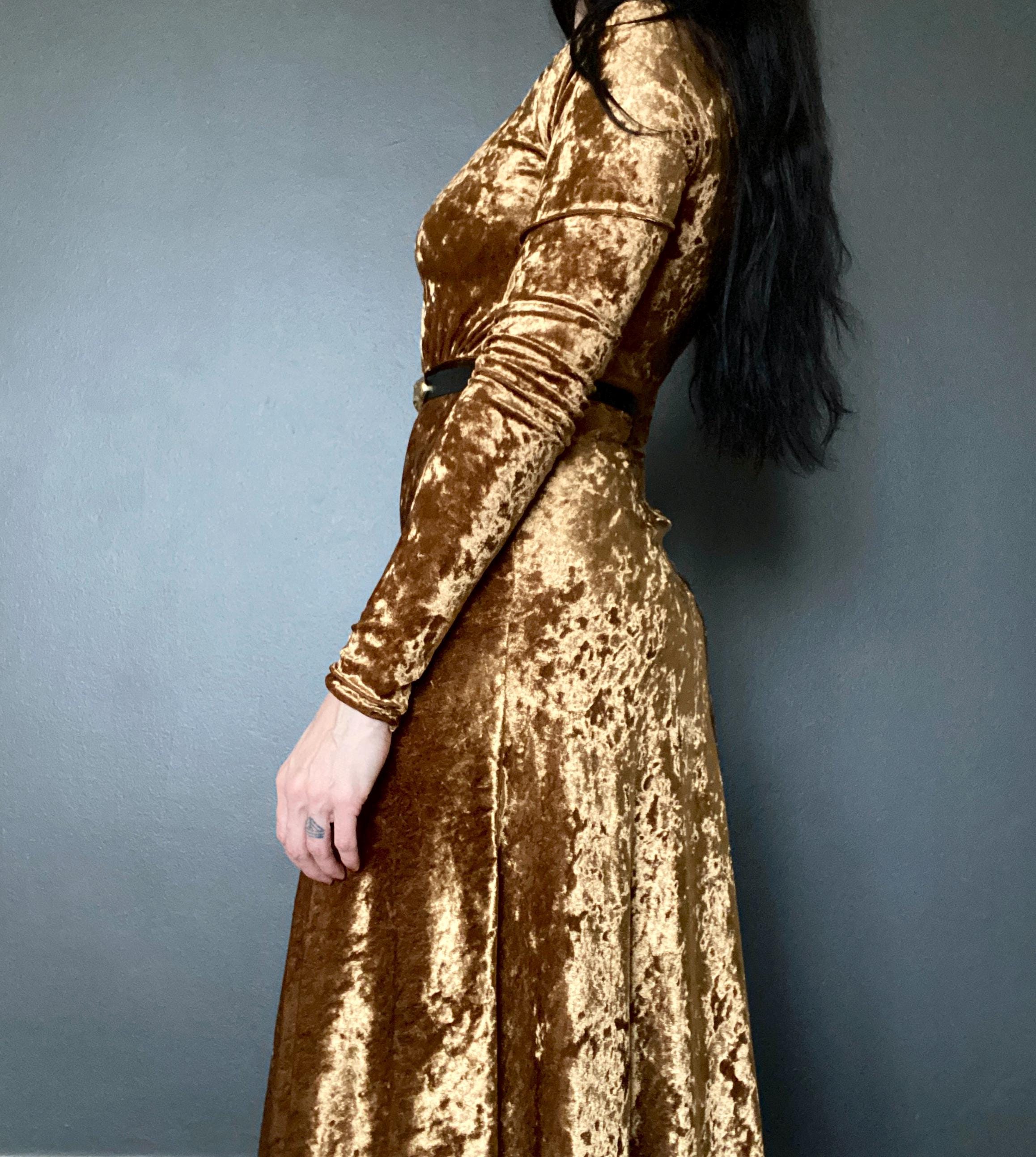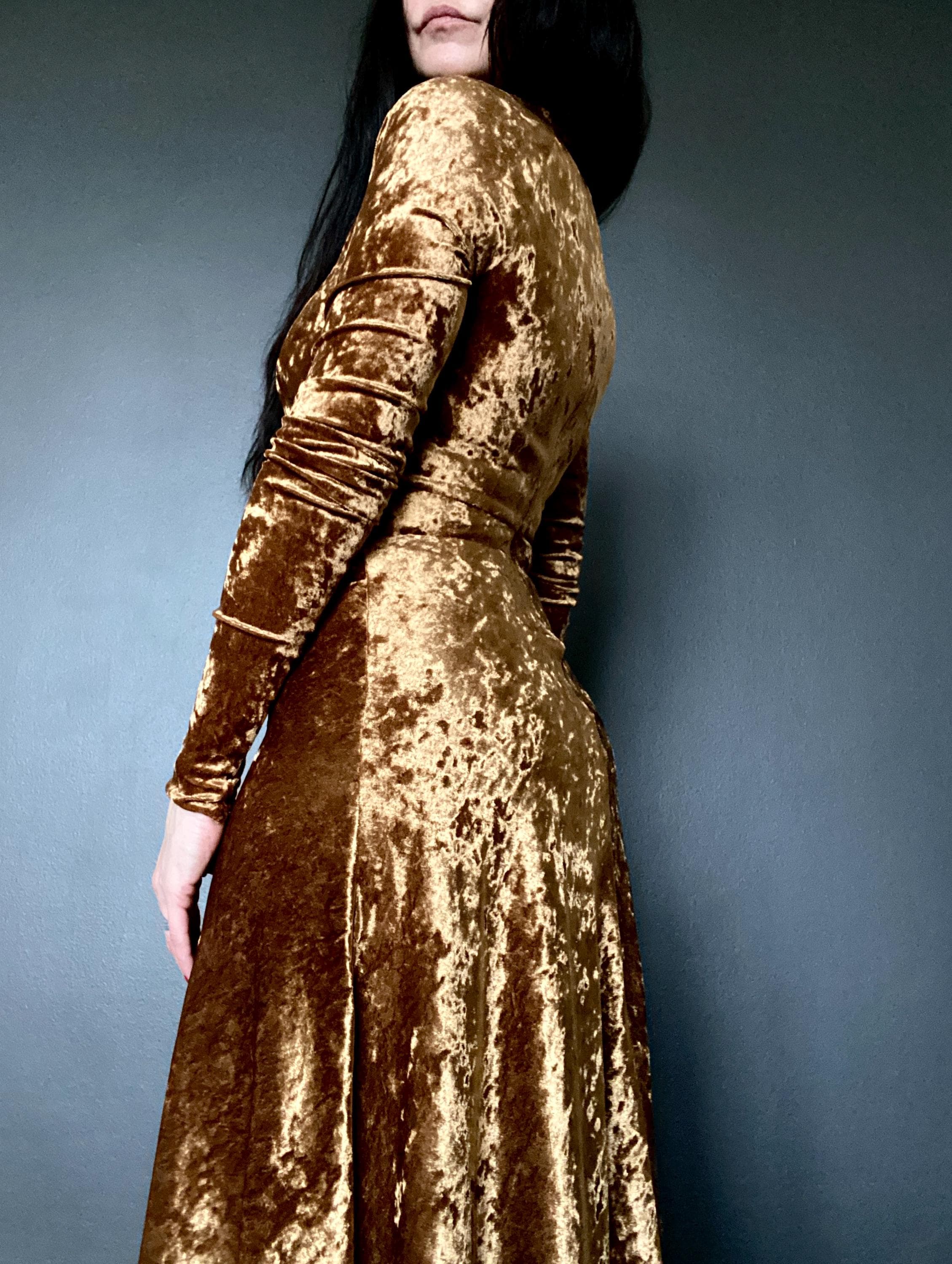 *Beautiful crushed velvet fabric in golden copper color with some stretch.