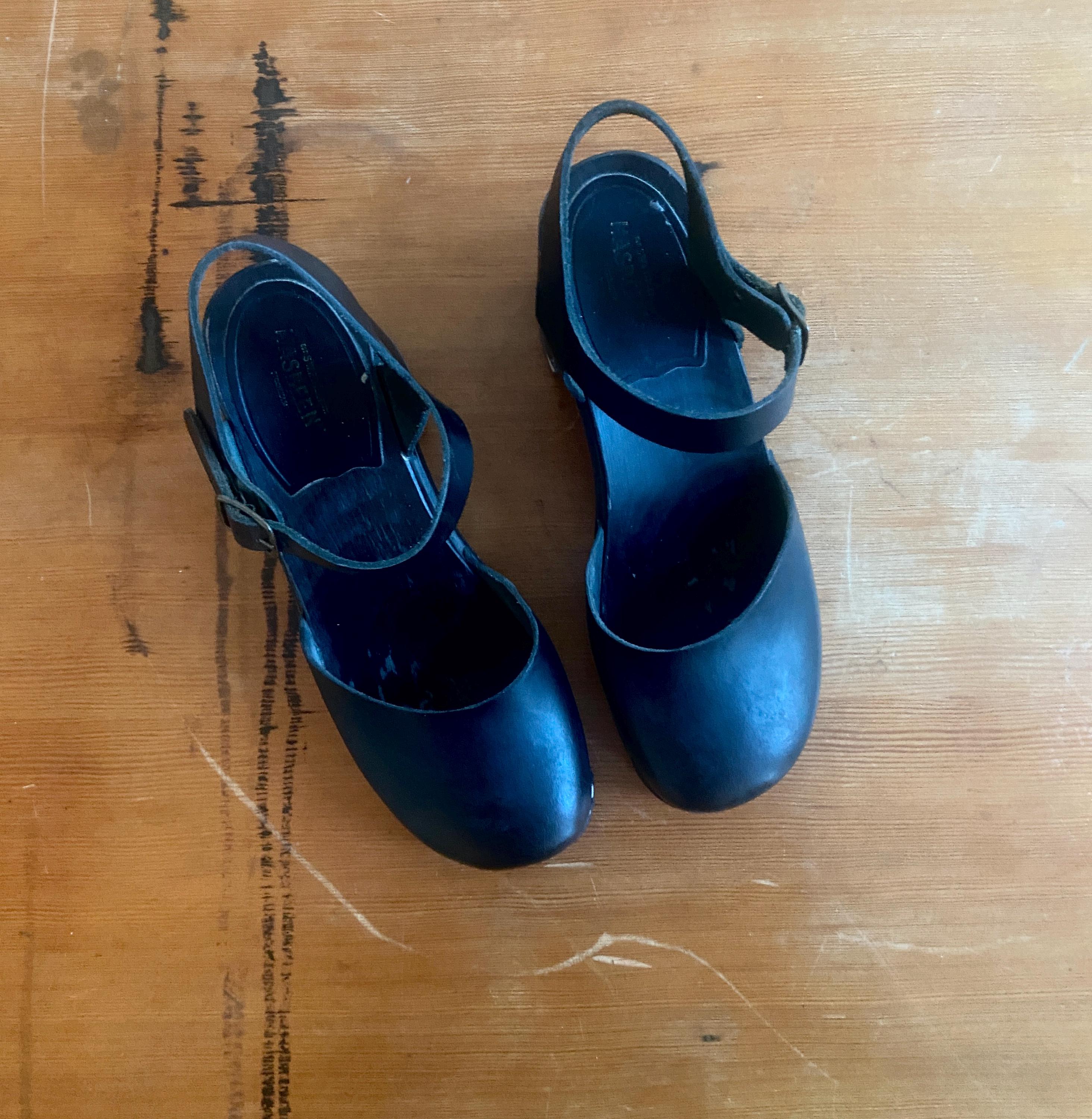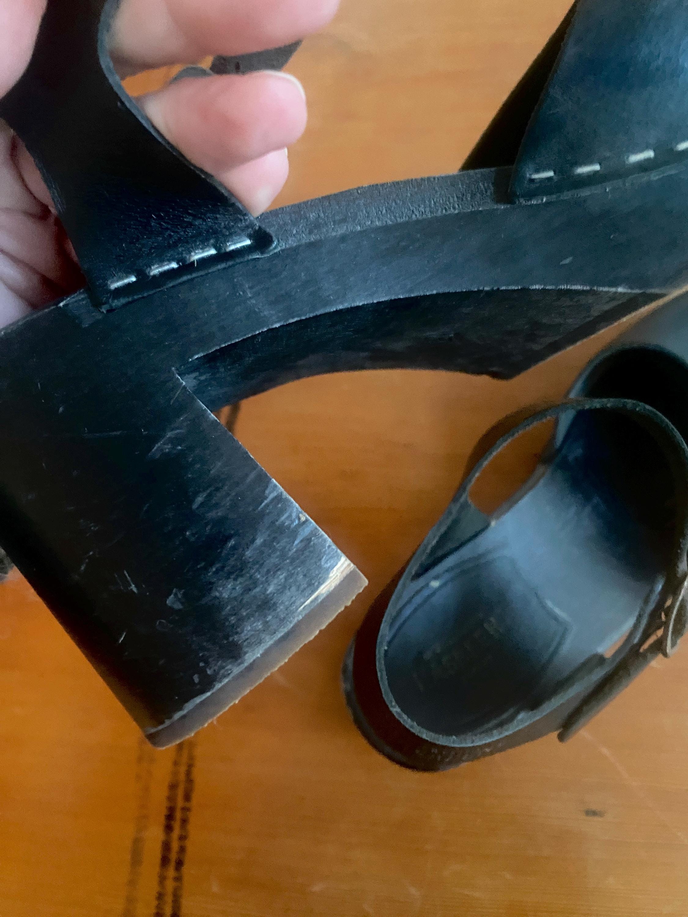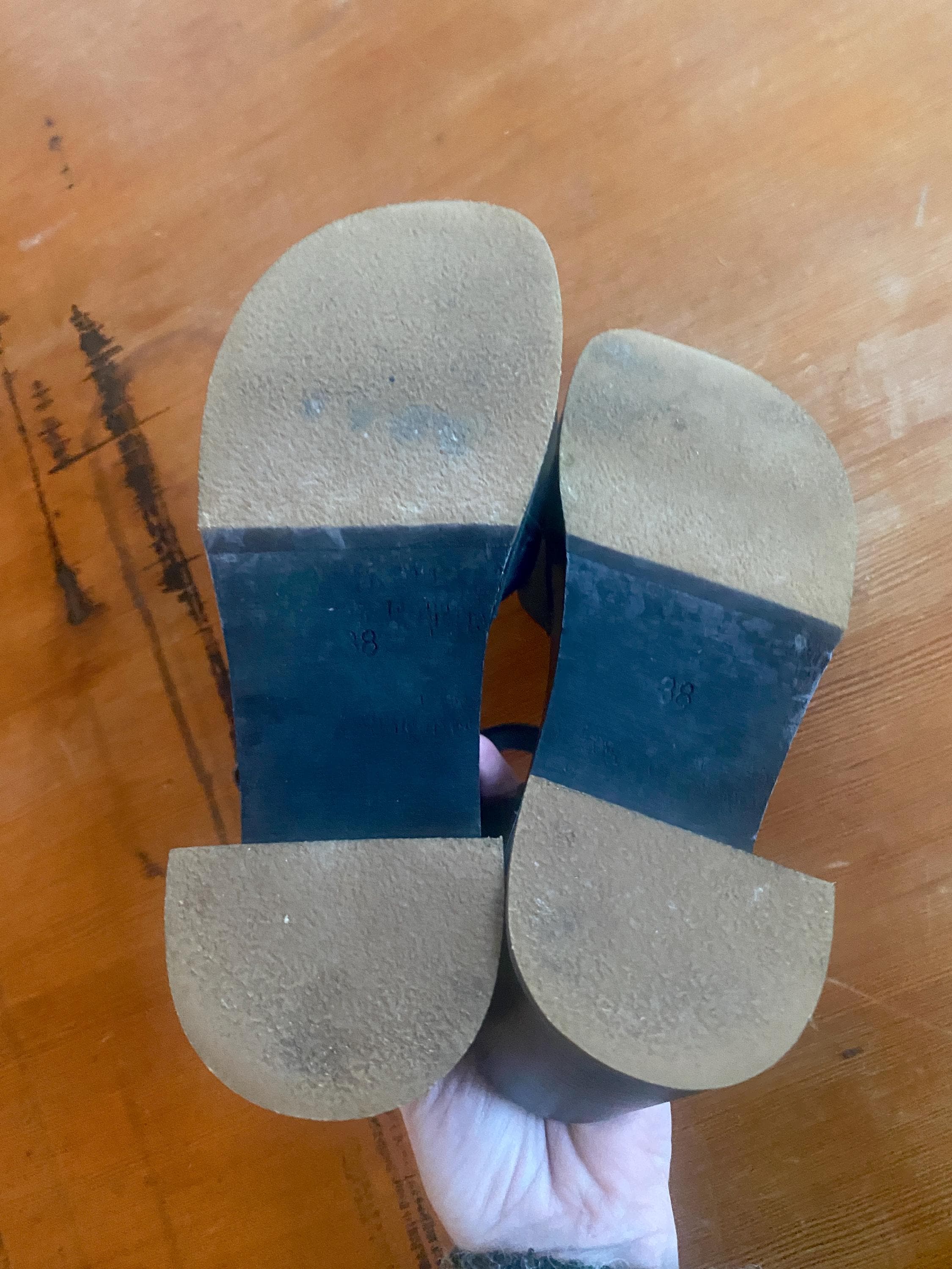 *Good but used vintage condition. The leather is in good condition with patina but the wooden soles shows signs of age and wear (see pictures)