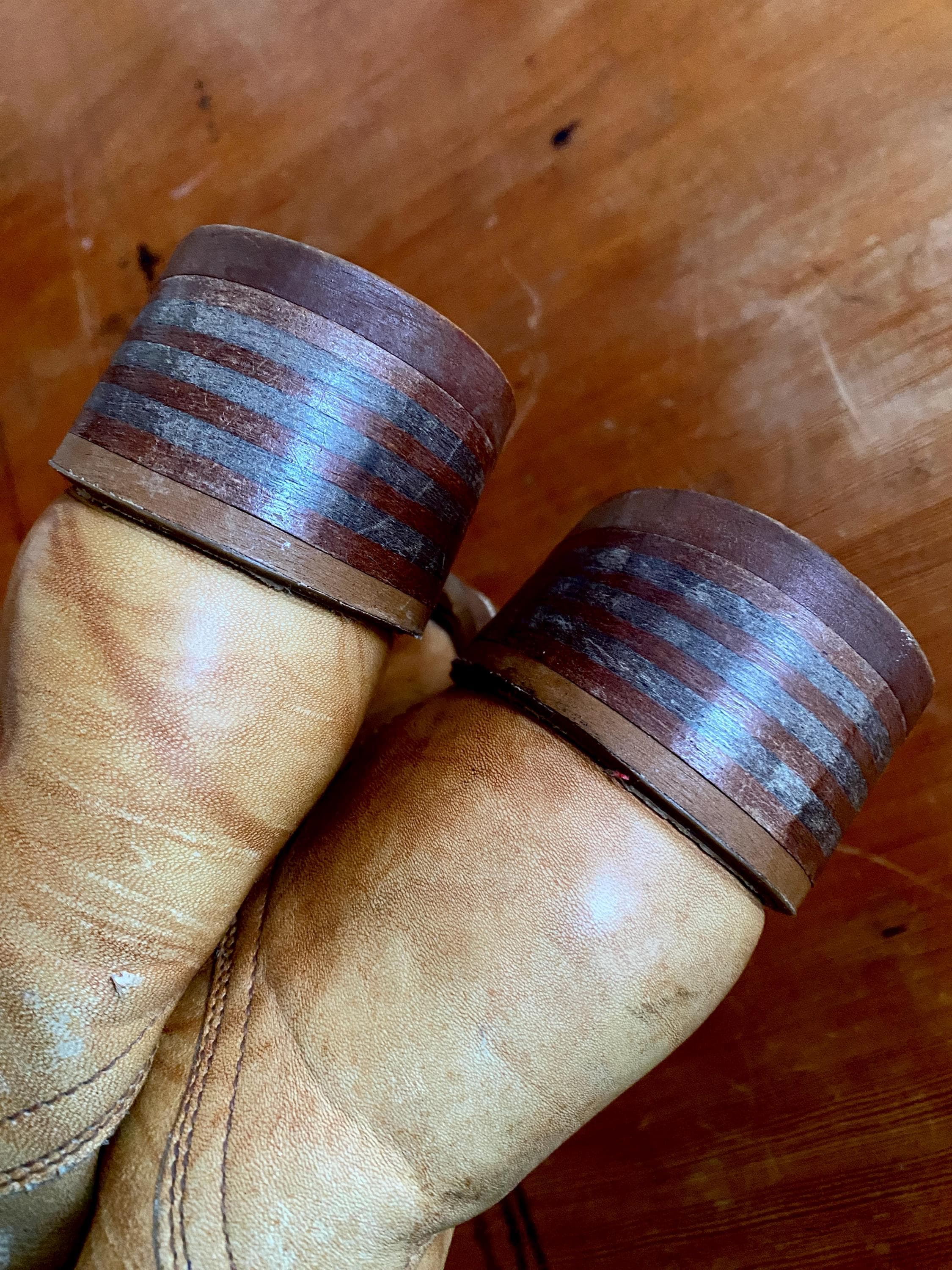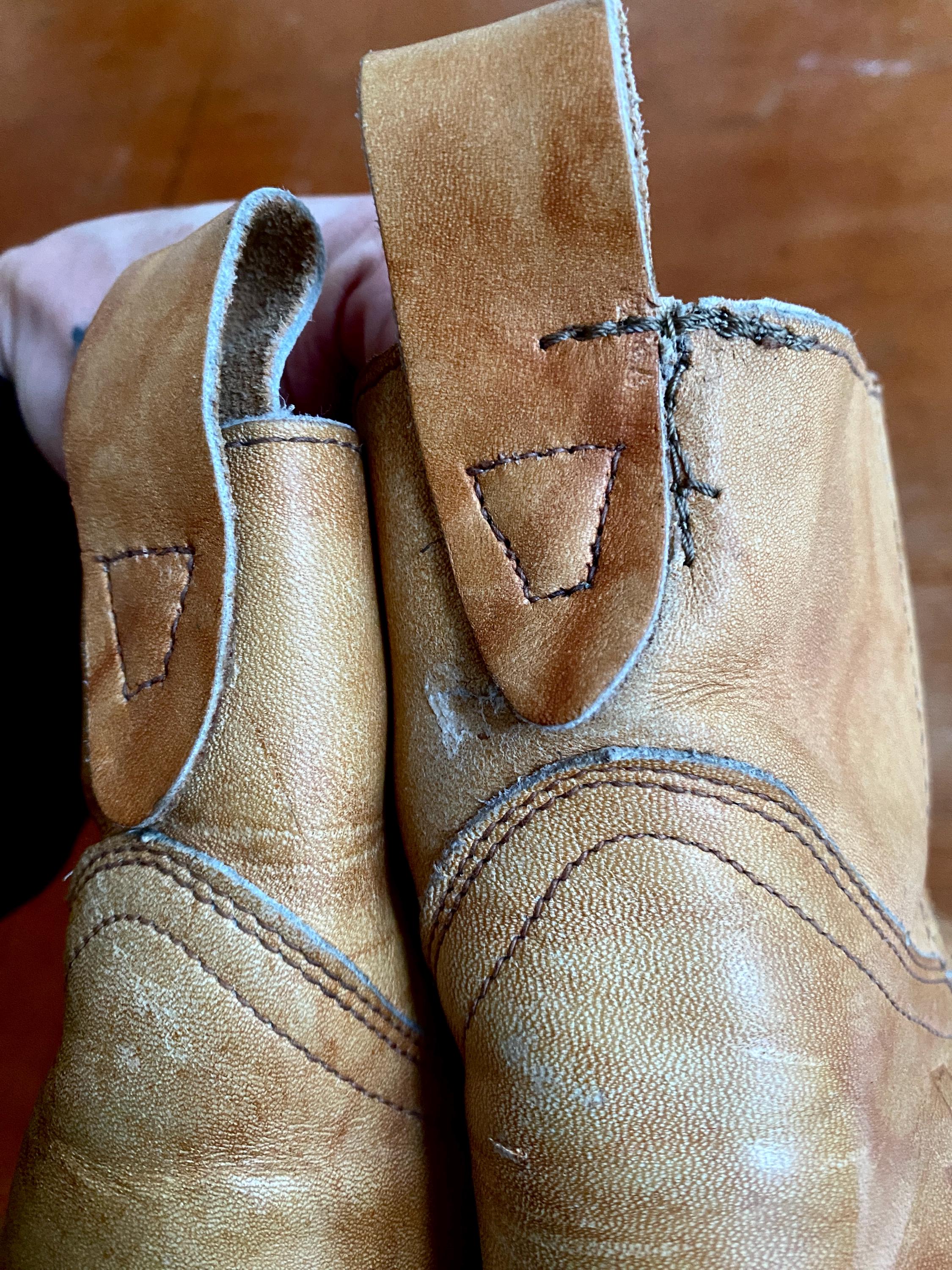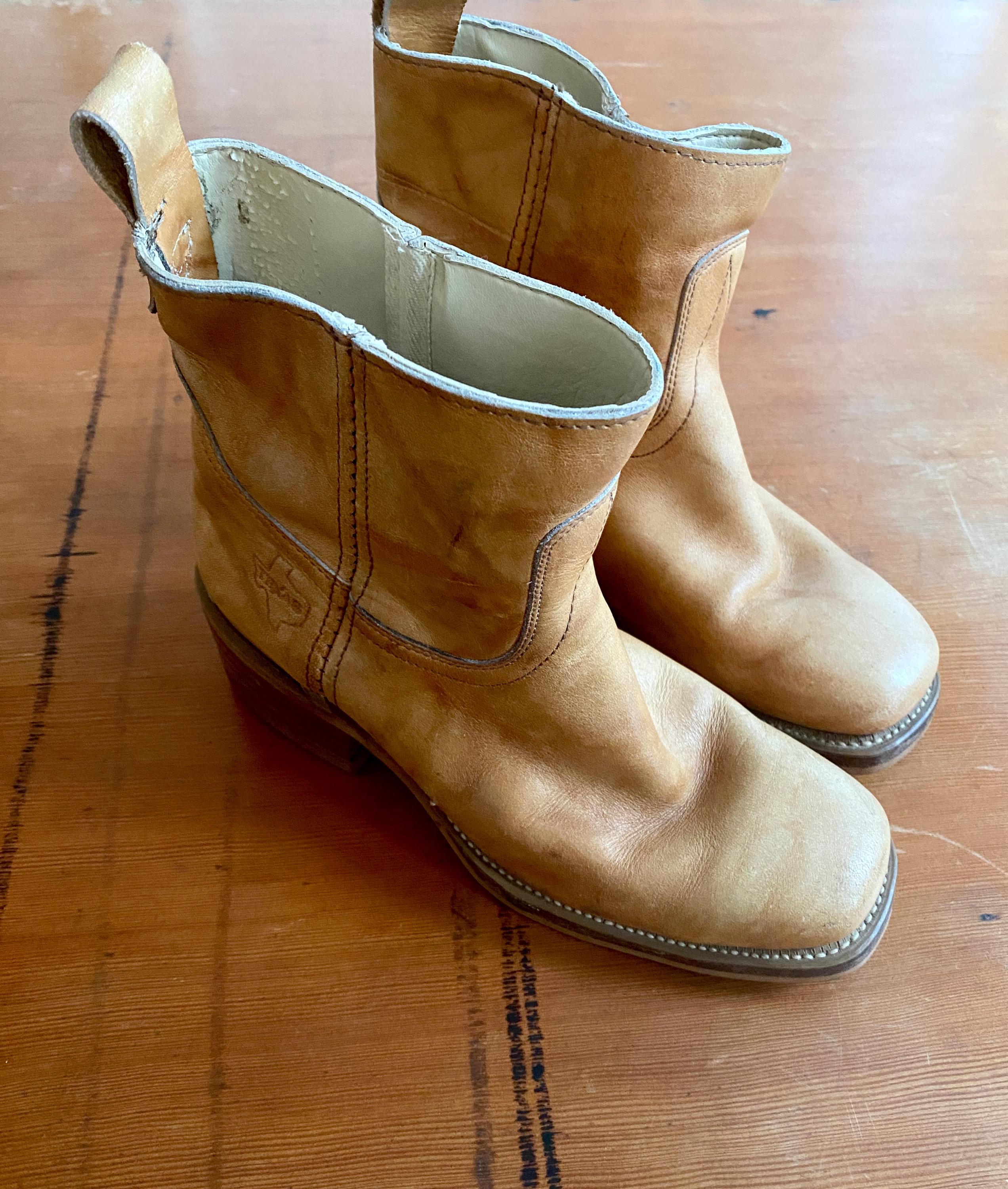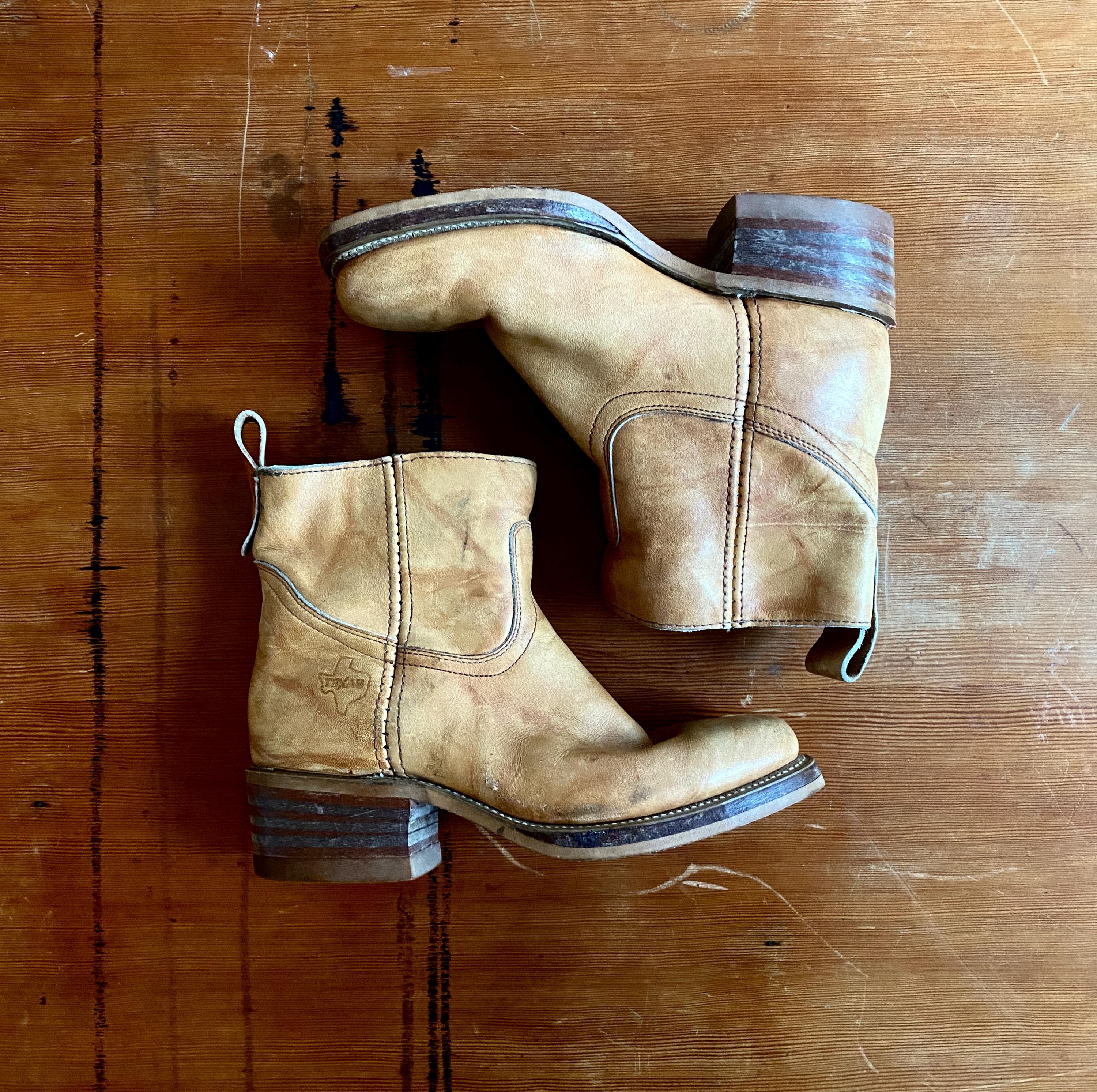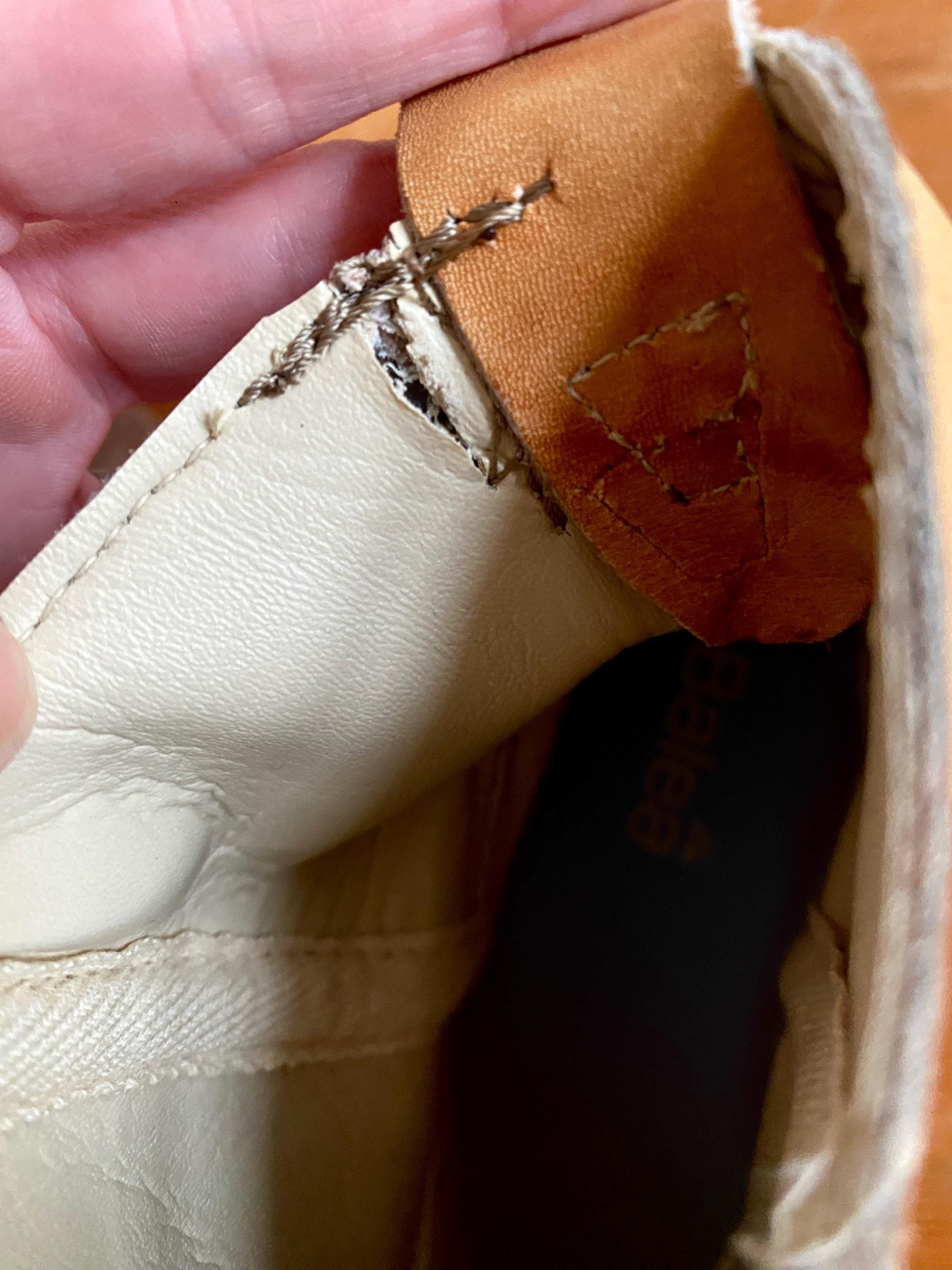 *Used vintage condition. The leather shows overall signs of age and wear with patina, some scuffs, marks and stains but still in good wearable condition. The soles show minimal signs of age and wear. There has been a tear on the back on one of the boots but has been sewn by a cobbler (see picture). Also a pair comfort gel insoles have been super glued into the boots, which makes them feel very comfortable. The estimated size is also based on this.