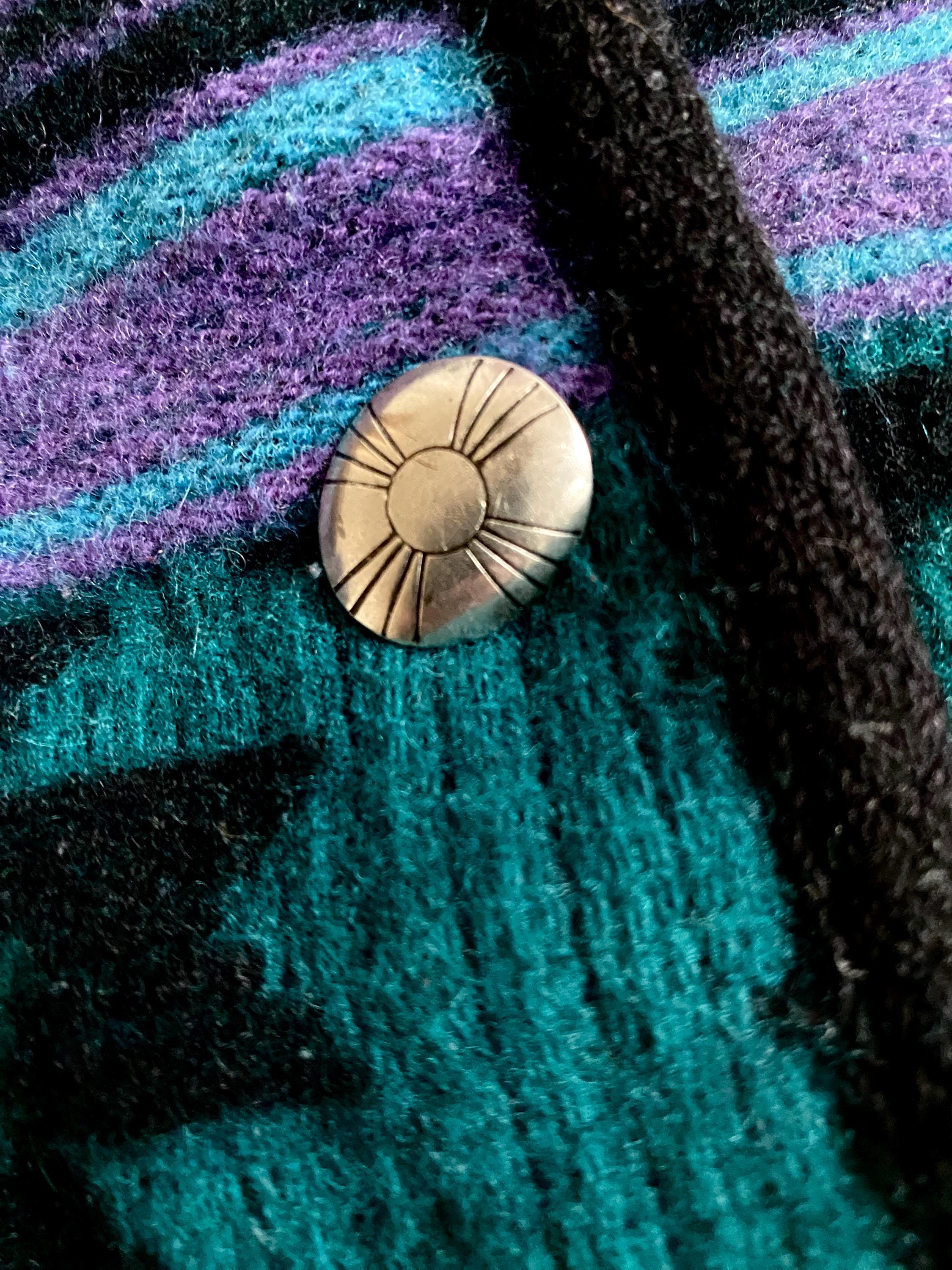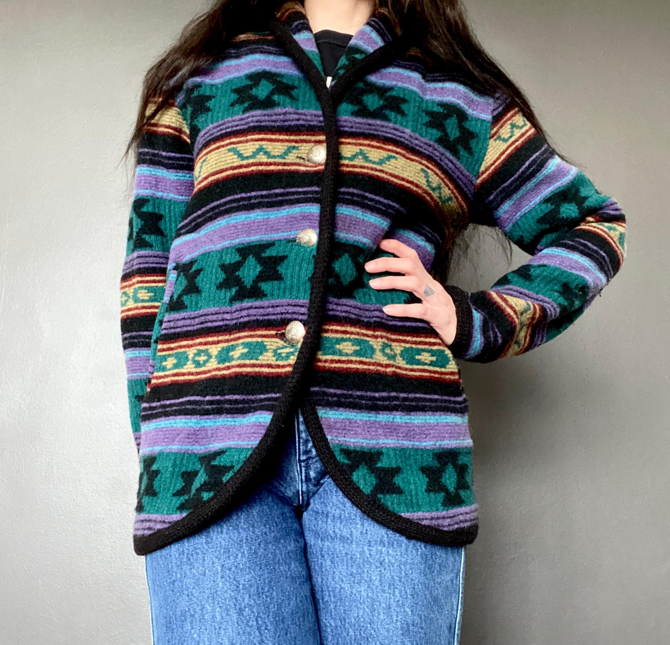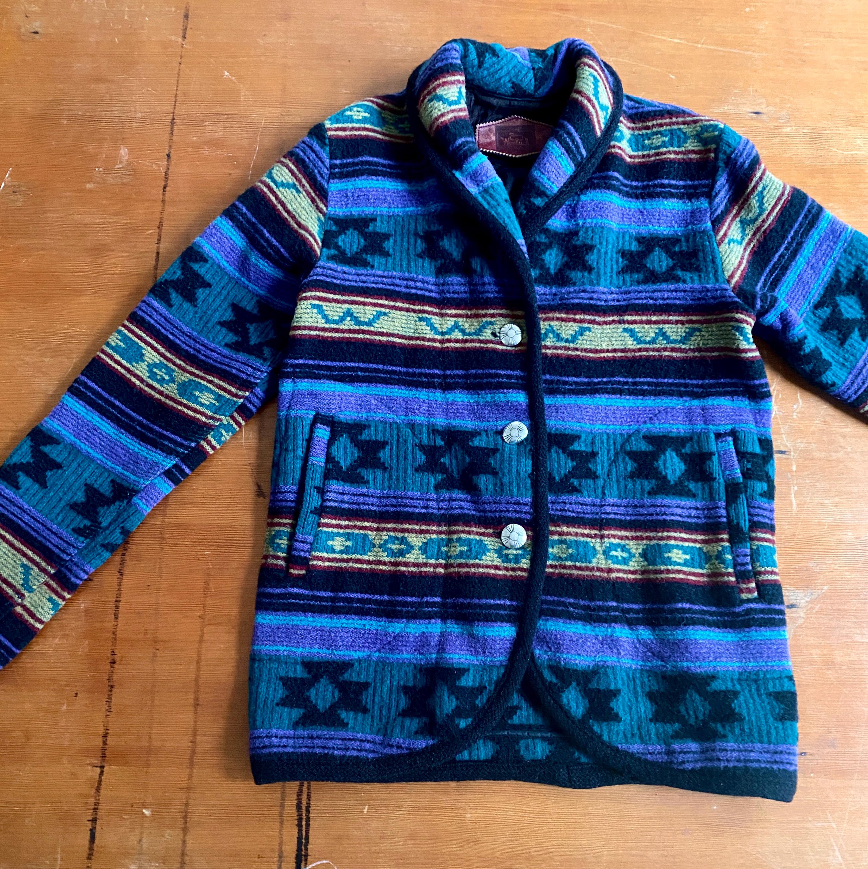 *Used vintage condition. Shows normal signs of age and wear. It feels like the wool might have been washed a little too warm or otherwise its just a thick sturdy quality wool. Has a little bit of pilling and one of the buttons is a little bend.