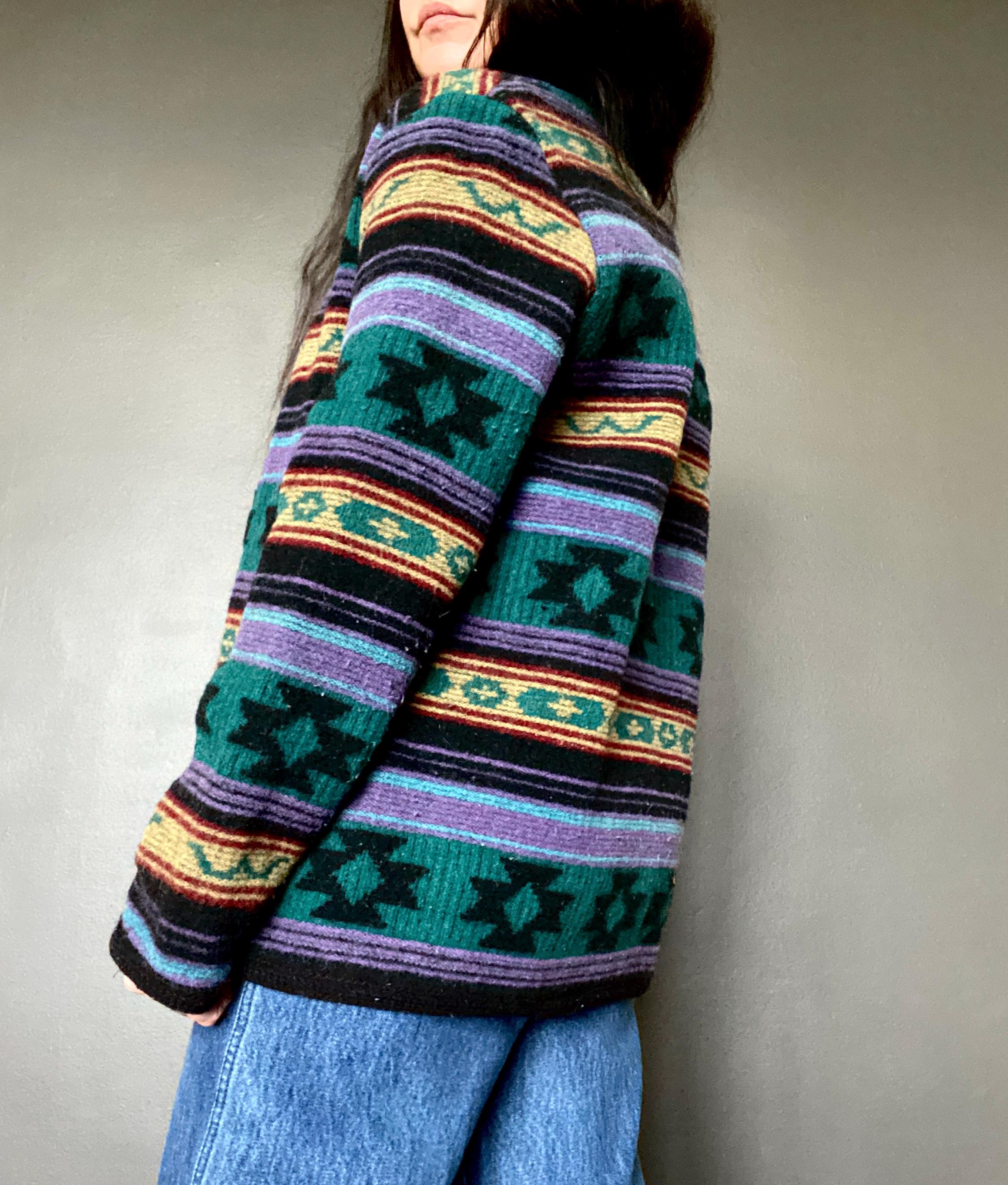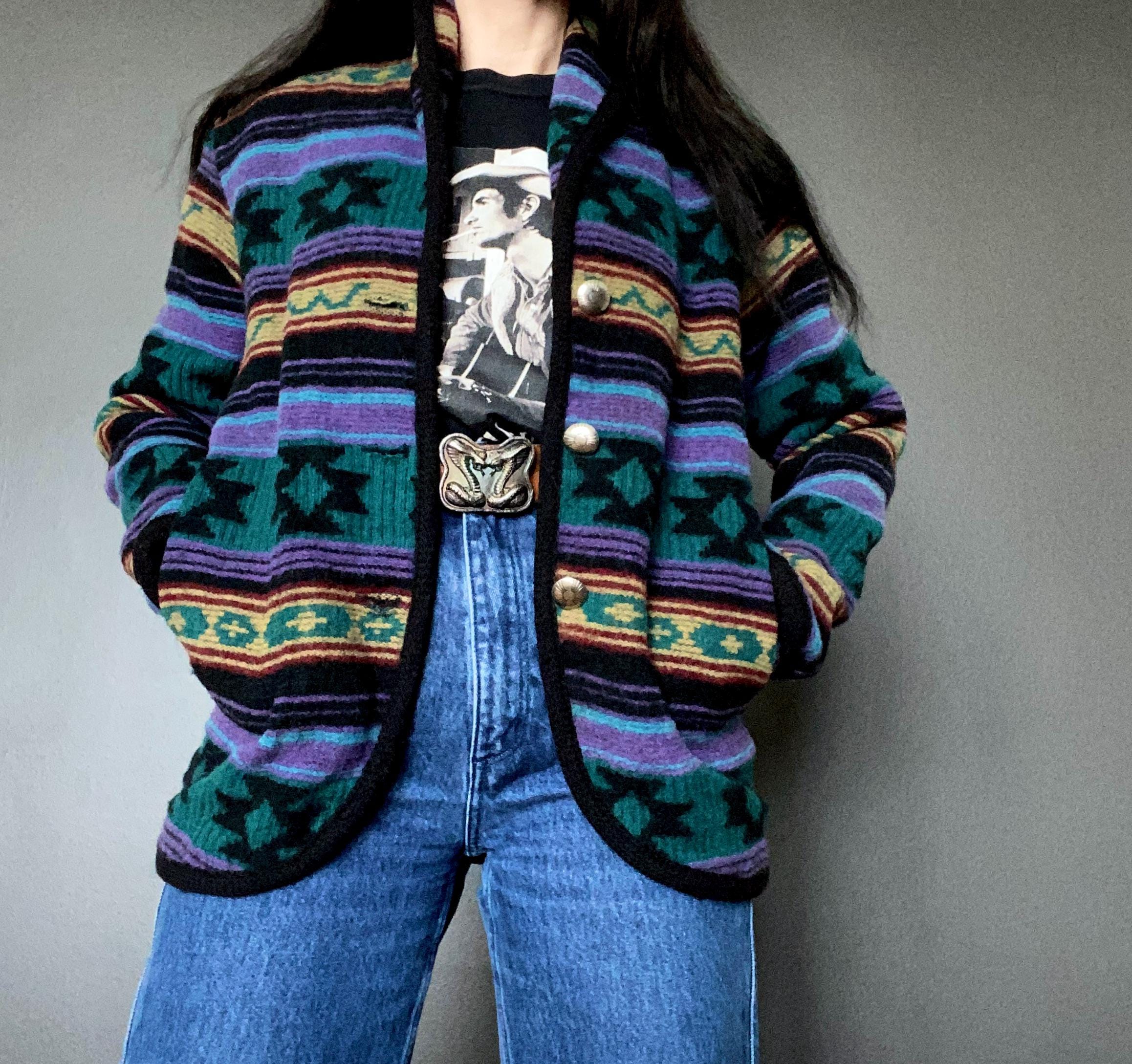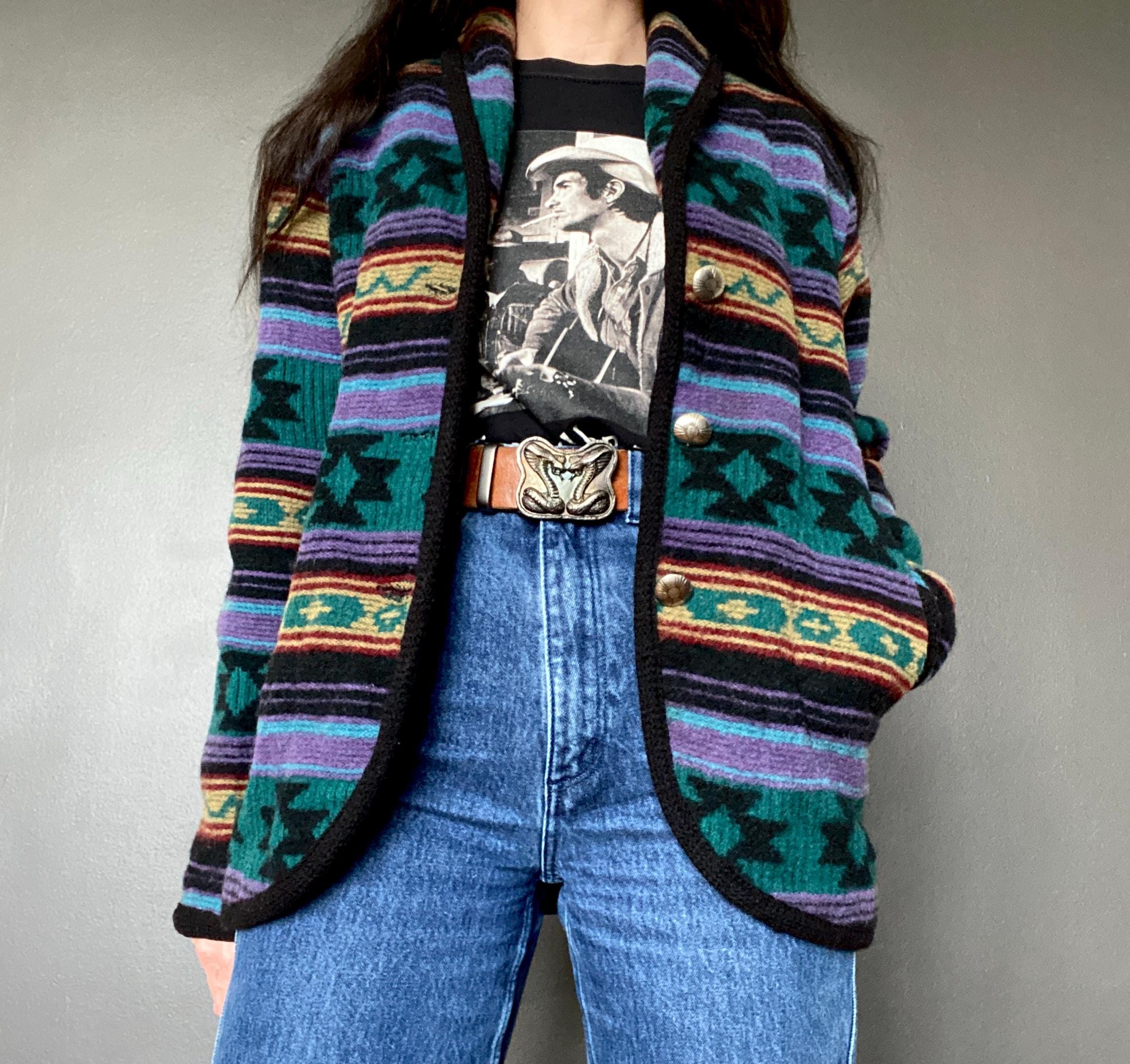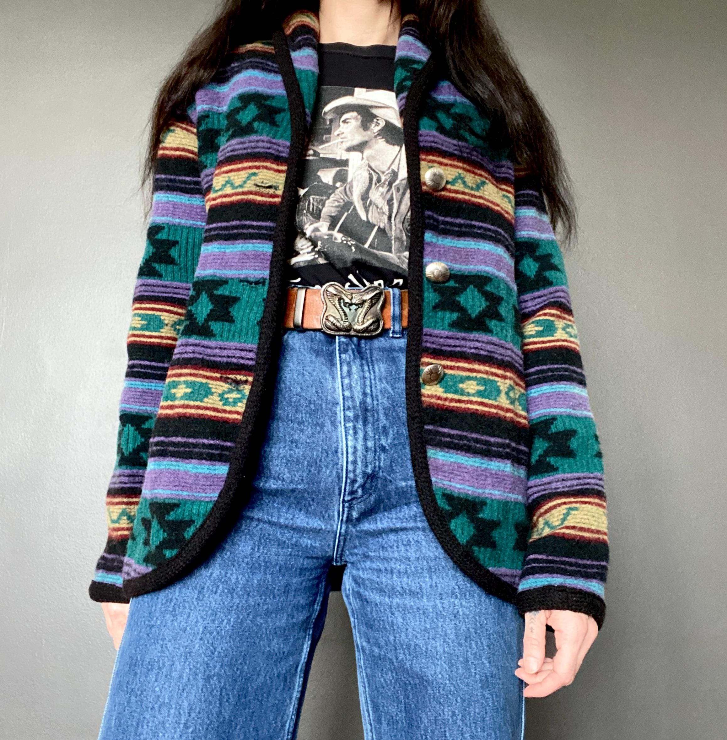 *Used vintage condition. Shows normal signs of age and wear. It feels like the wool might have been washed a little too warm or otherwise its just a thick sturdy quality wool. Has a little bit of pilling and one of the buttons is a little bend.