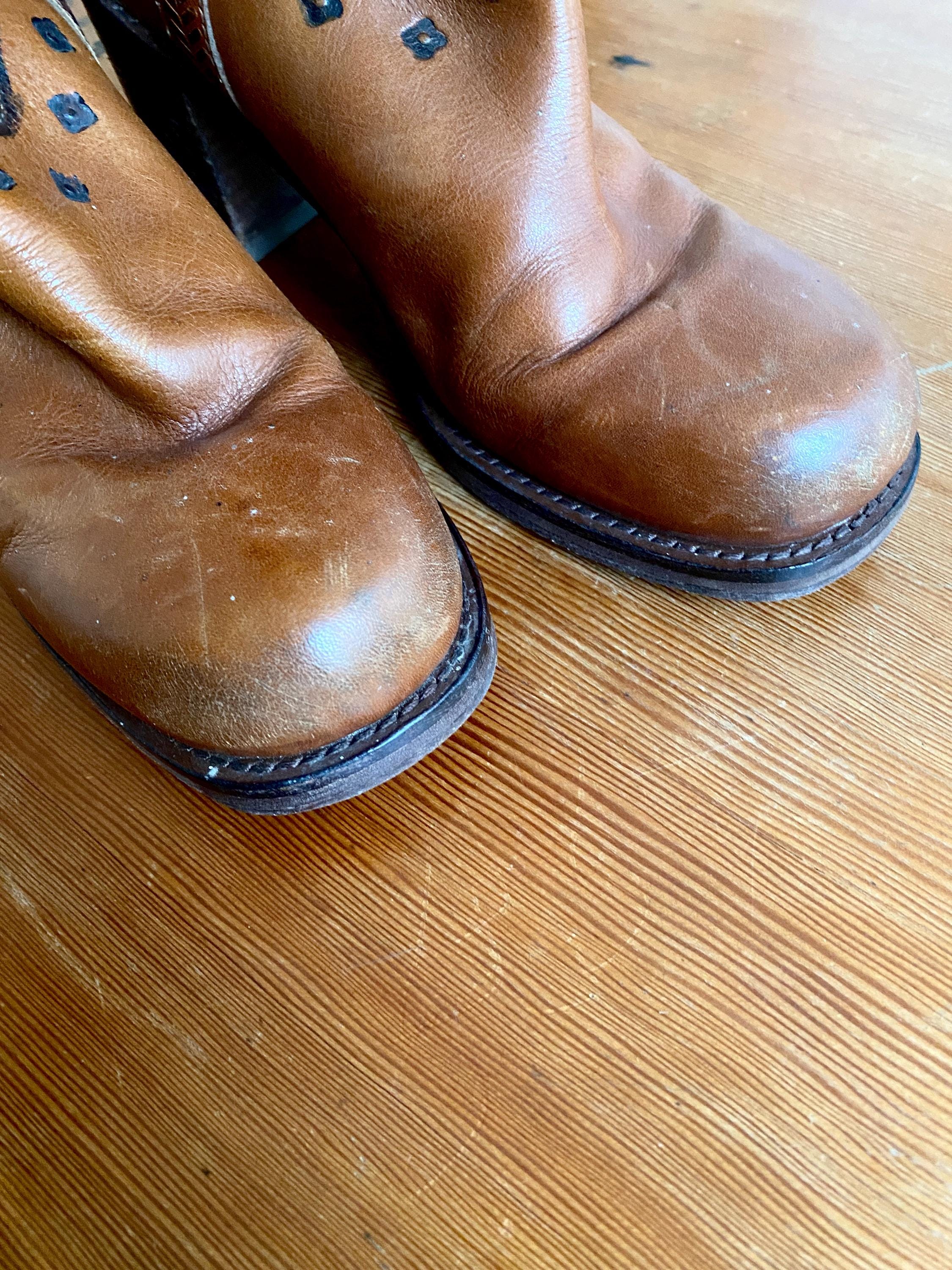 *The outer condition of the boots shows signs of age and wear with patina but still in good wearable vintage condition. The soles are worn but also in wearable condition (see pictures)
