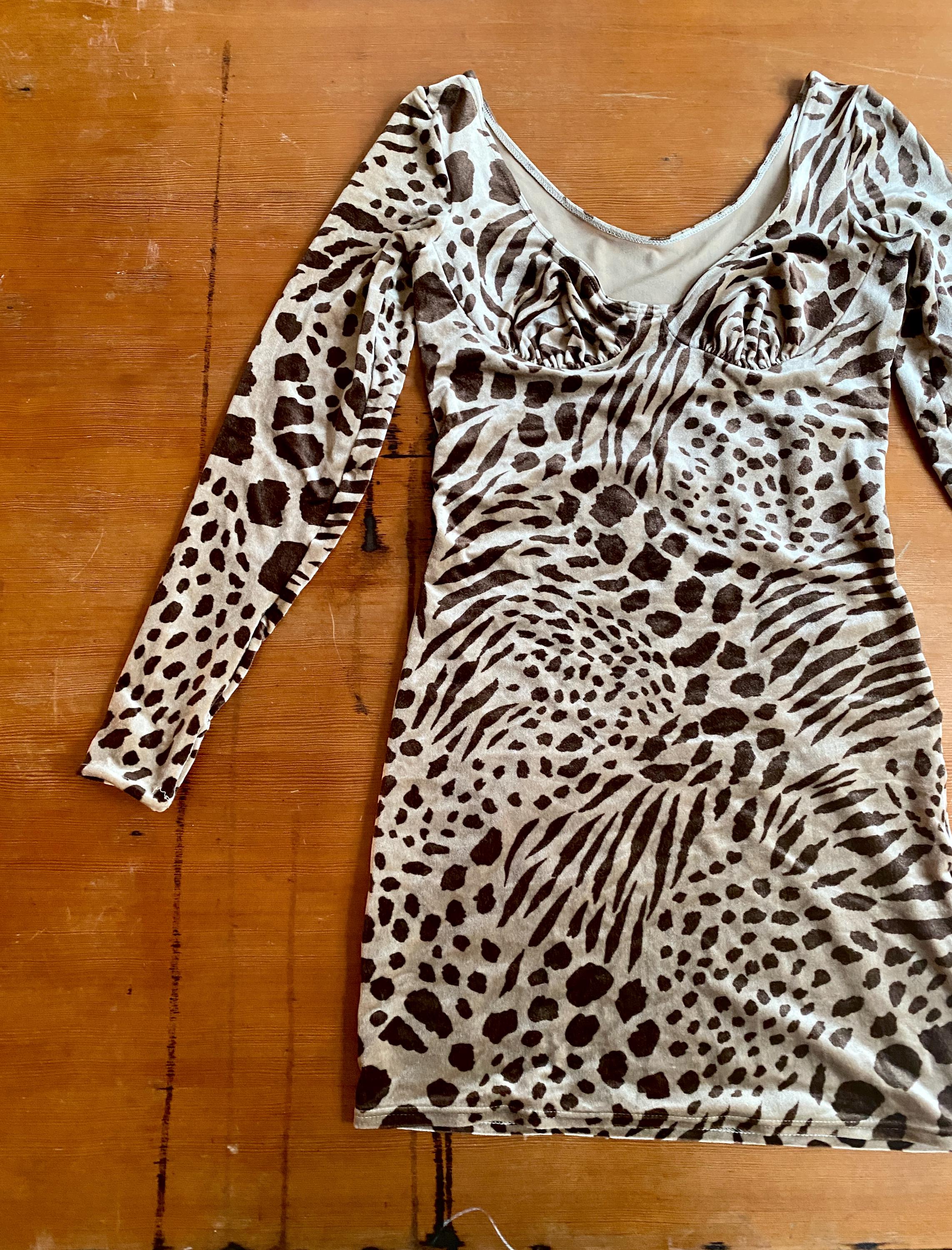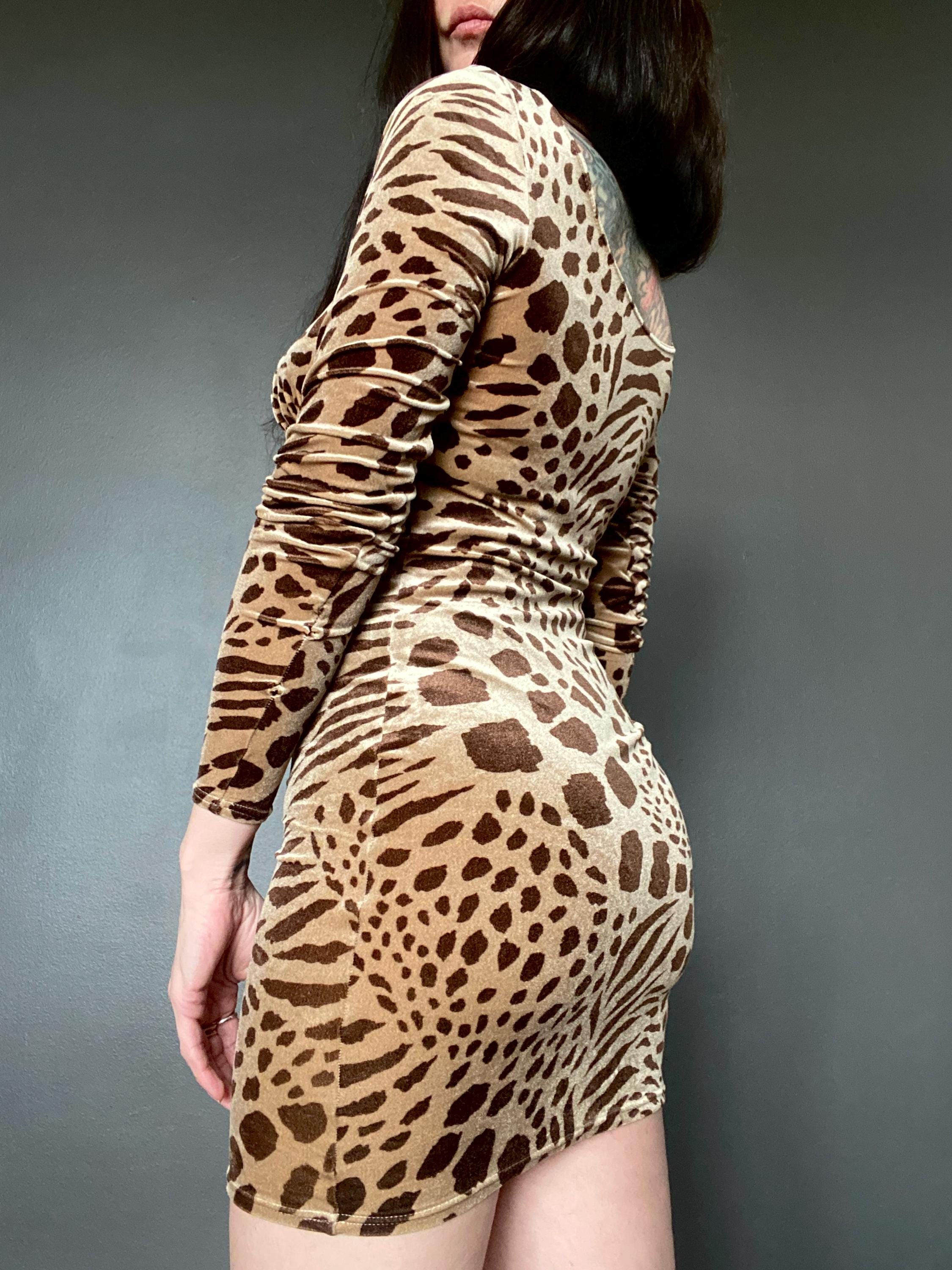1990s Giraffe printed velvet mini dress