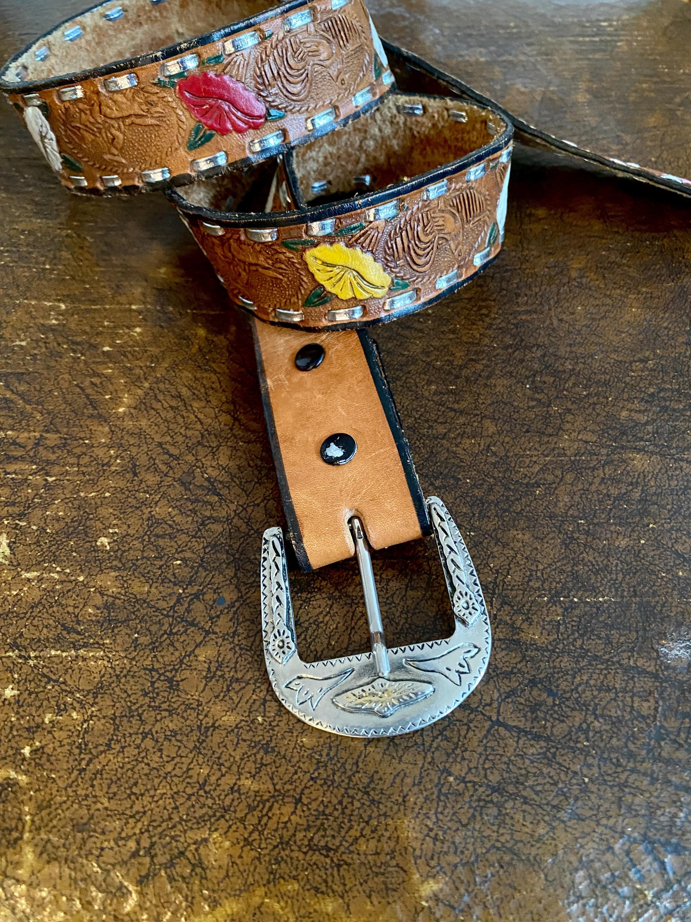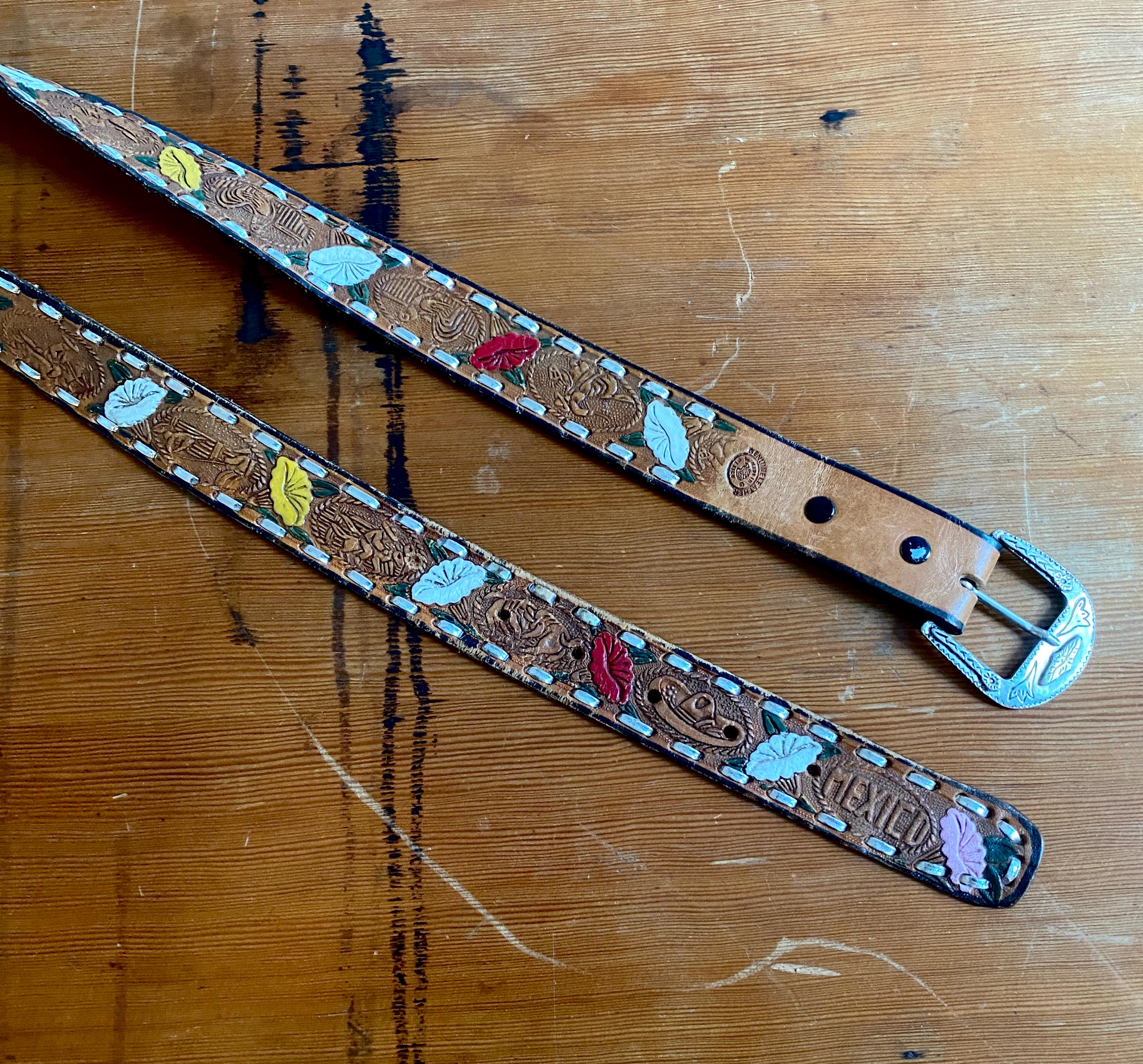 1970s Mexican hand painted belt.