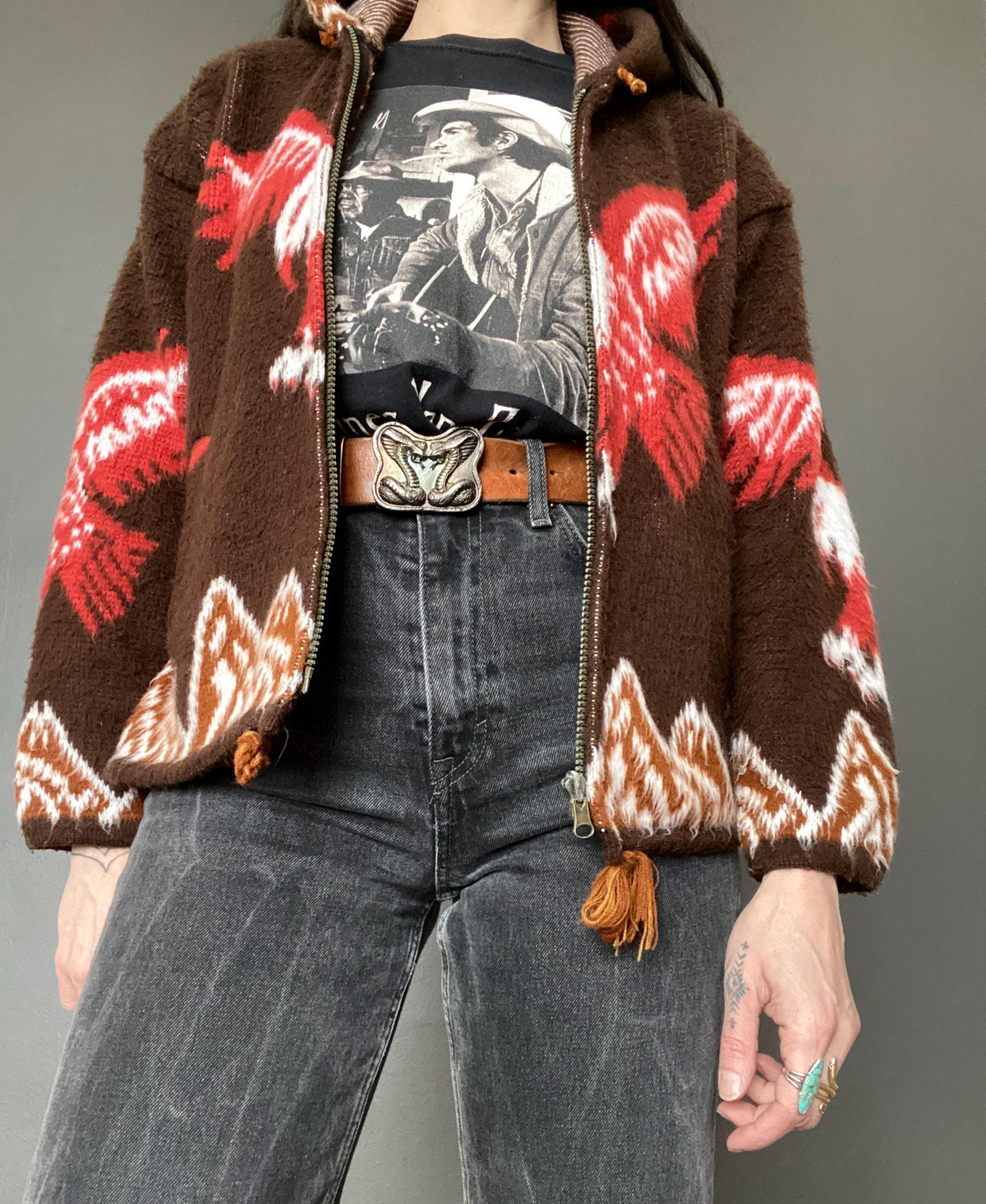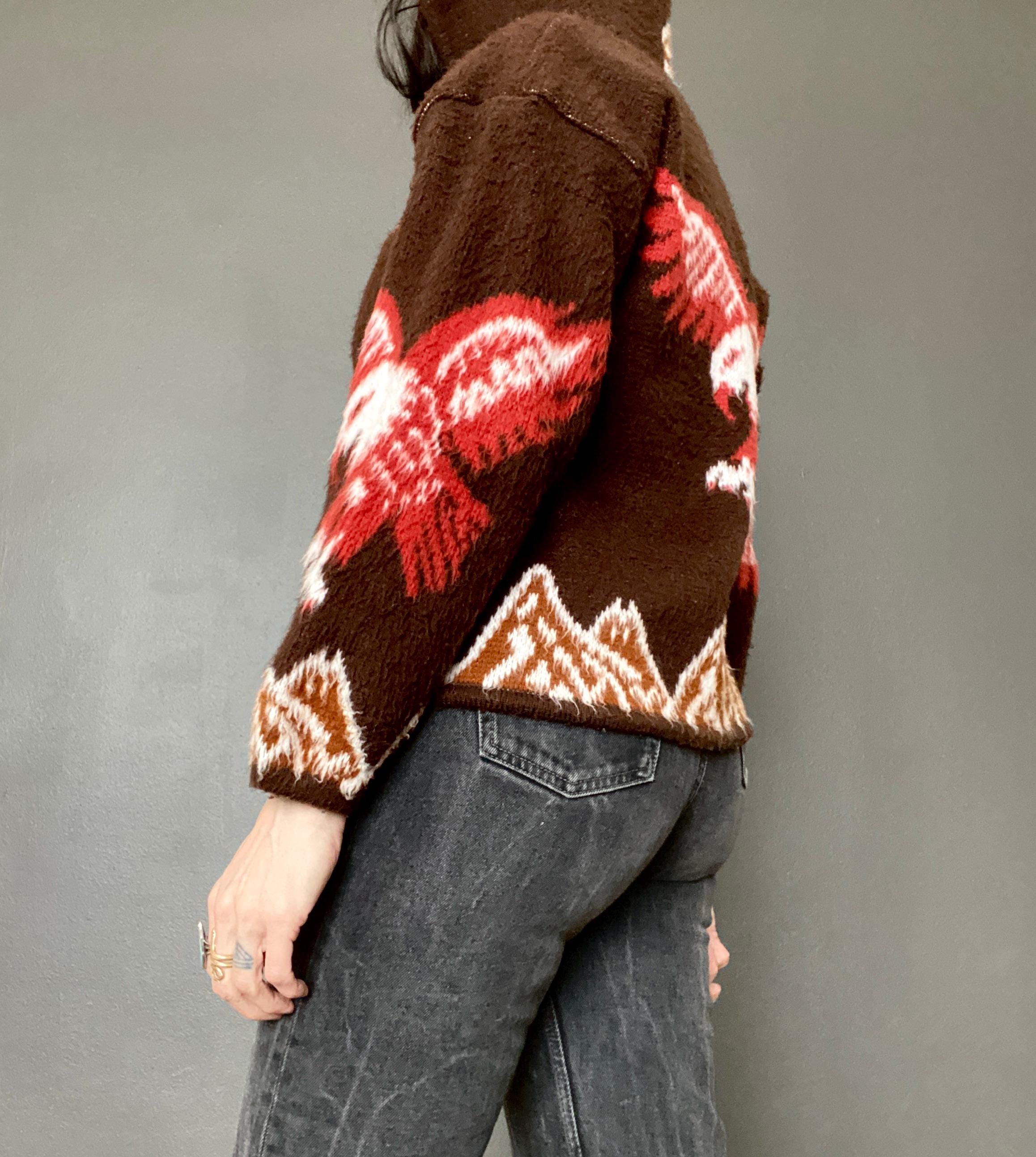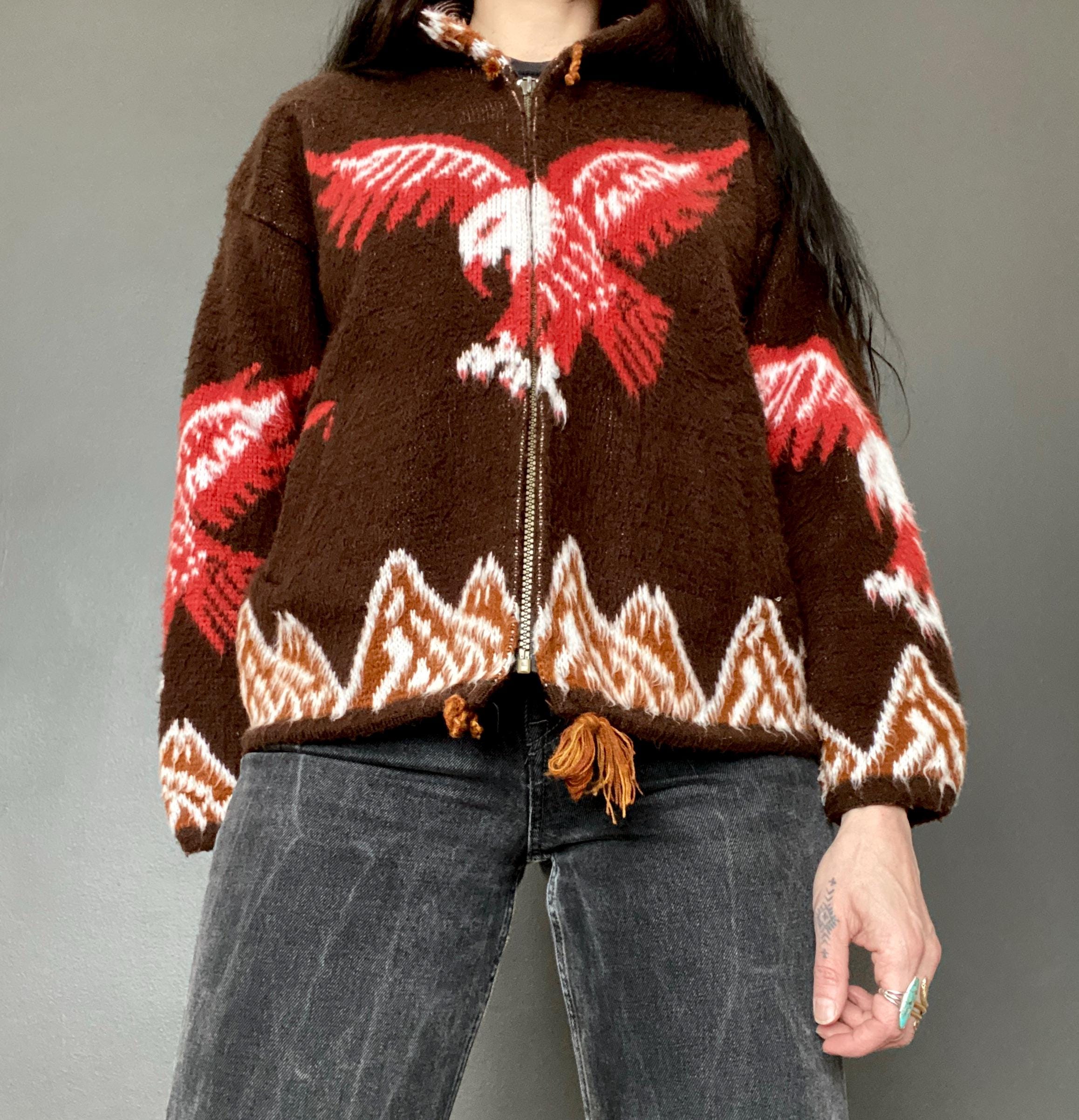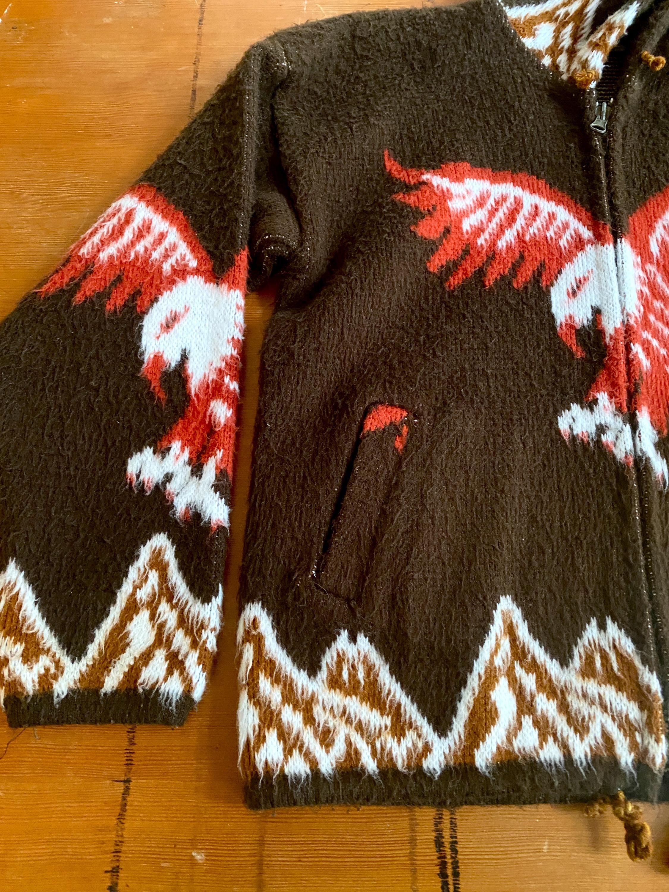 1970s eagle motif hooded sweater cardigan.