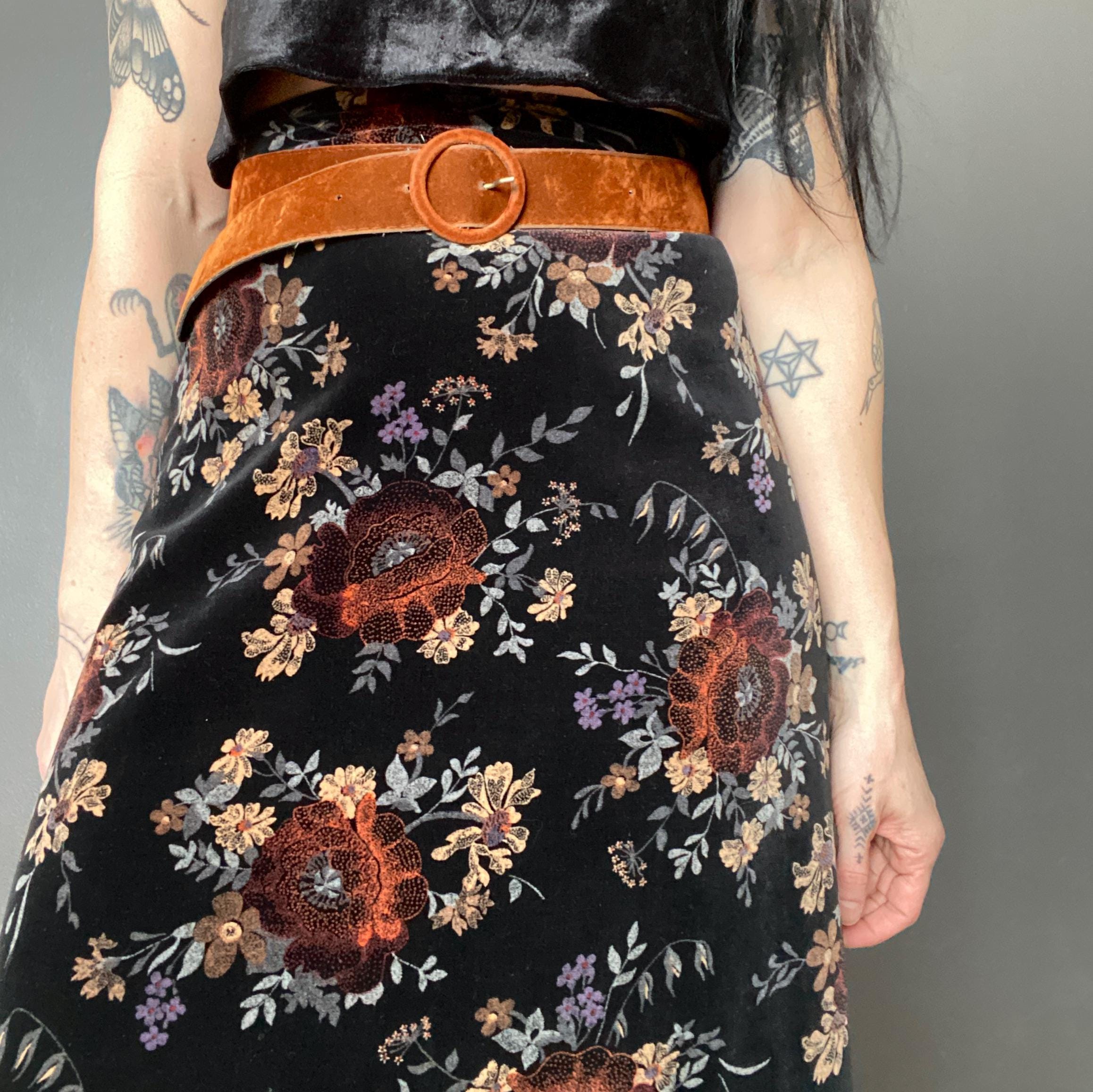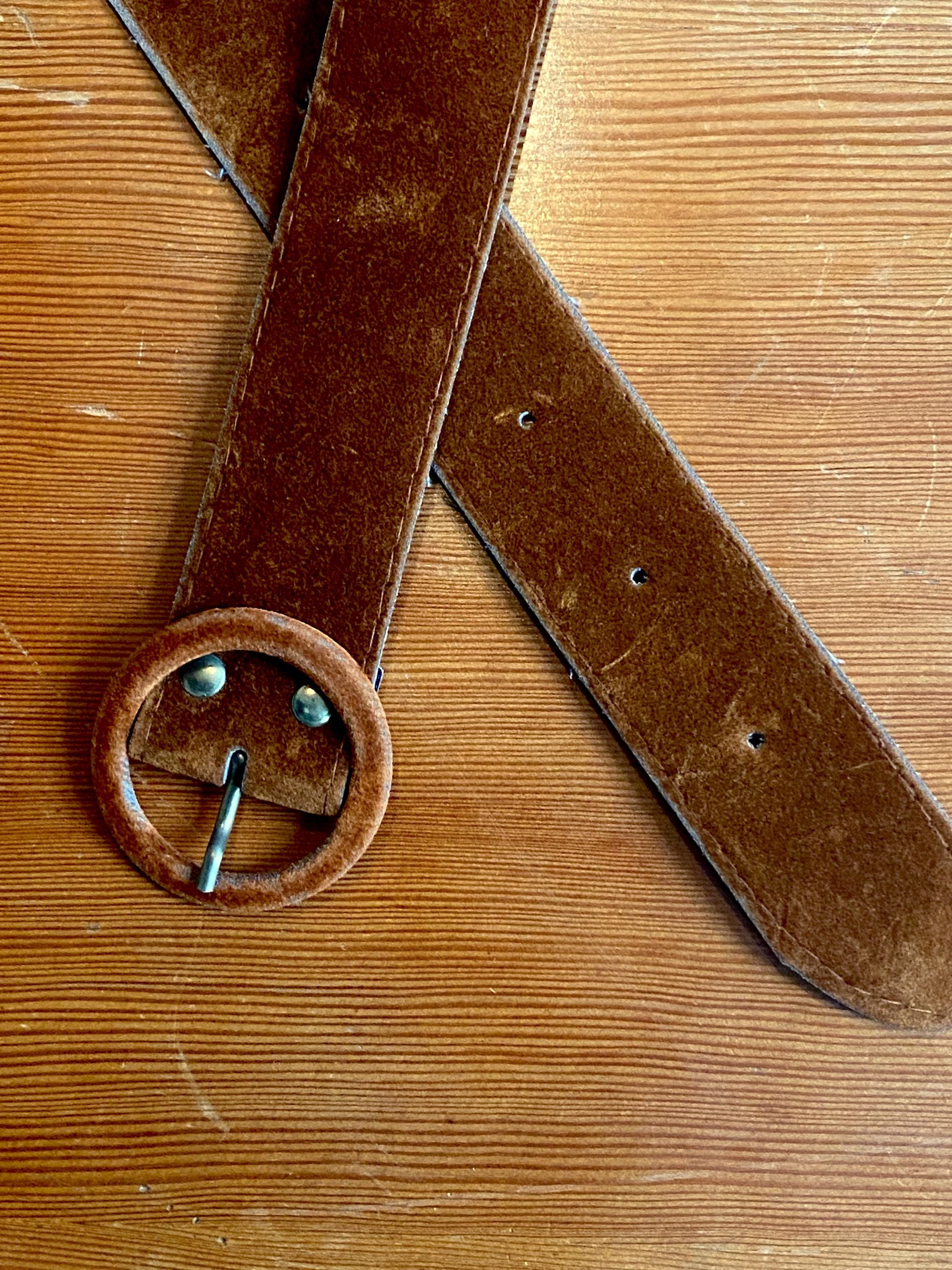 1970s dark caramel colored velvet belt.
