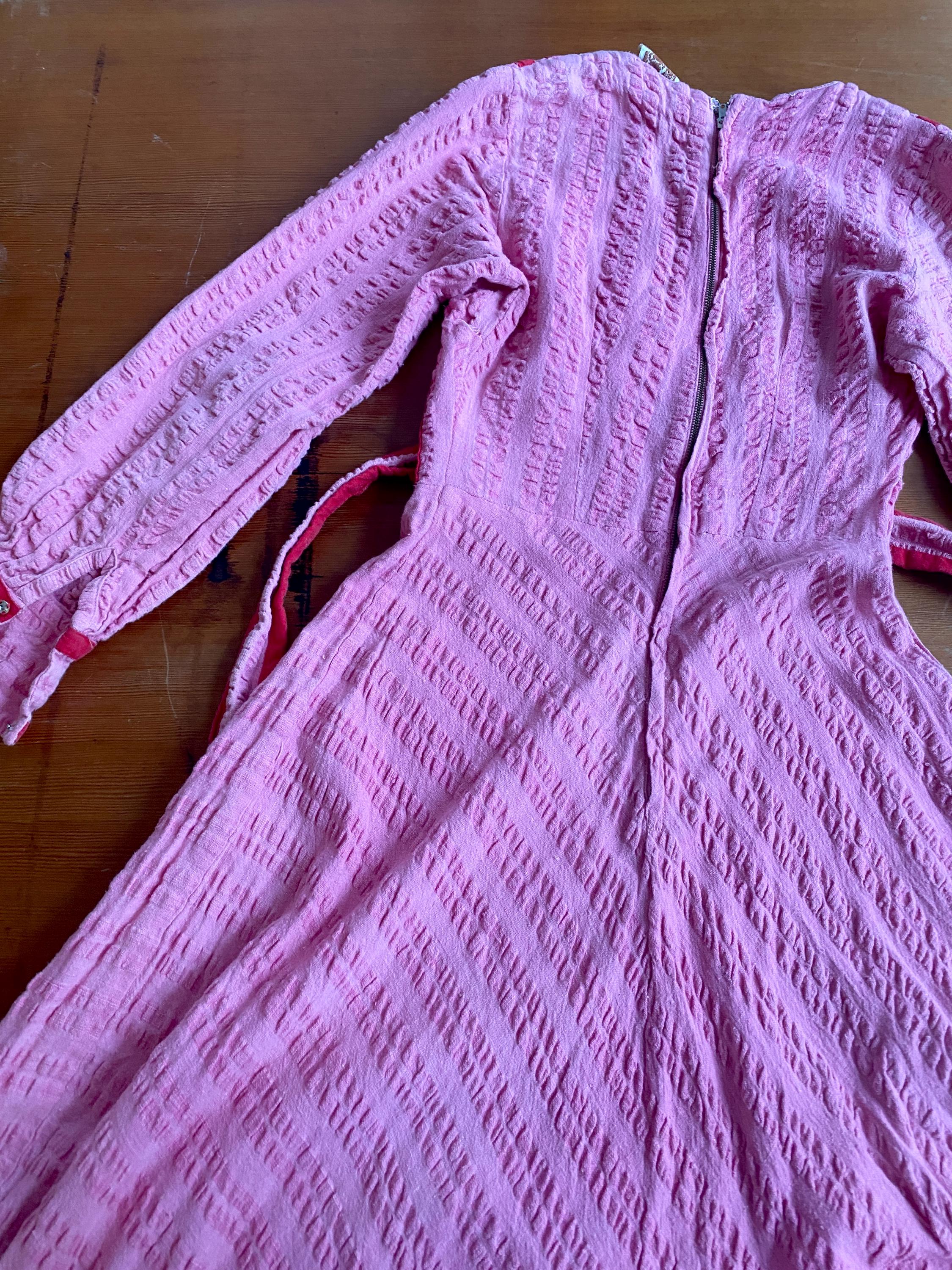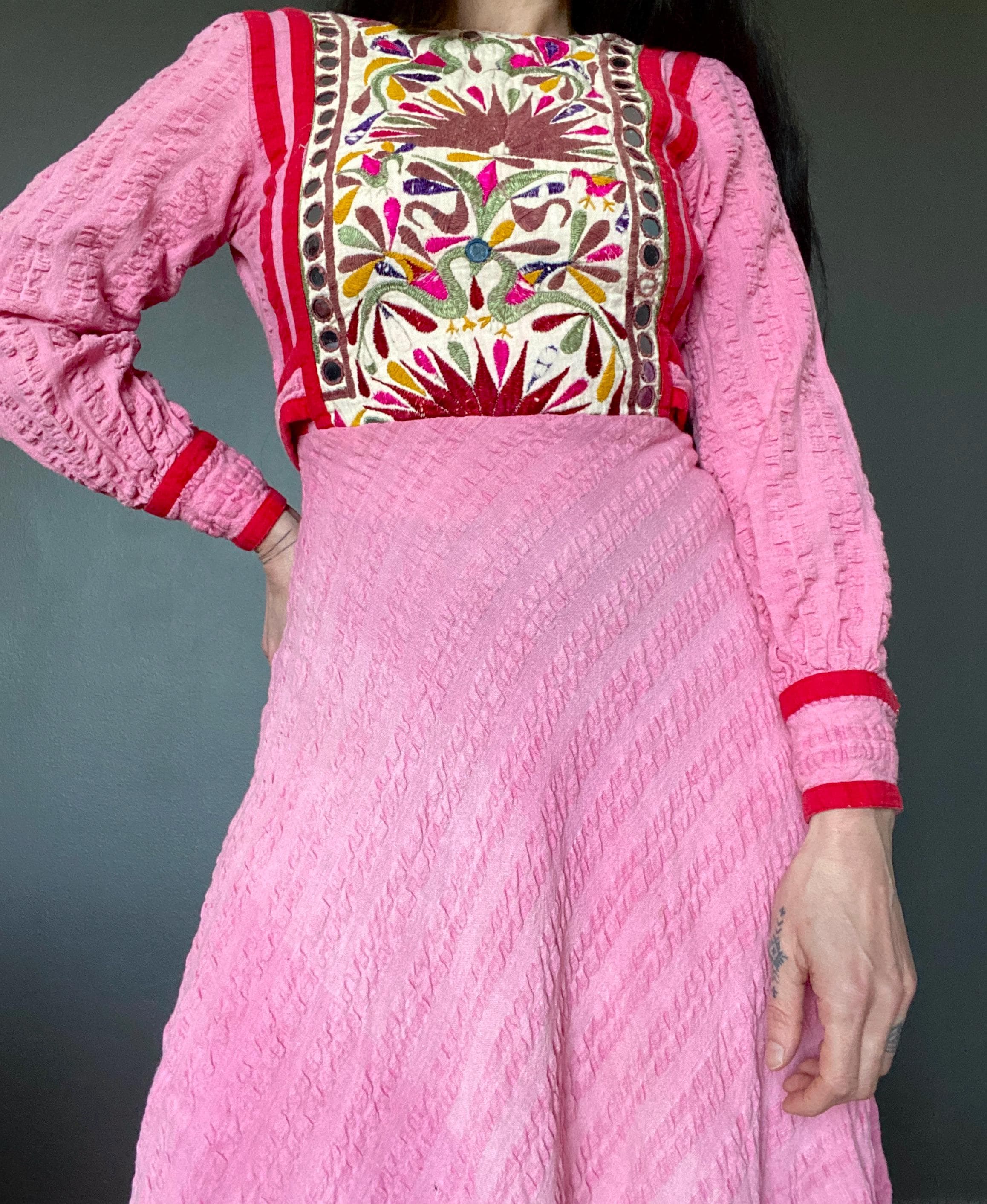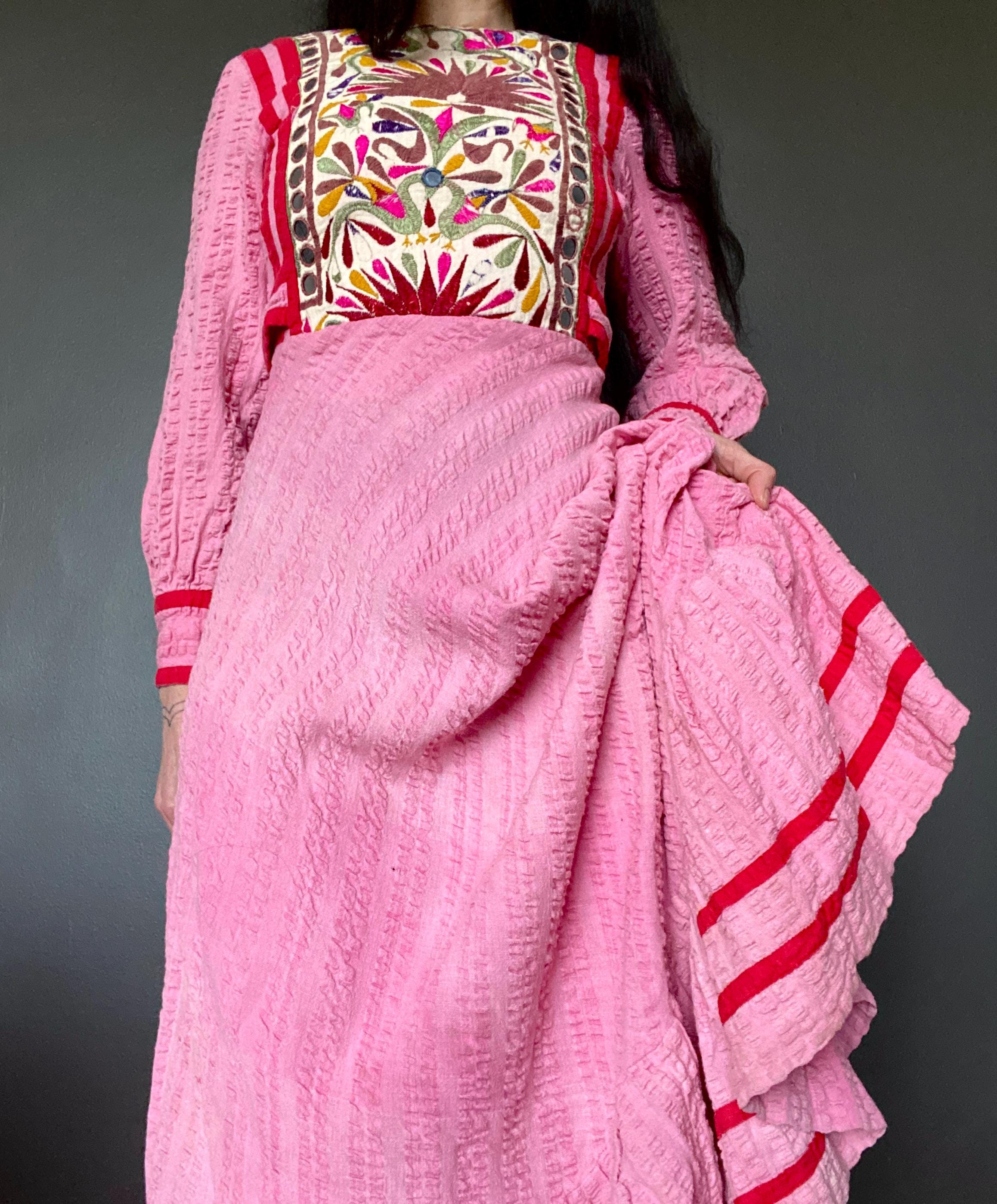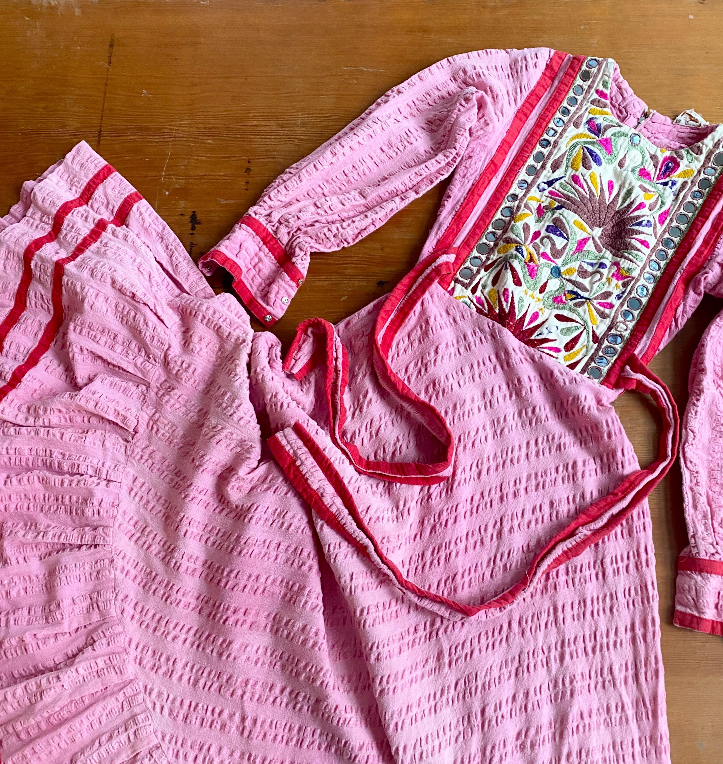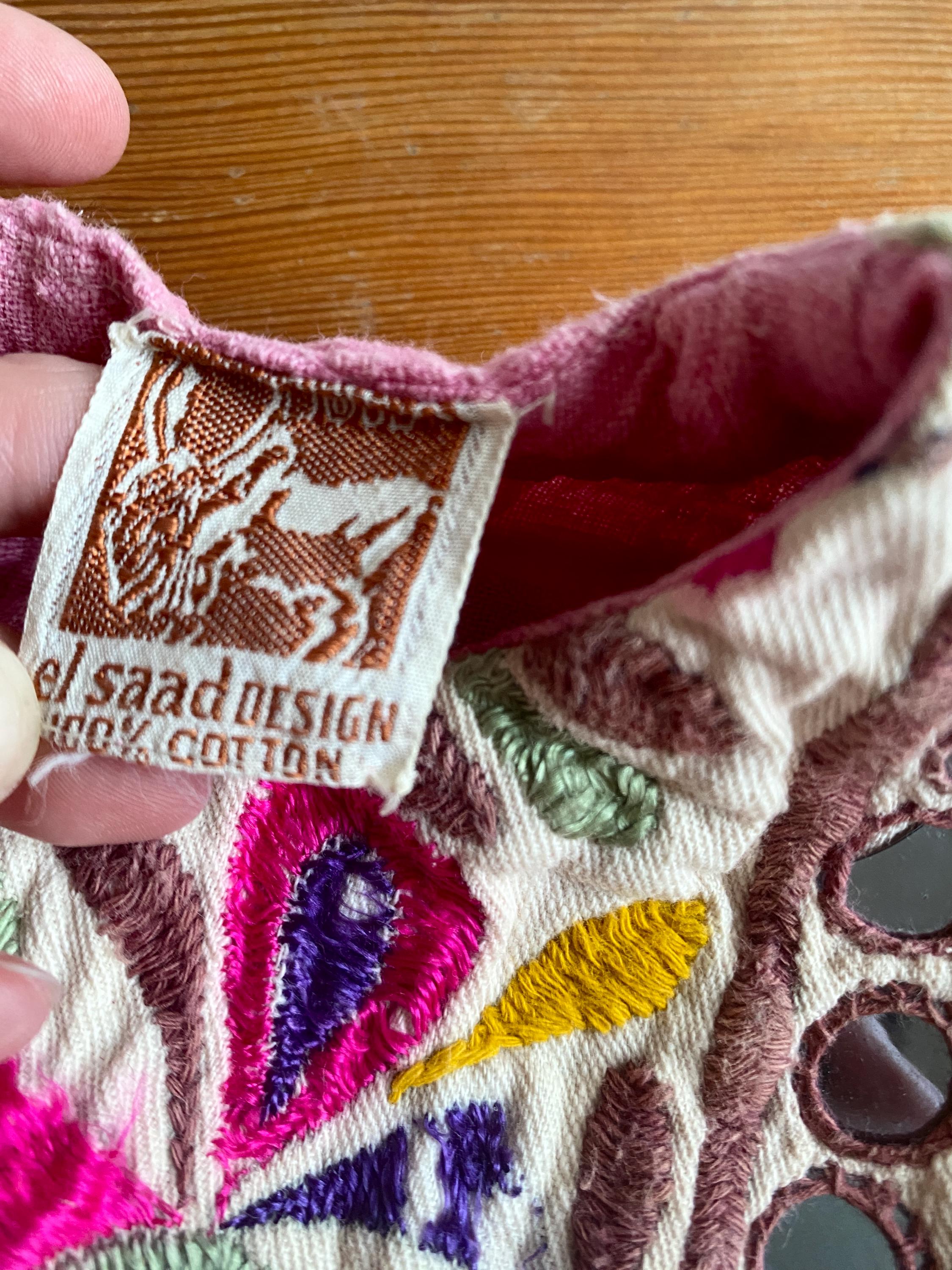 *Used vintage condition. Shows signs of age and wear. The skirt has some faded areas and the the embroidery shows clear signs of age and wear (see pictures) The hem has some discoloration and there is a small hole on the skirt.