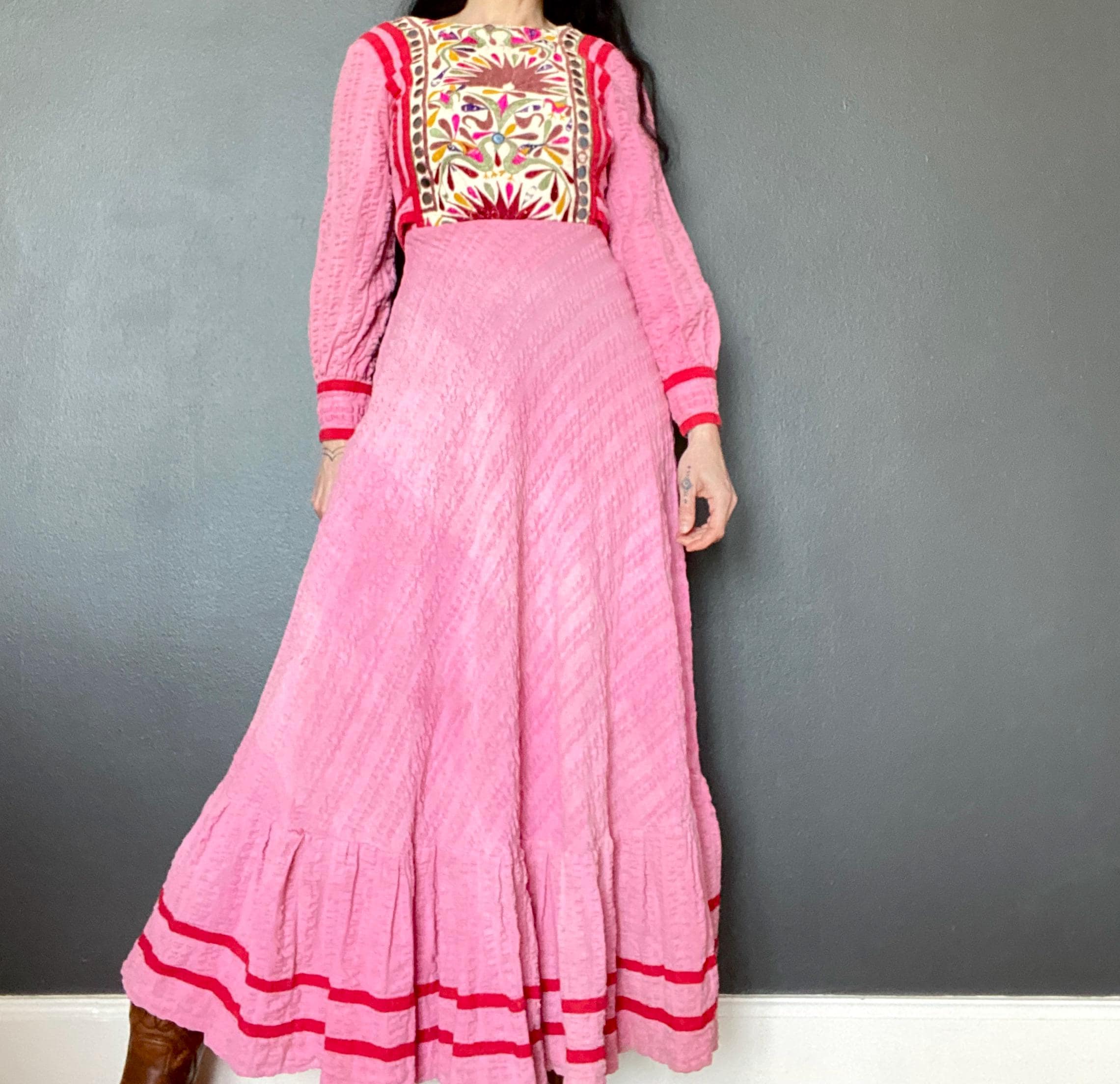 1970s Embroidered maxi dress.