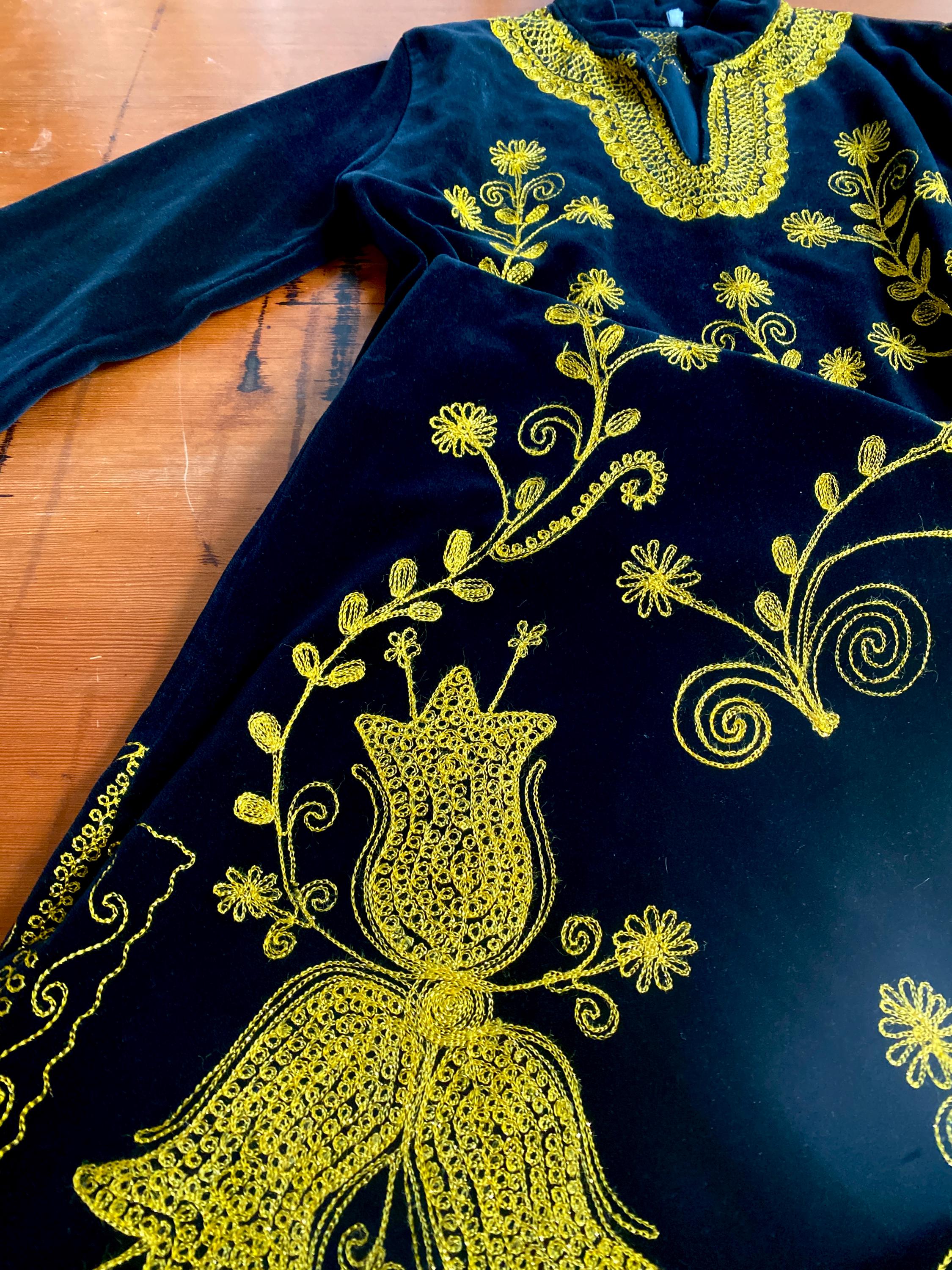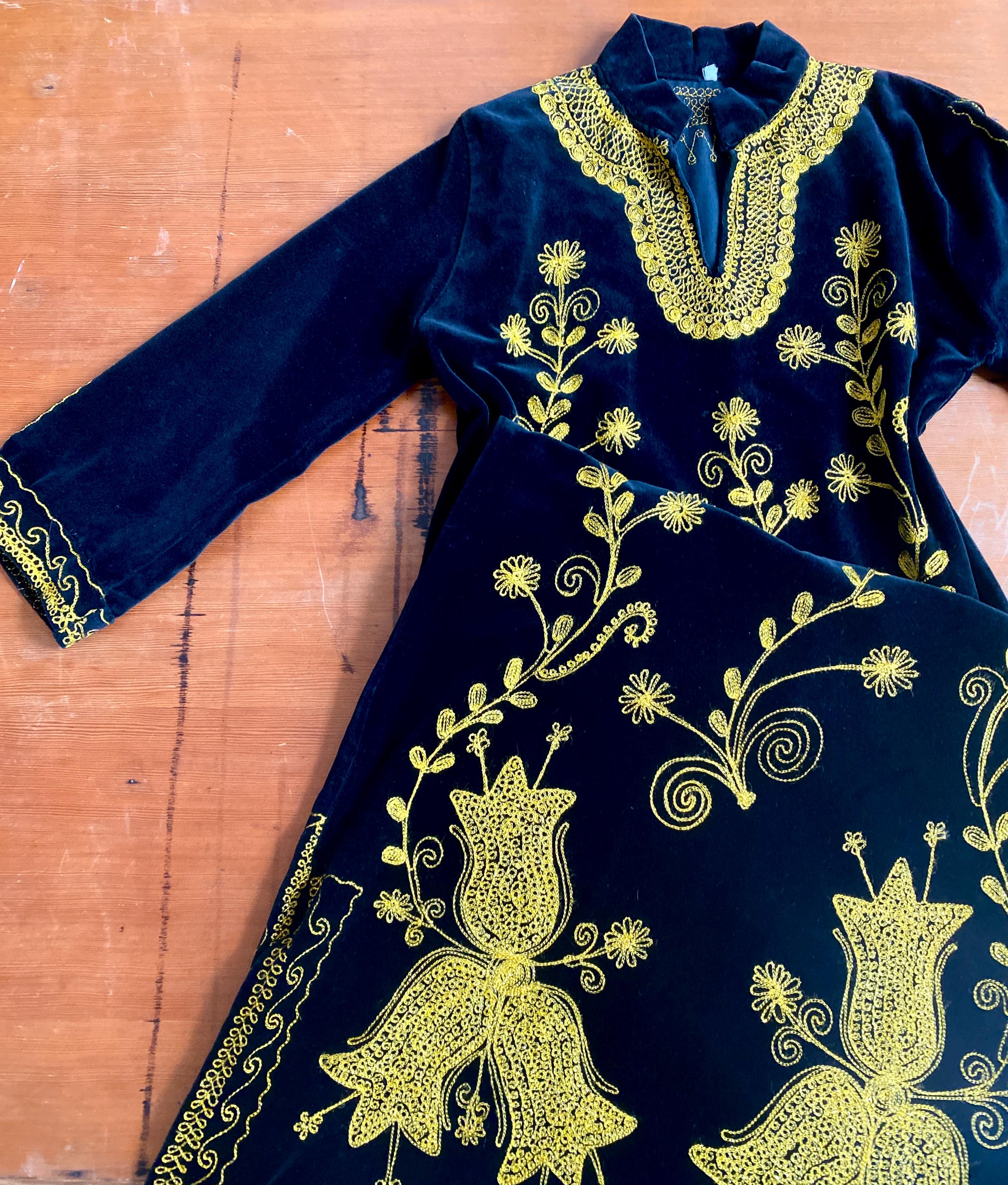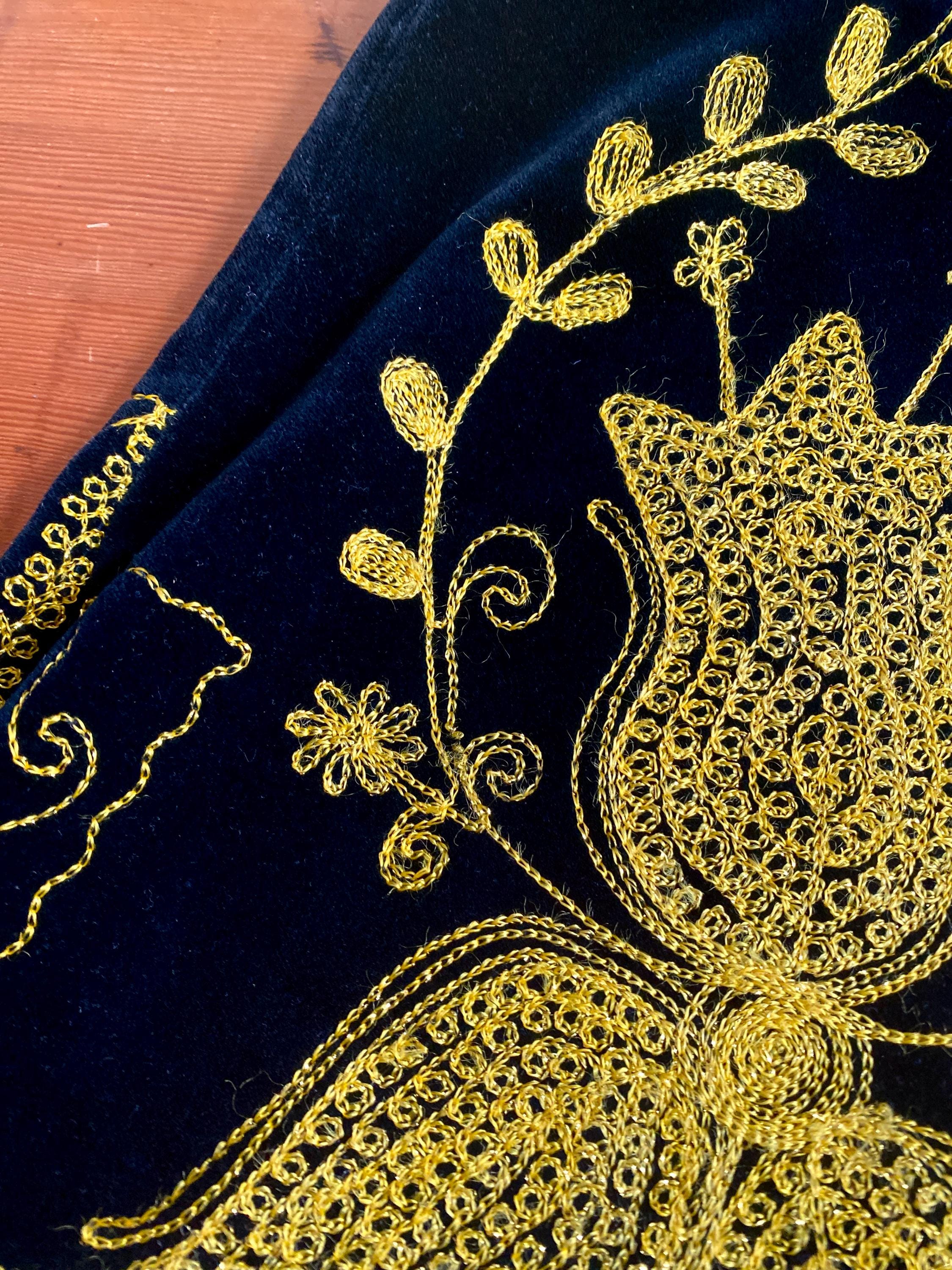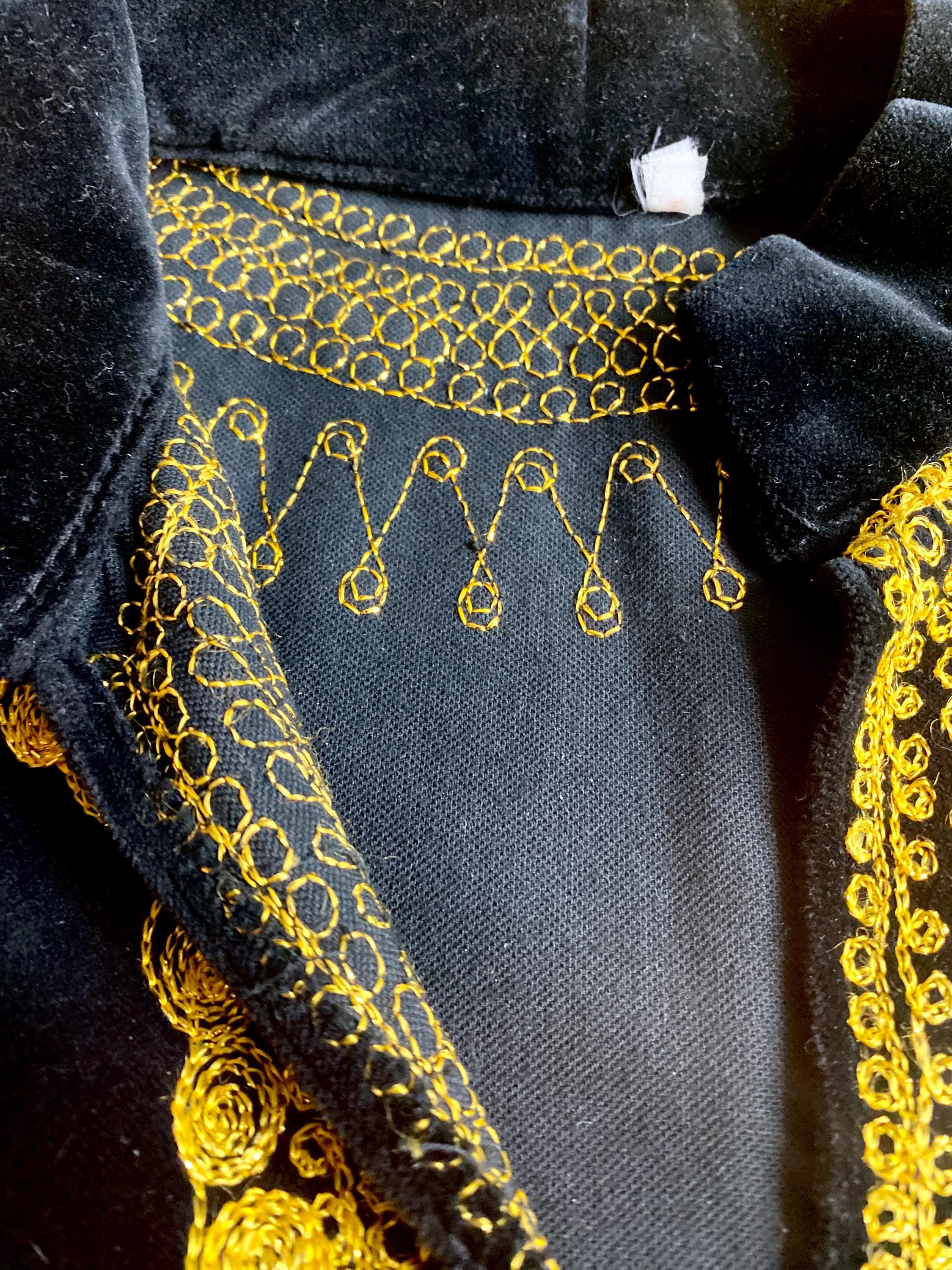*Black velvet with gold embroidery