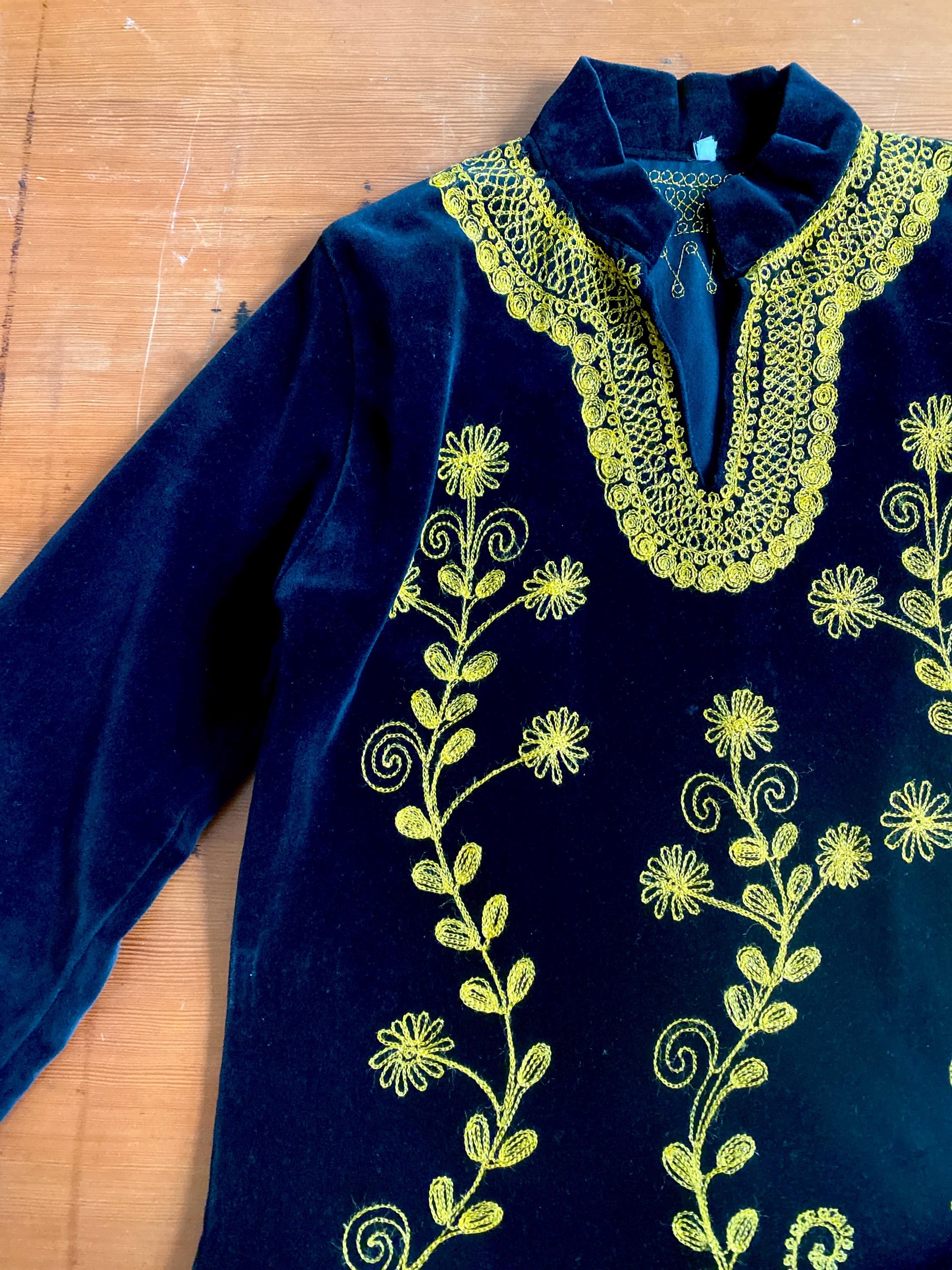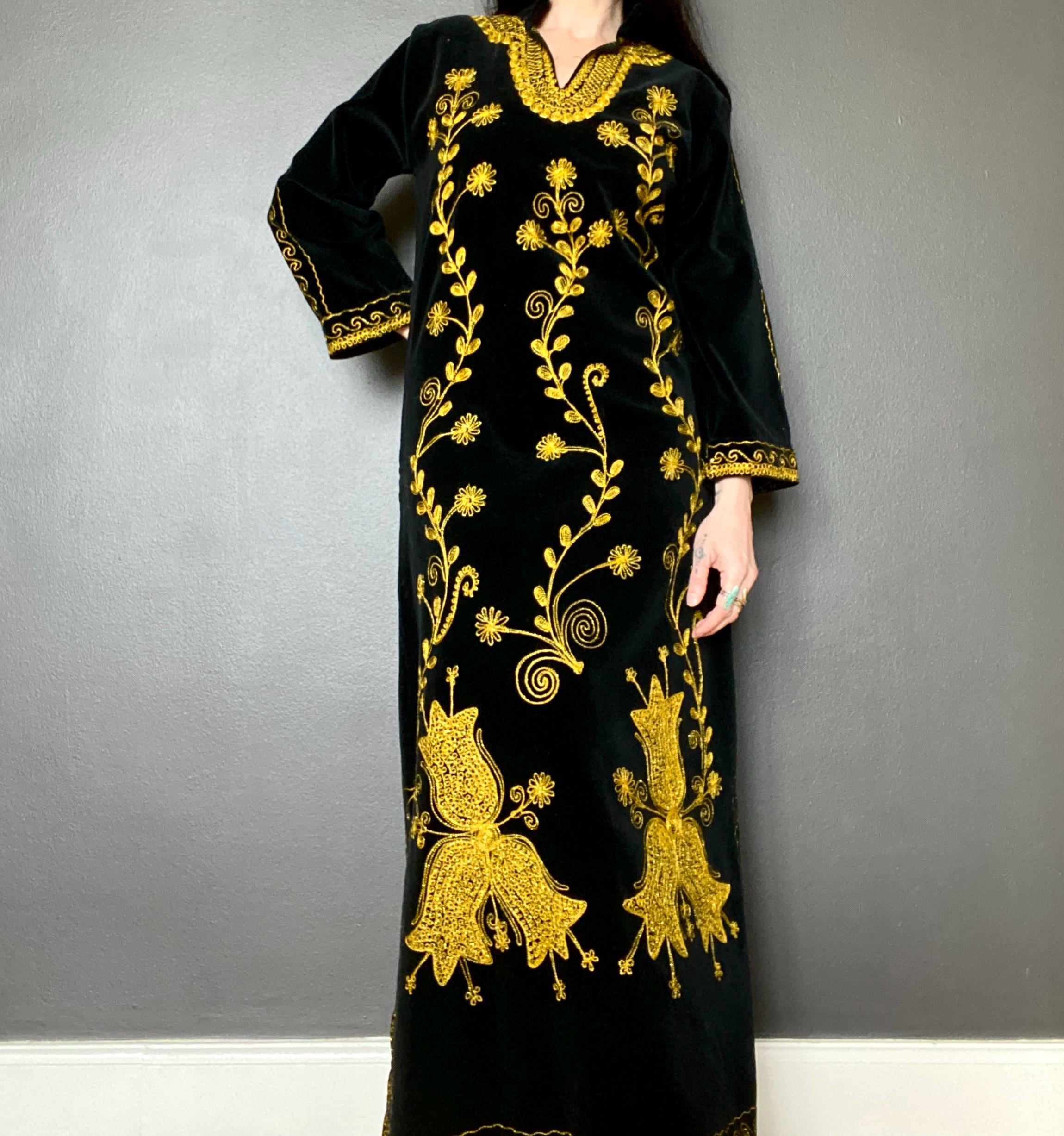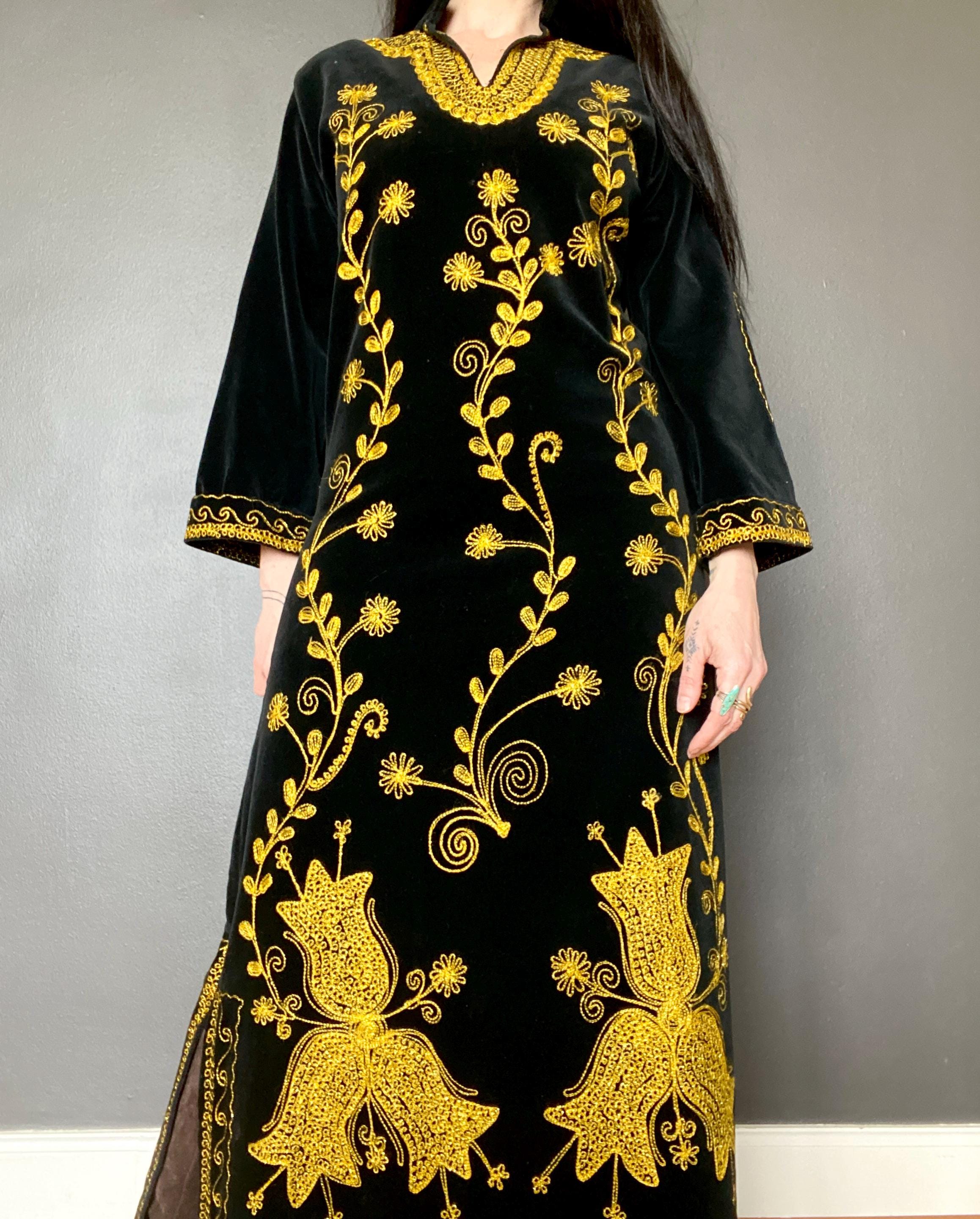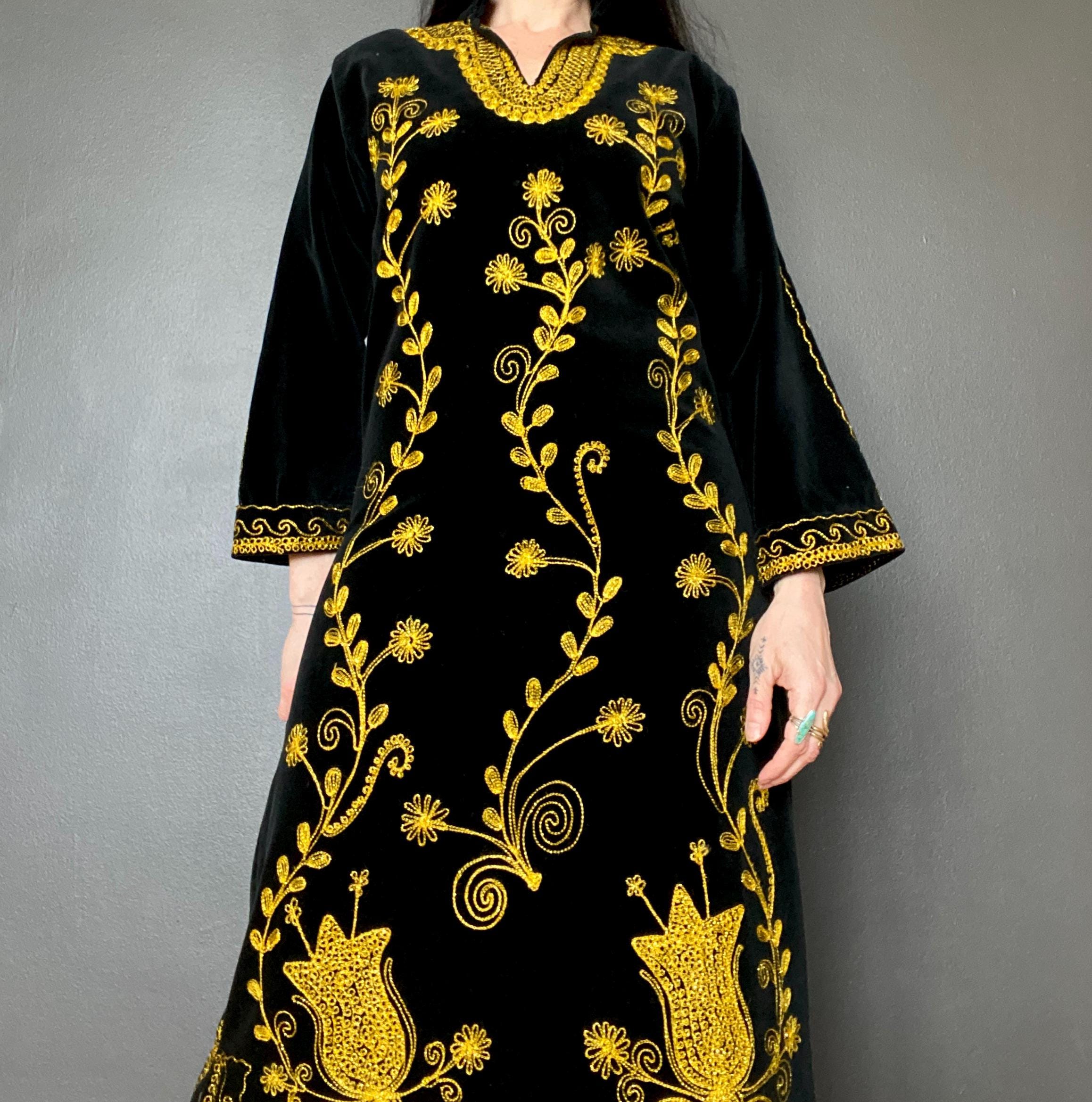 *Black velvet with gold embroidery
