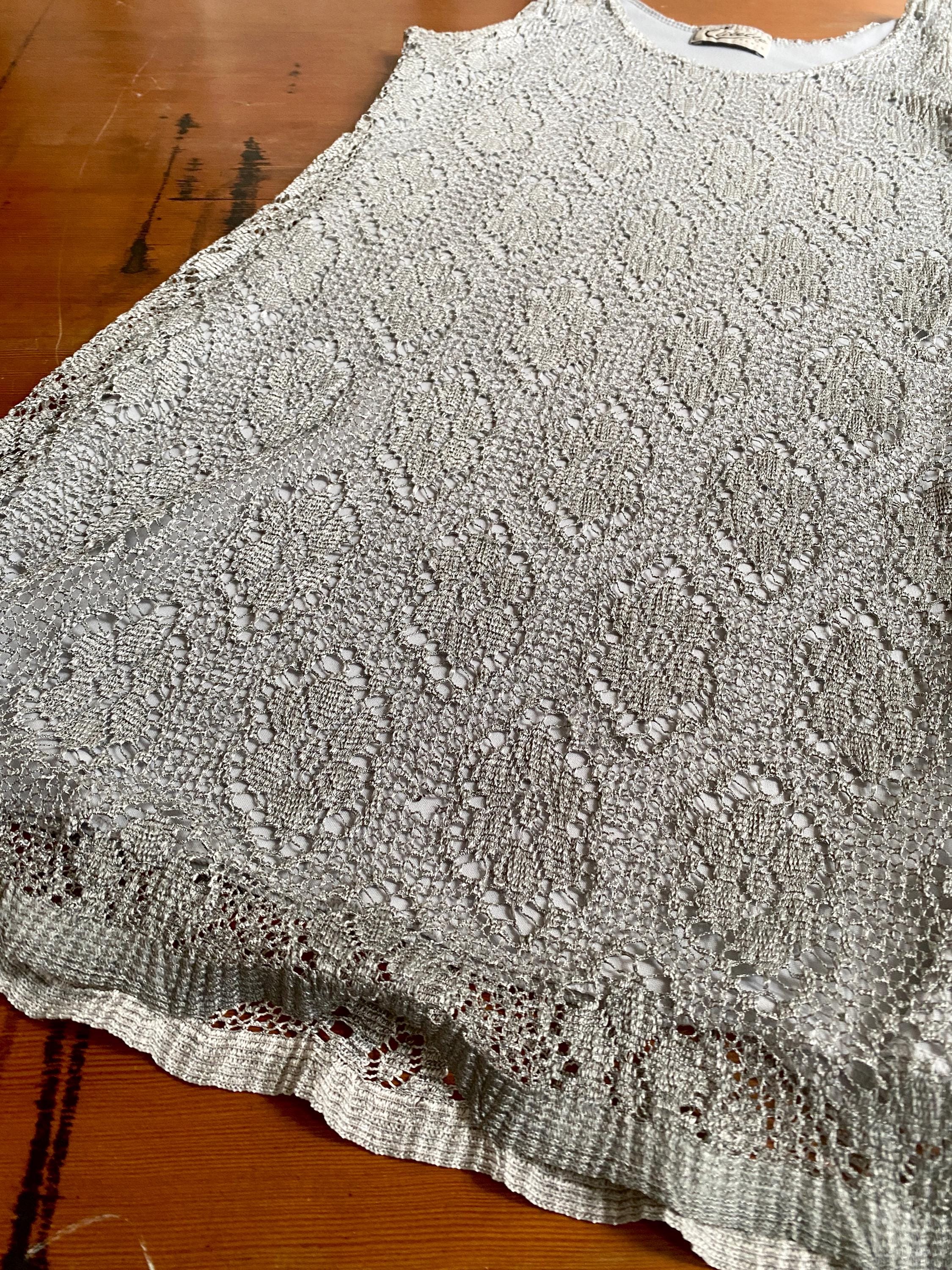 *Gray silver synthetic lace fabric with stretch.