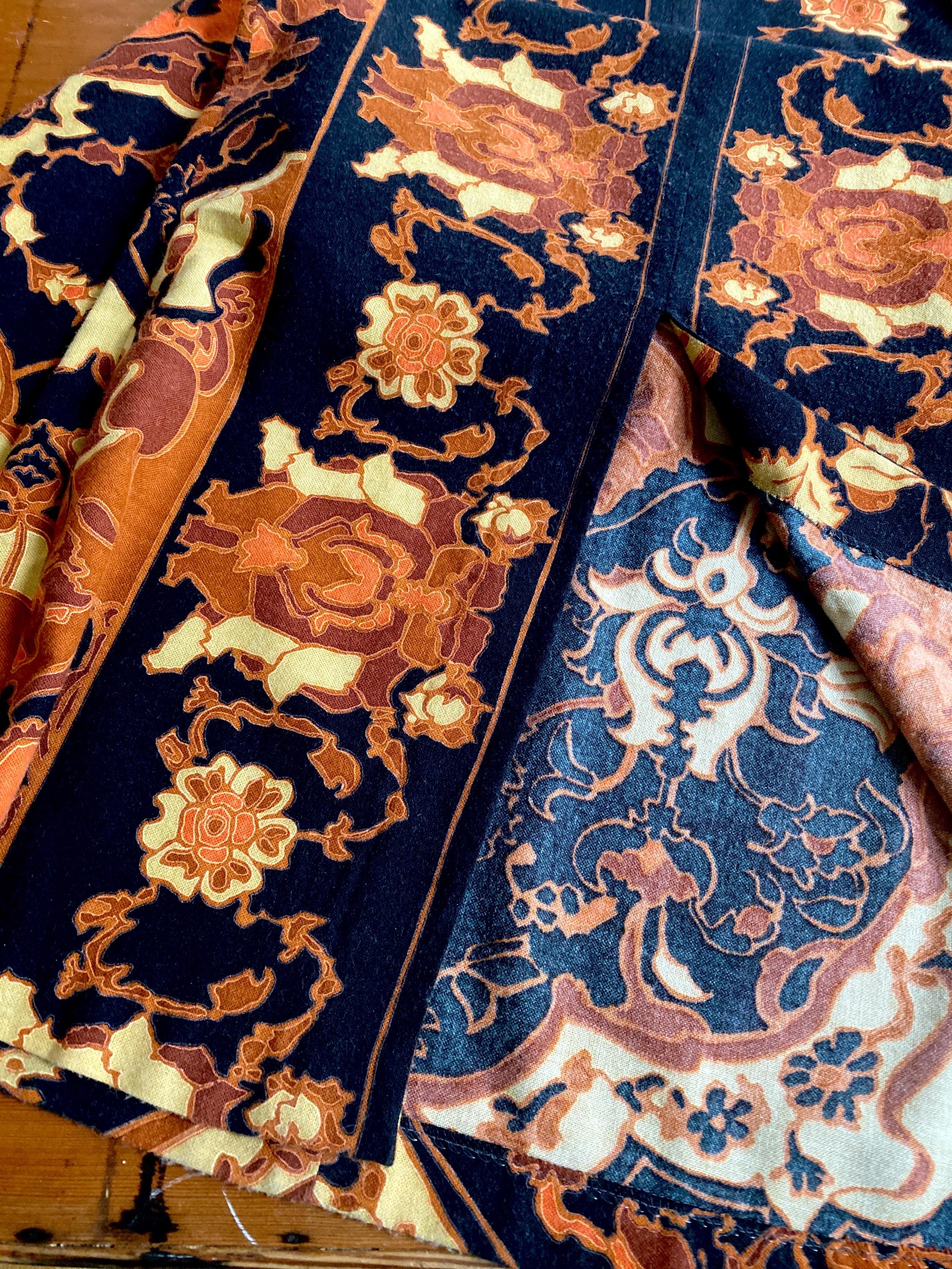 *Black with orange and brown geometric pattern