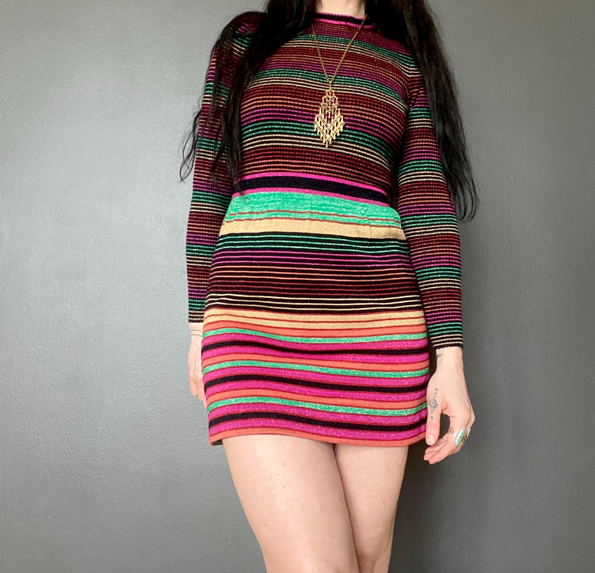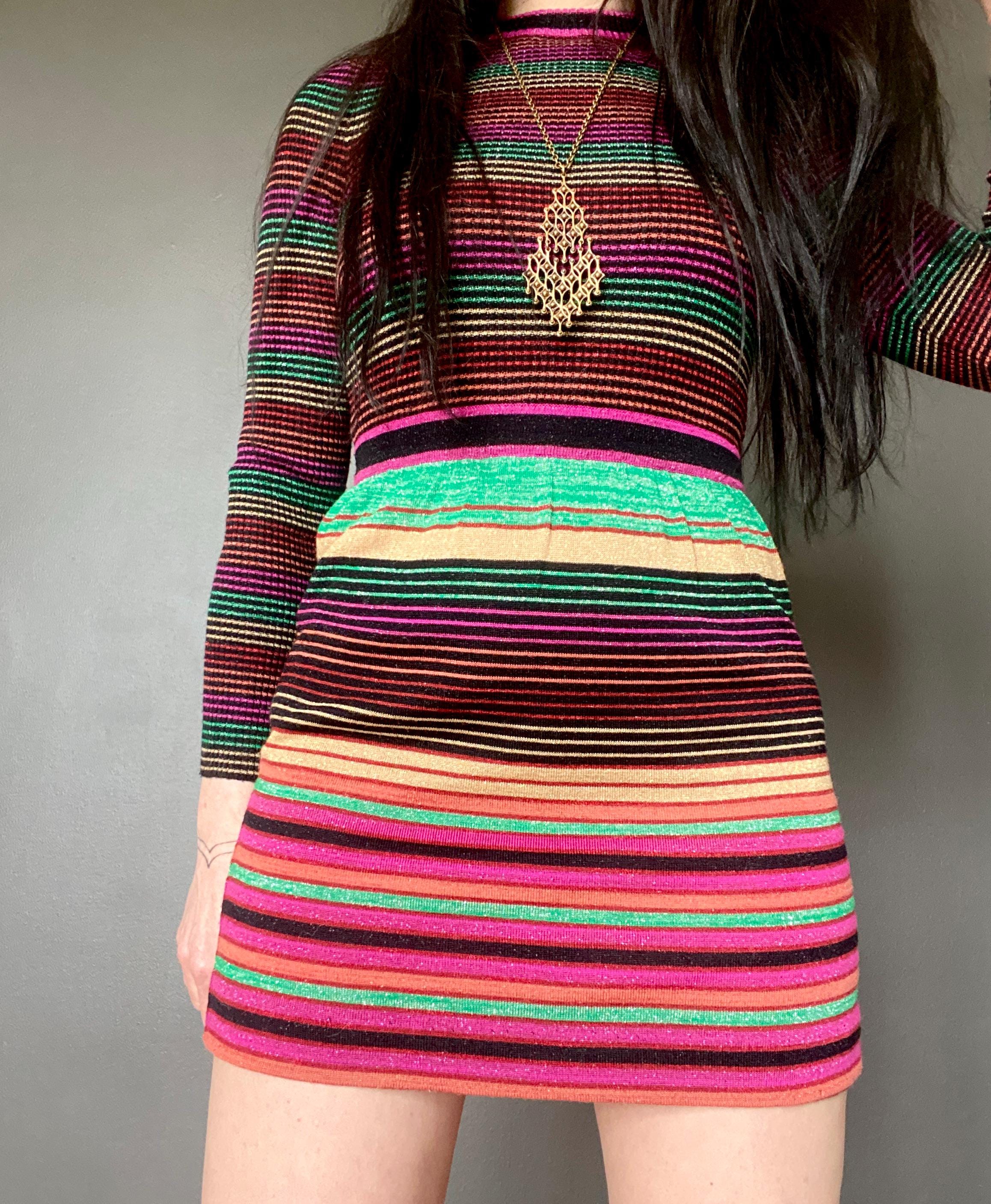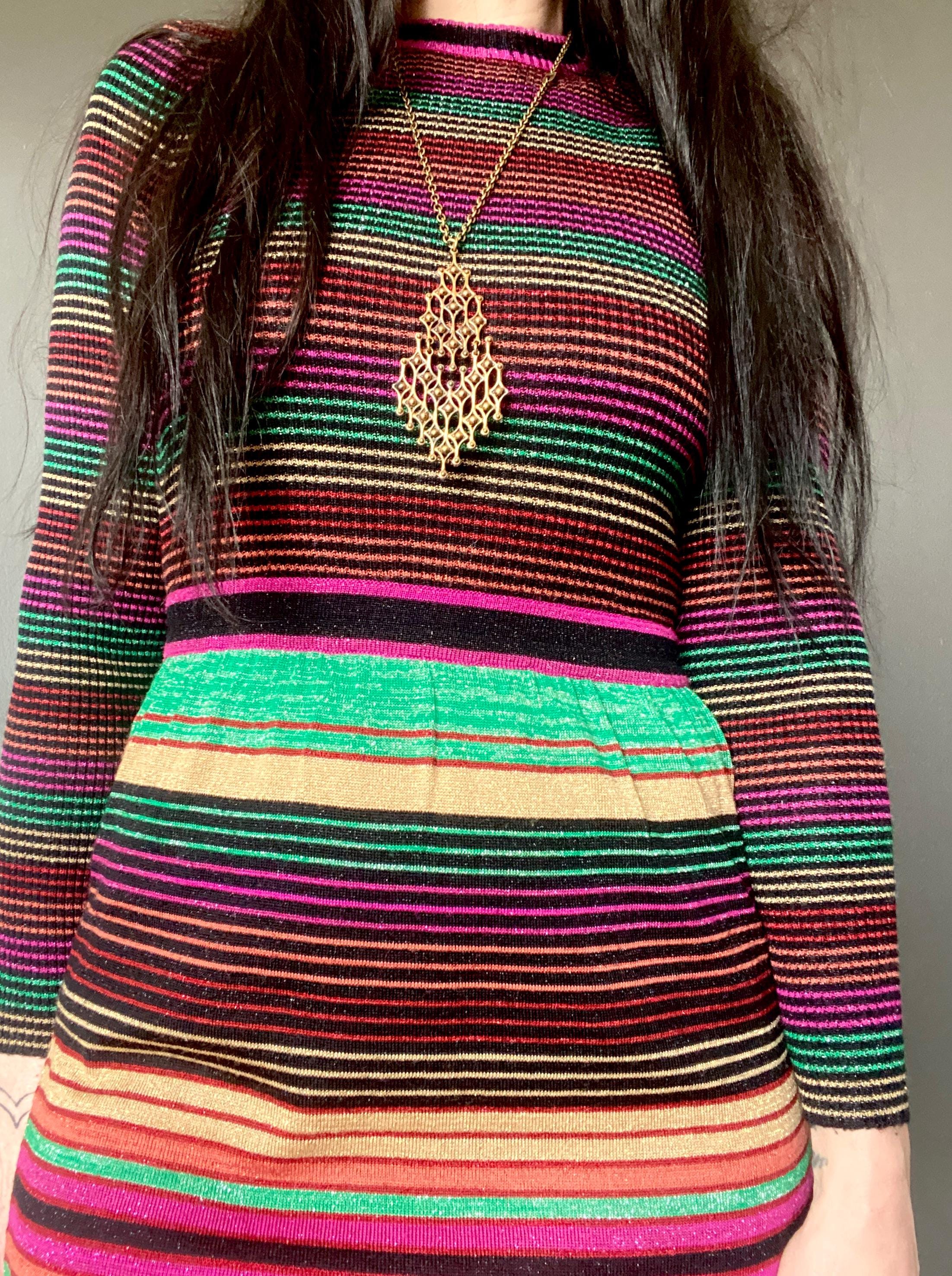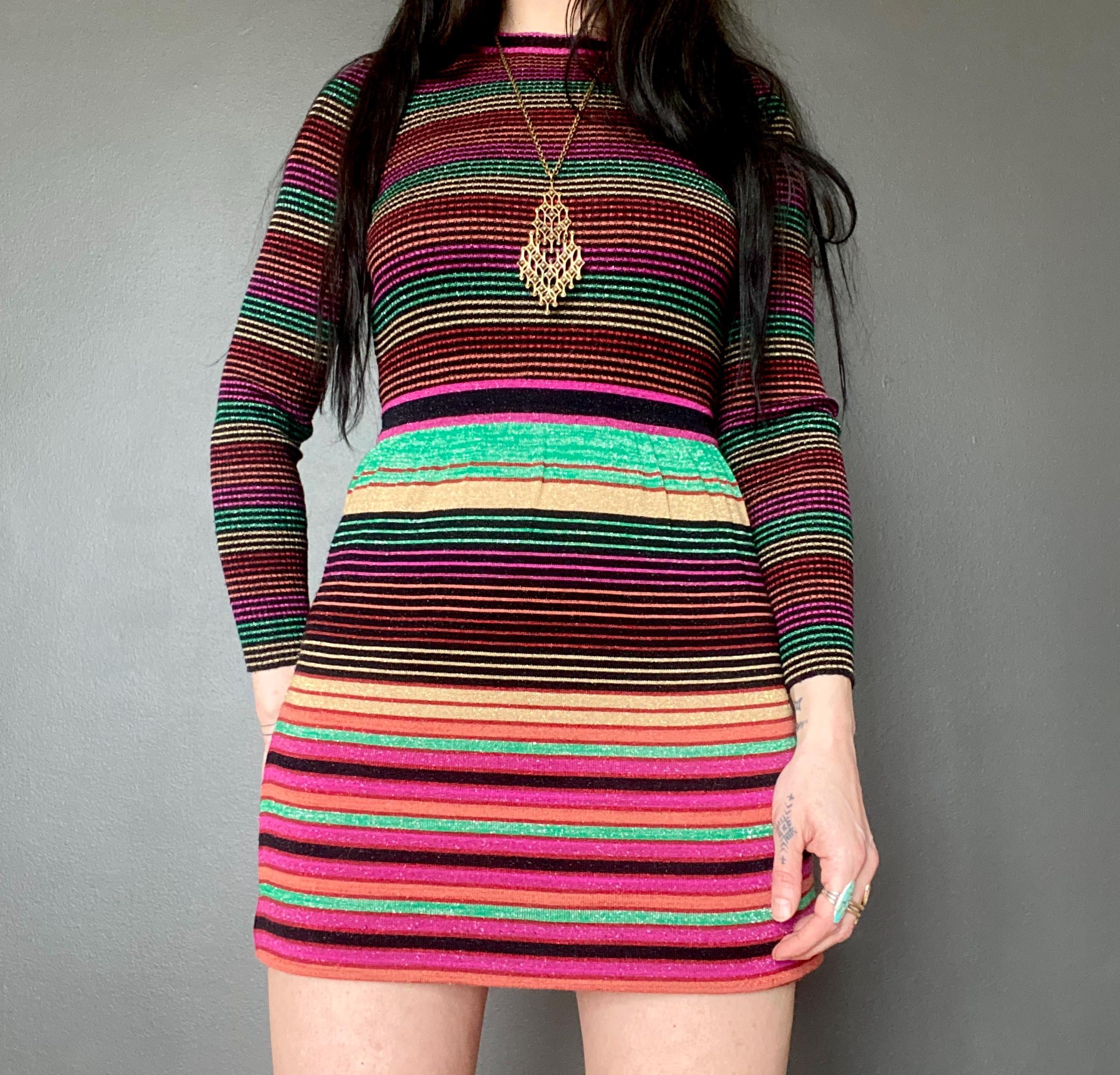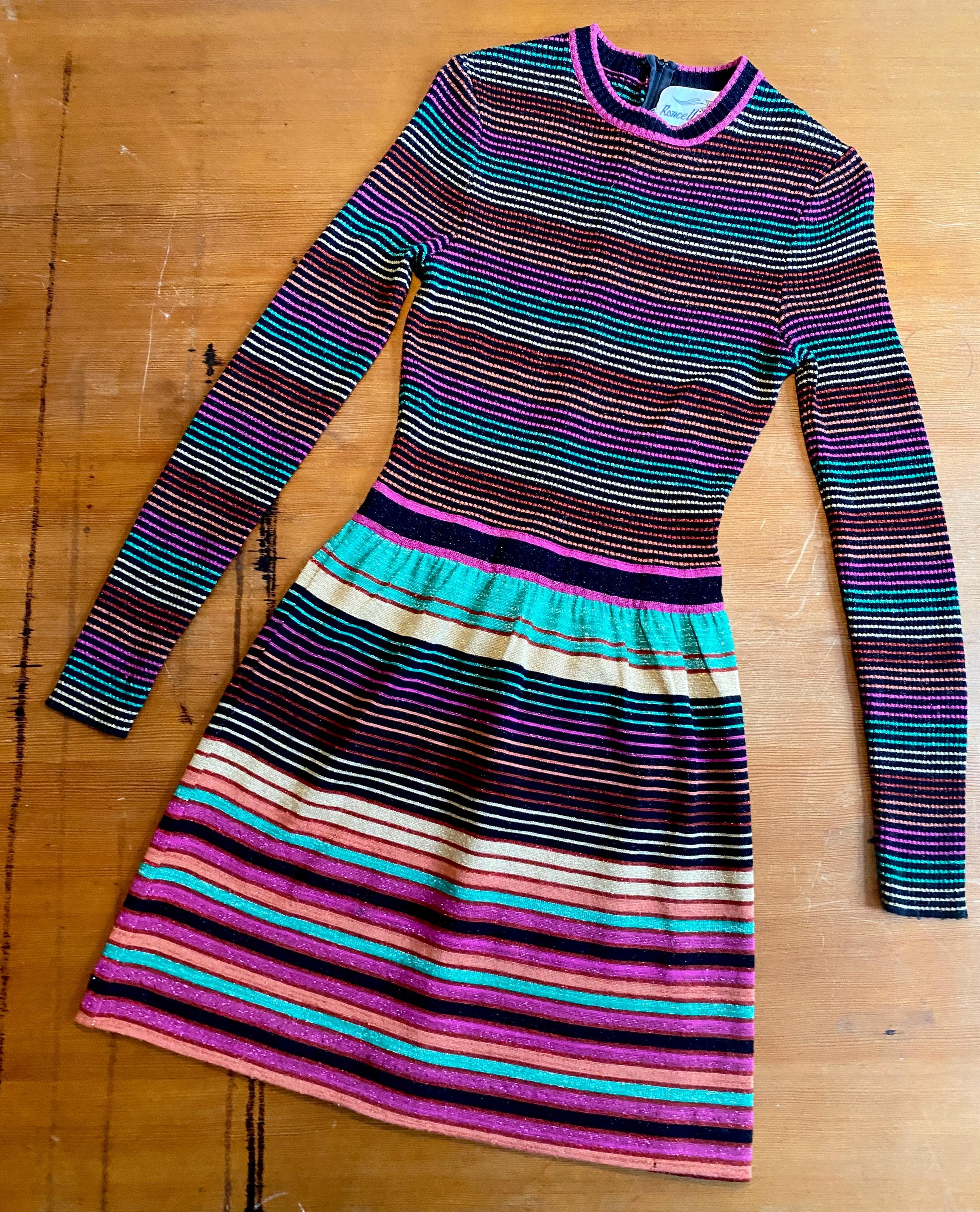 1970s RARE striped lurex RONCELLI knit dress.