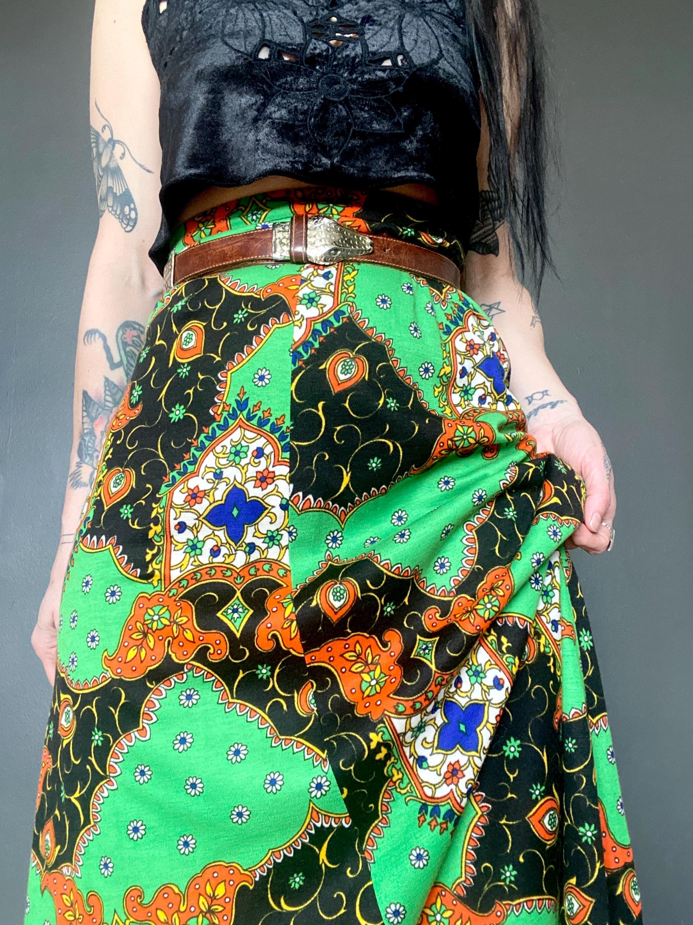 1970s floral paisleymaxi skirt.