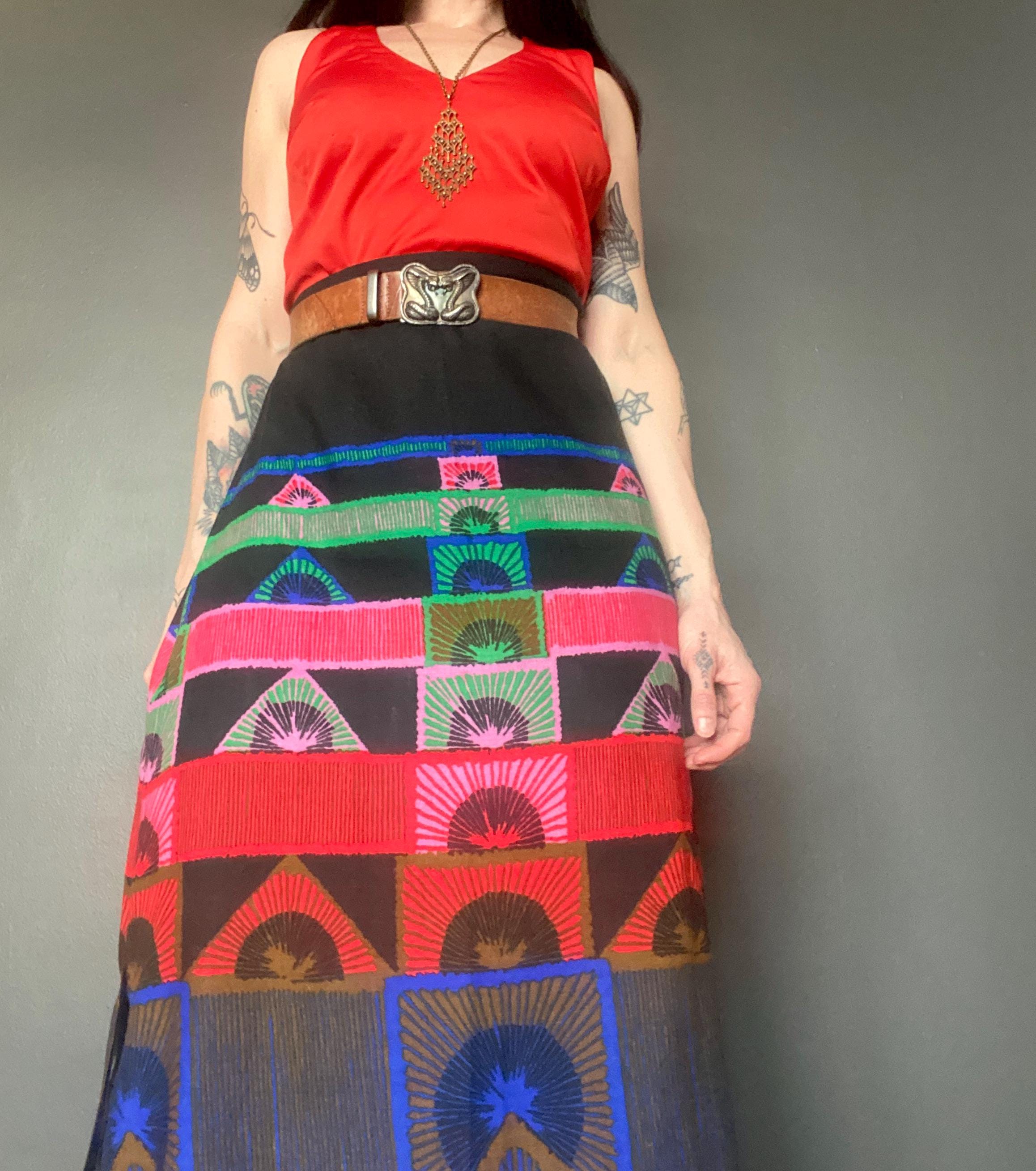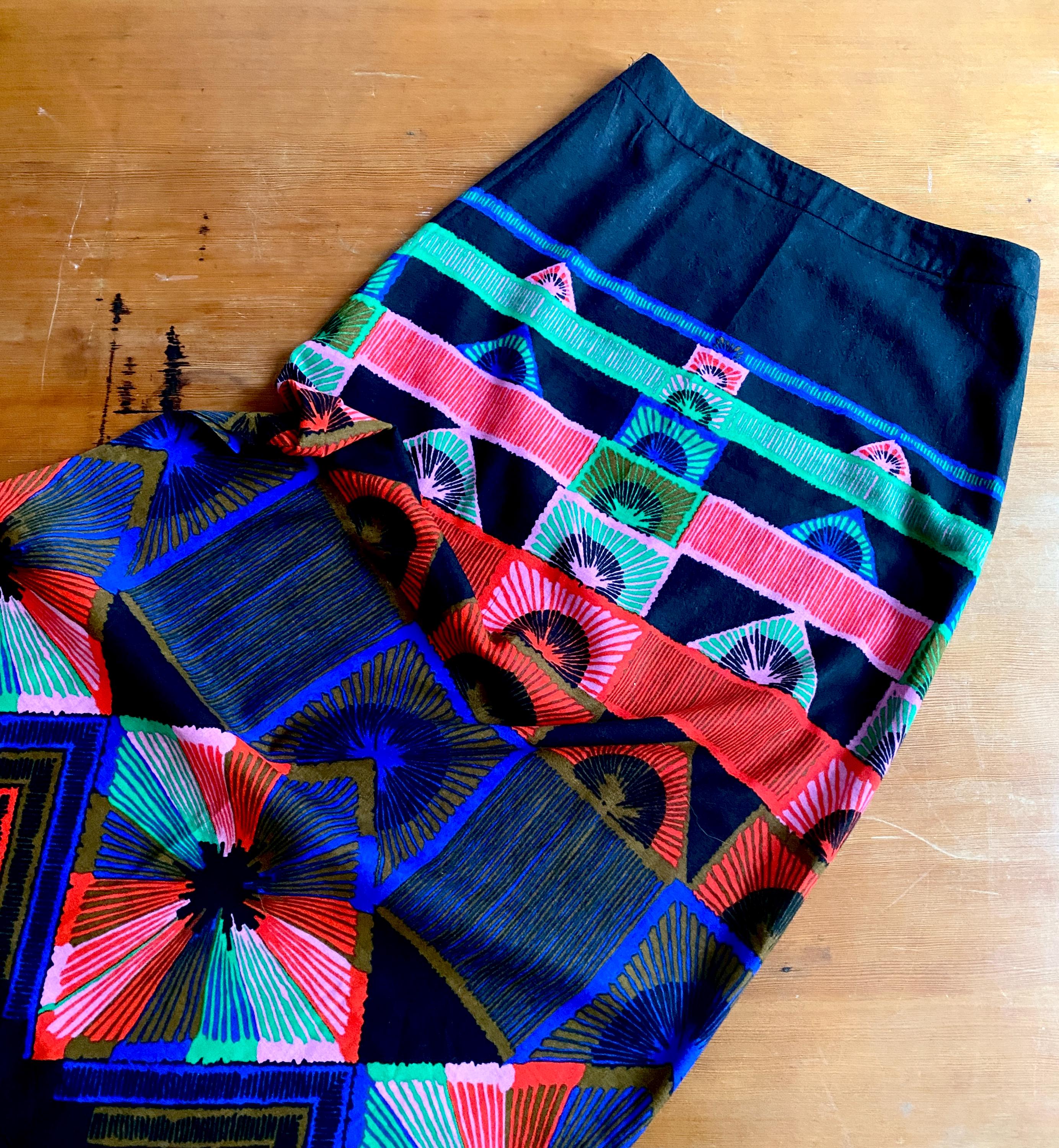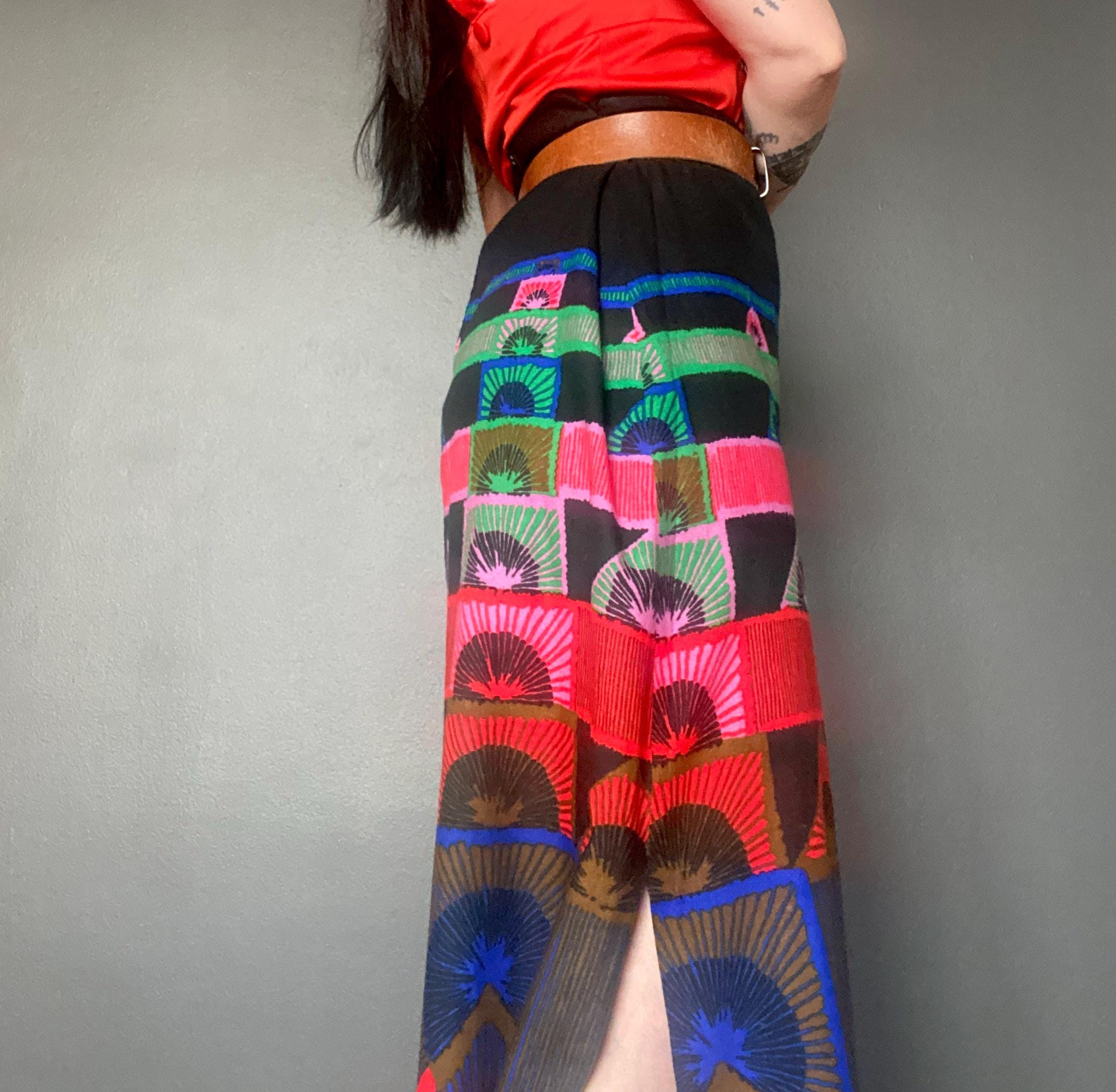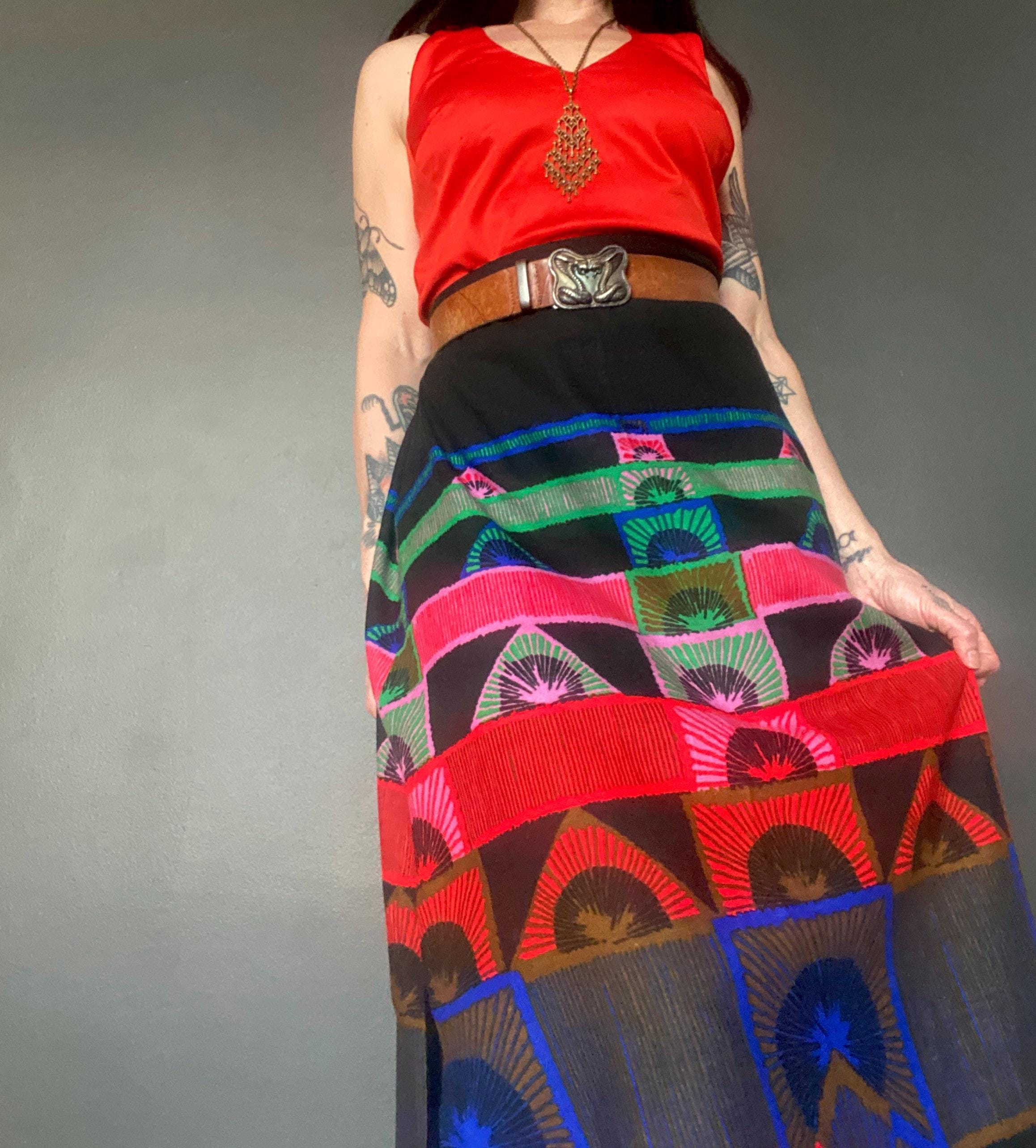 1970s abstract print maxi skirt.