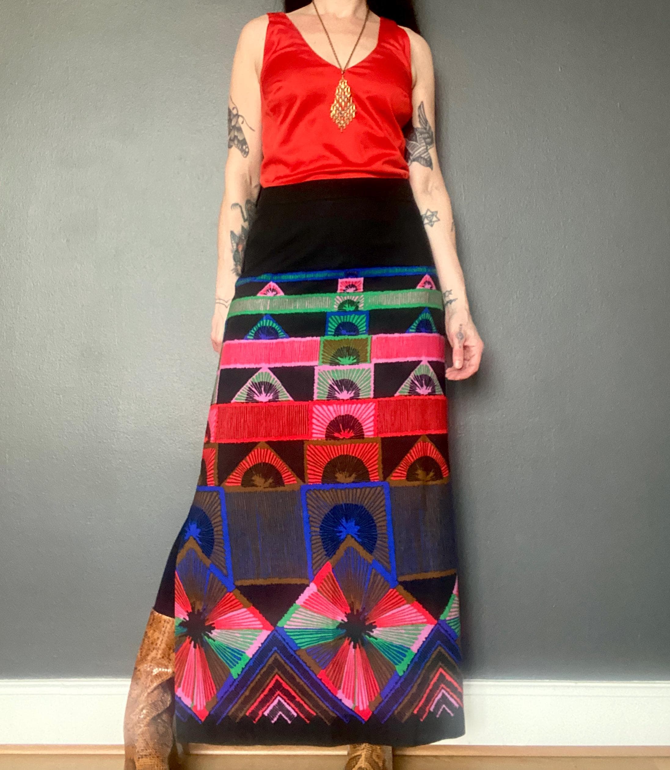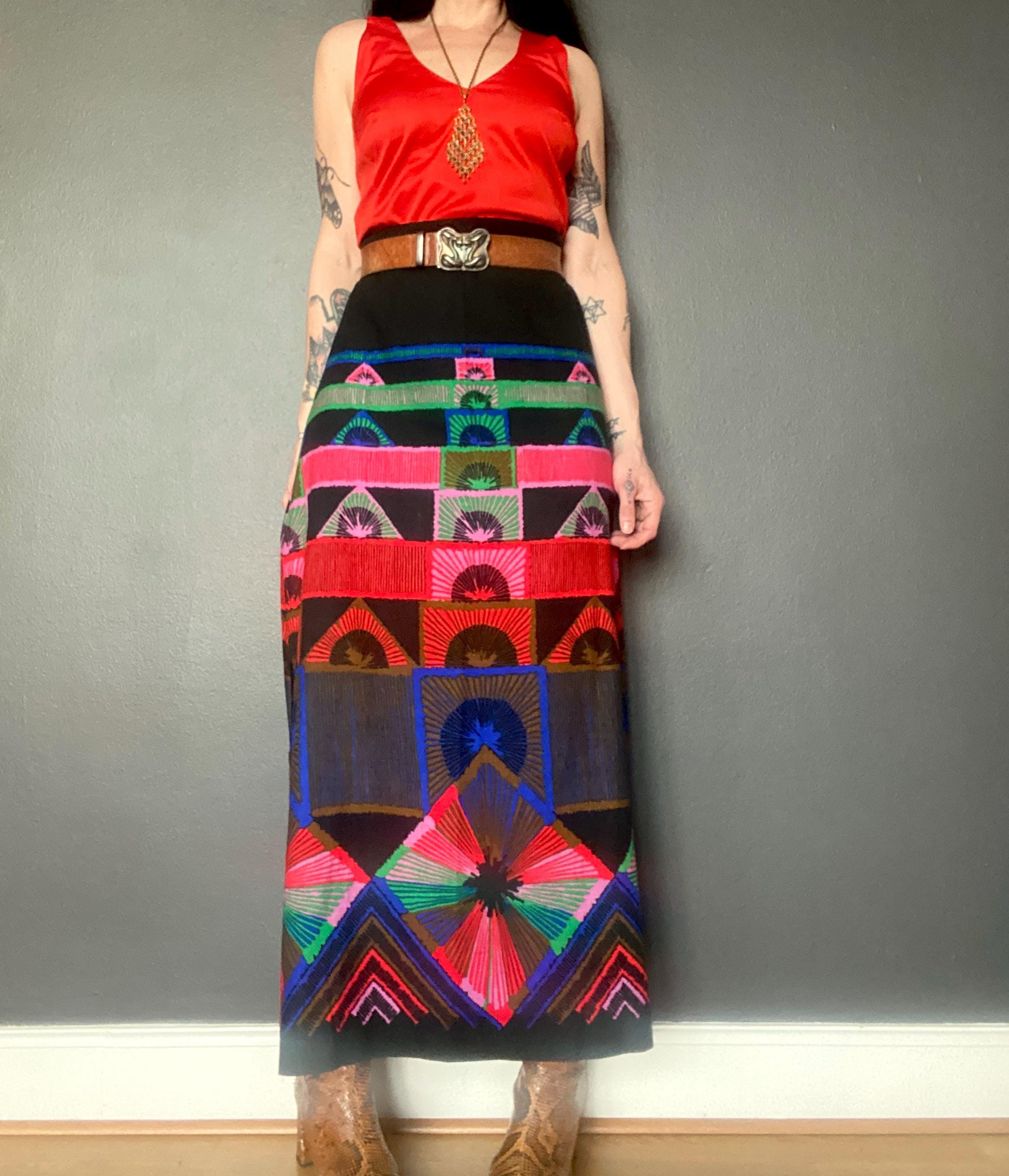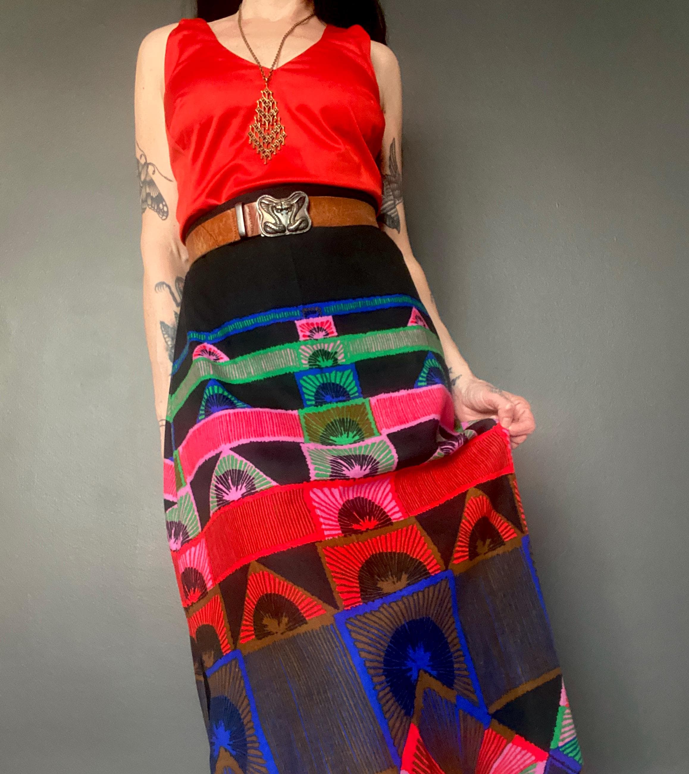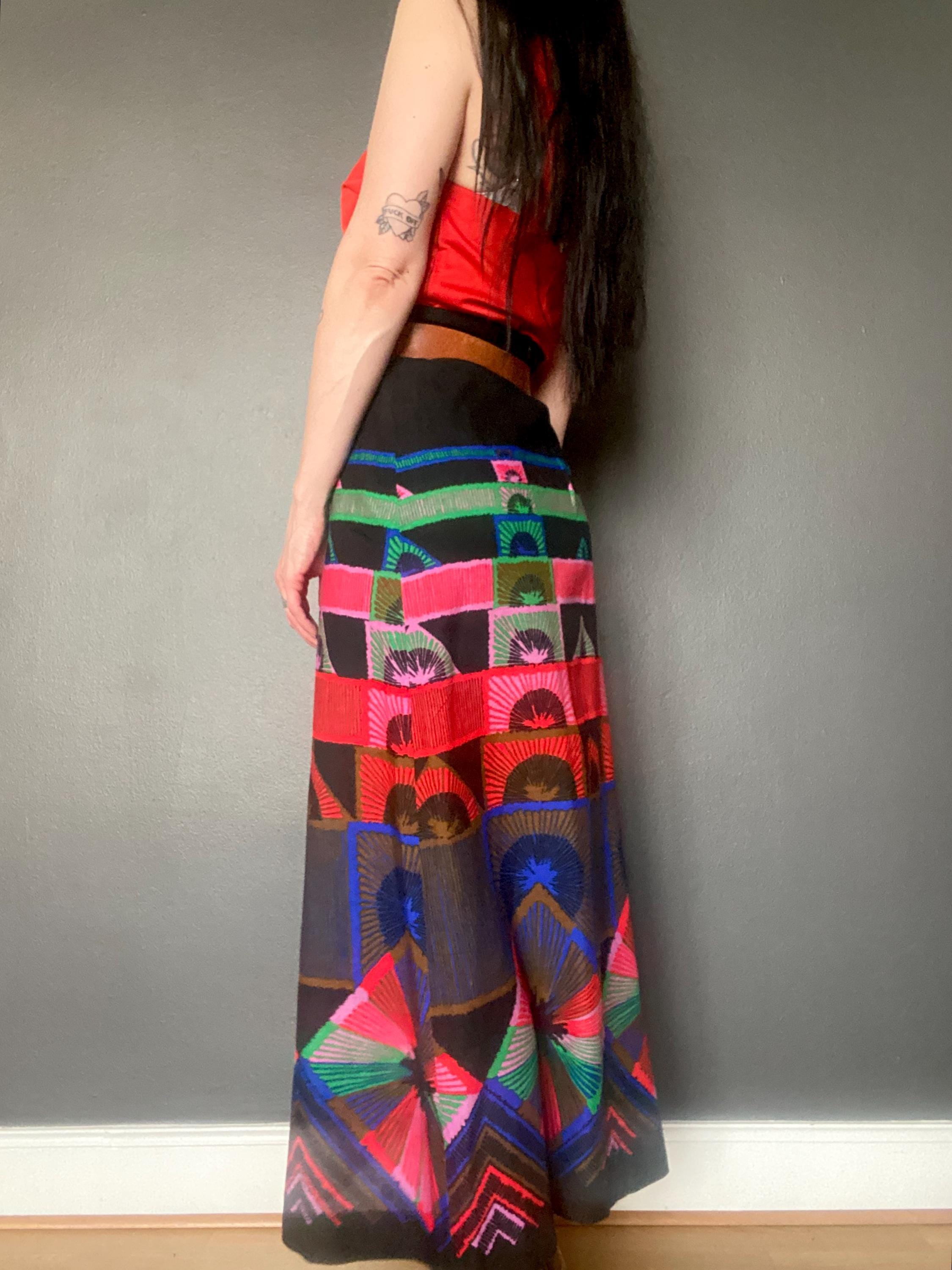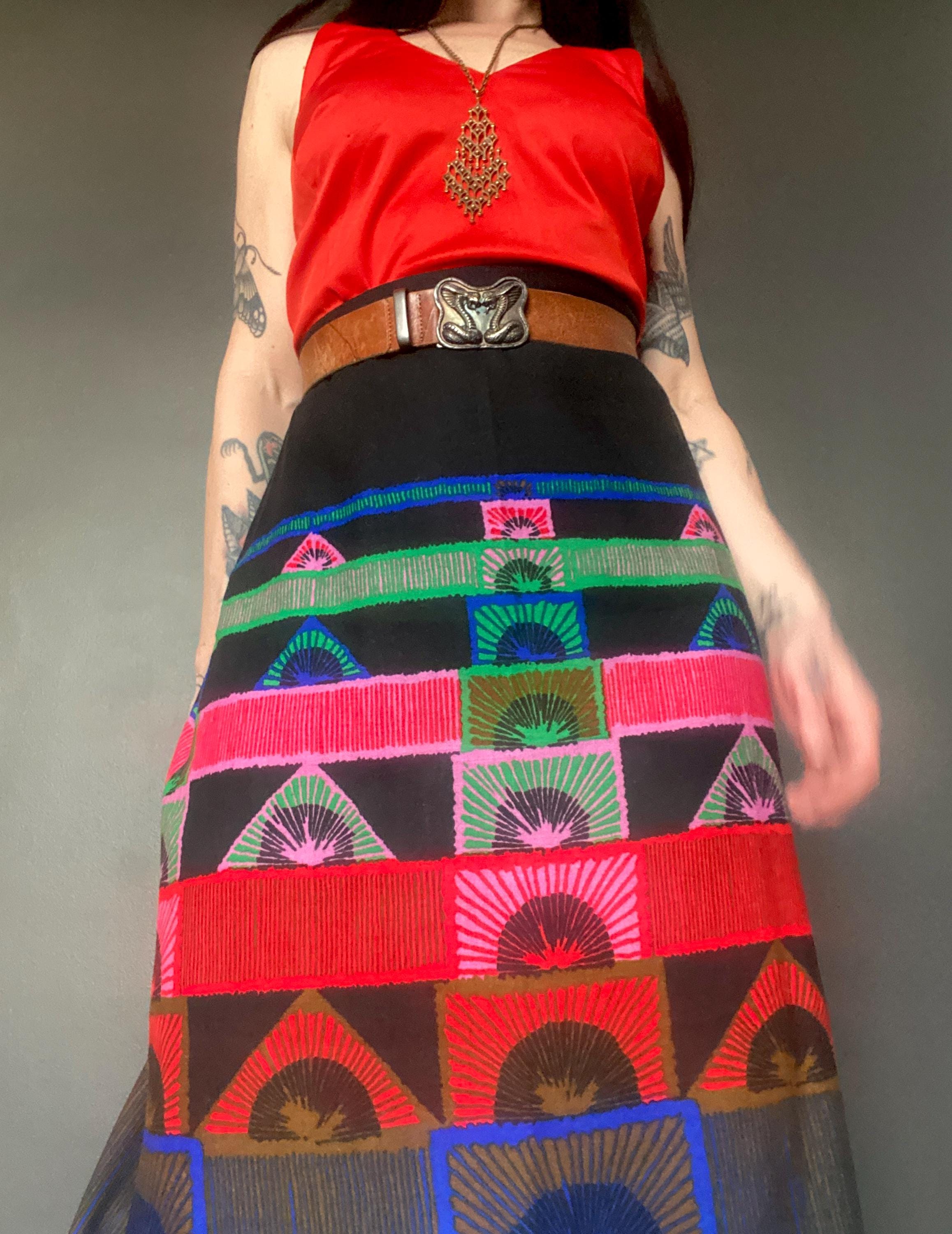 1970s abstract print maxi skirt.