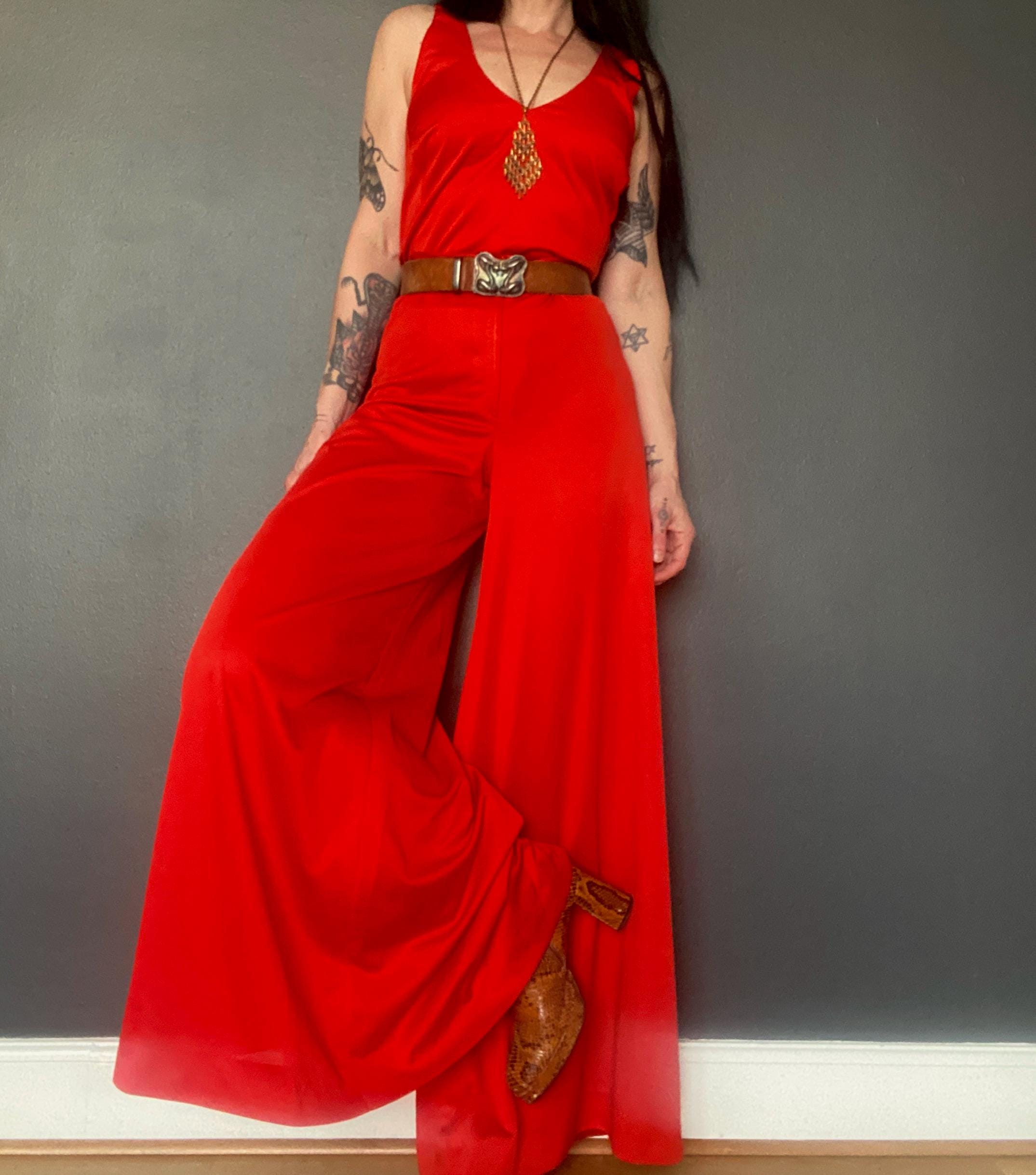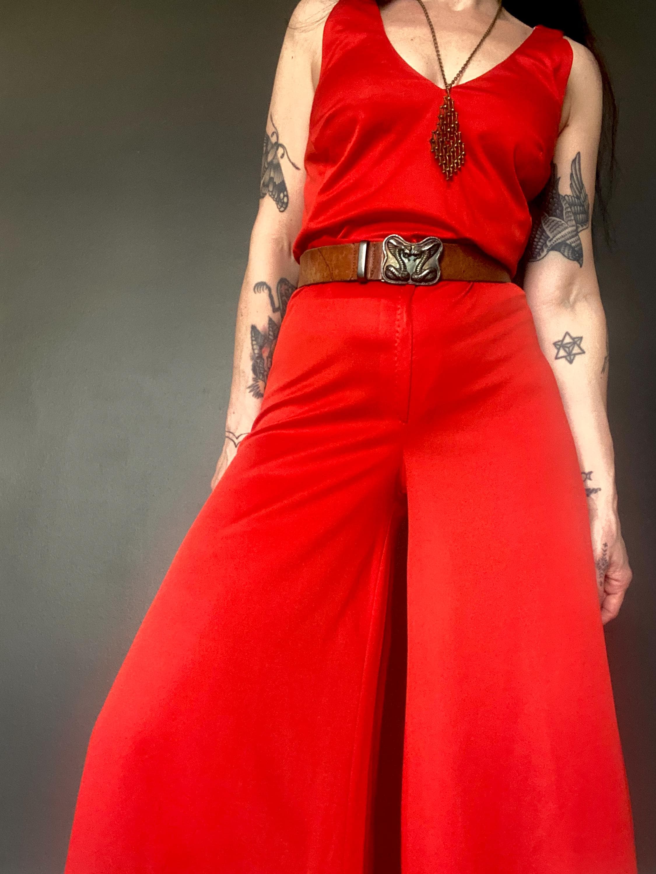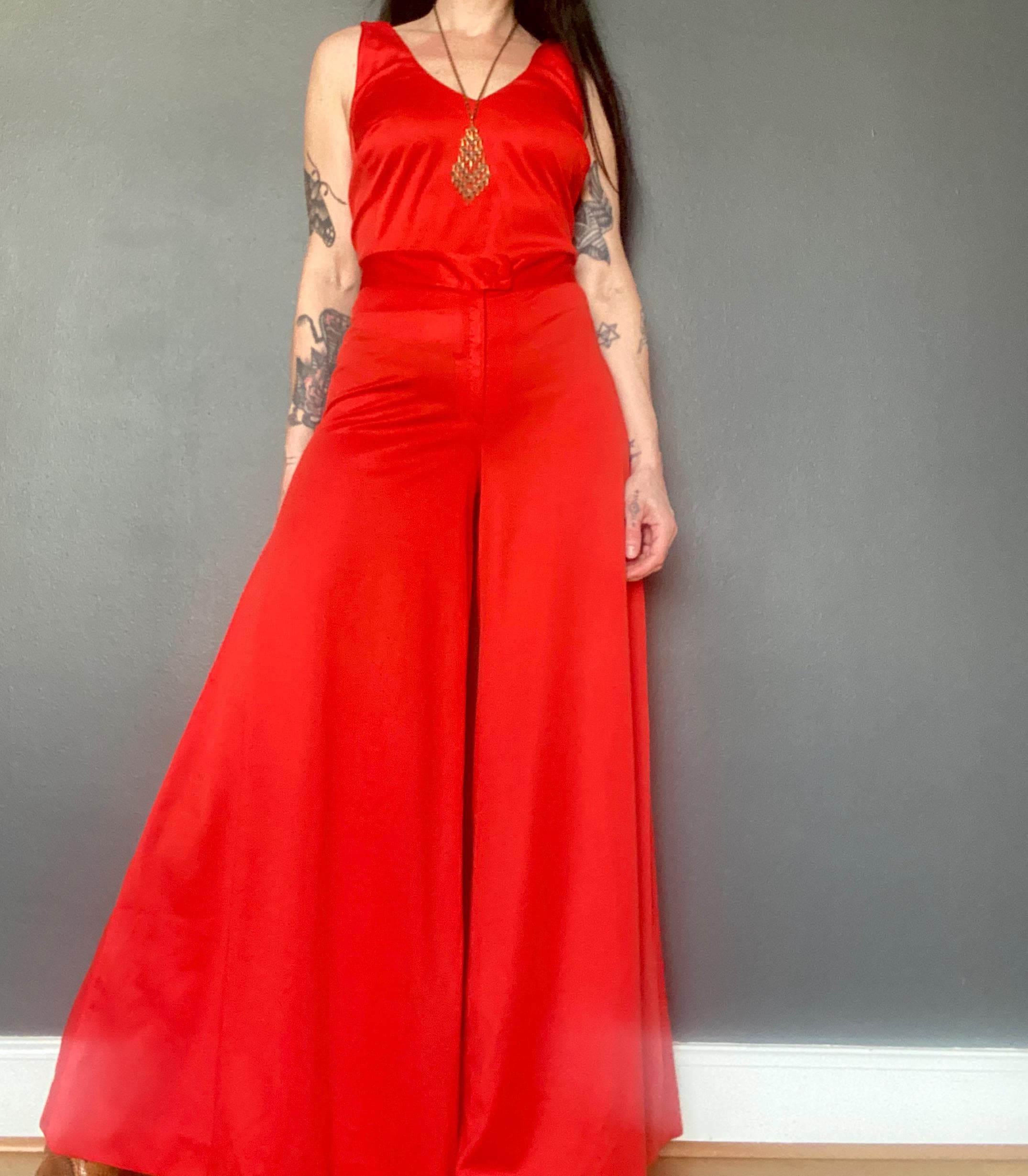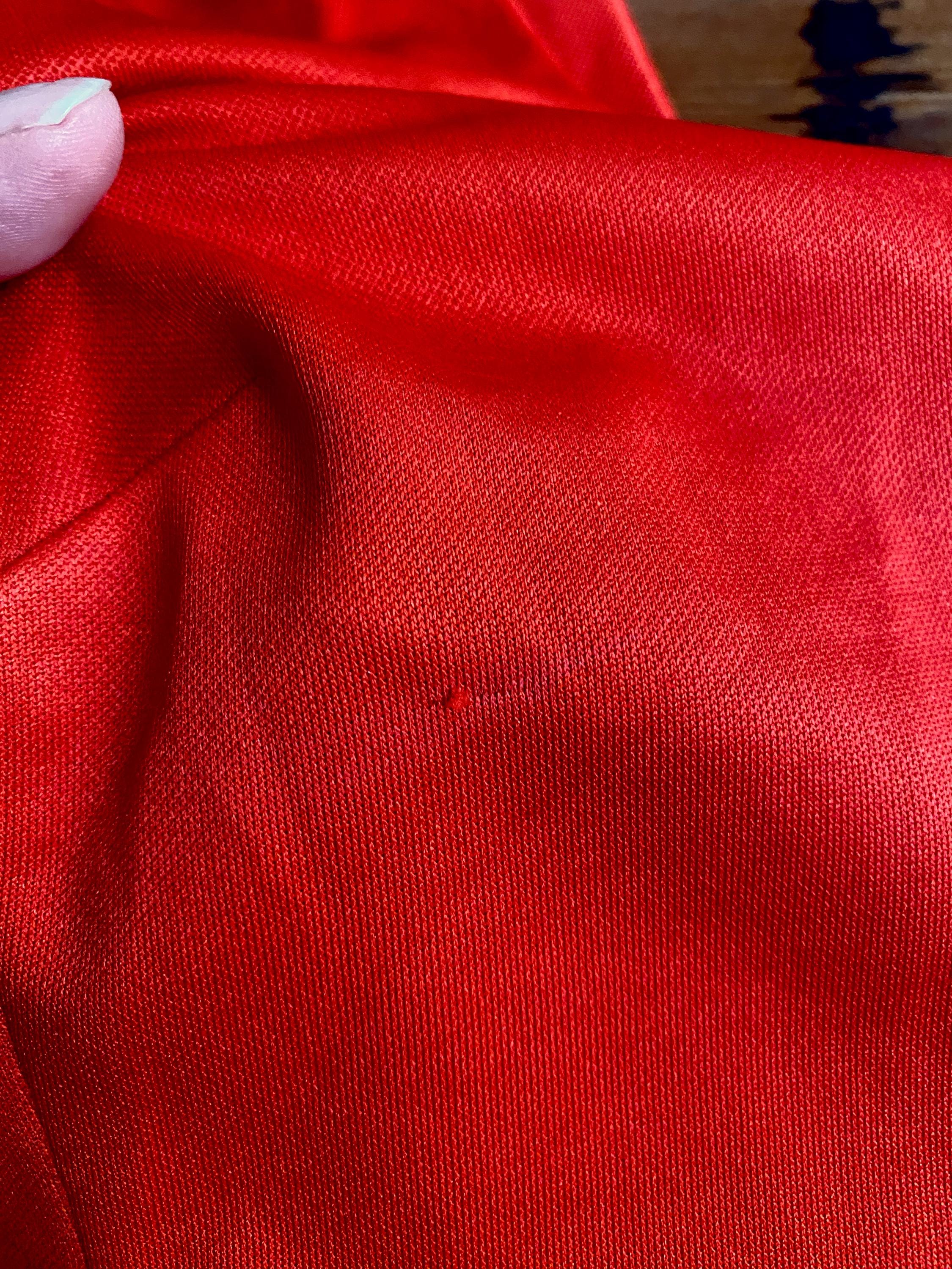 *Good but used vintage condition. Shows normal signs of age and wear. The pants have a snag in the fabric but its not very noticeable. The top has a mark on the front (see picture) and som pinholes on the back strap (see picture)