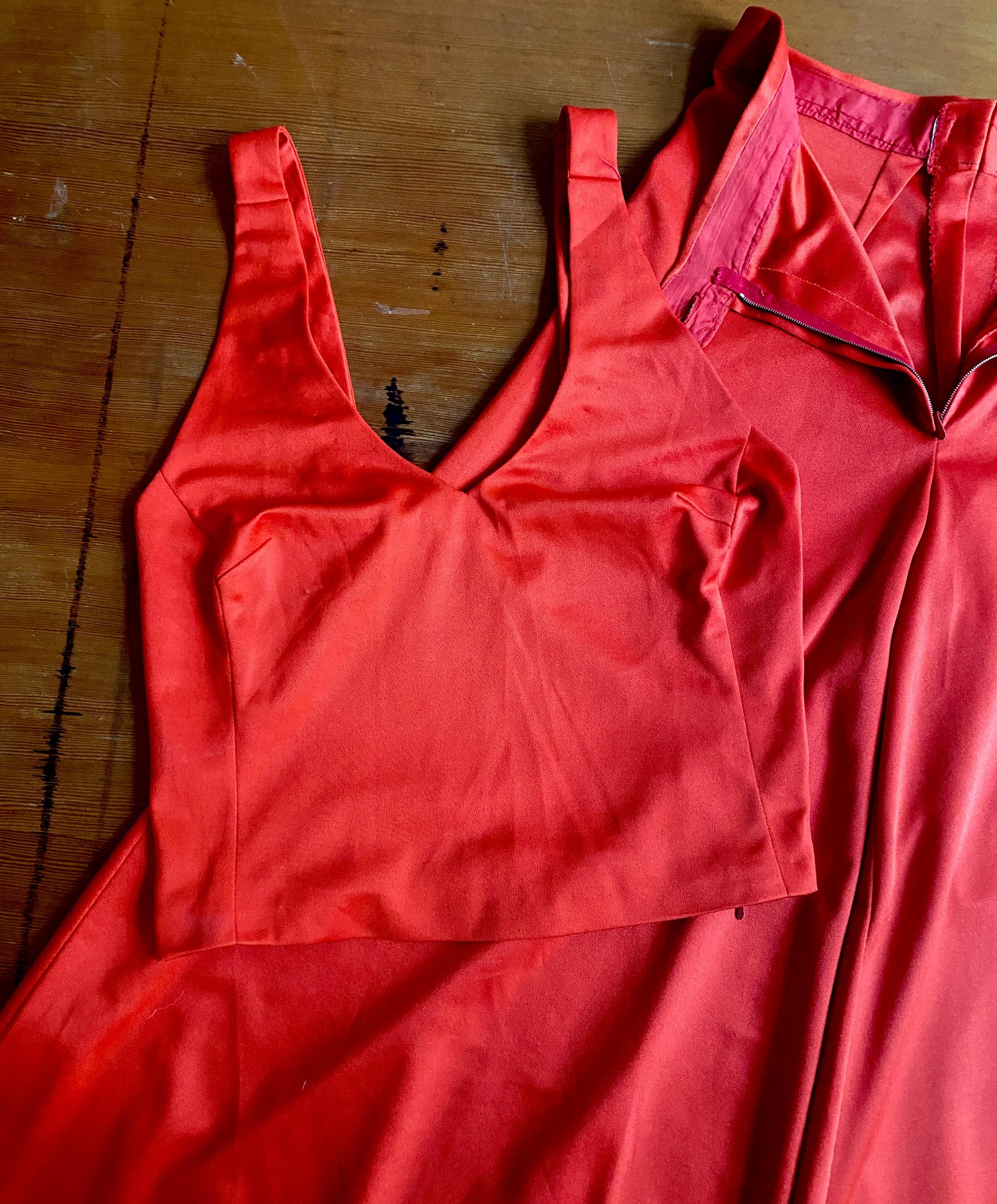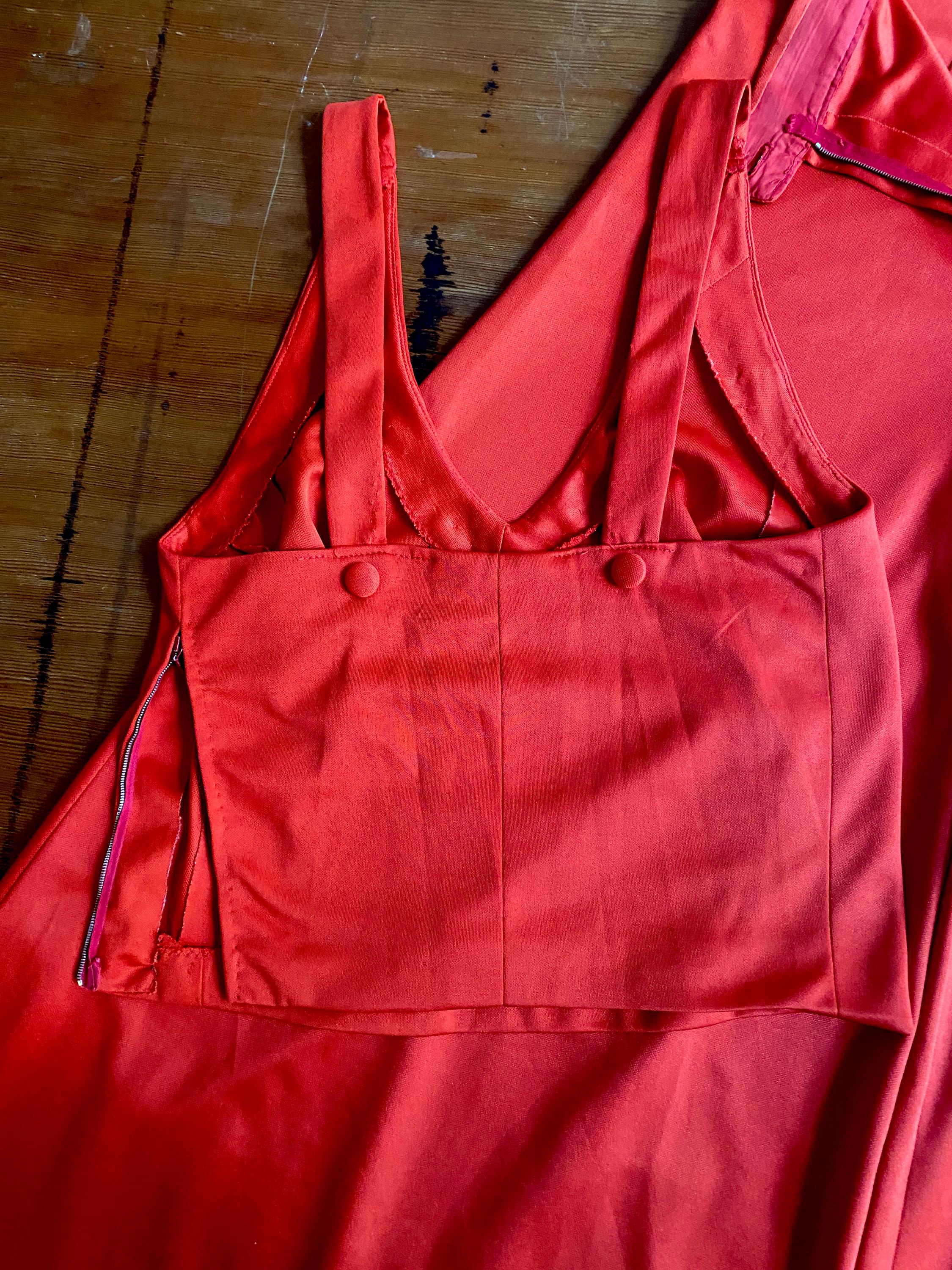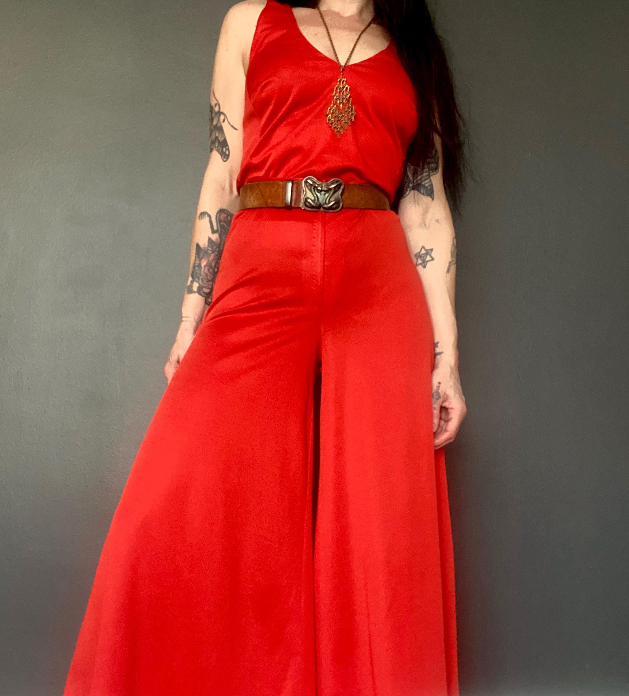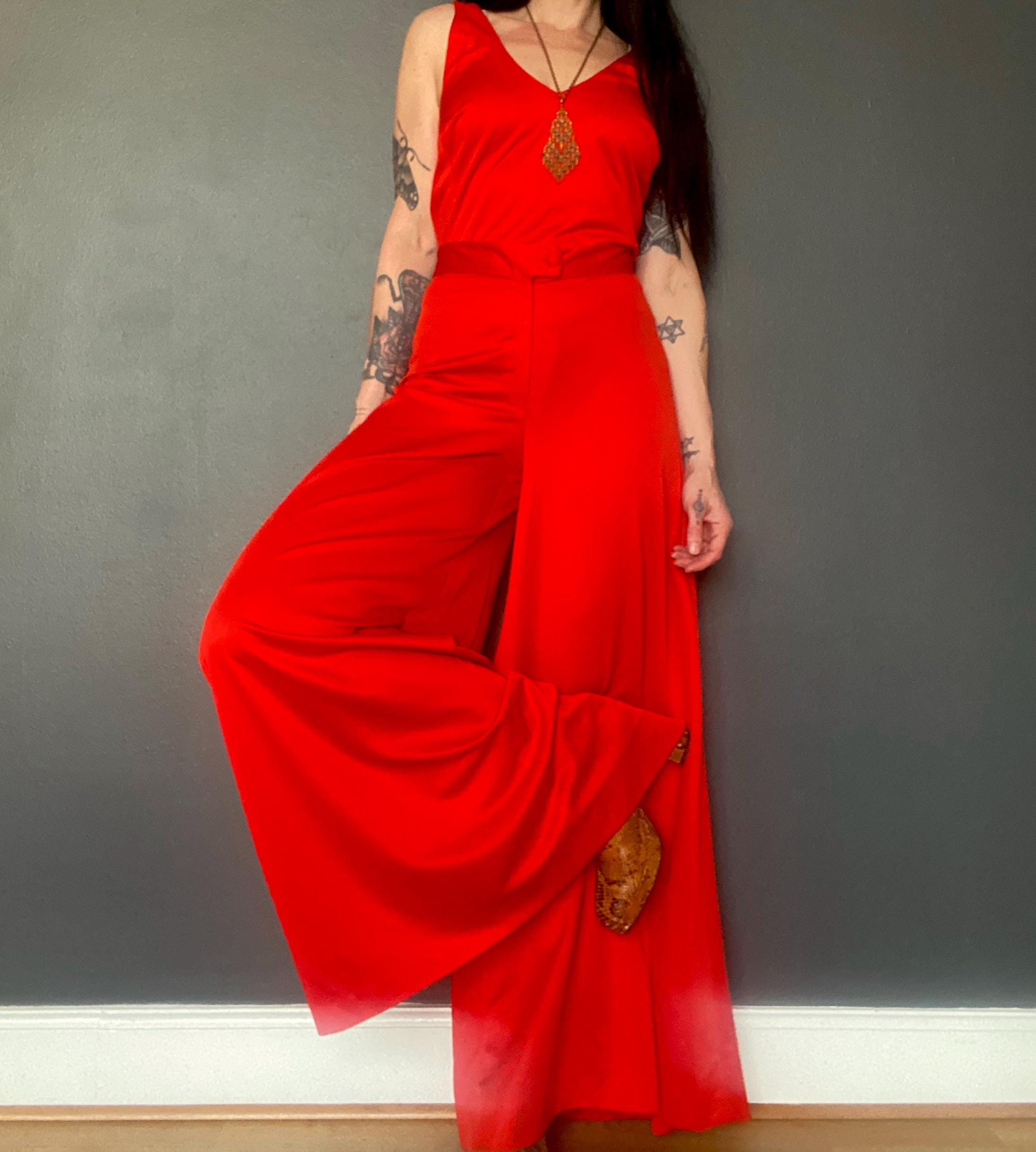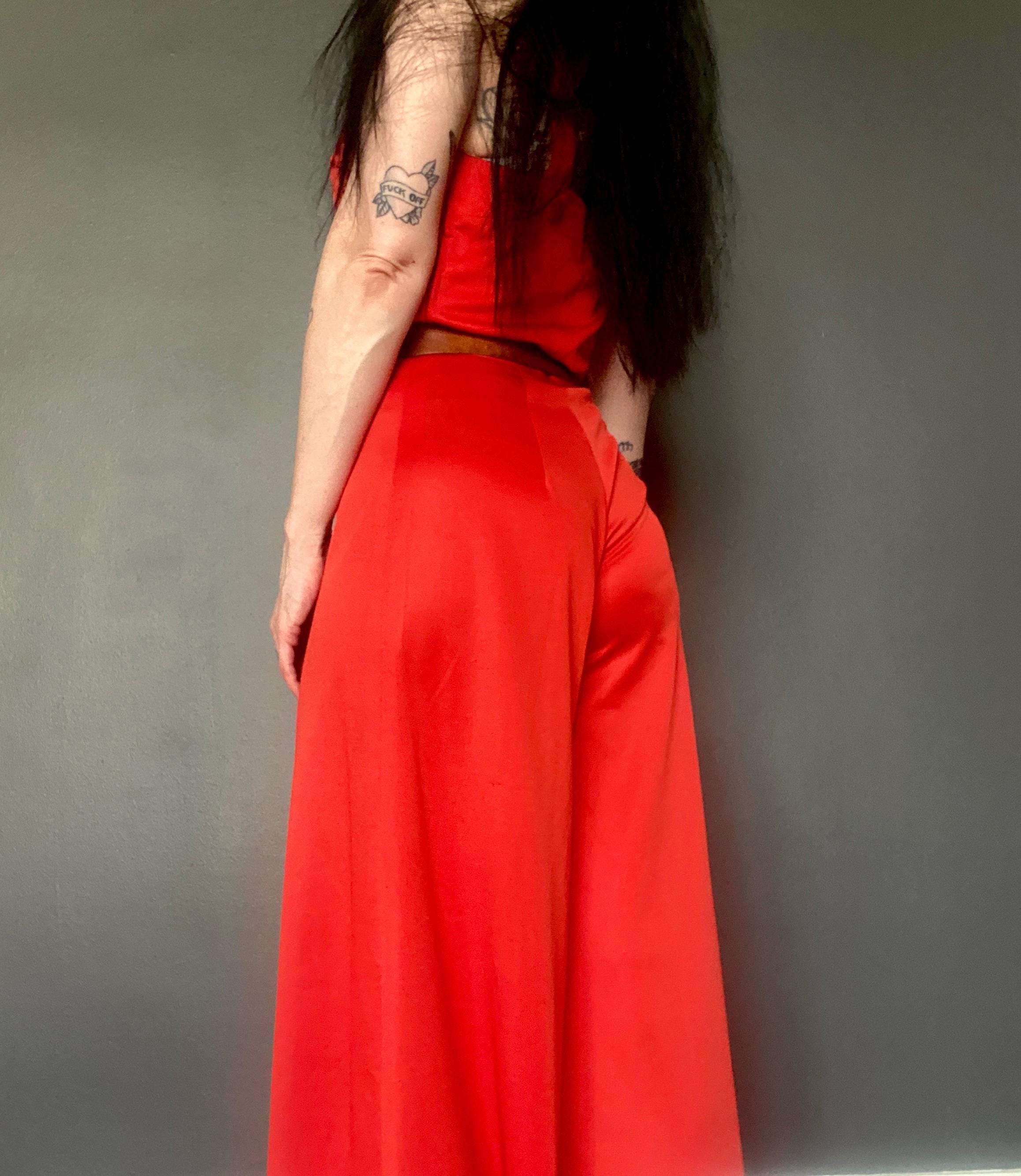 *Good but used vintage condition. Shows normal signs of age and wear. The pants have a snag in the fabric but its not very noticeable. The top has a mark on the front (see picture) and som pinholes on the back strap (see picture)