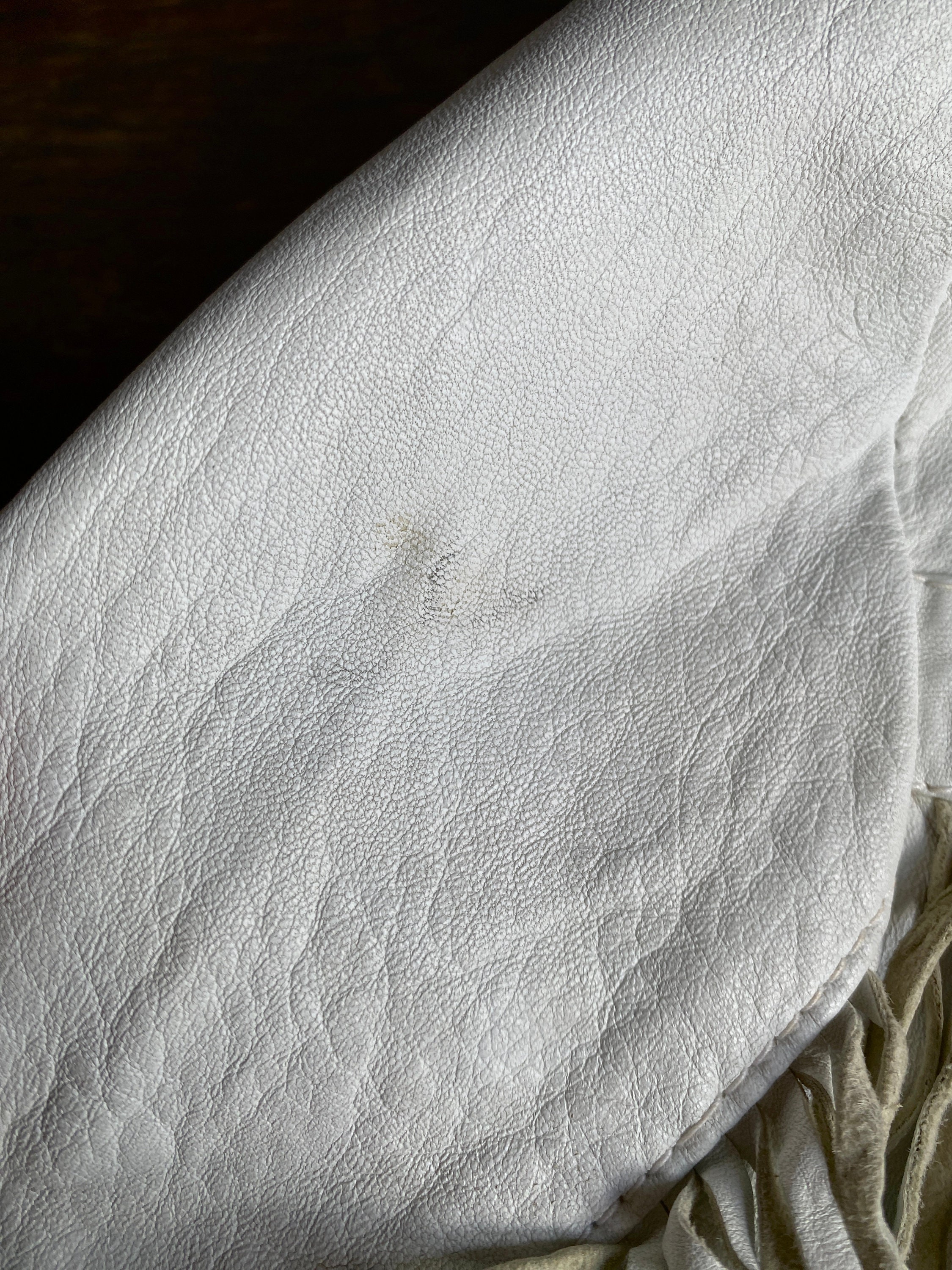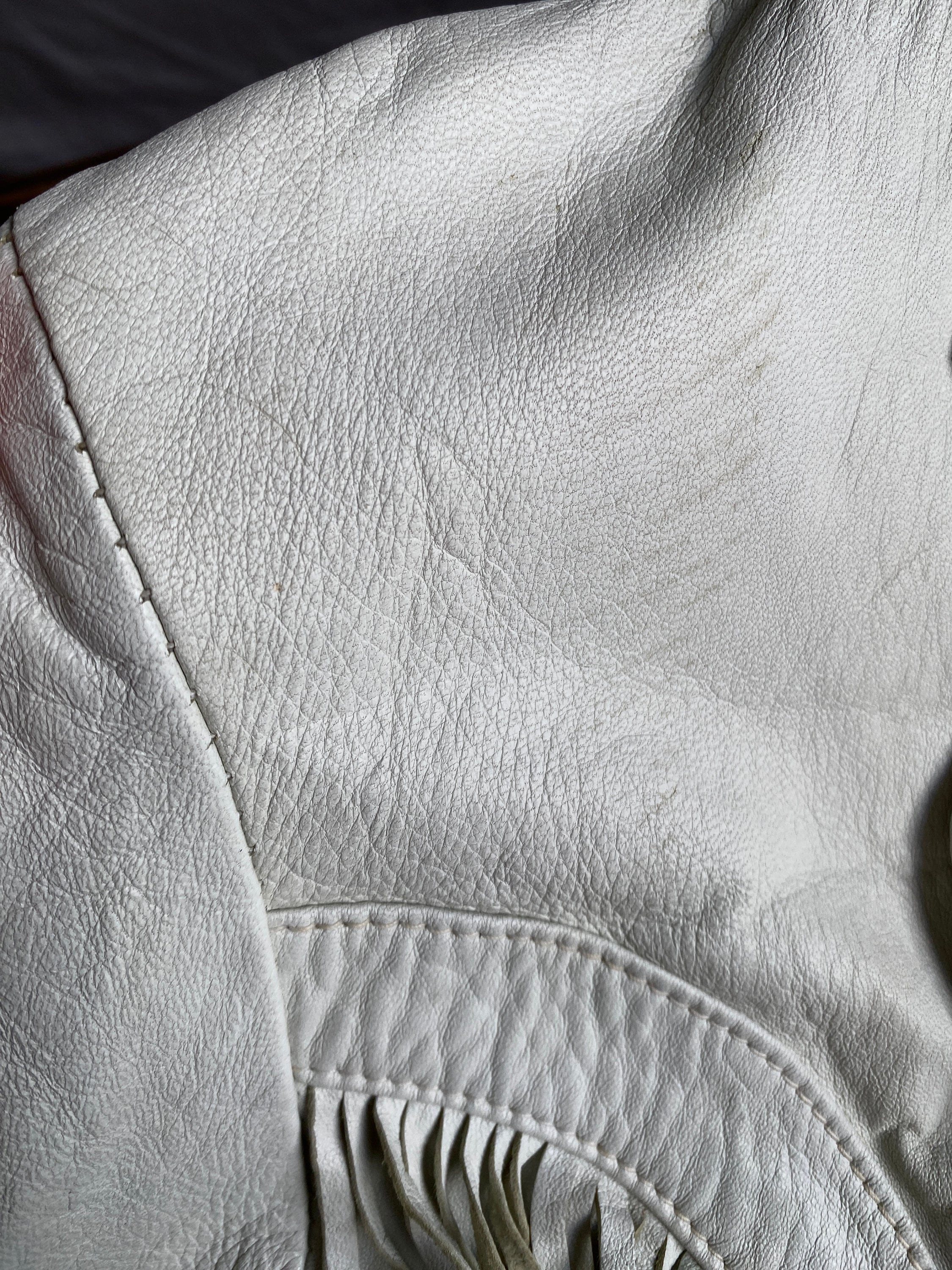 1990s white leather fringed western jacket.