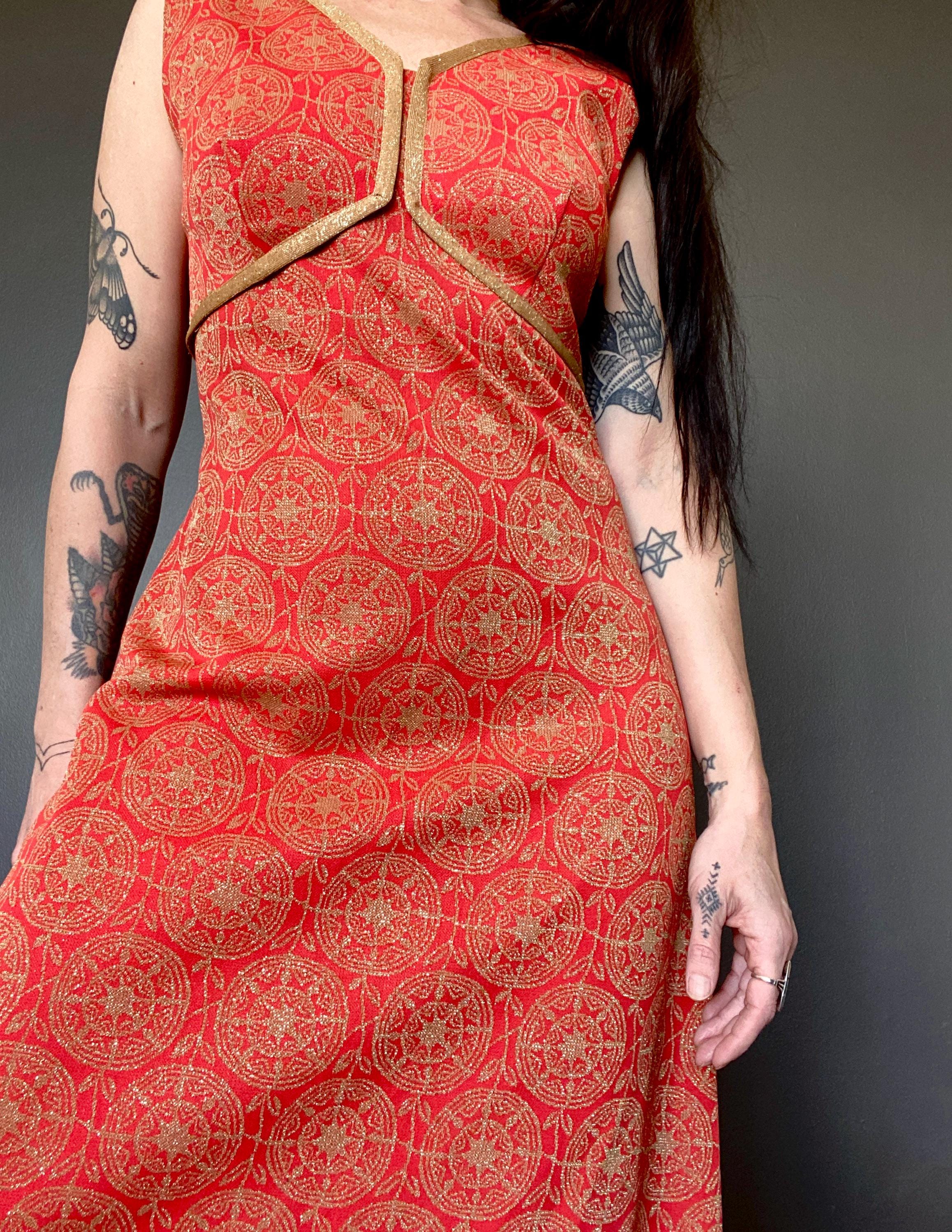 1970s metallic lurex maxi dress.