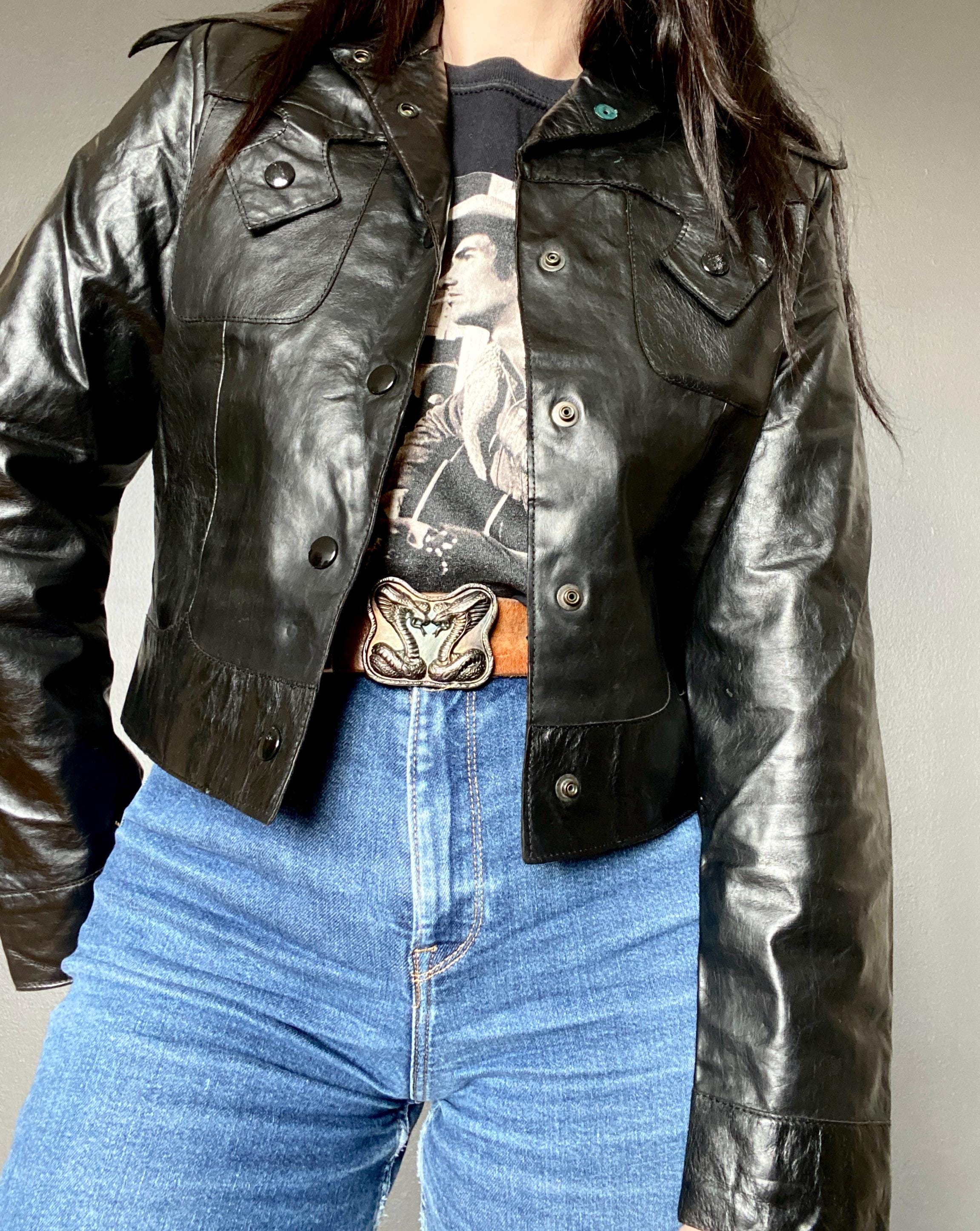 *Used vintage condition. Shows normal signs of age and wear. The buttons shows signs of age and wear and the leather has som scuffs and marks.
