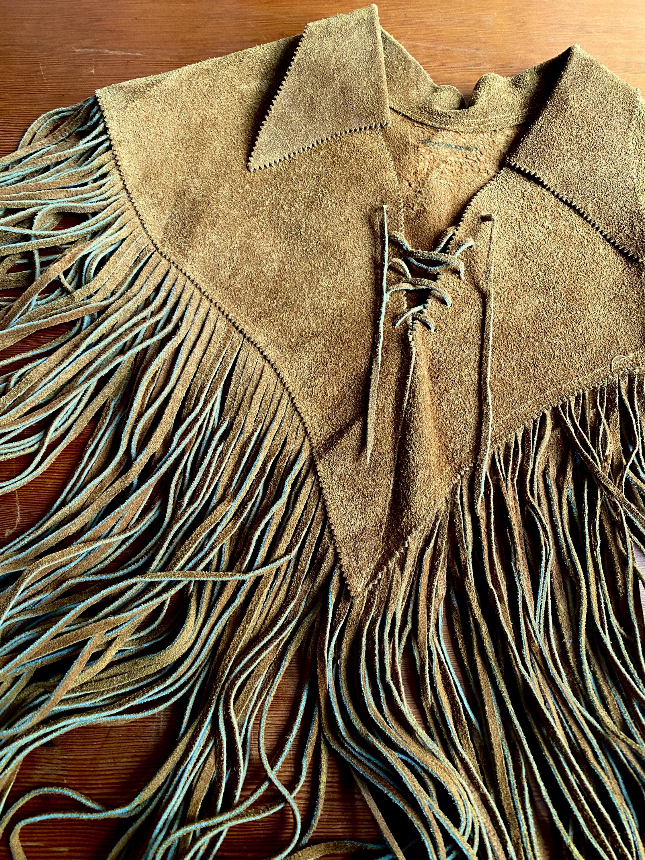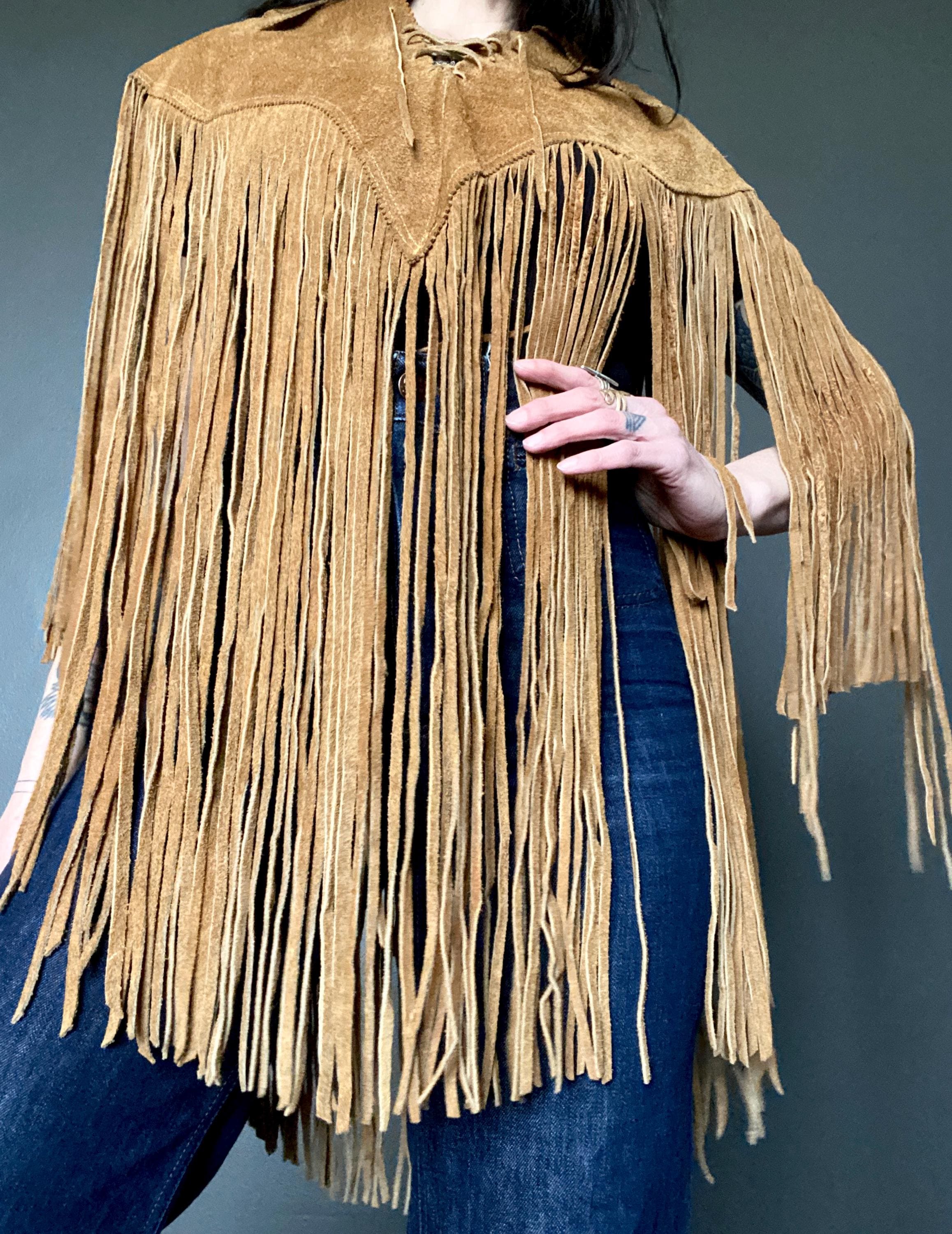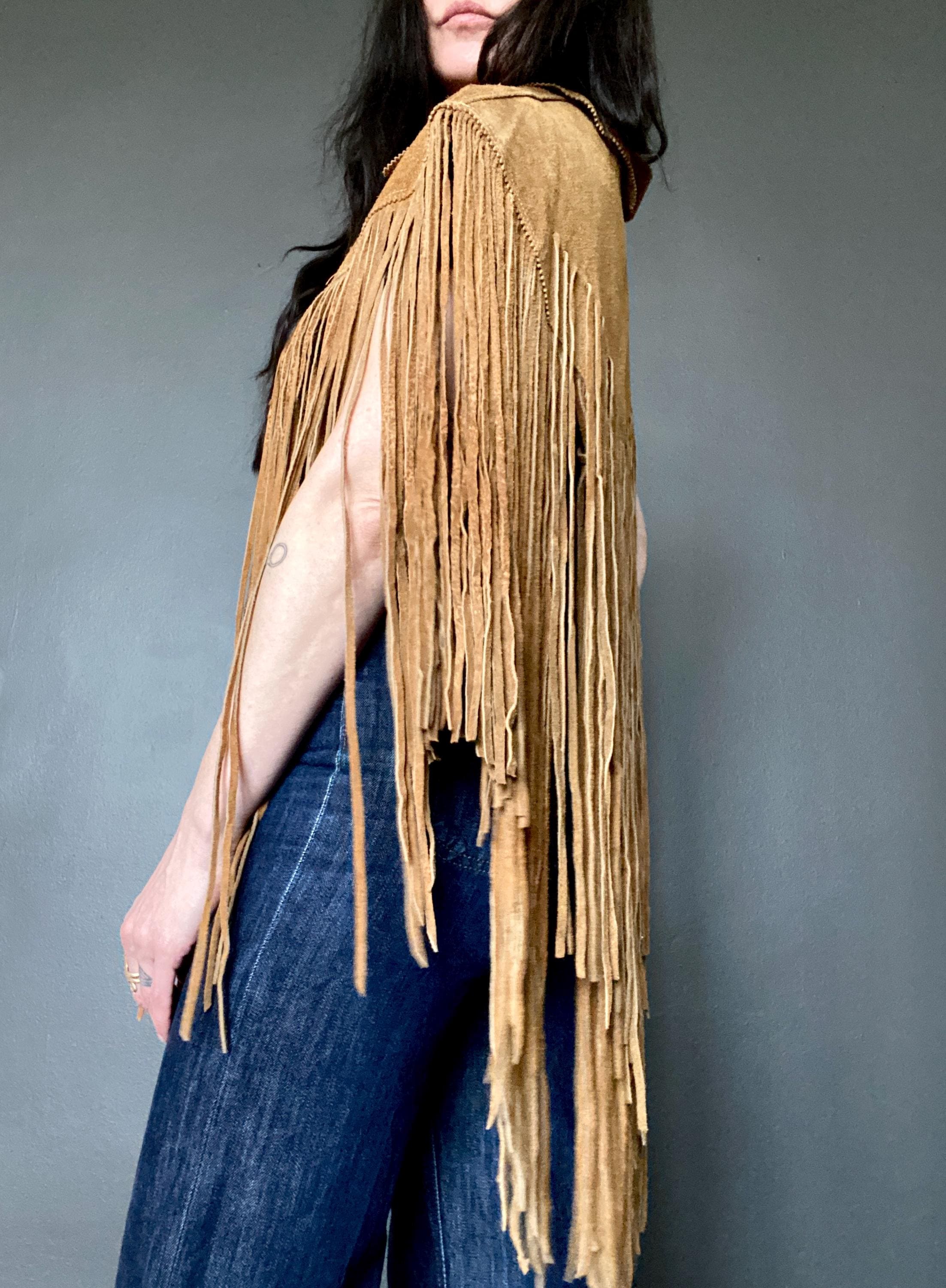 RARE 1970s super fringe suede cape