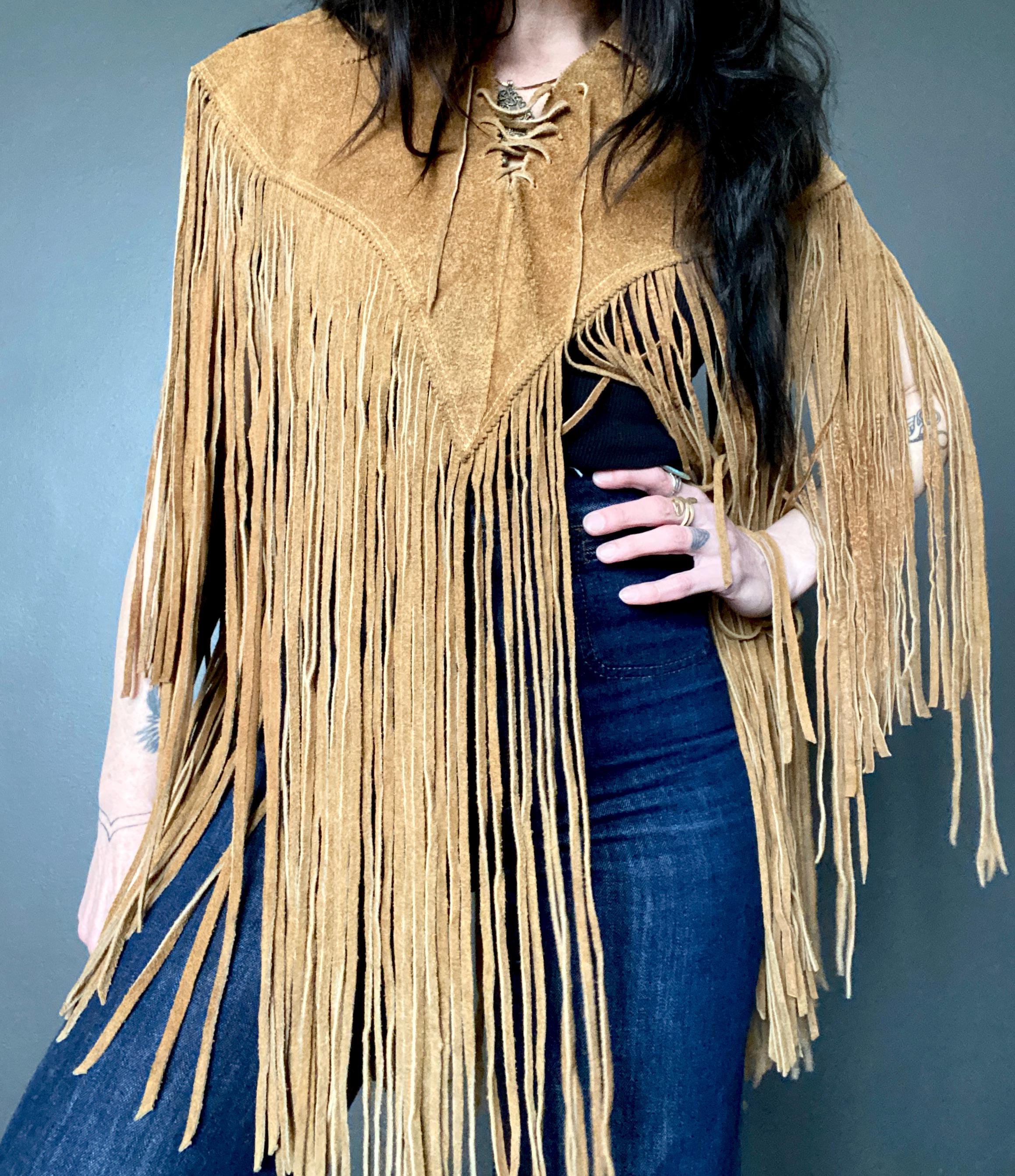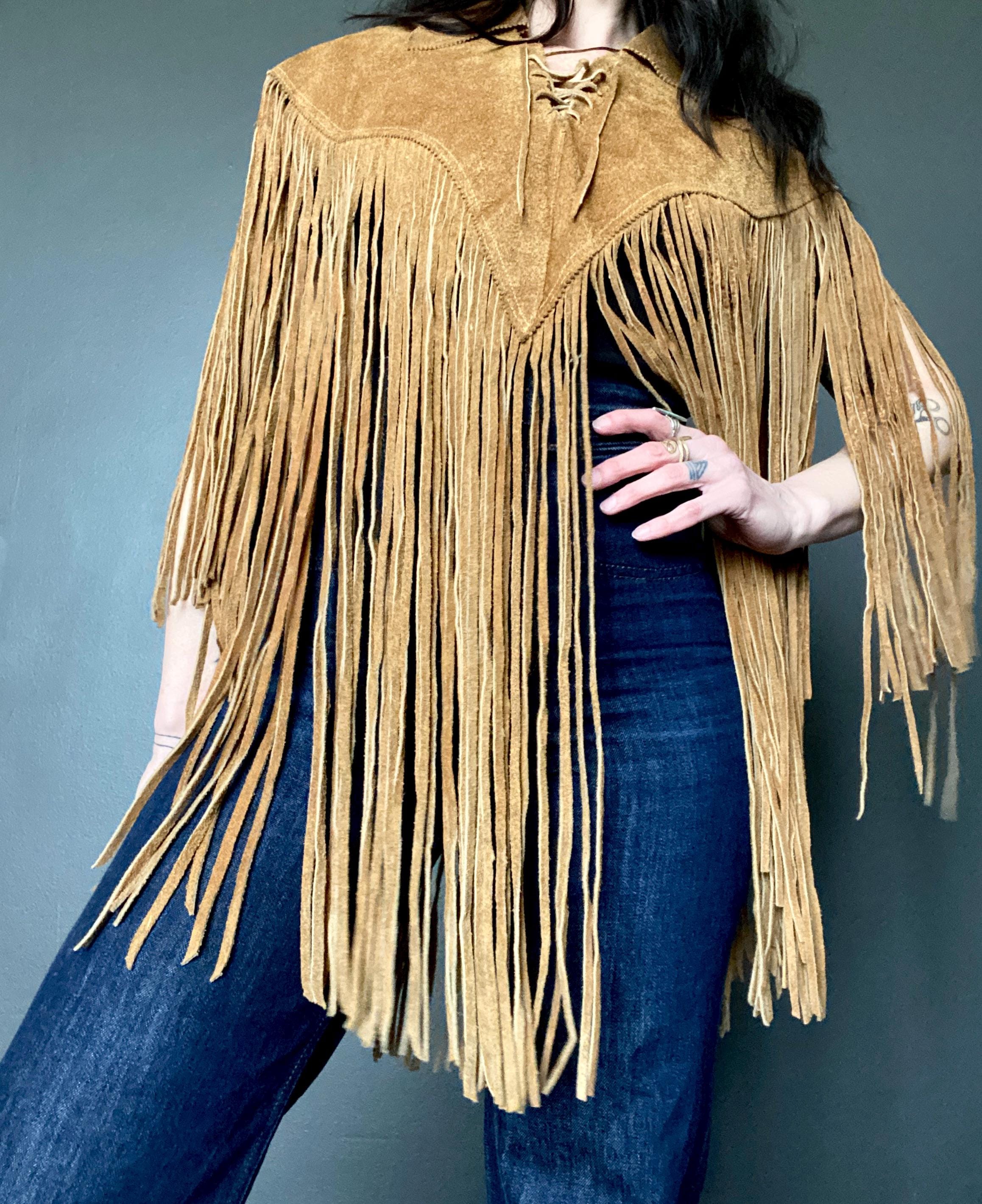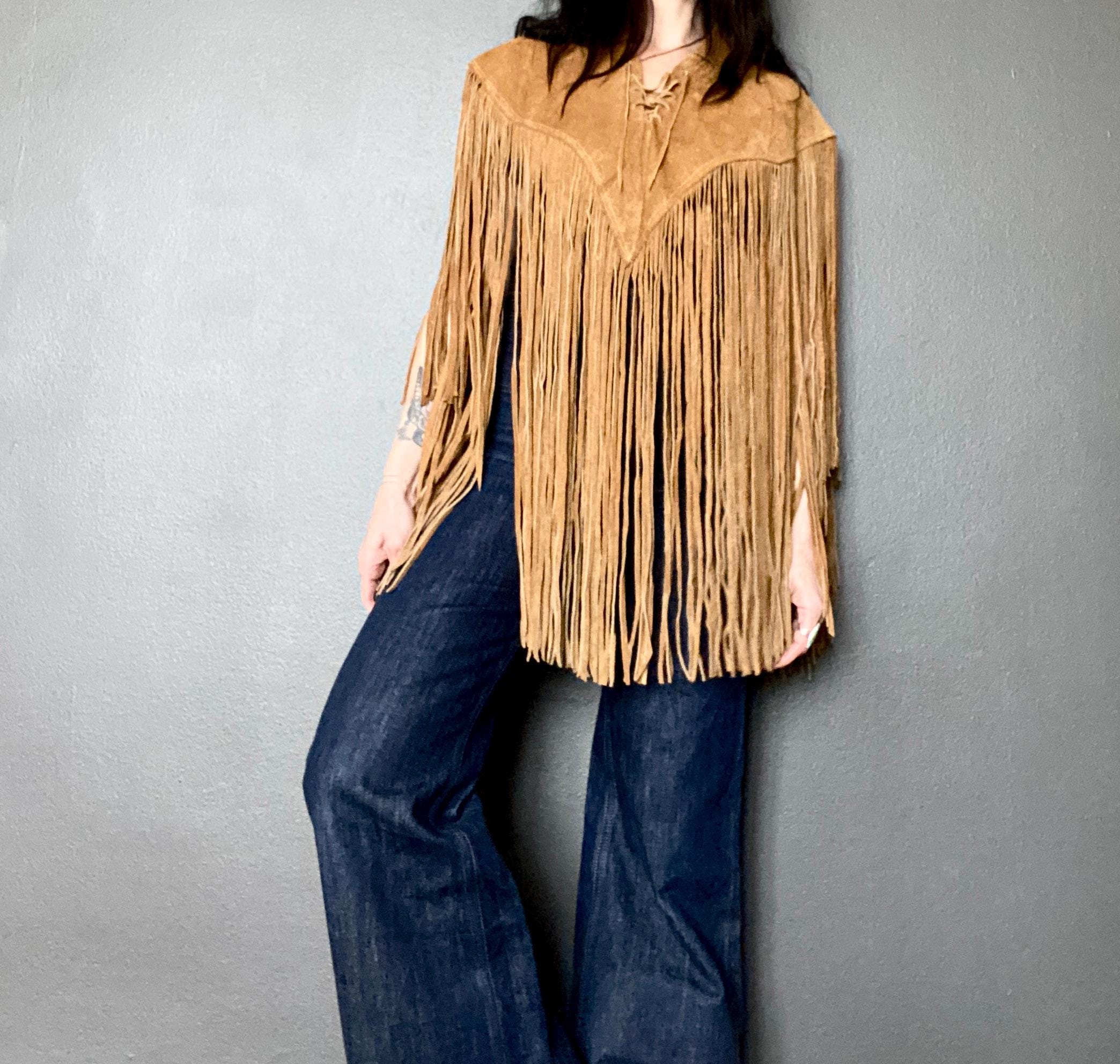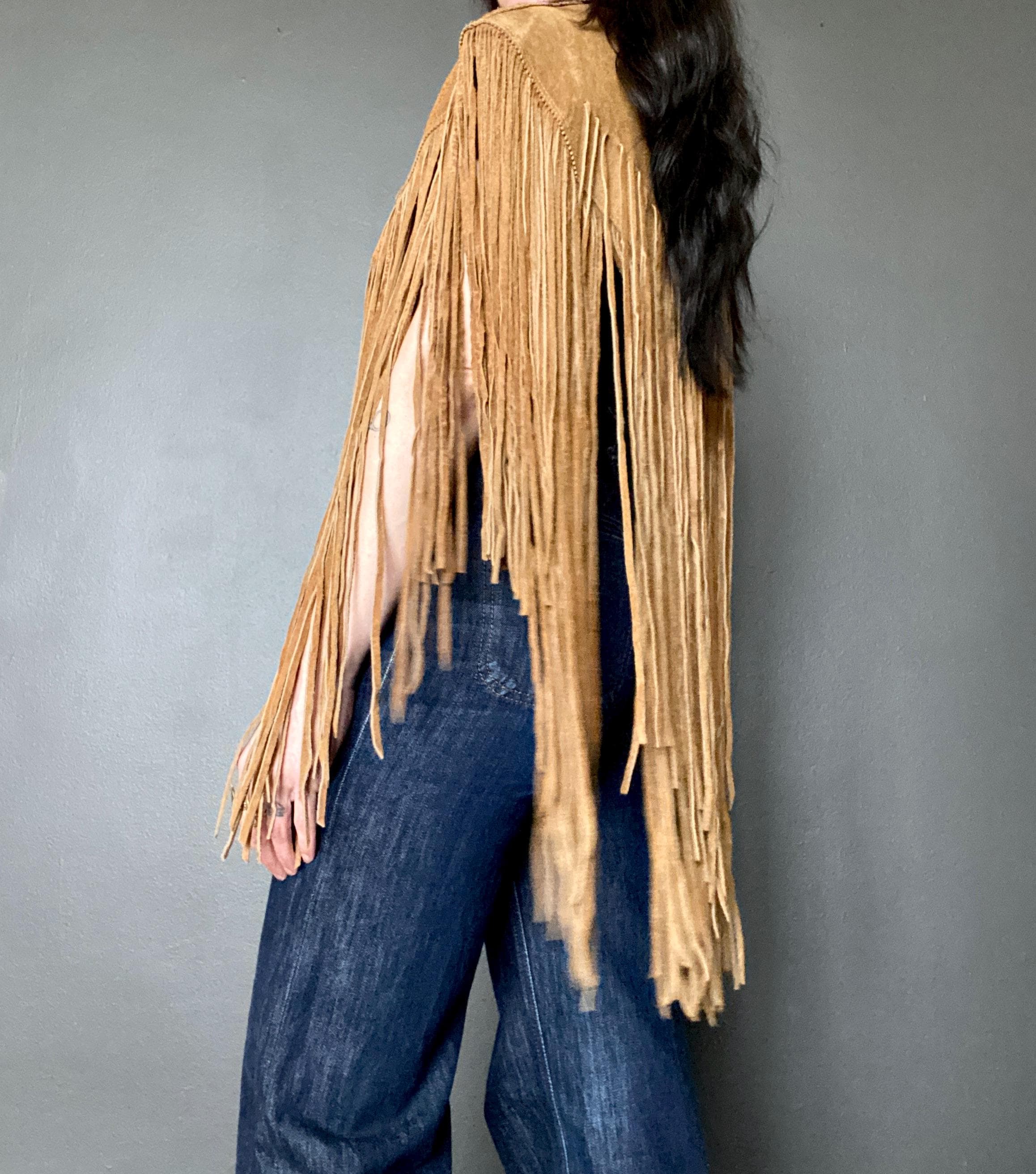 RARE 1970s super fringe suede cape