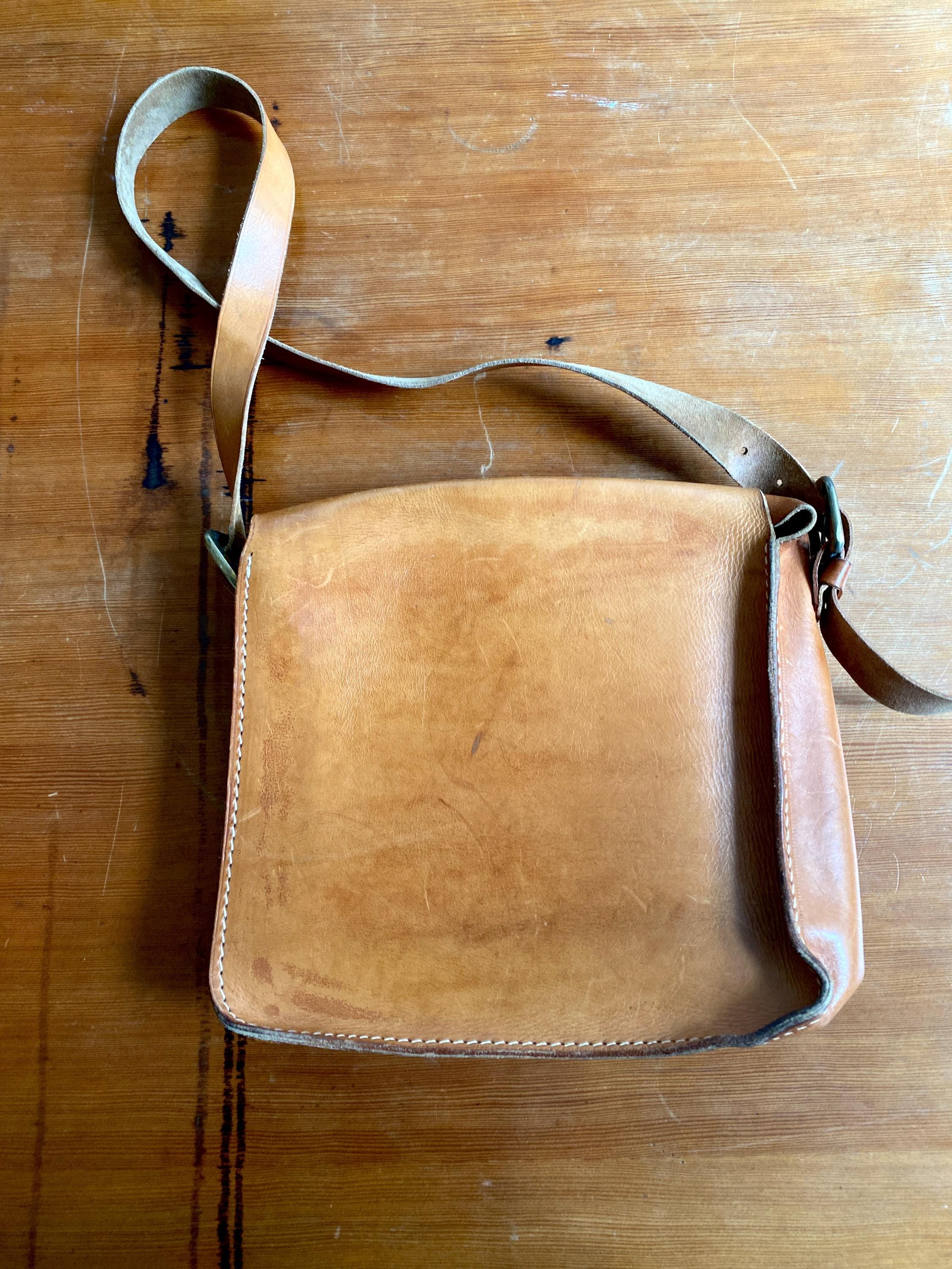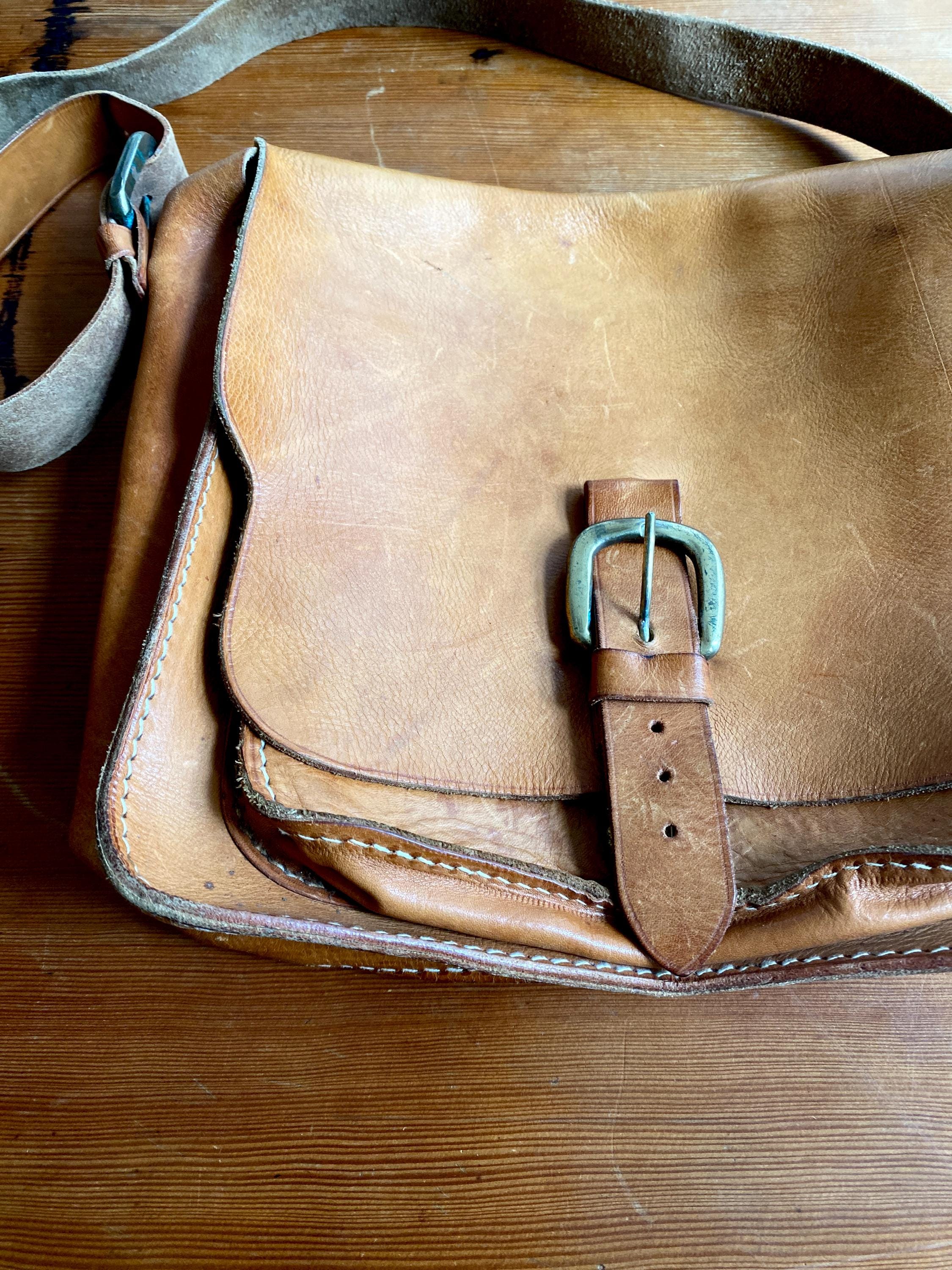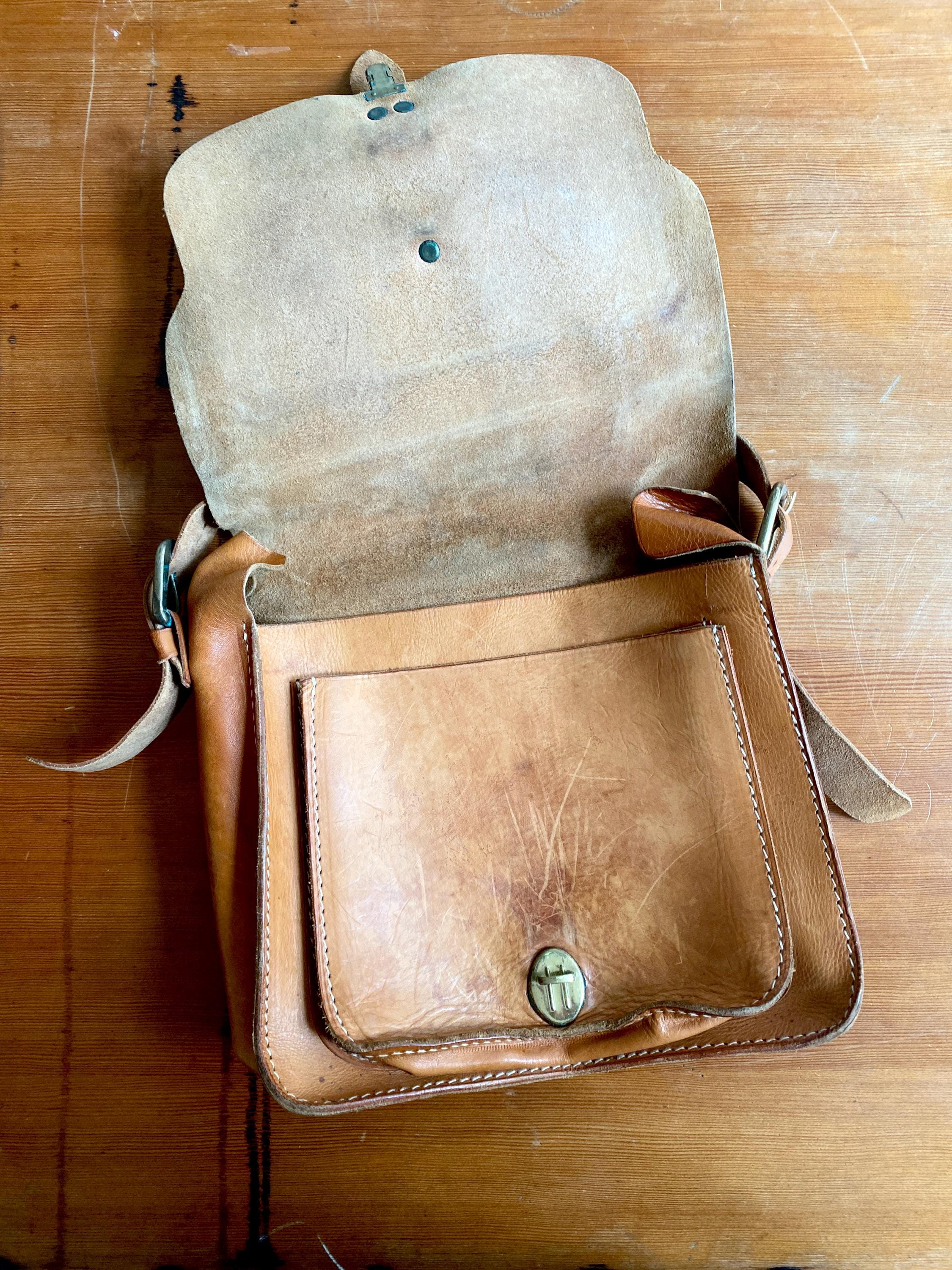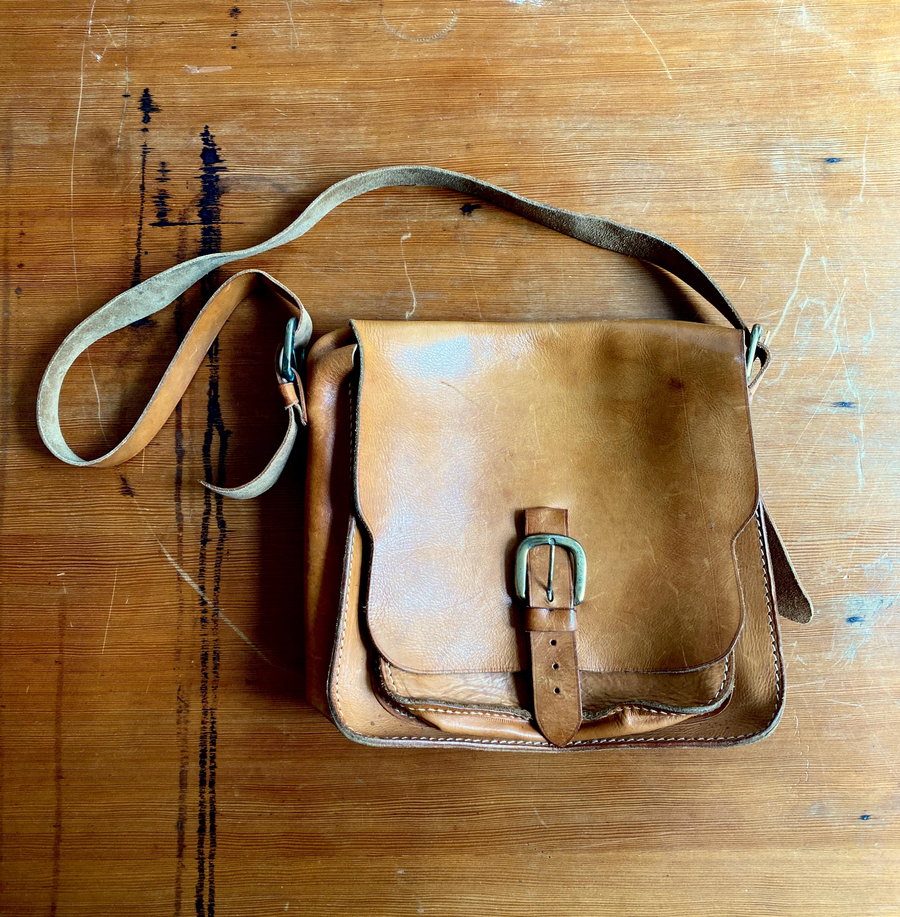1970s handmade leather shoulder bag.