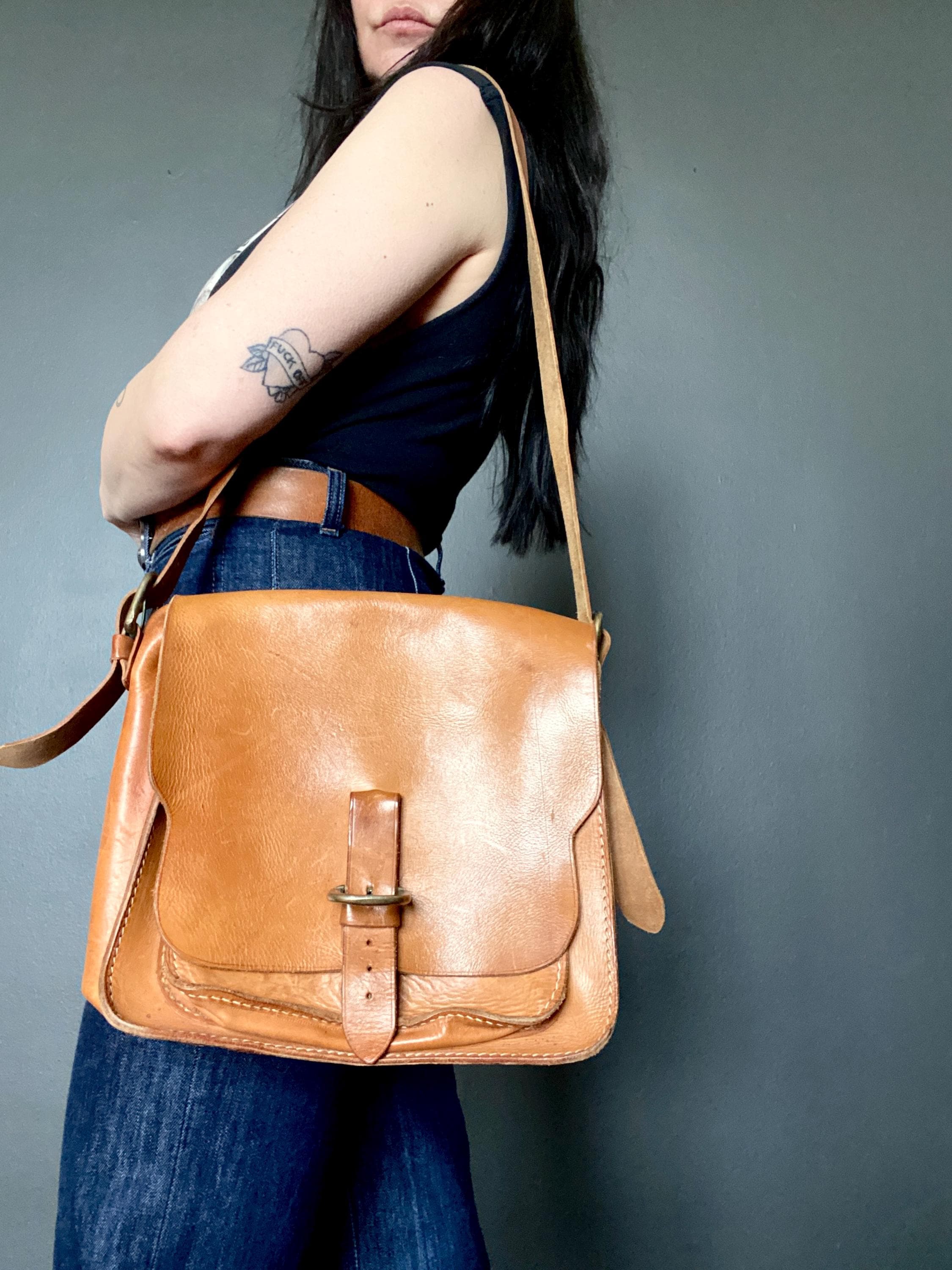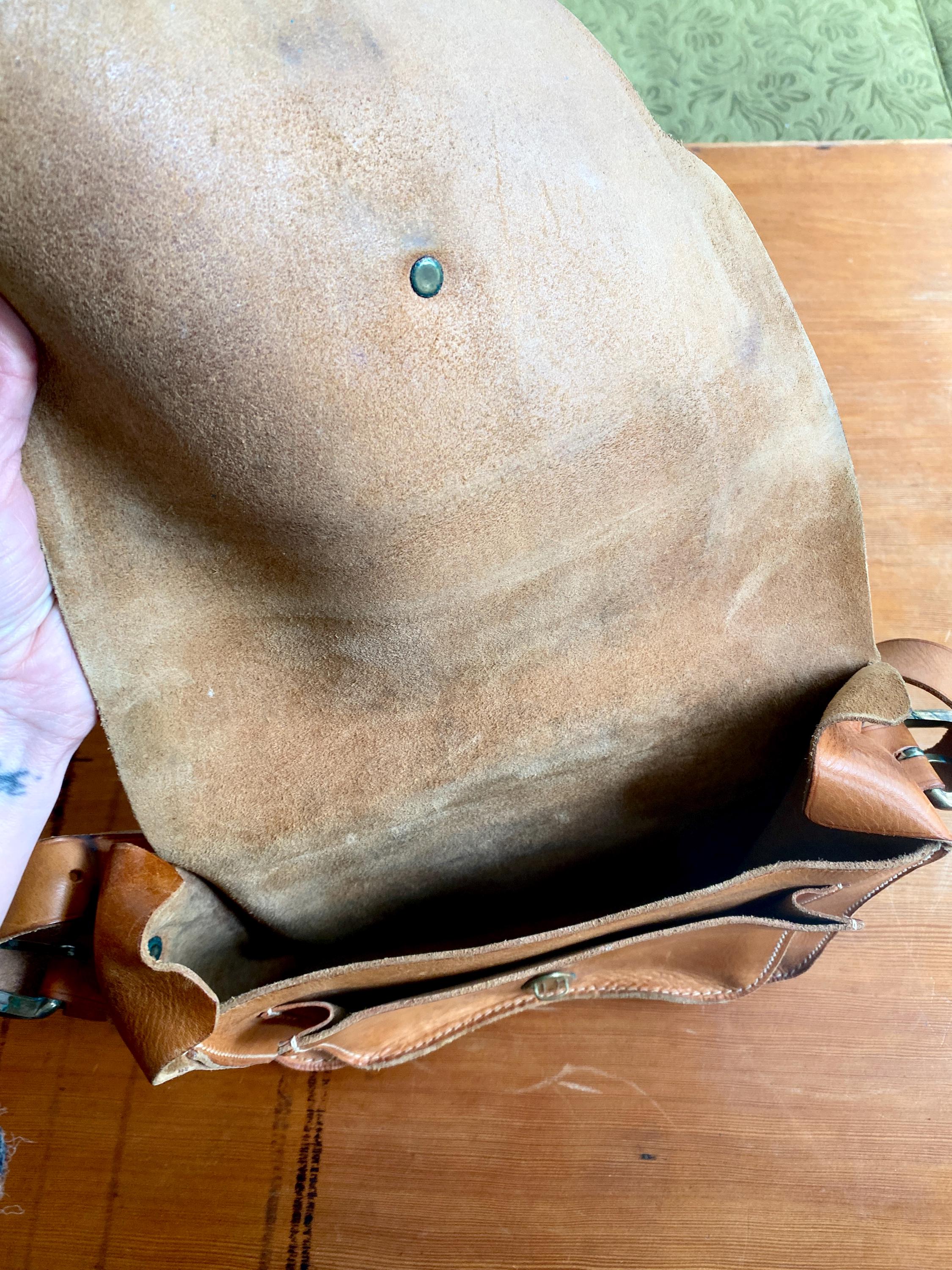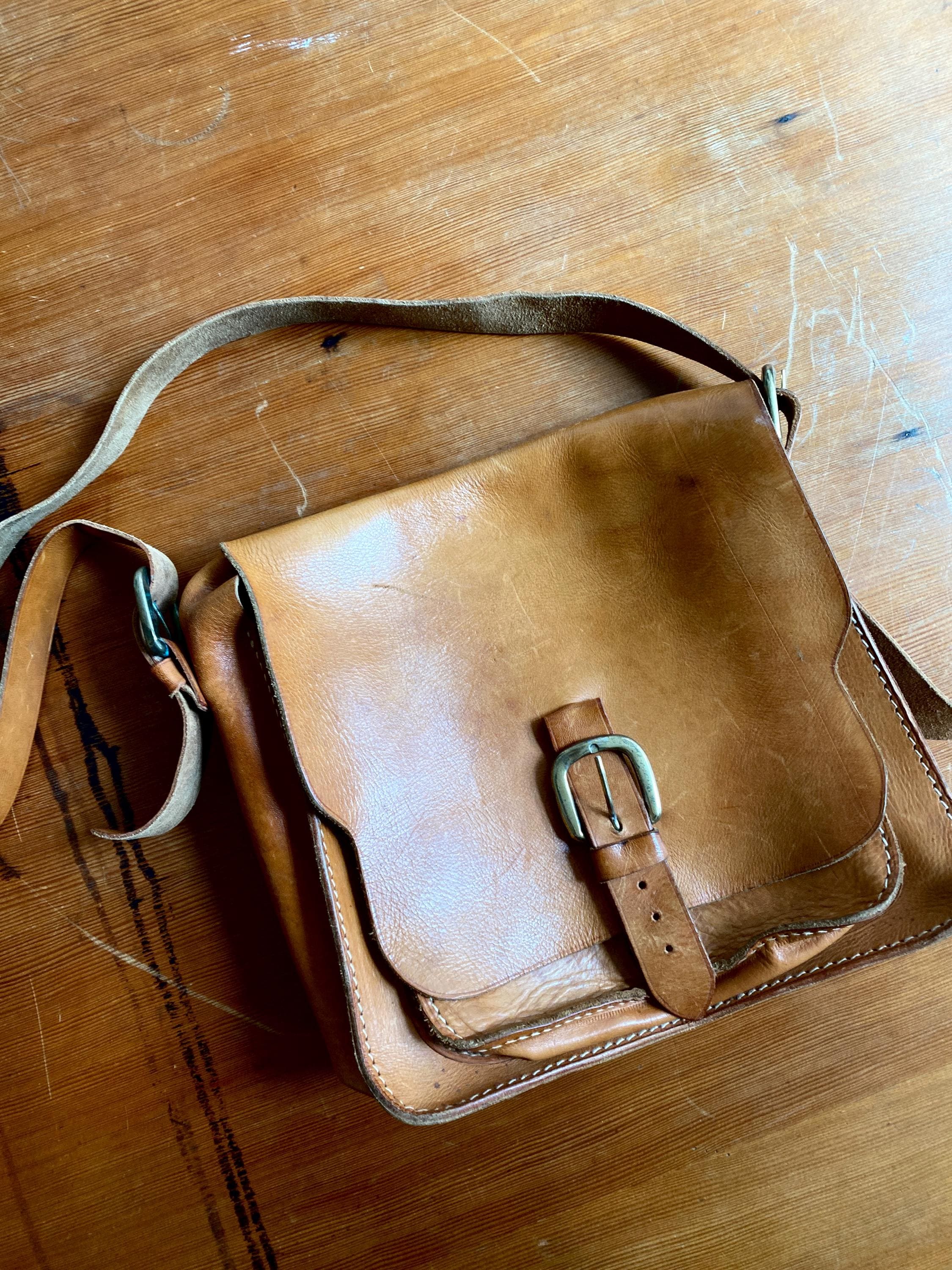 1970s handmade leather shoulder bag.