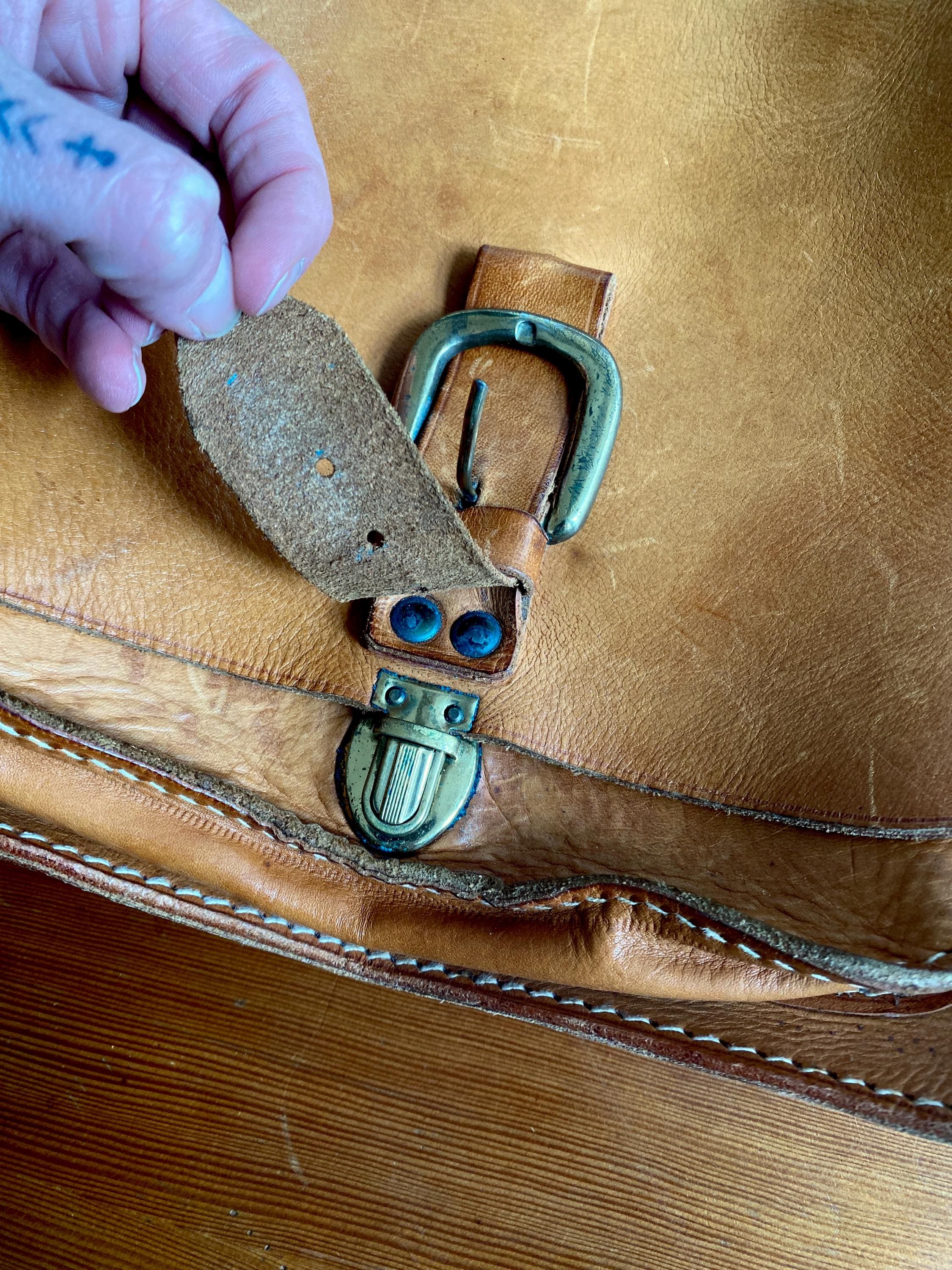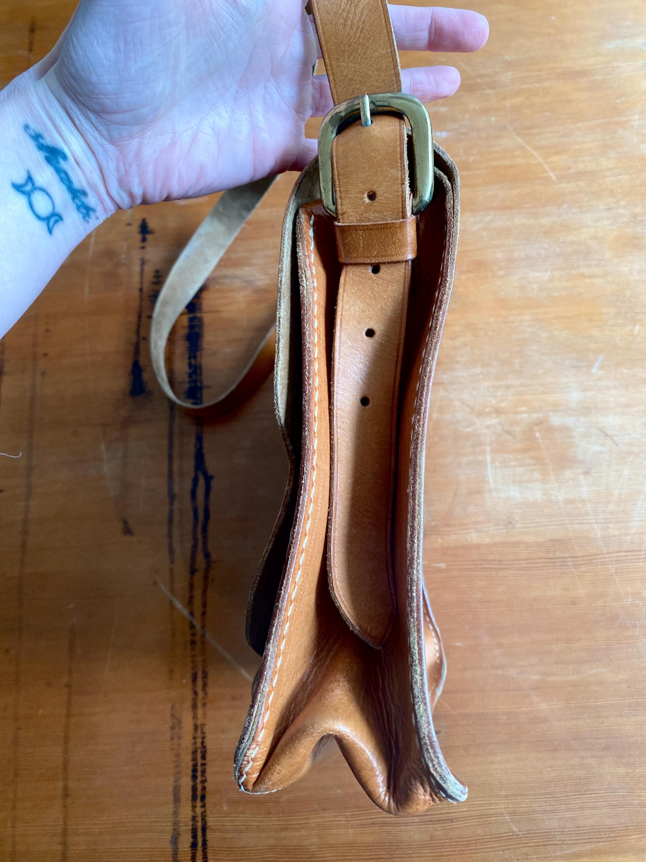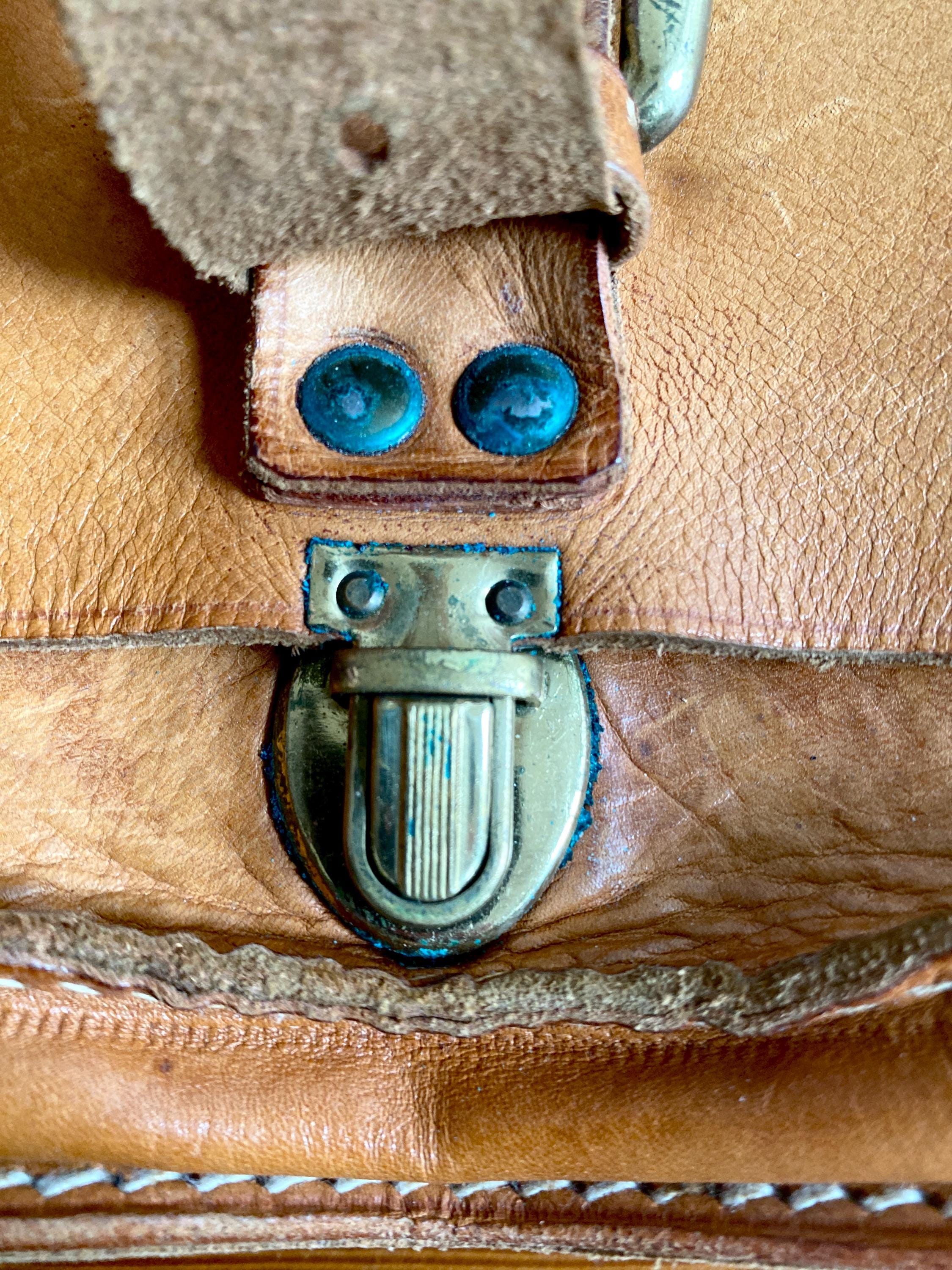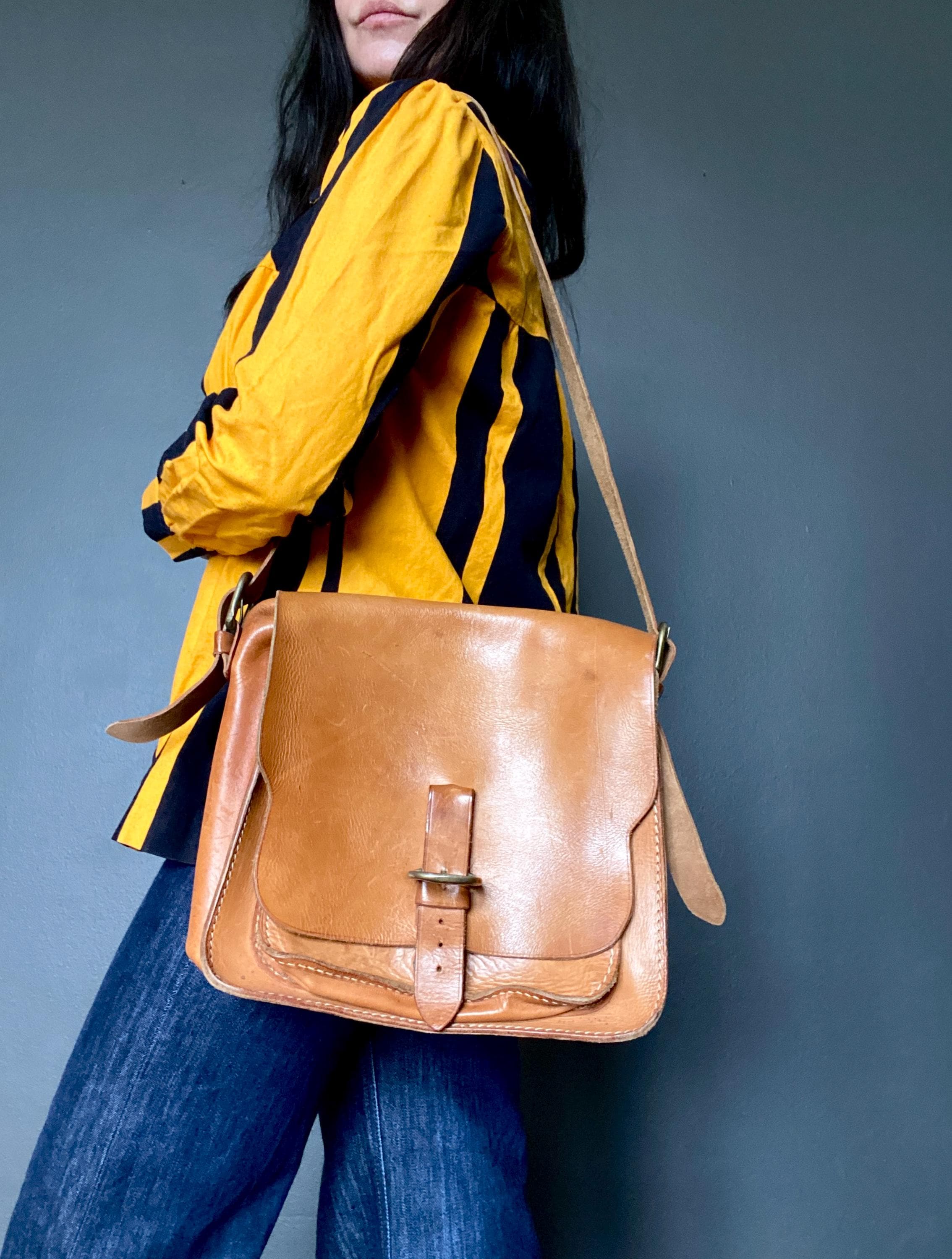 1970s handmade leather shoulder bag.